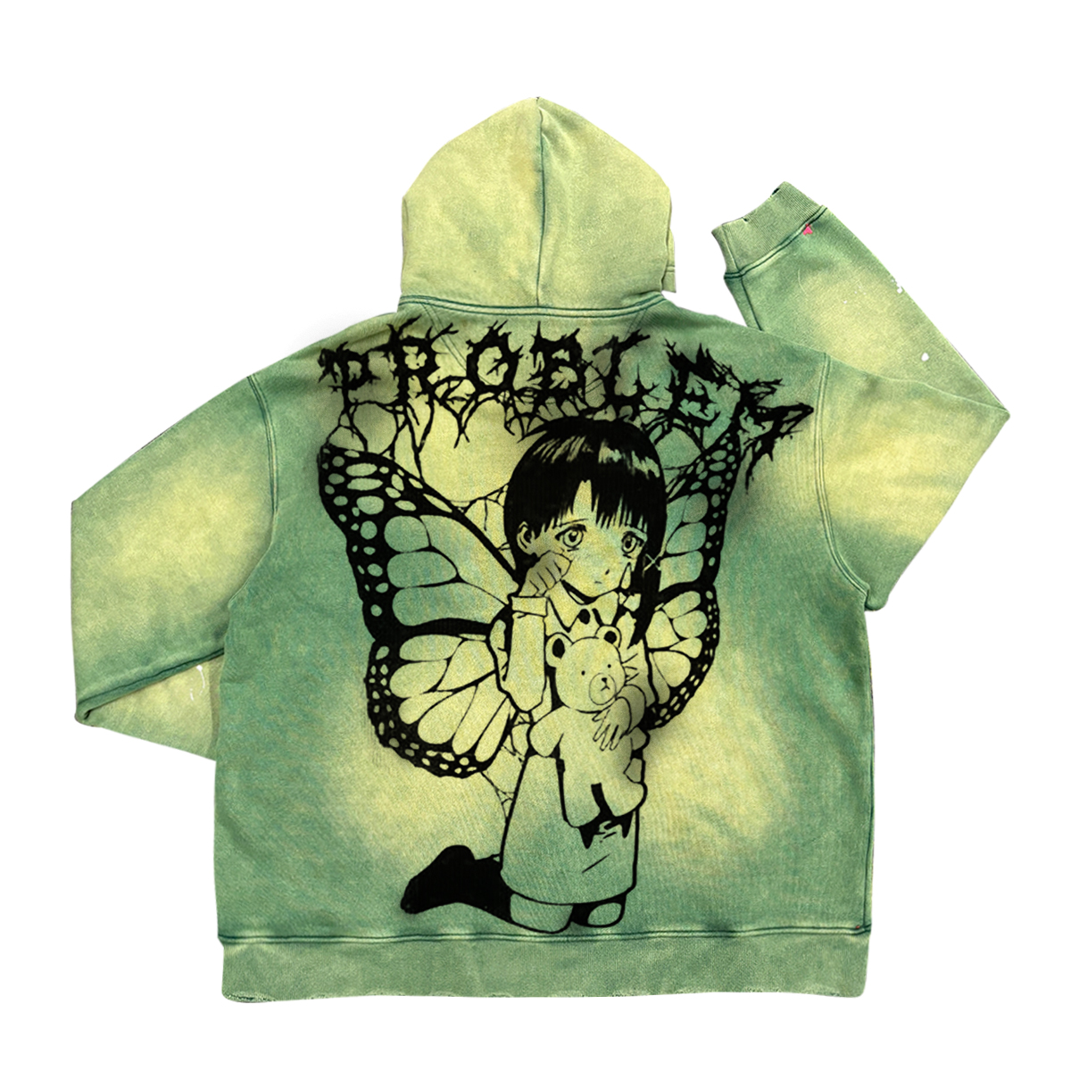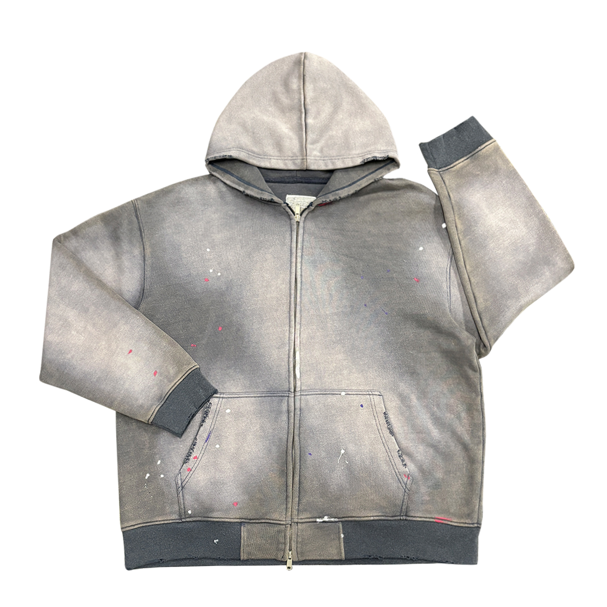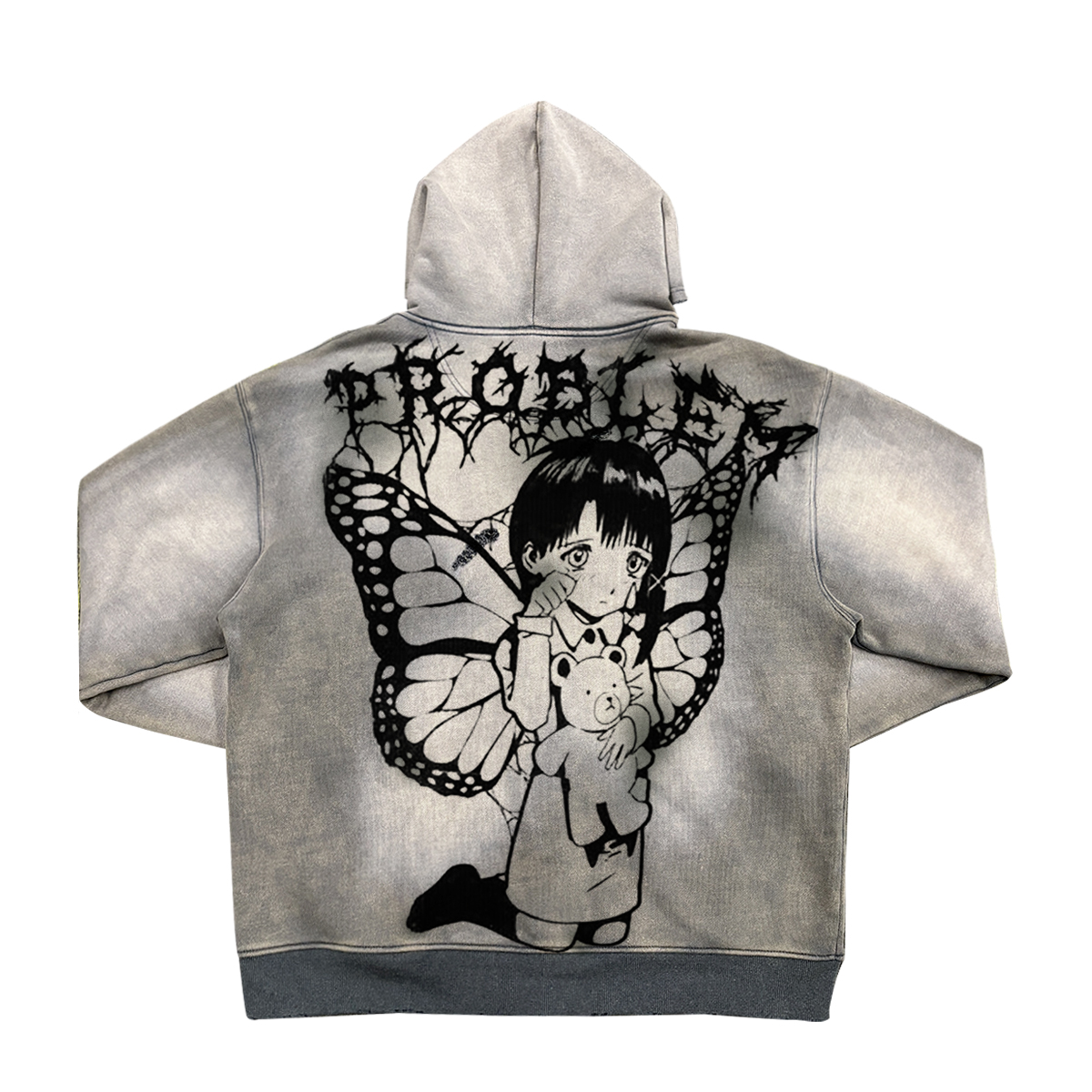 Graffiti Print Anime Design Washed Zipper Hoodie WN18748