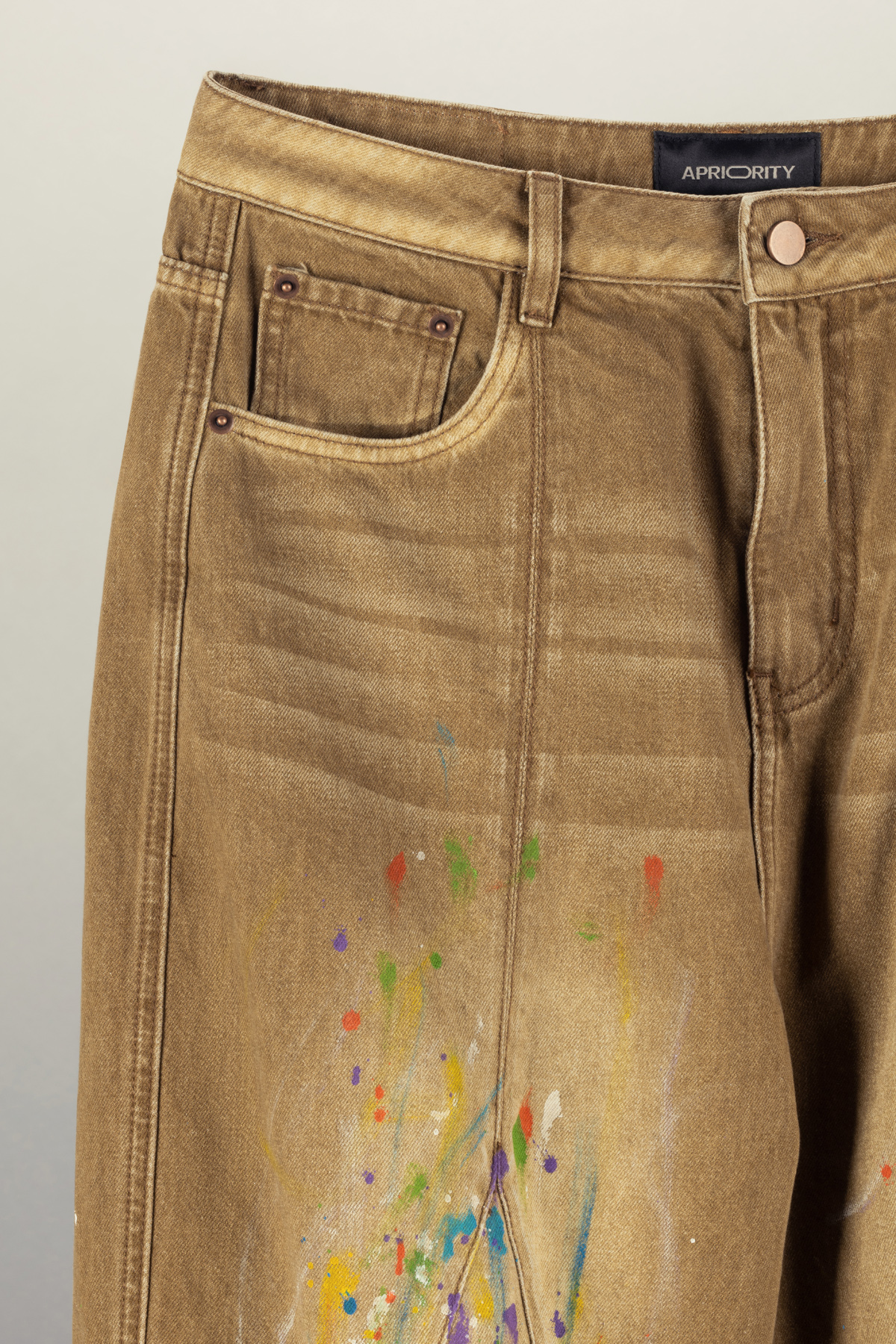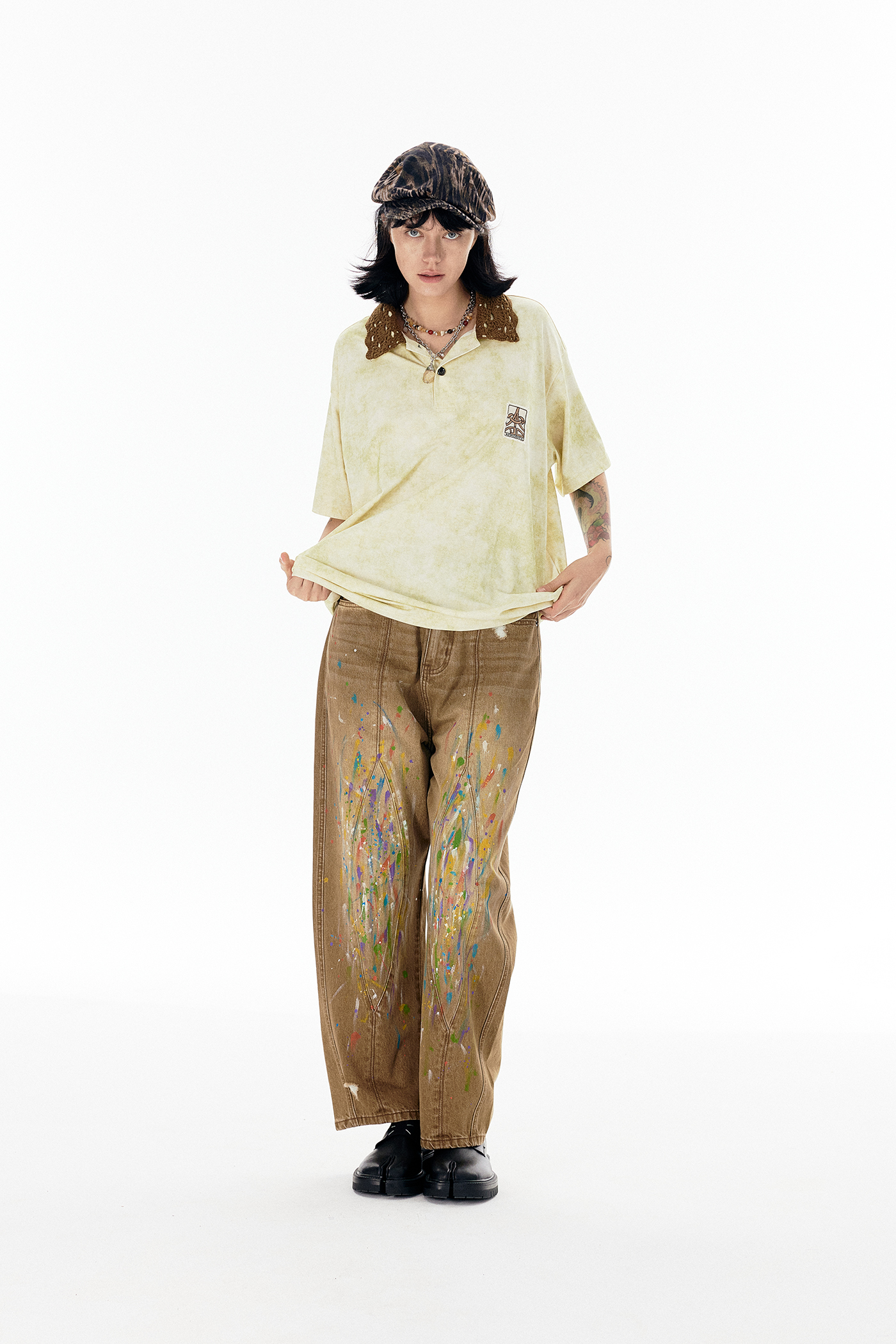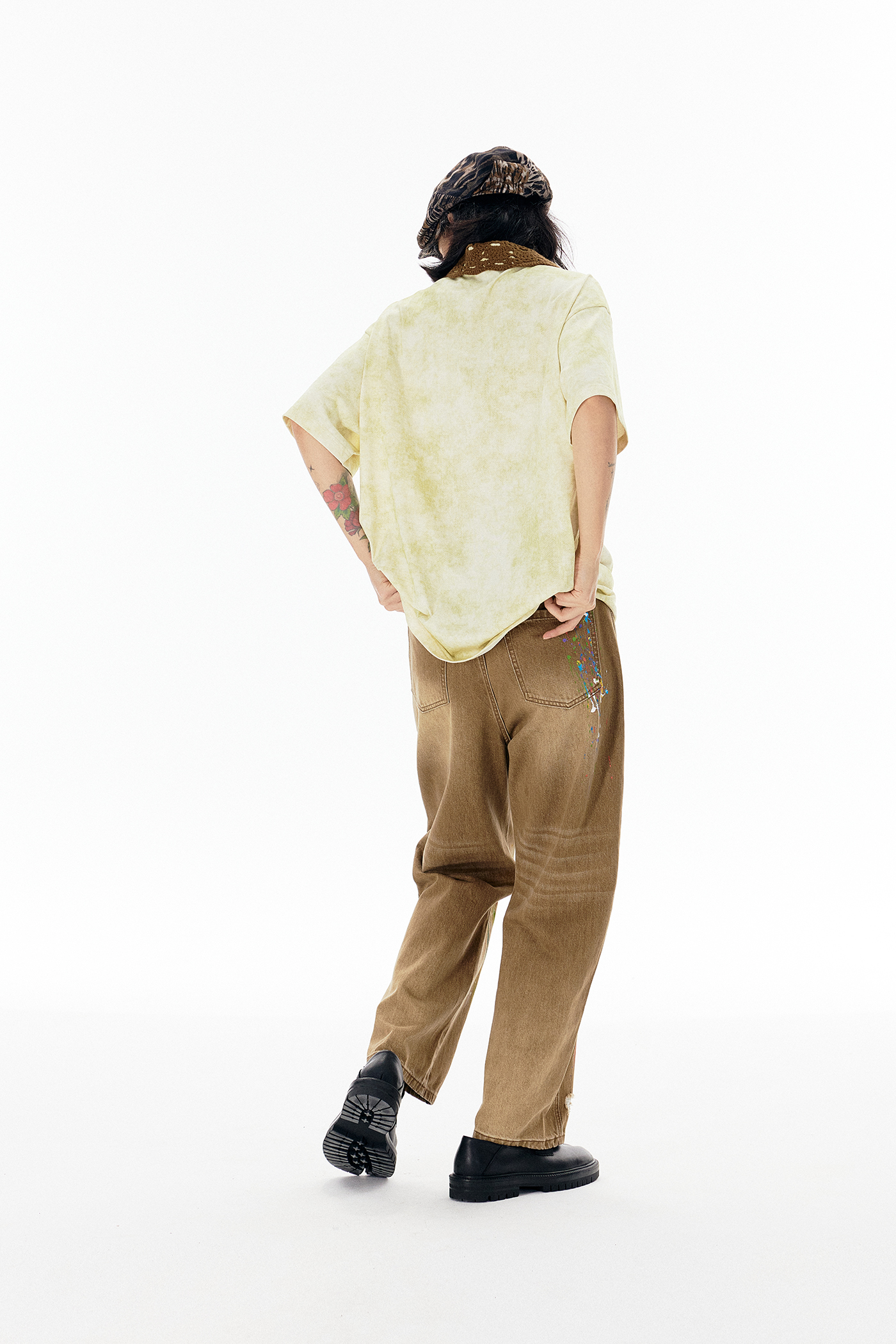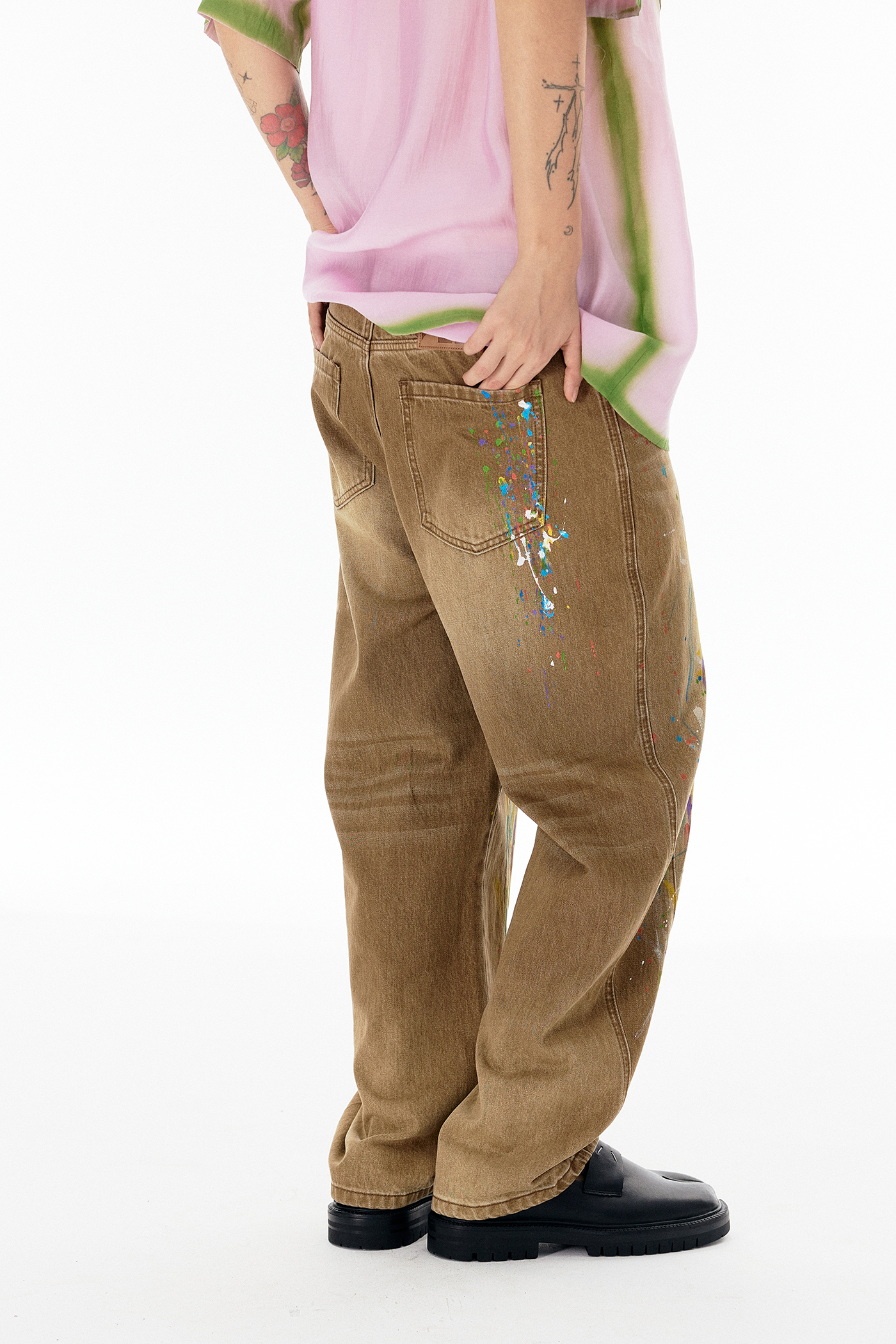 Washed Splashed Ink Curved Blade Denim Jeans WN19032
