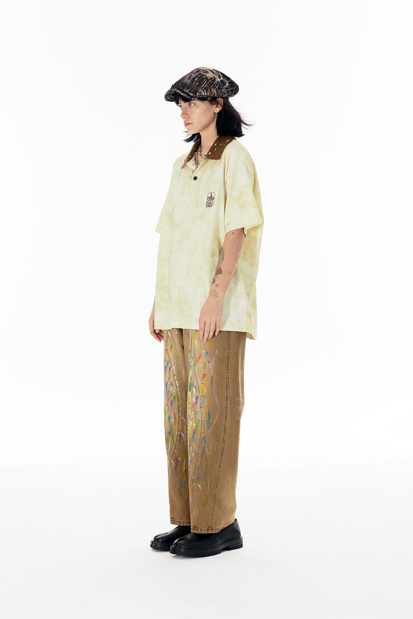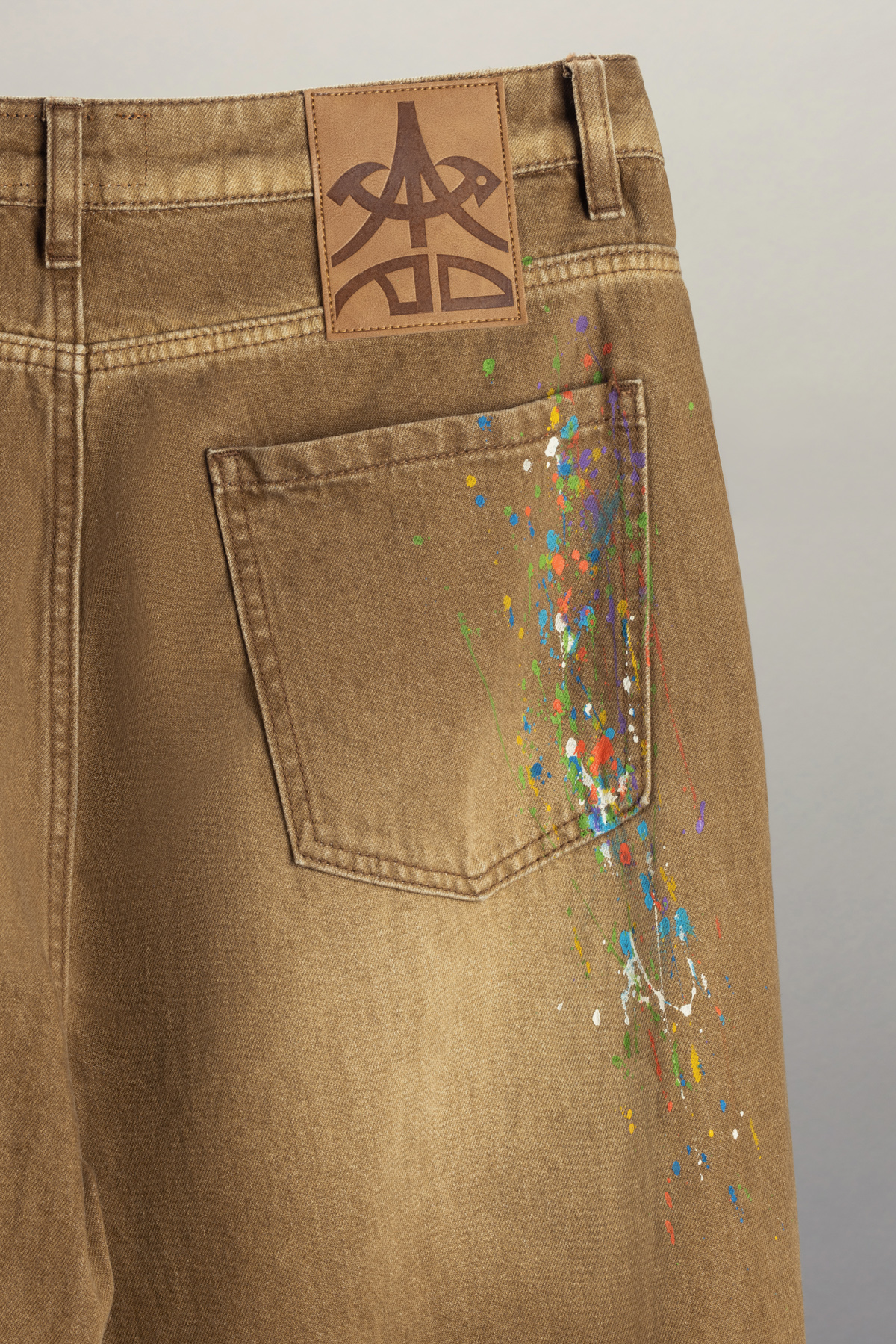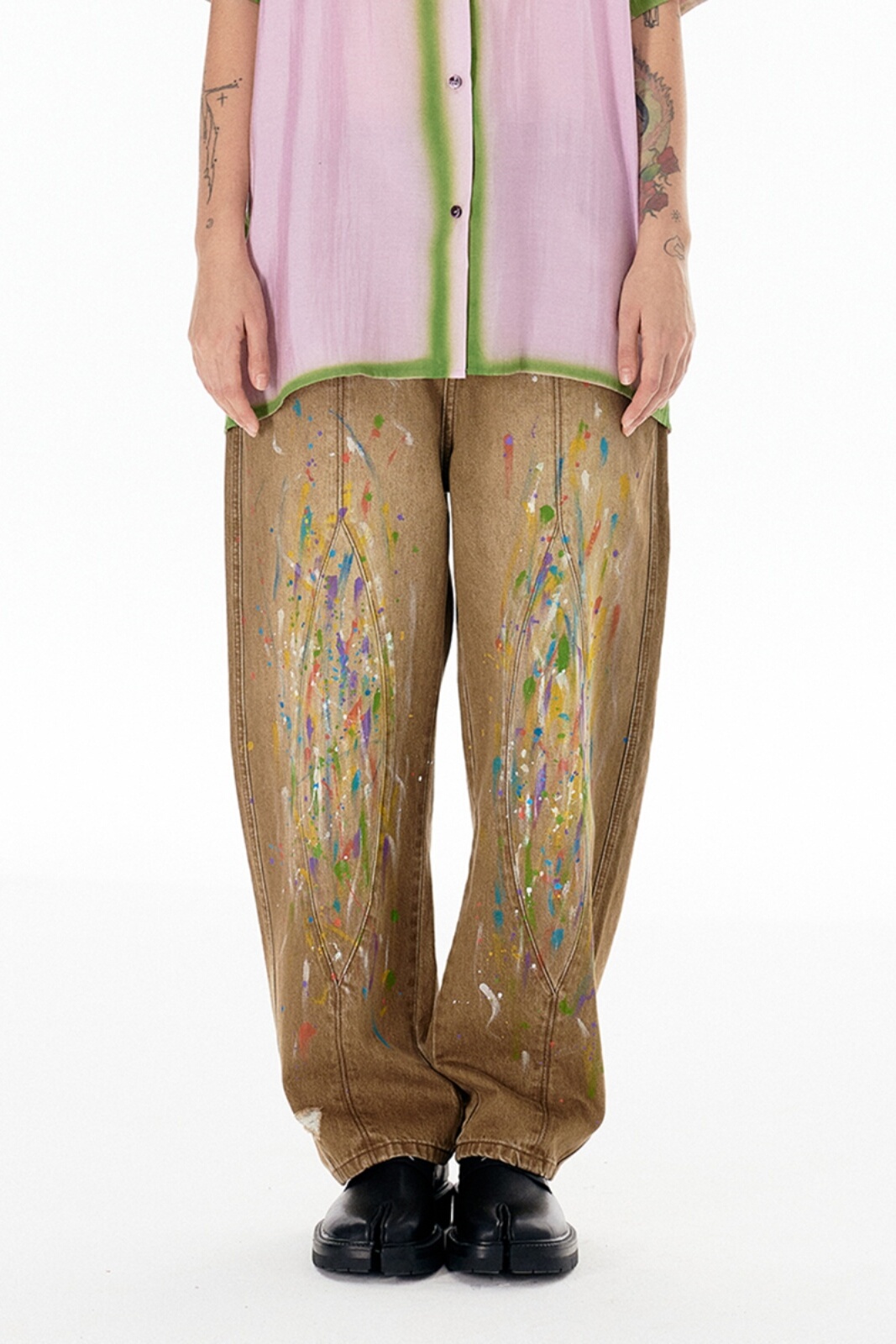 Washed Splashed Ink Curved Blade Denim Jeans WN19032