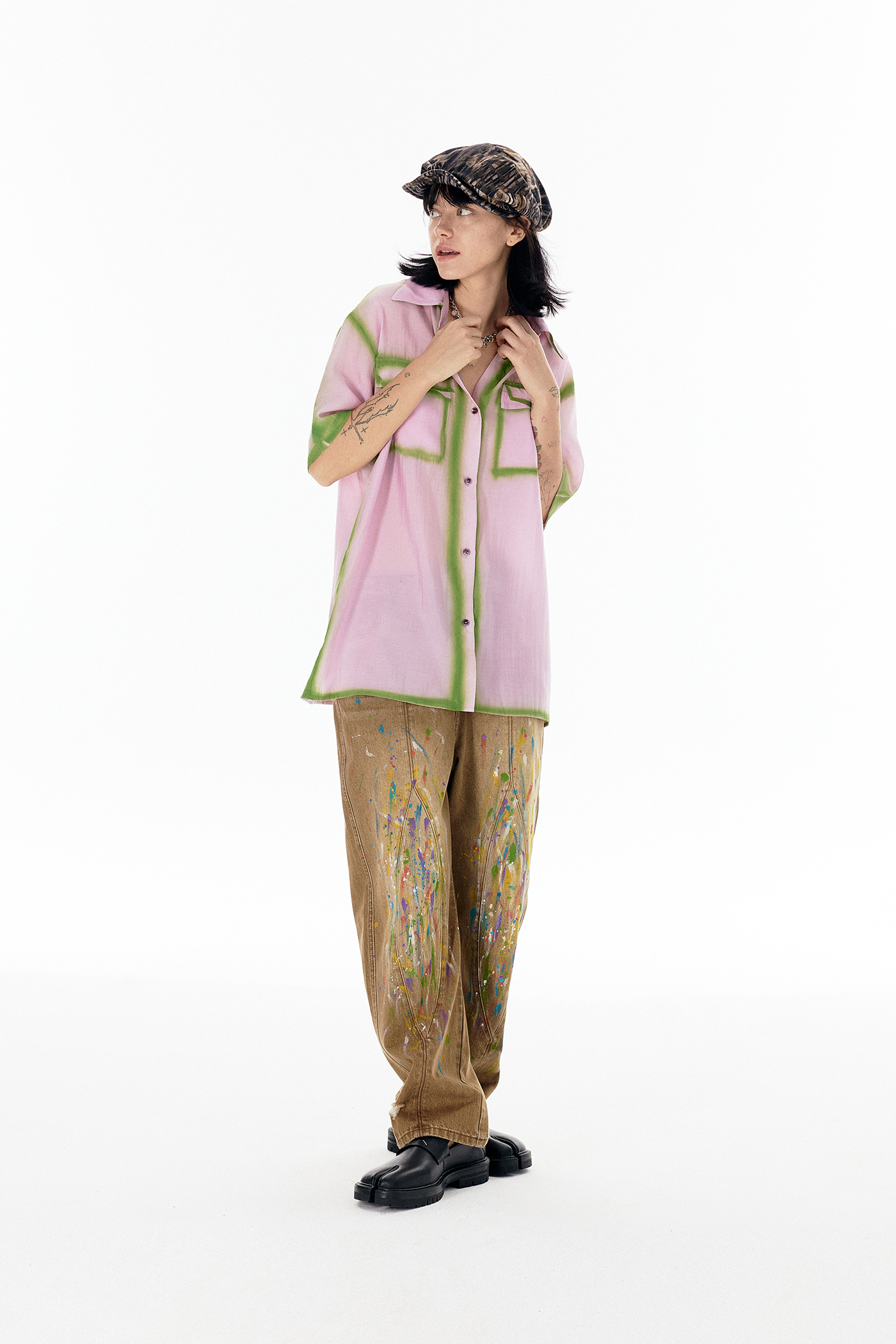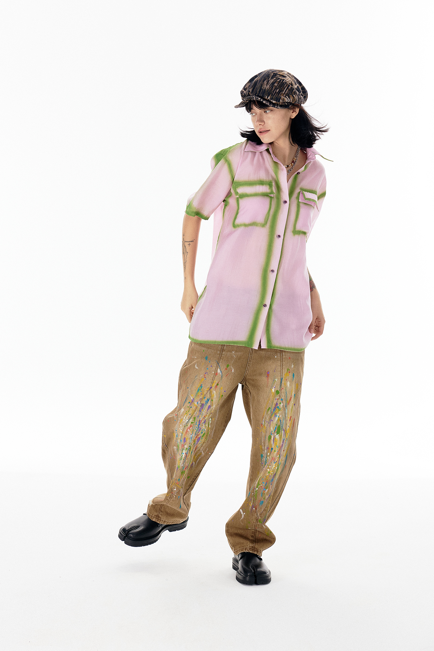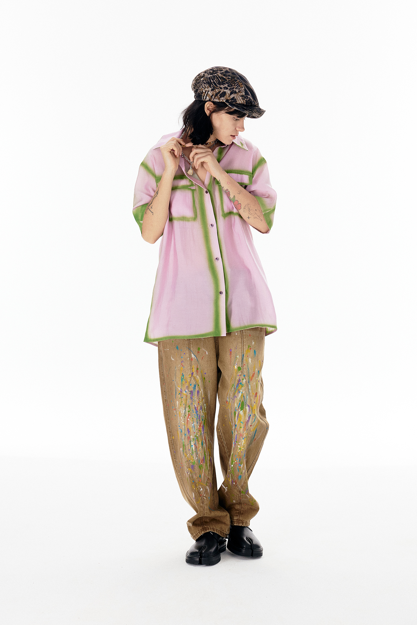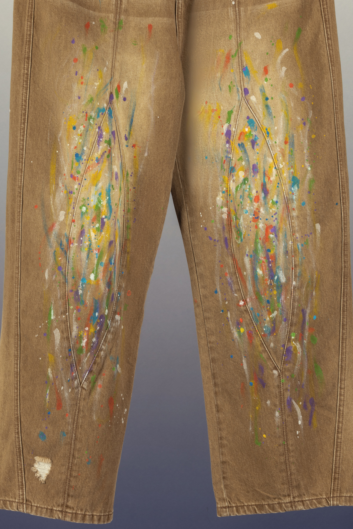 Washed Splashed Ink Curved Blade Denim Jeans WN19032