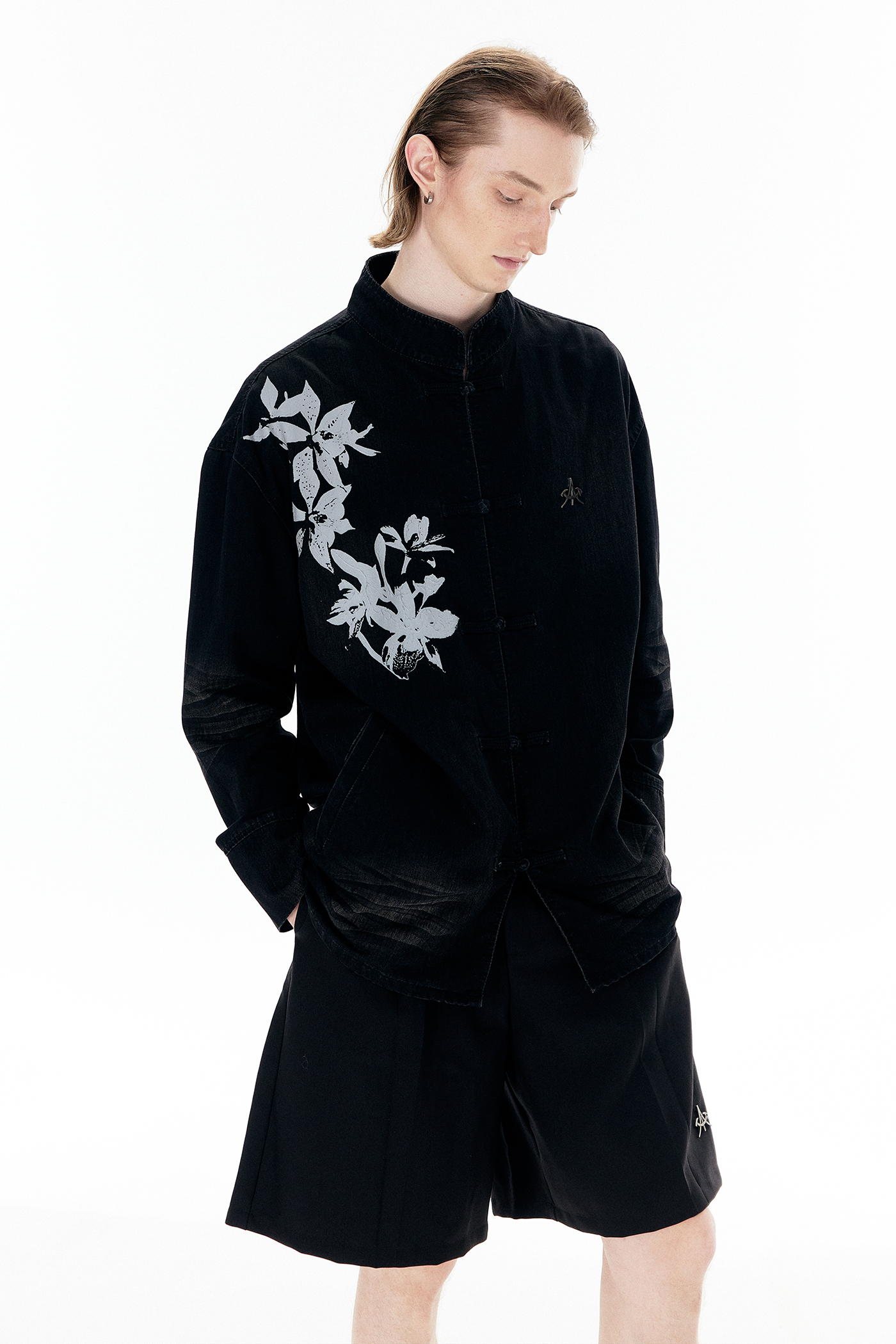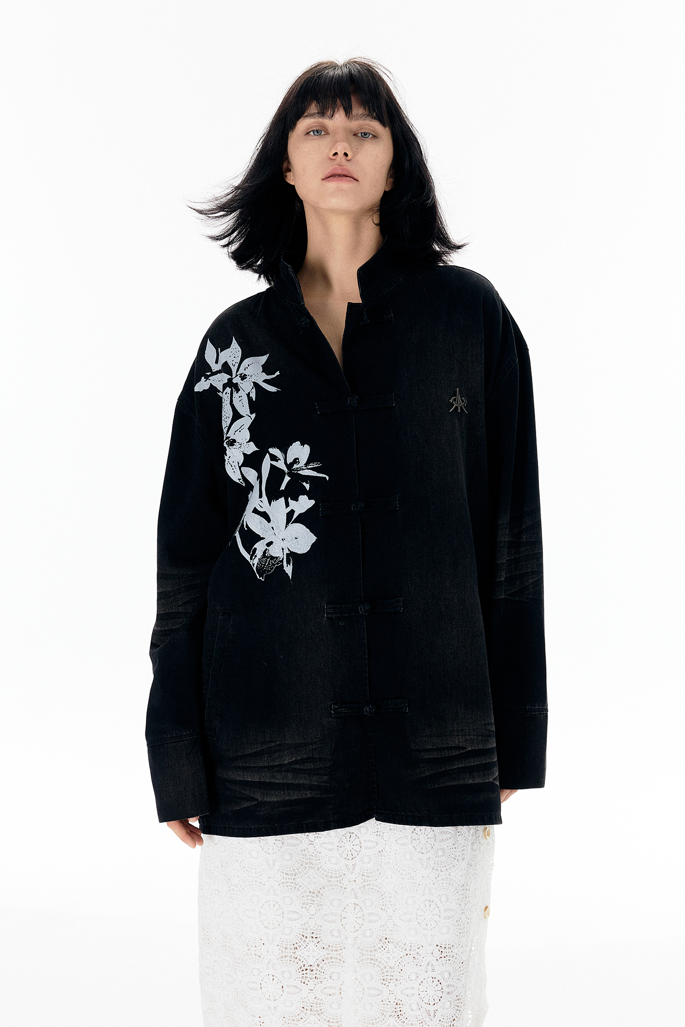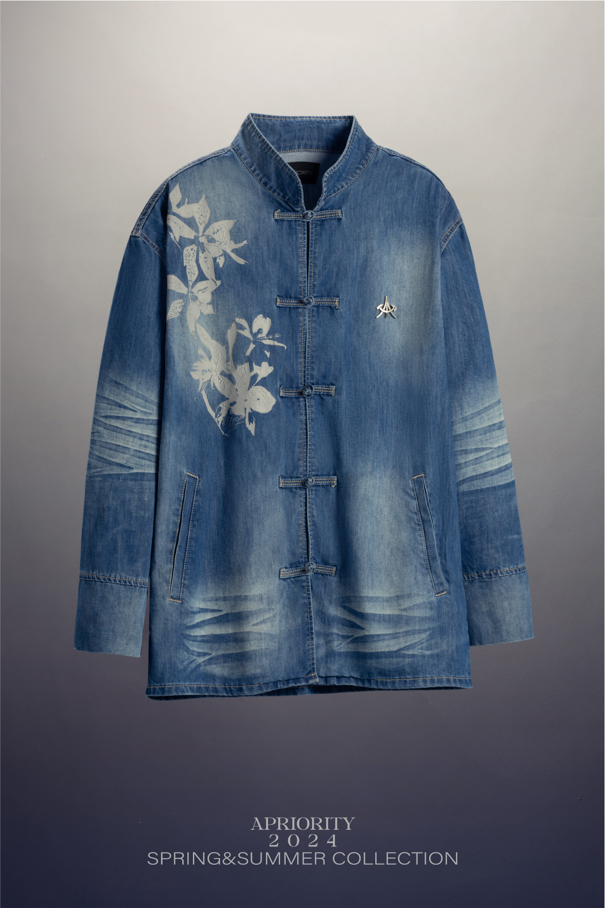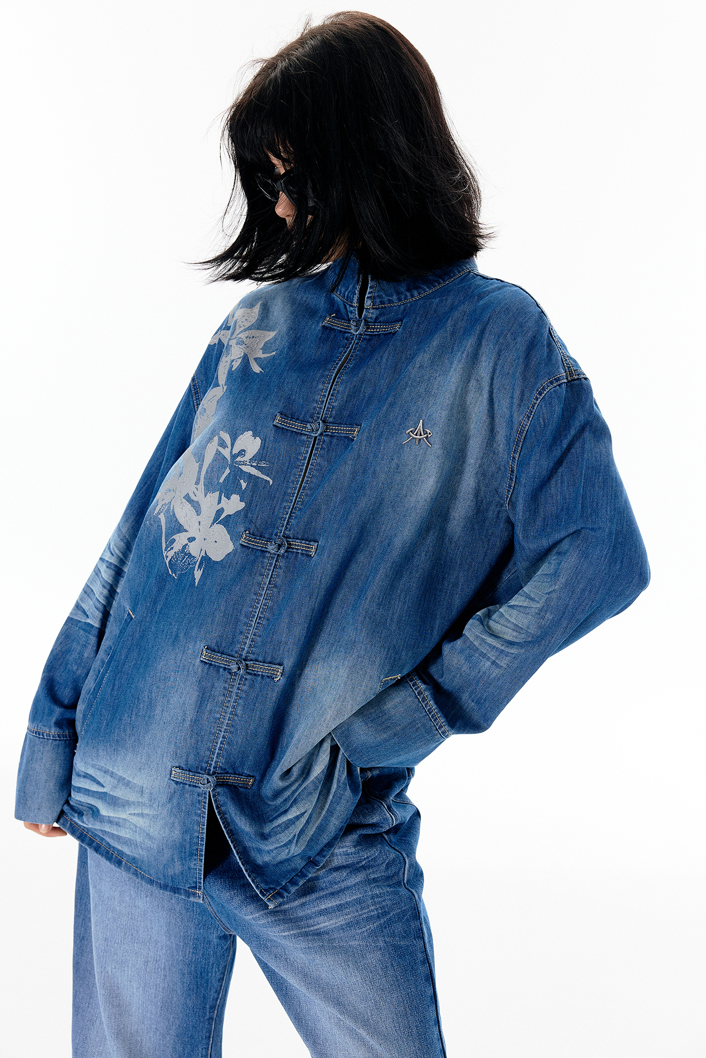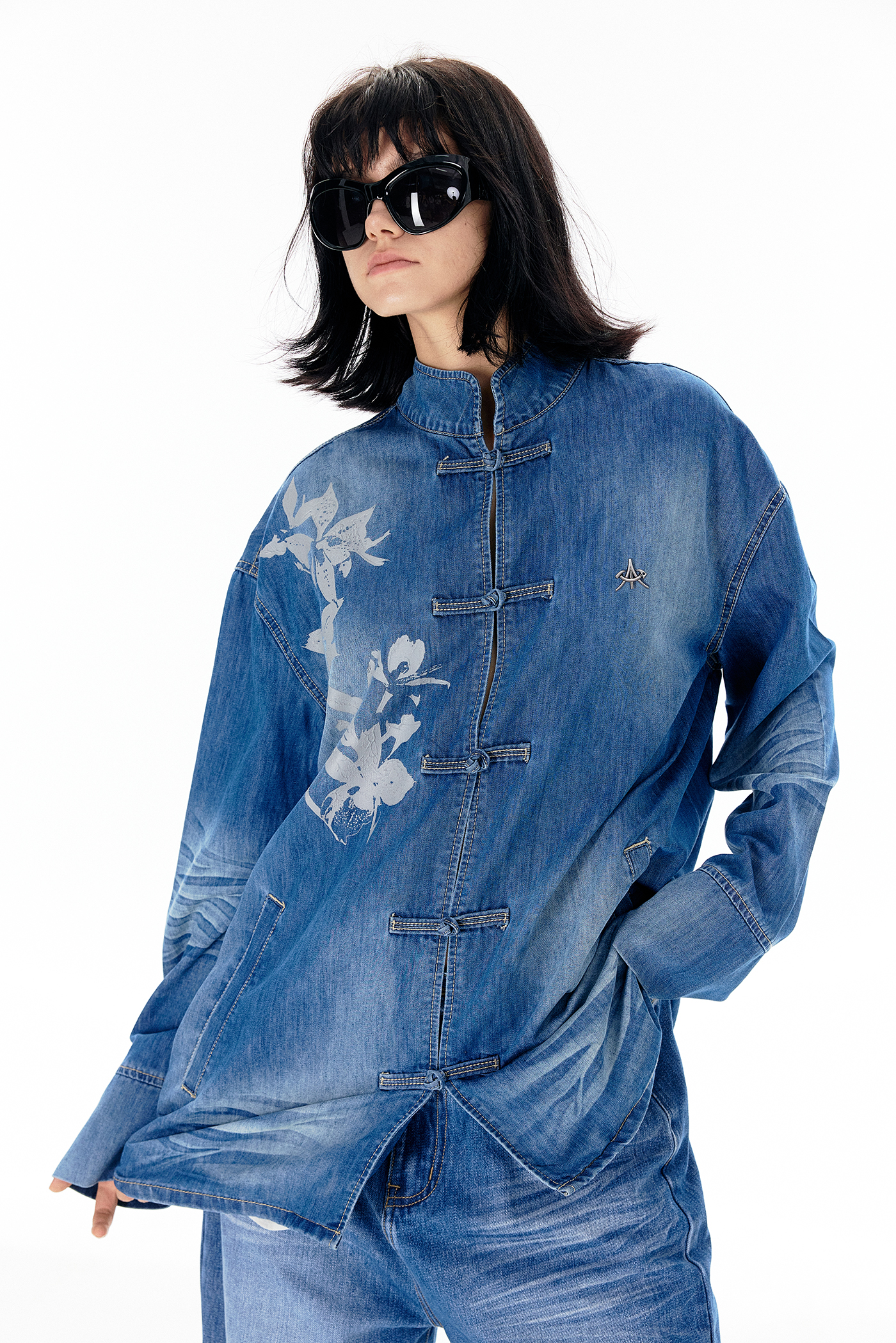 Washed Oversize Chinese Style Denim Shirt WN19036