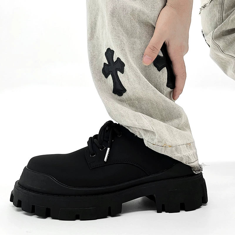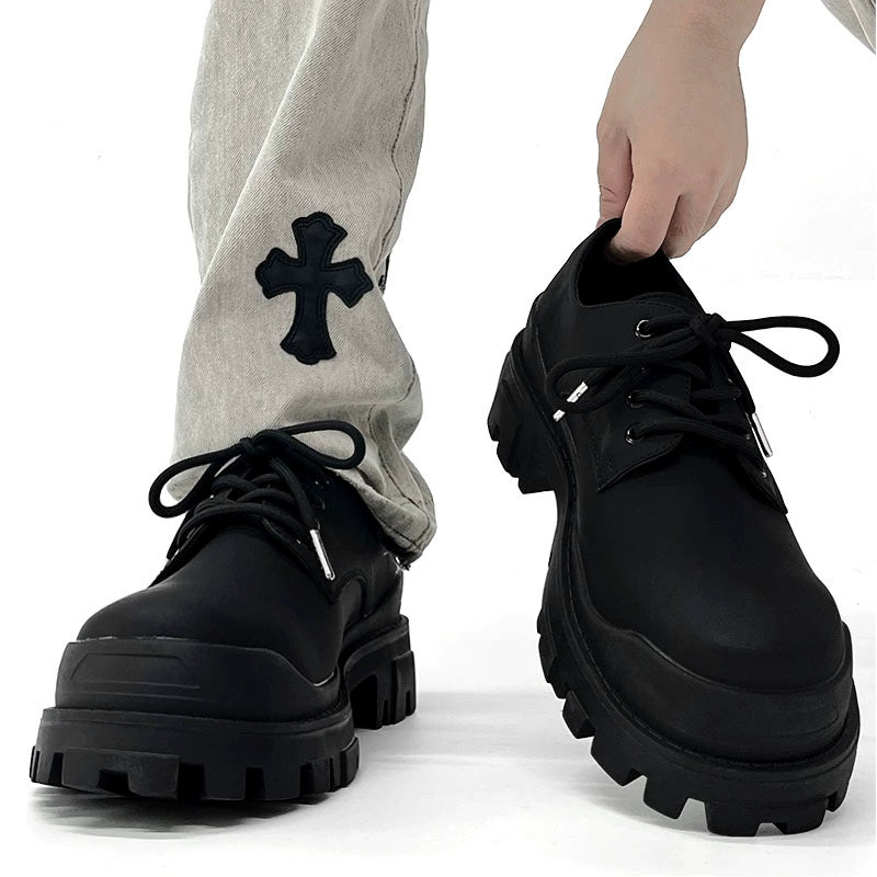 Matte Leather Round-Toe Thick Sole Derby Shoes WN19133