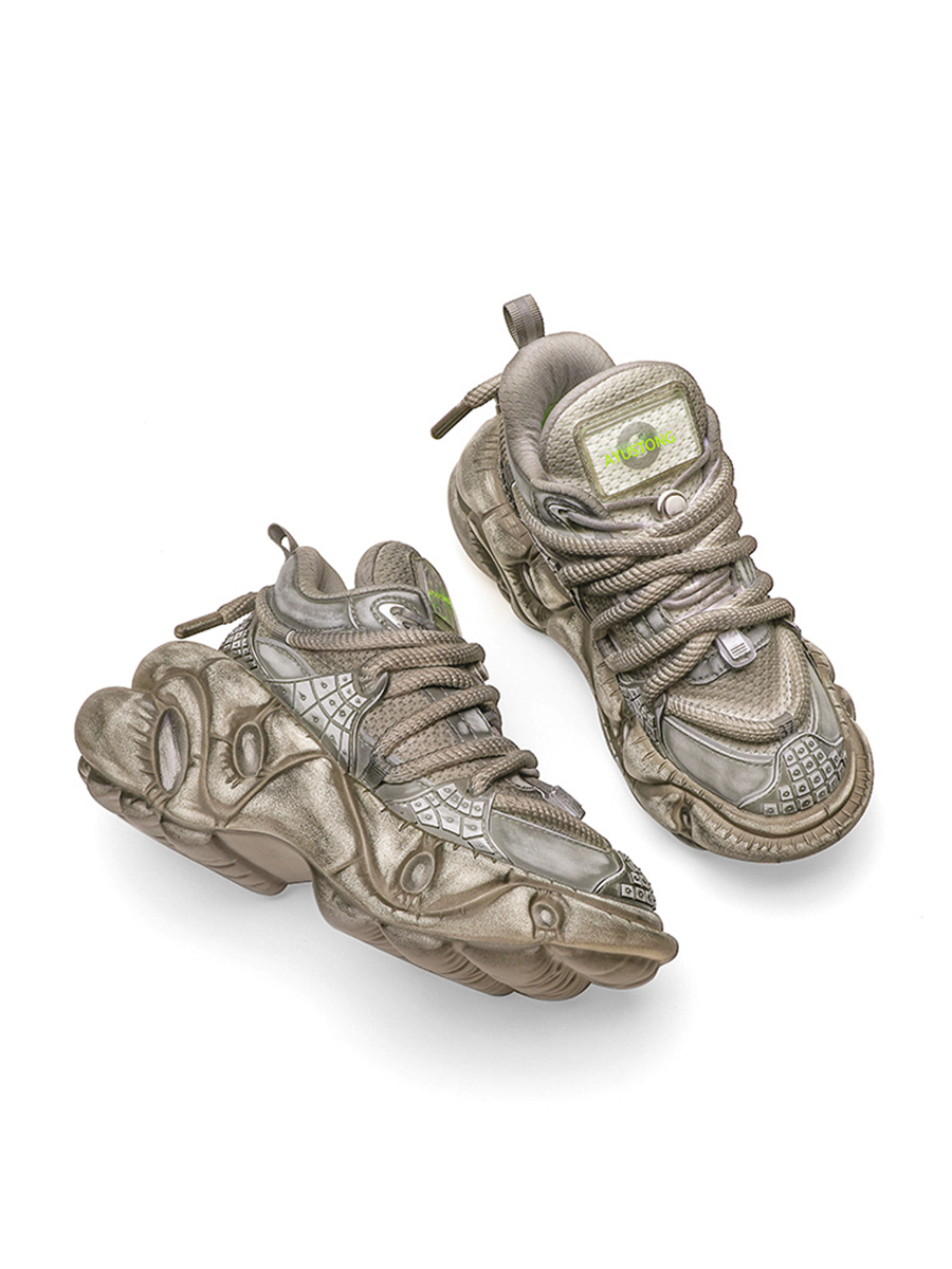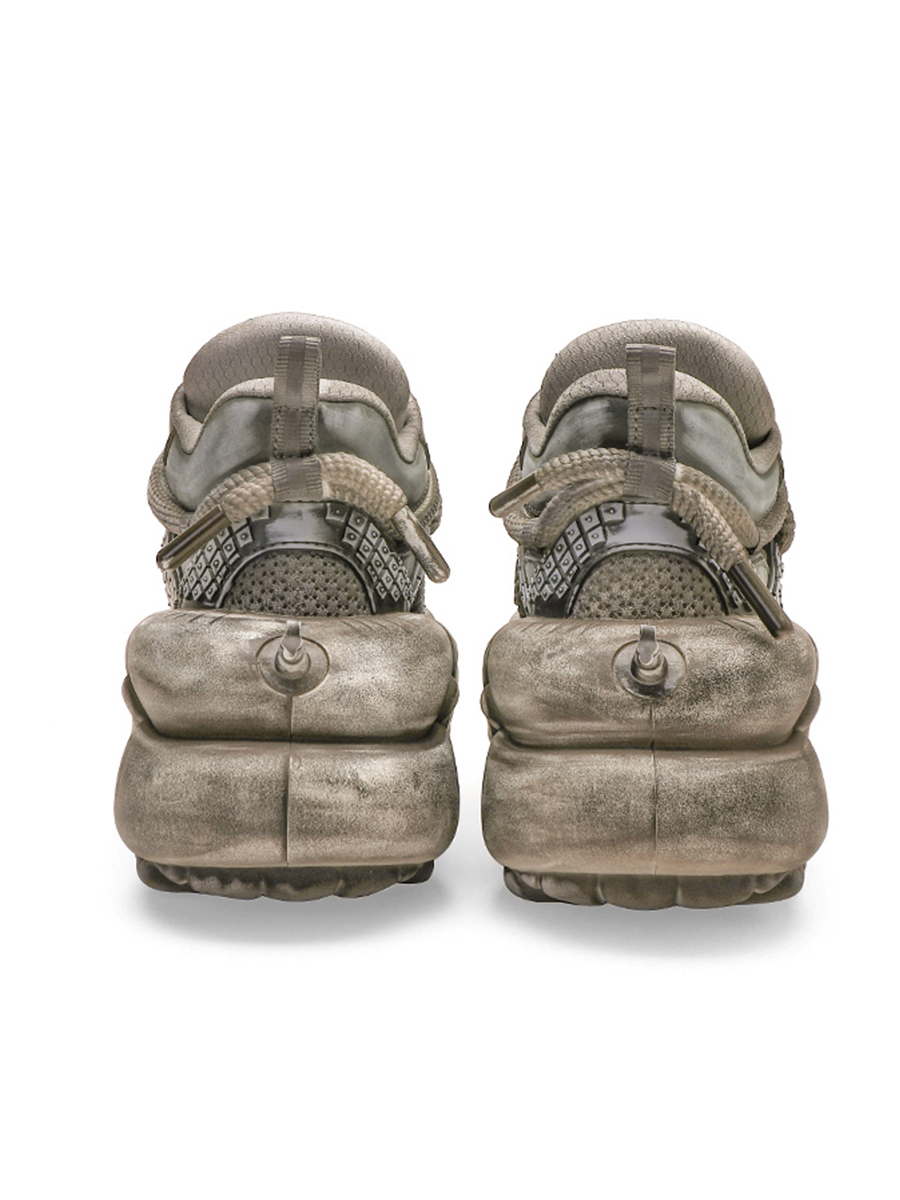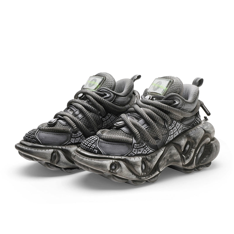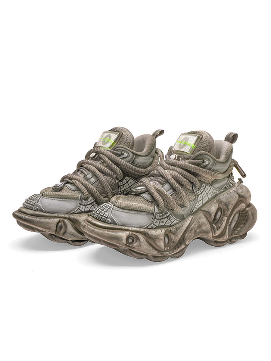 Studs Design Mesh Chunky Sole PU Leather Shoes WN19195