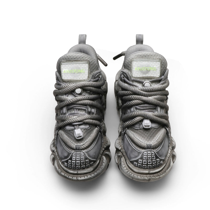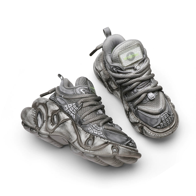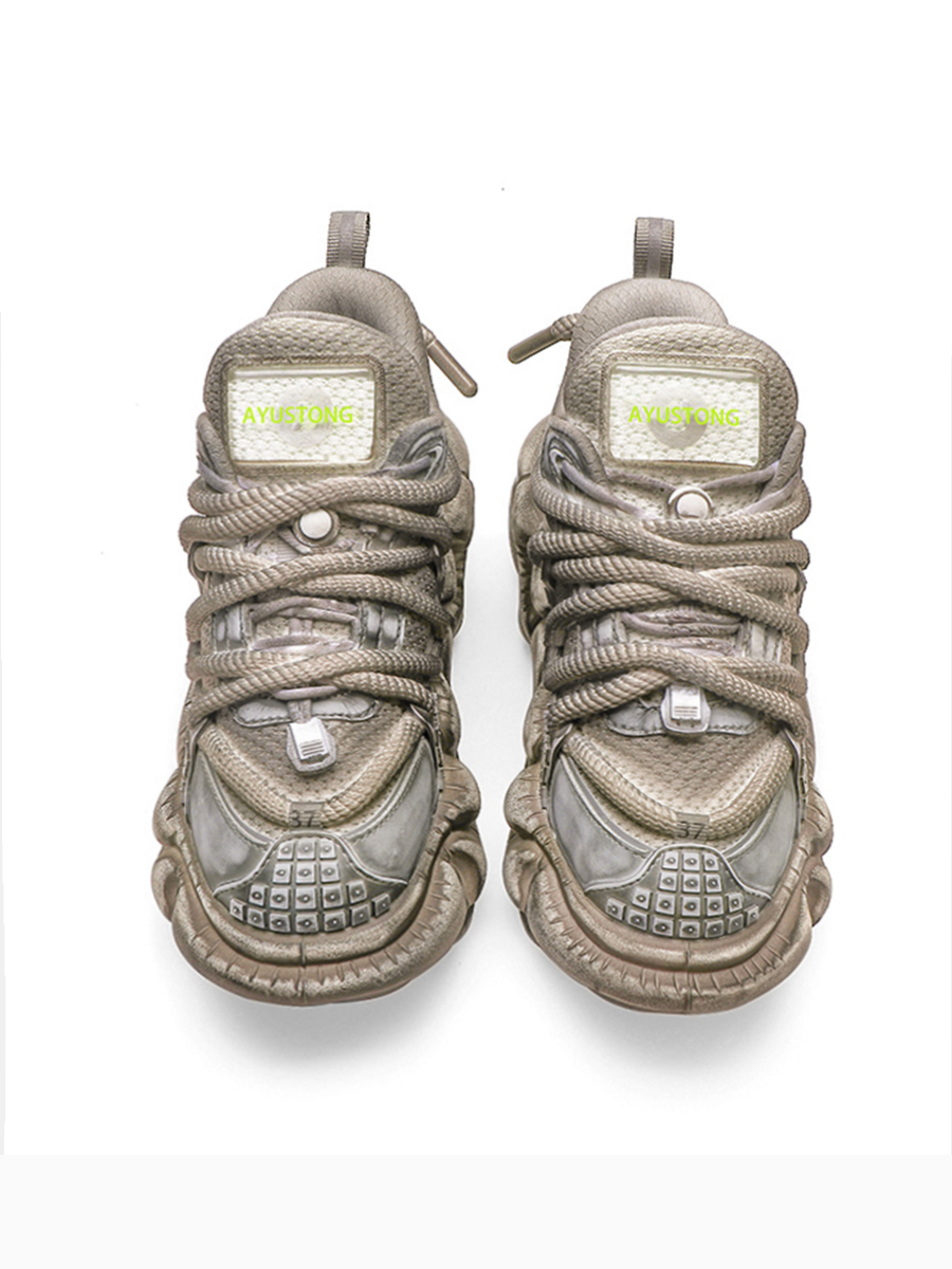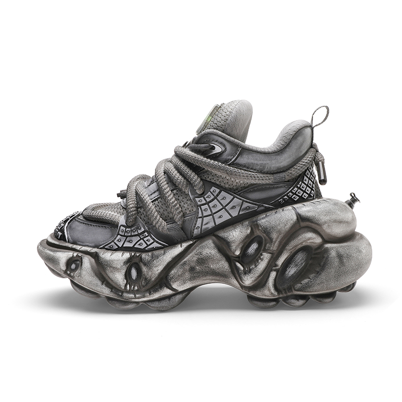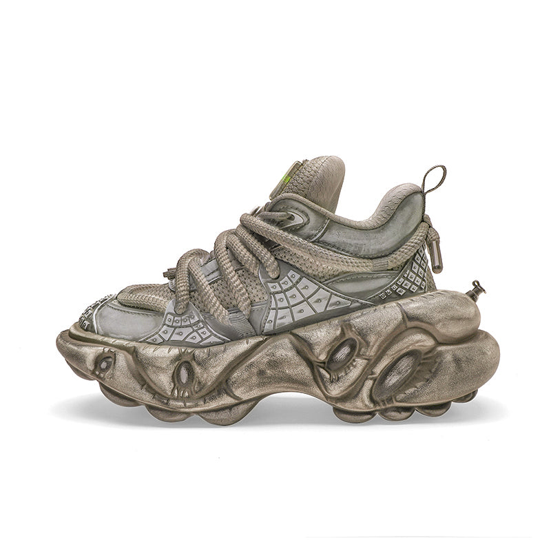 Studs Design Mesh Chunky Sole PU Leather Shoes WN19195