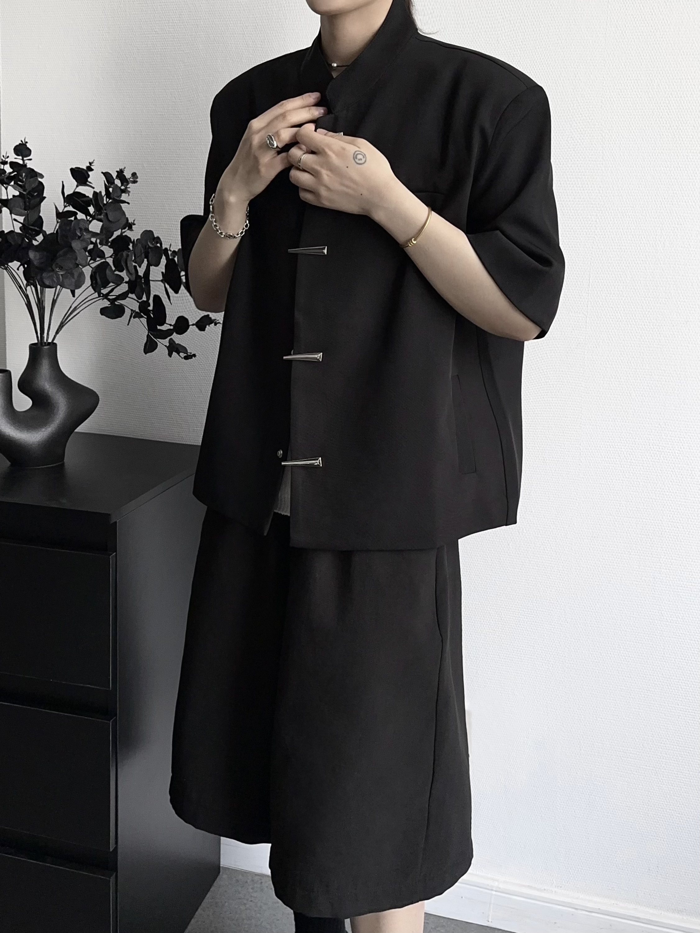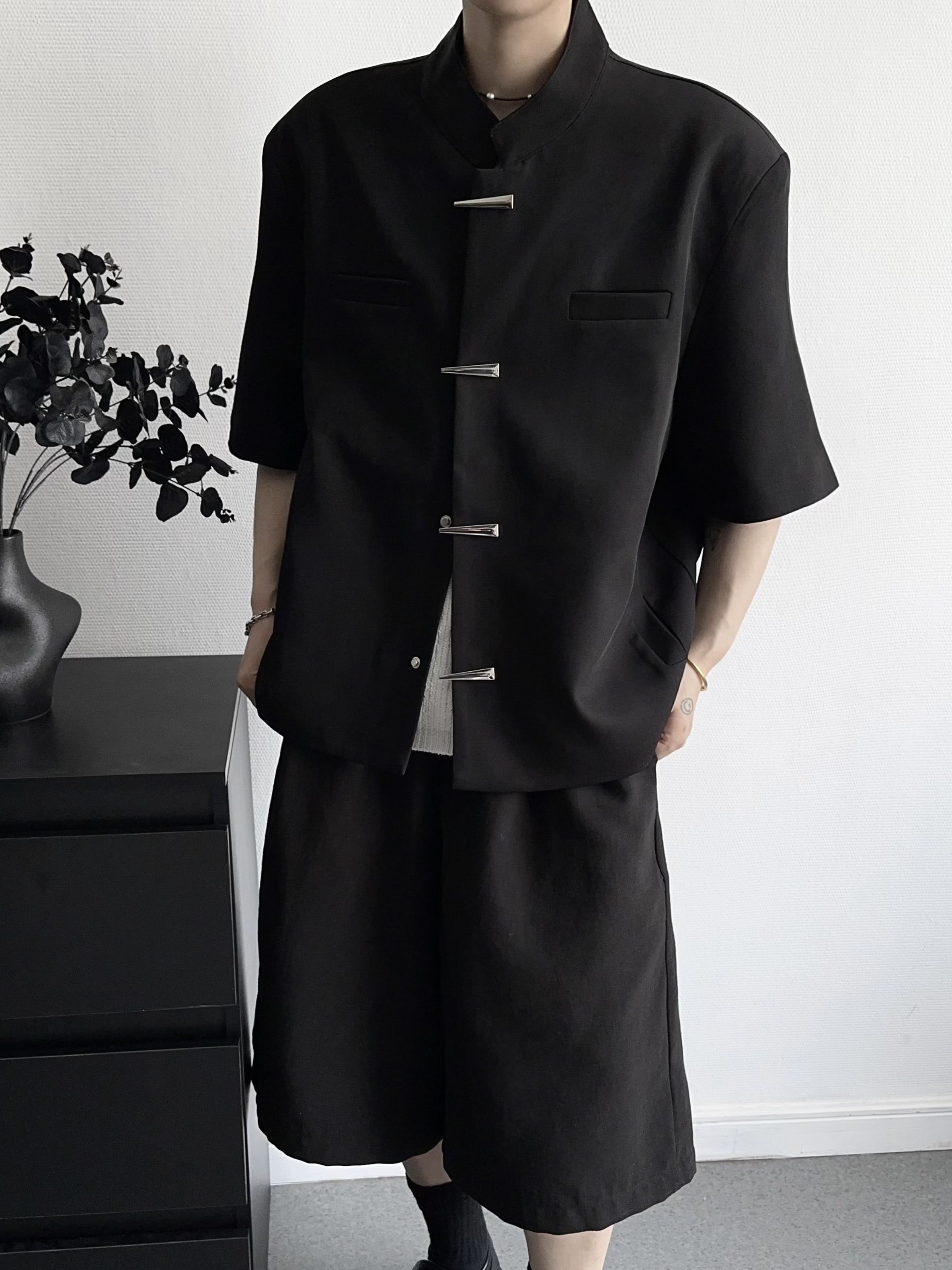 Stand Neck Shoulder-Pad Chinese Style Jacket WN19370