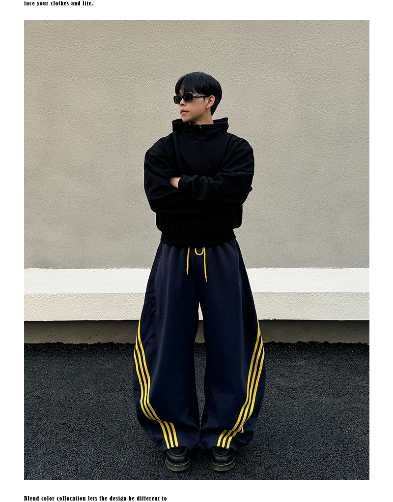 Color Block Stripe Wide Leg Sweat Pants WN19593