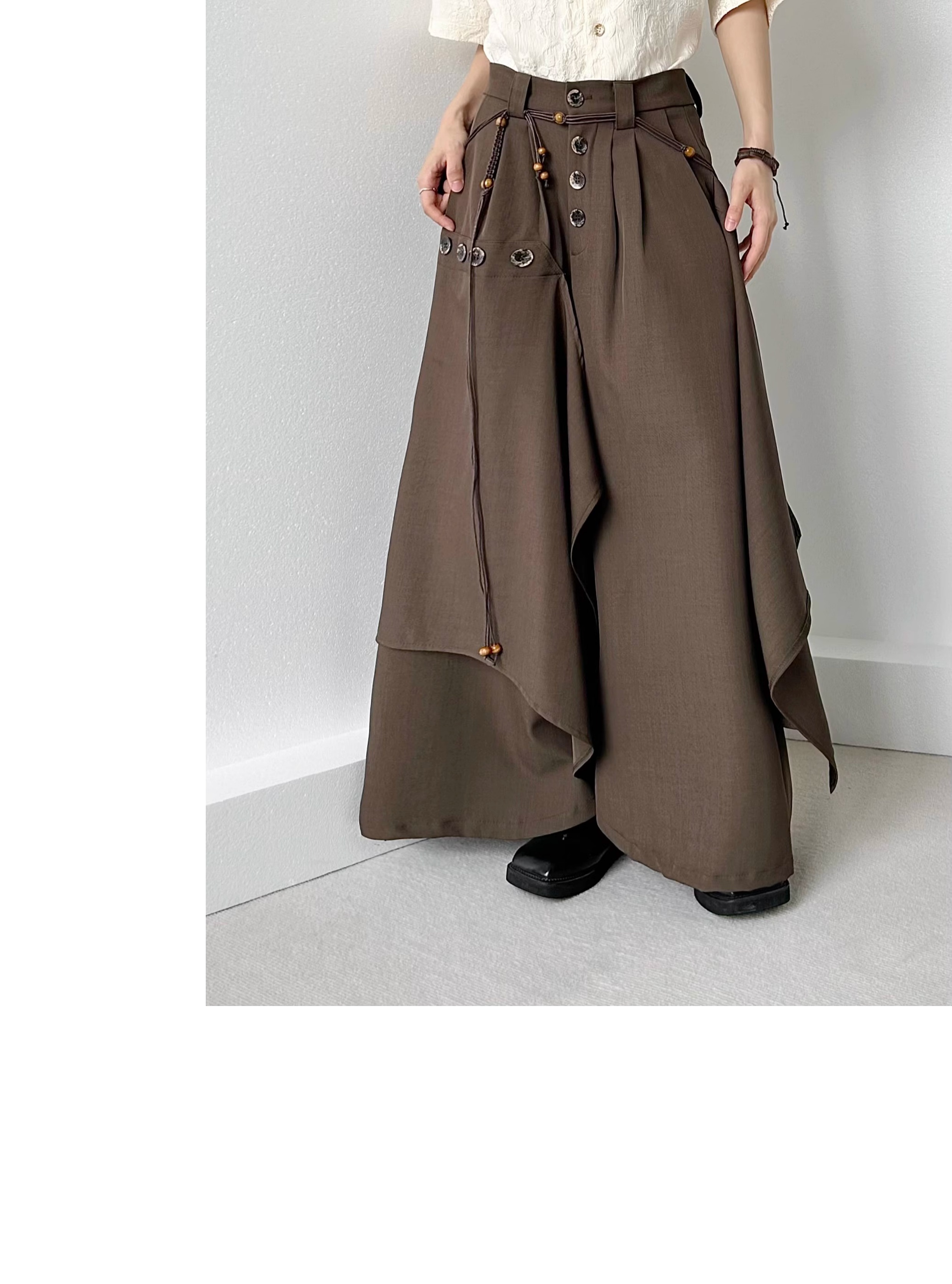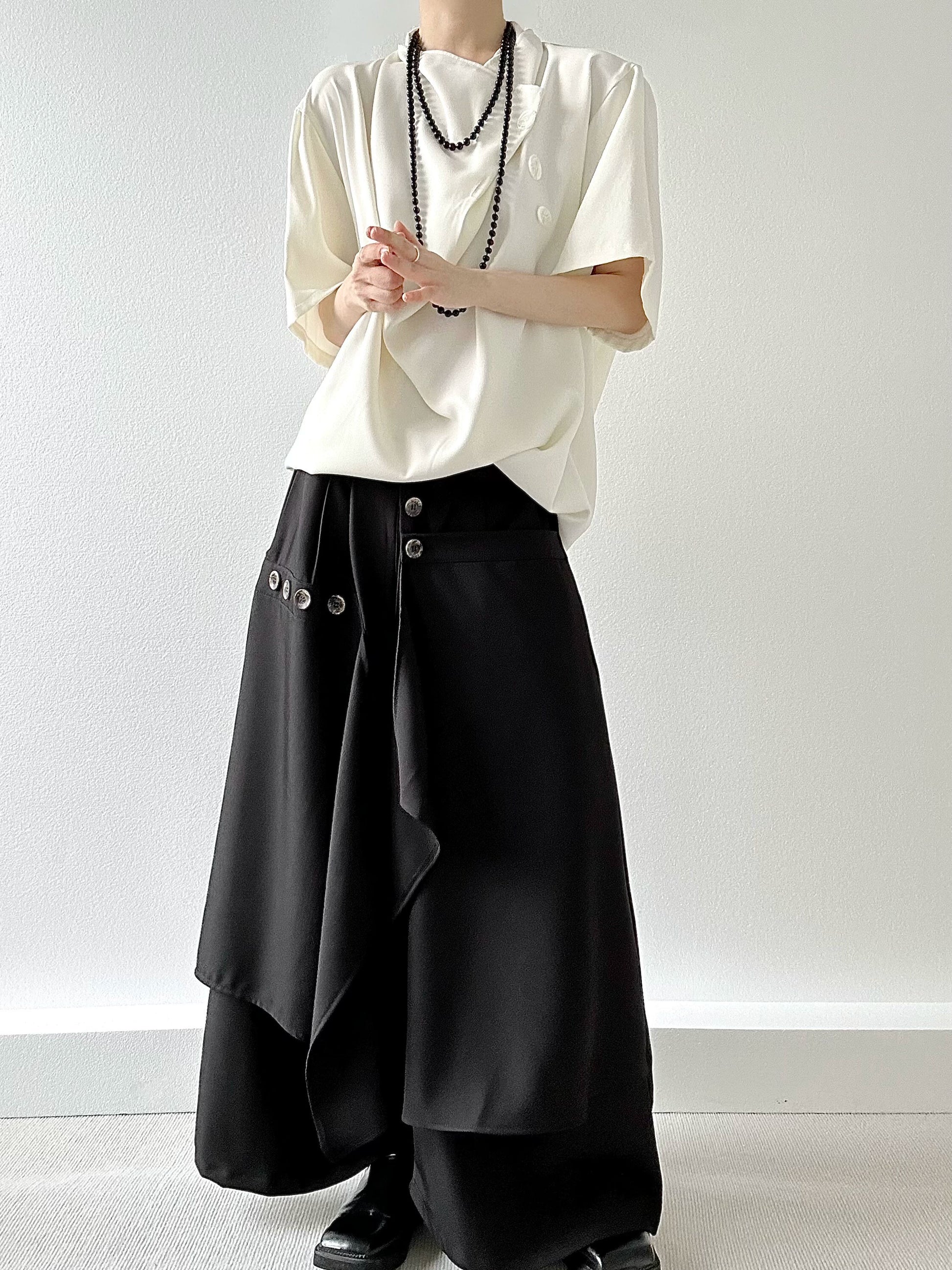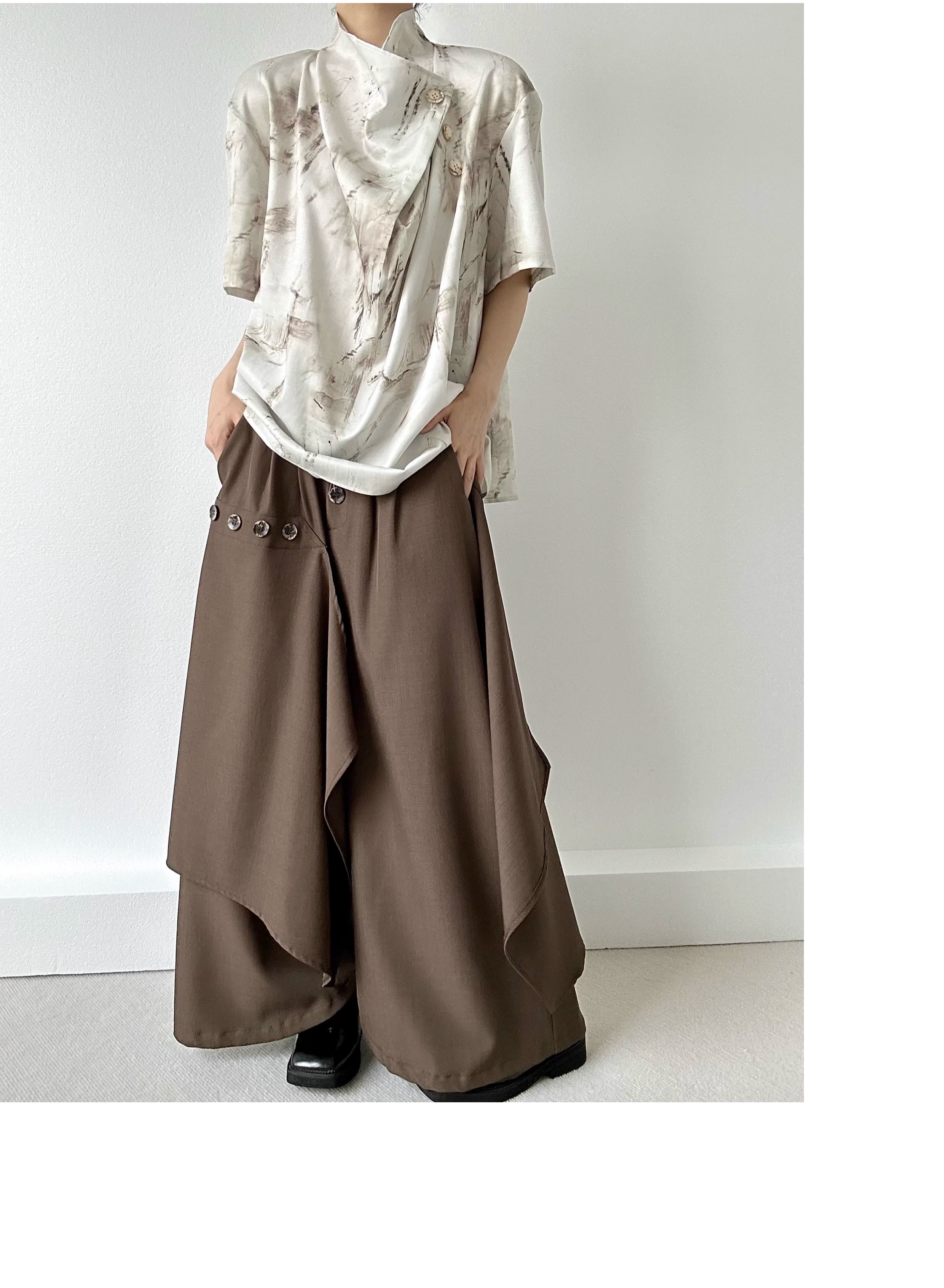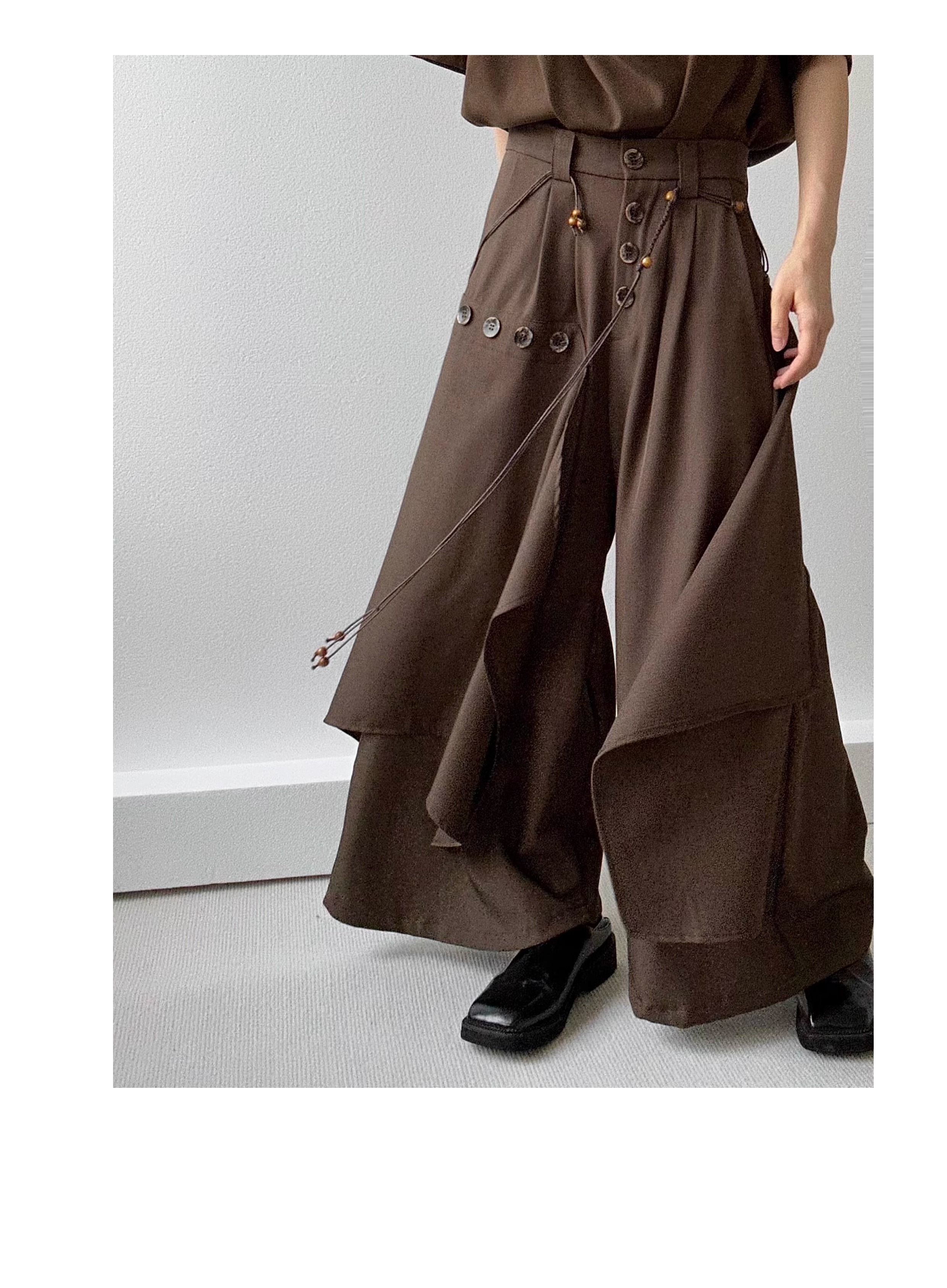 Button Design Drape Wide Leg Trousers WN19629