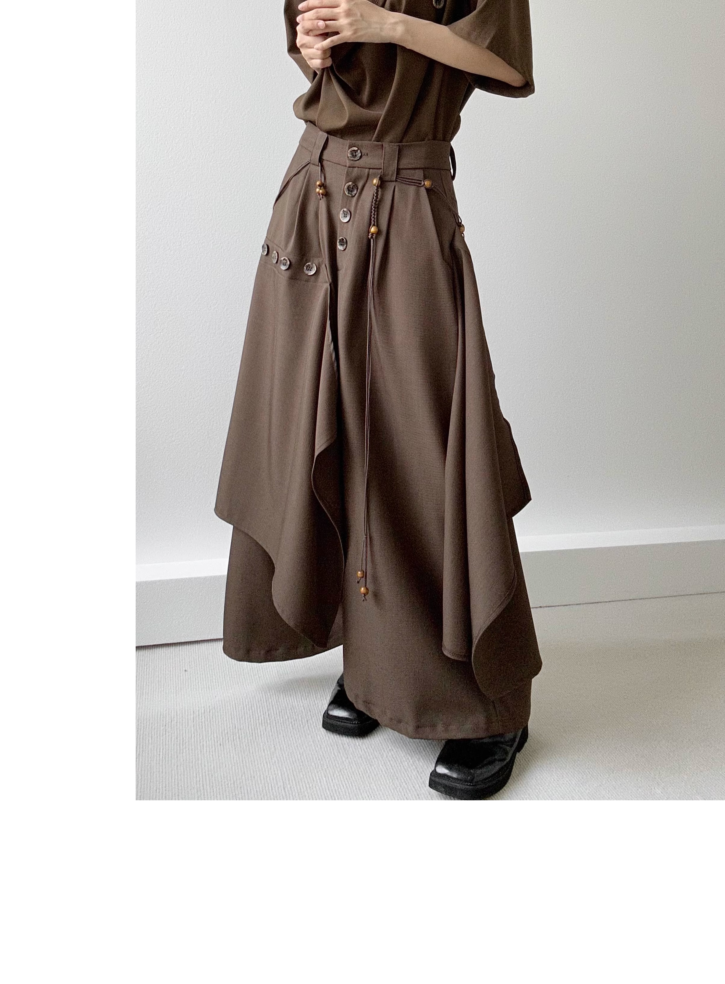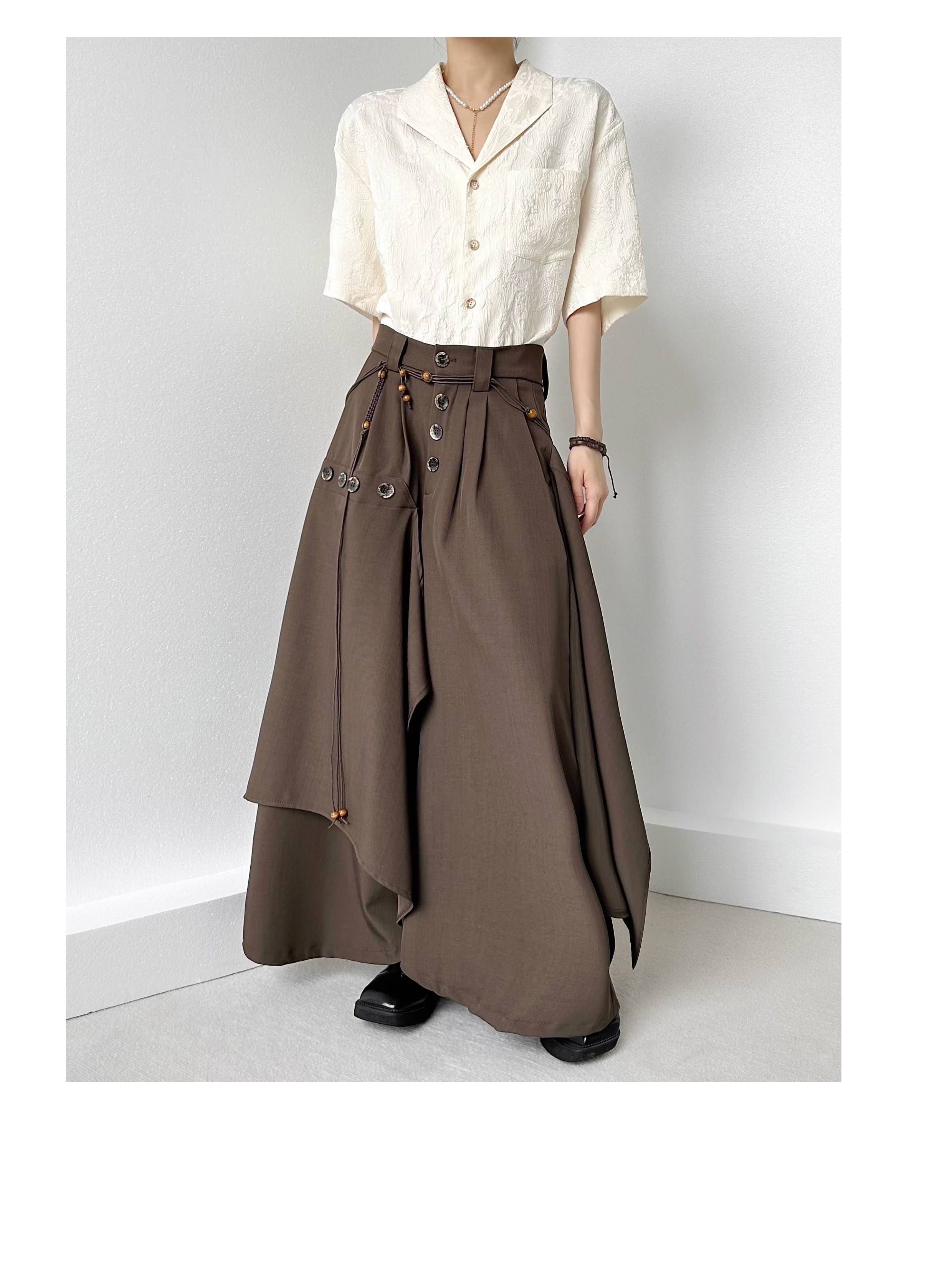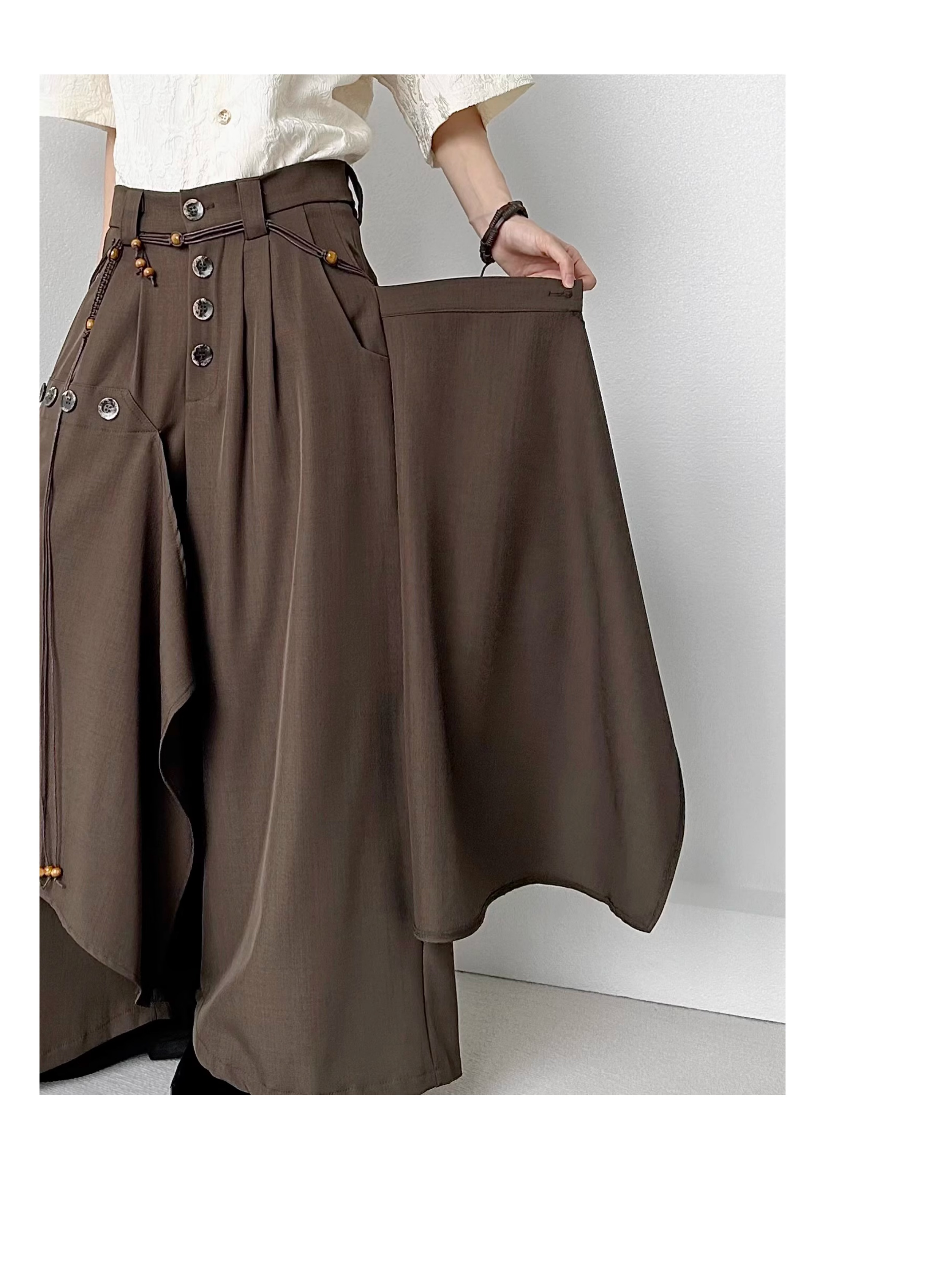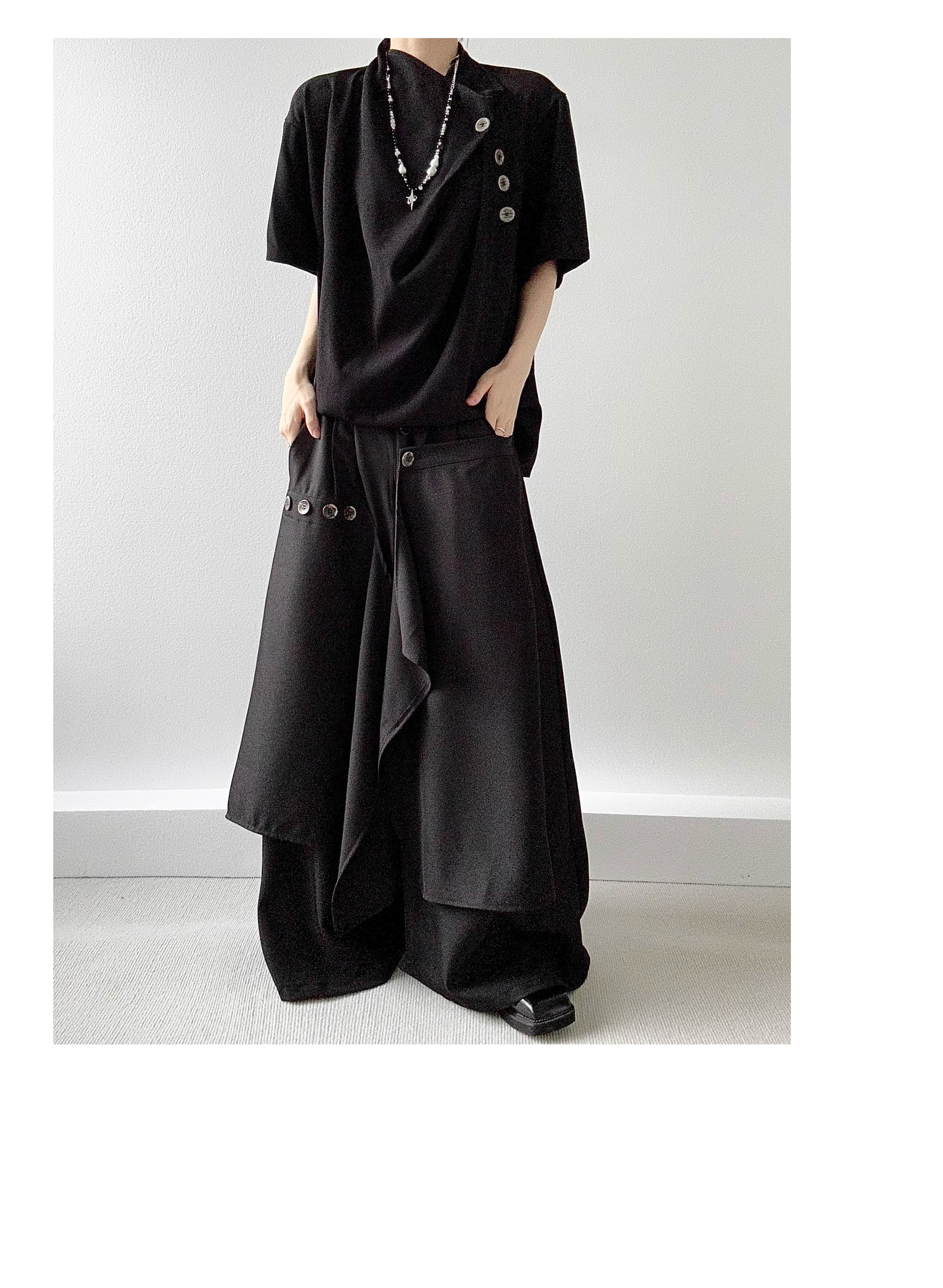 Button Design Drape Wide Leg Trousers WN19629
