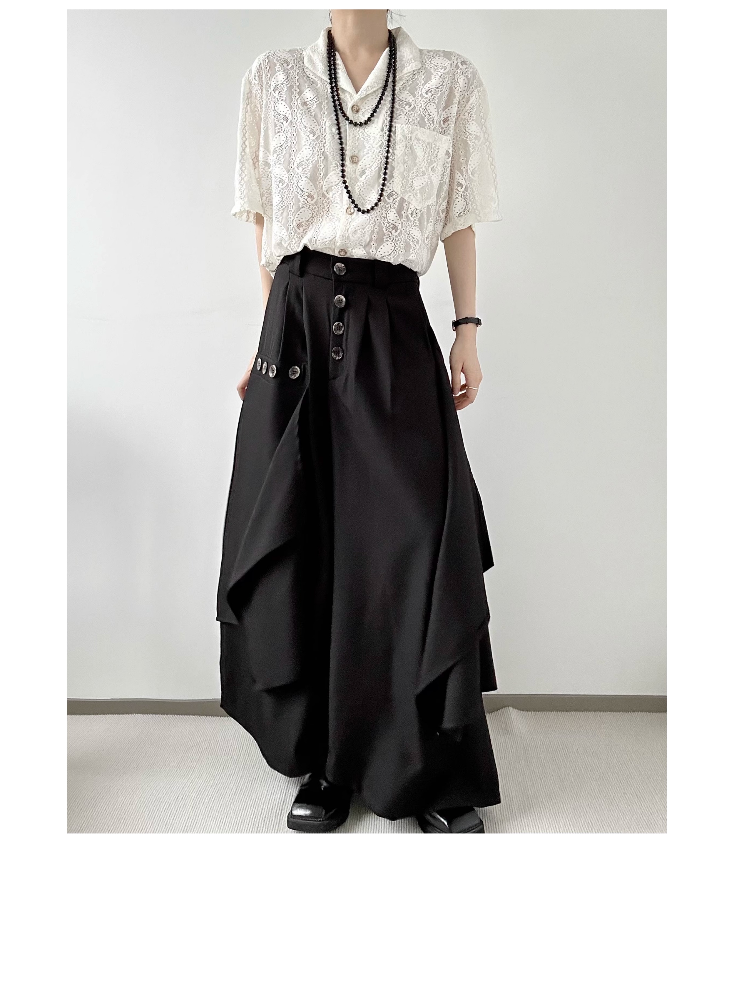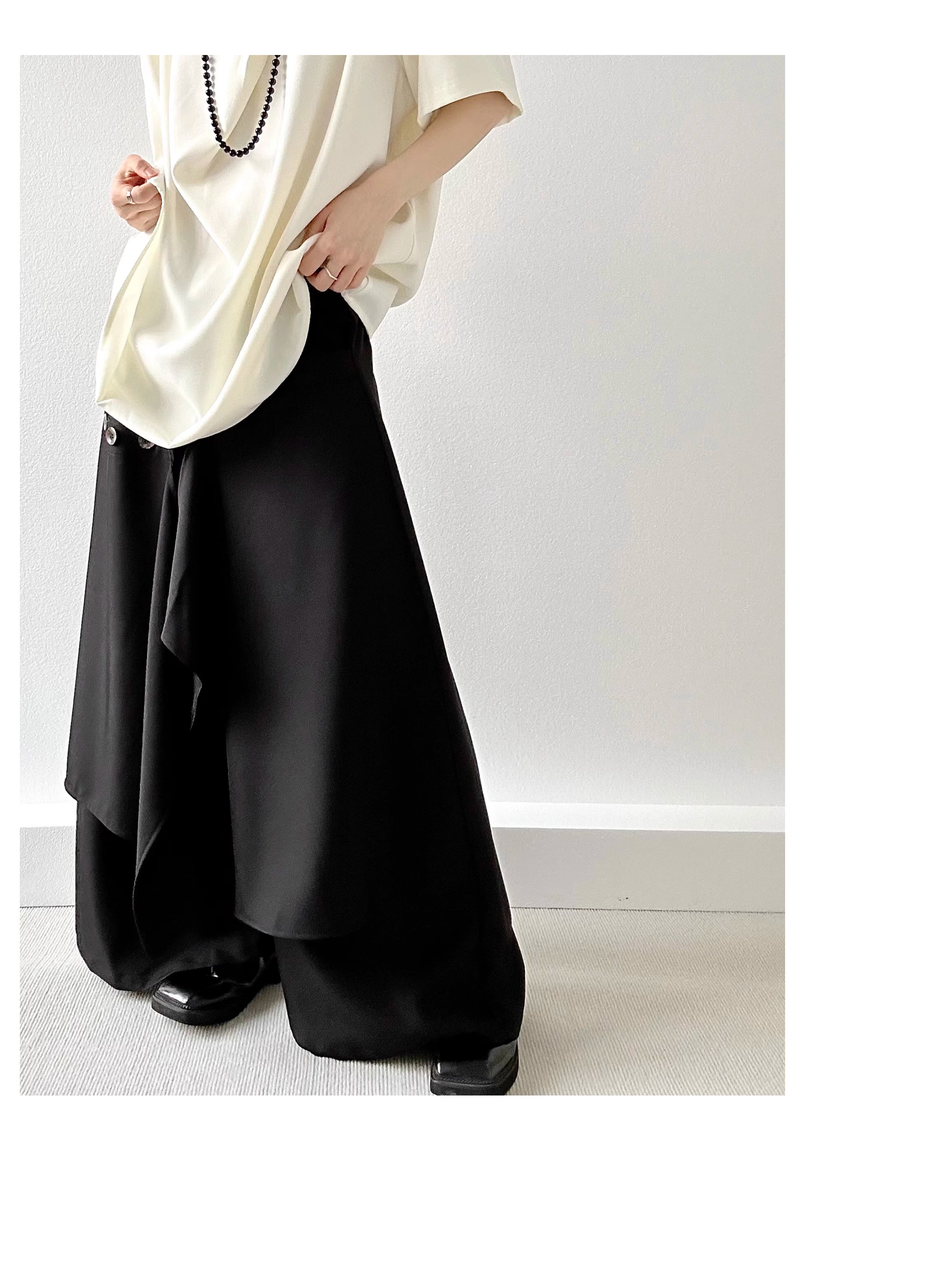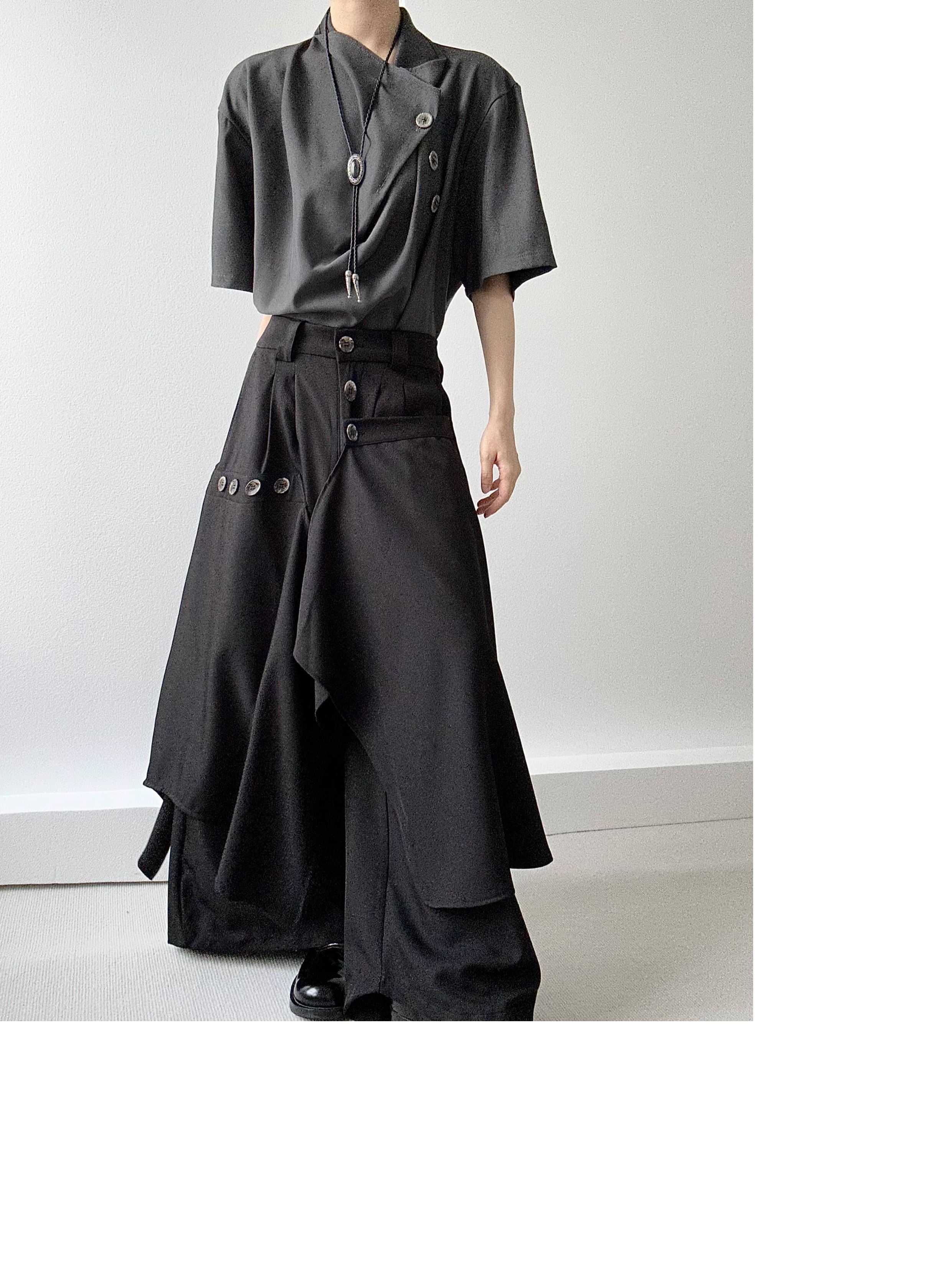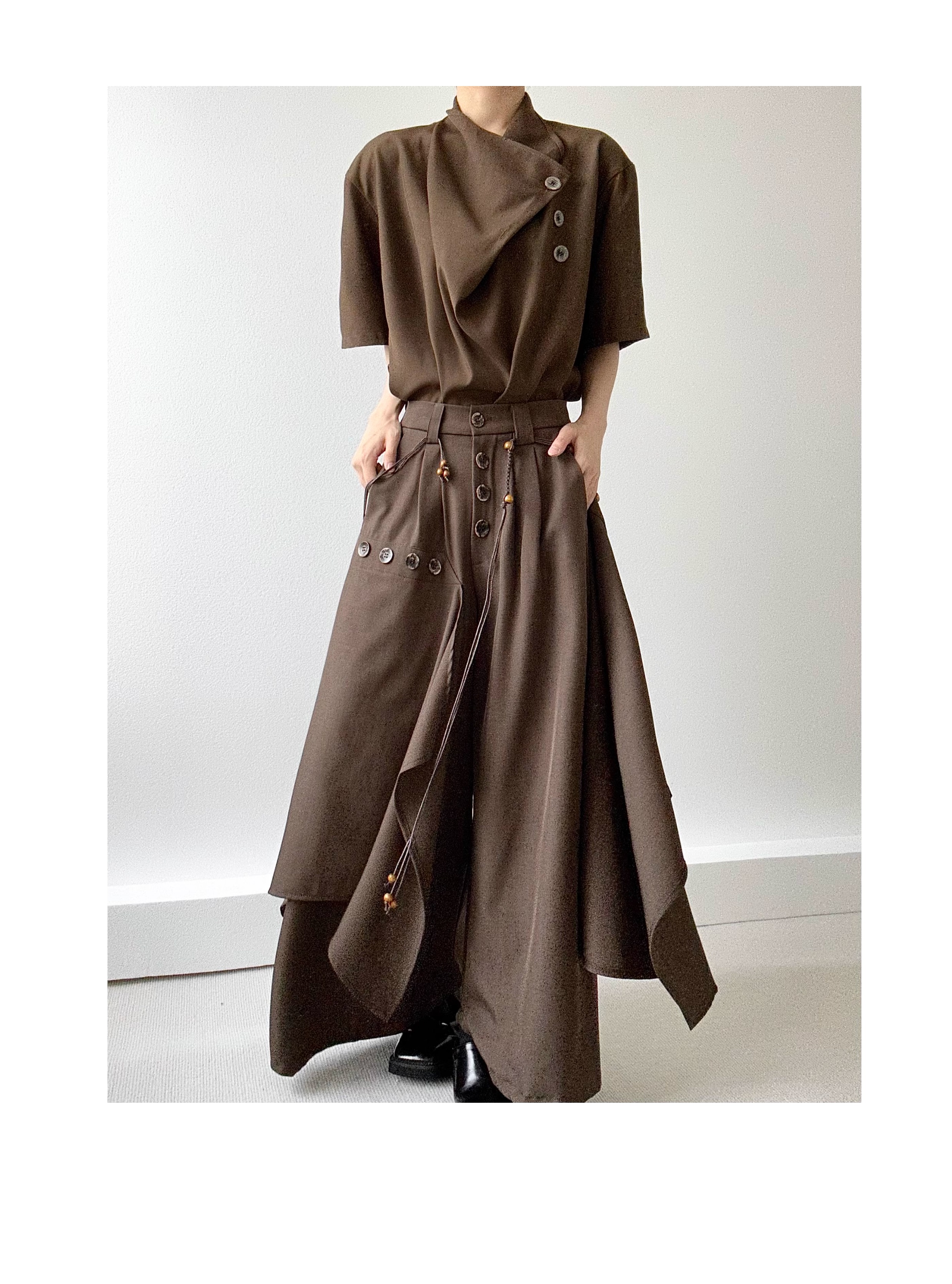 Button Design Drape Wide Leg Trousers WN19629