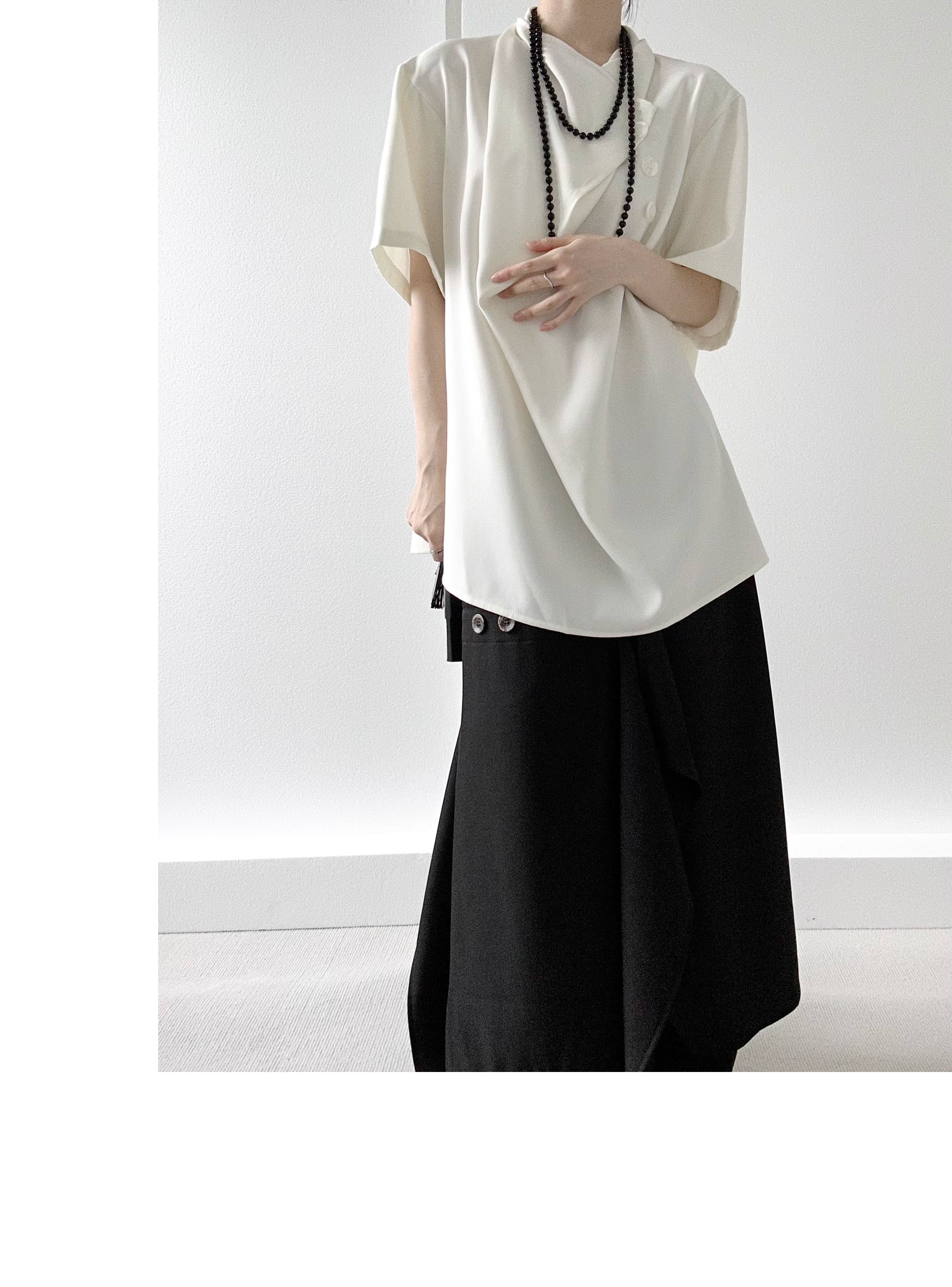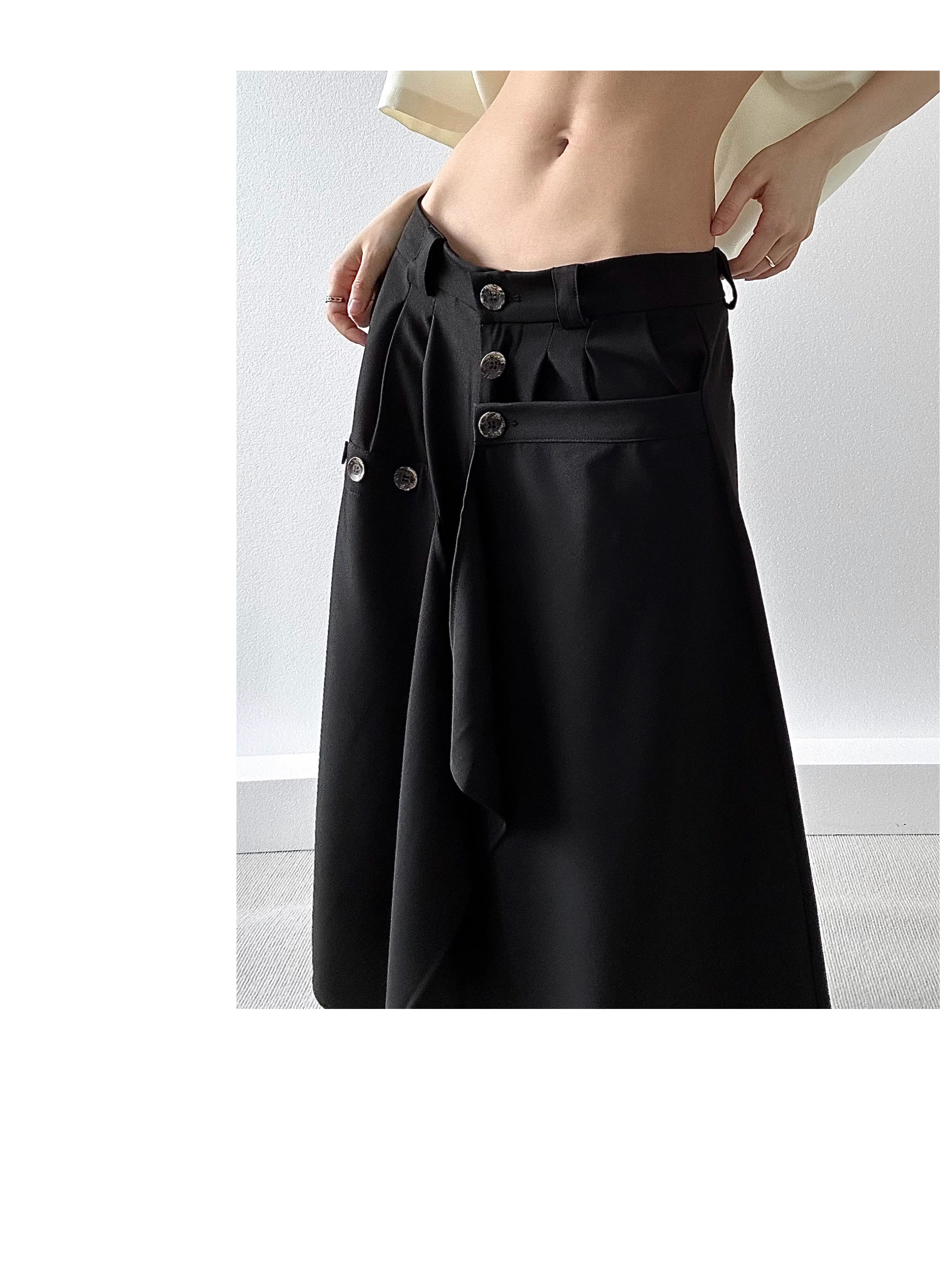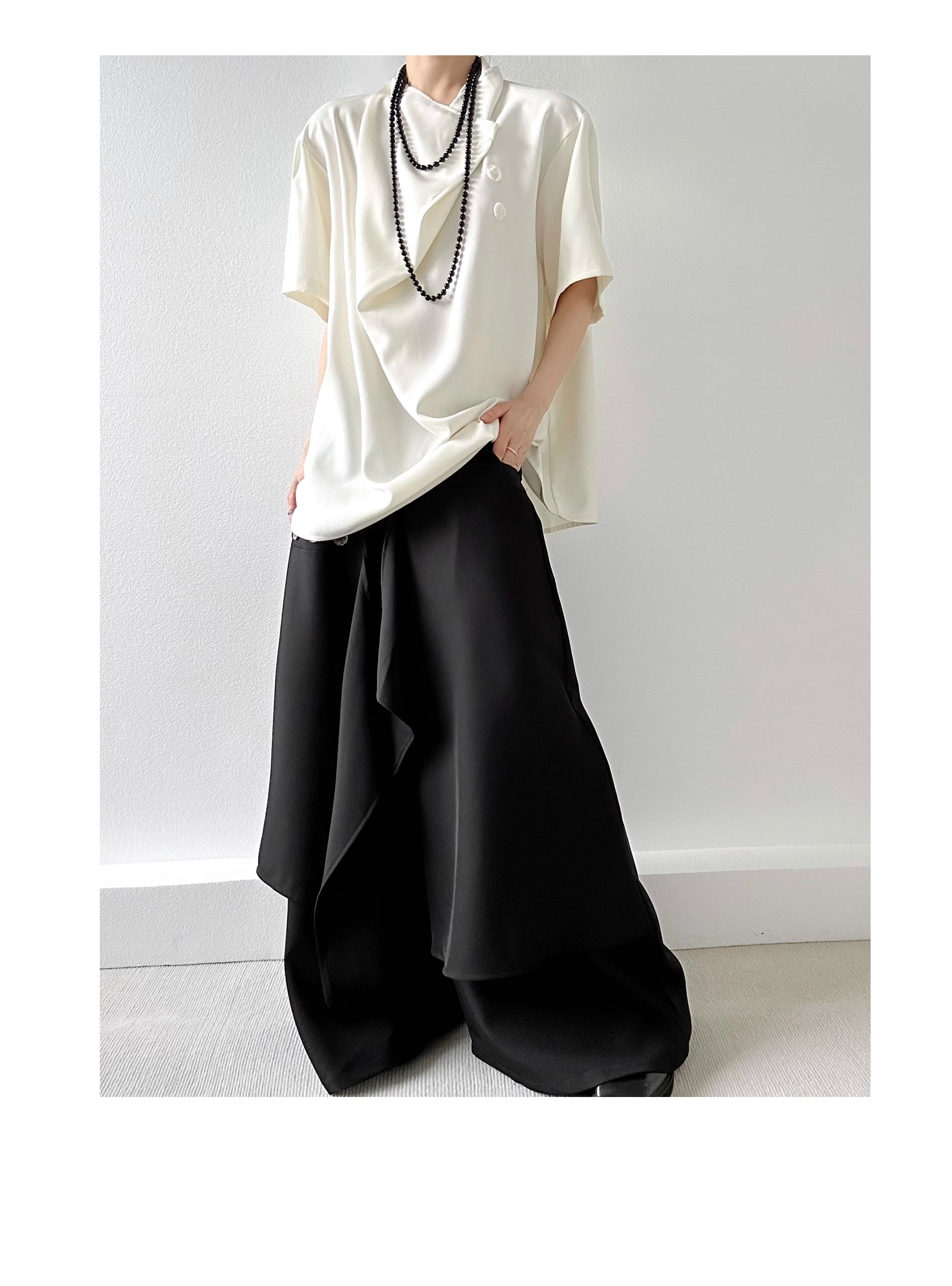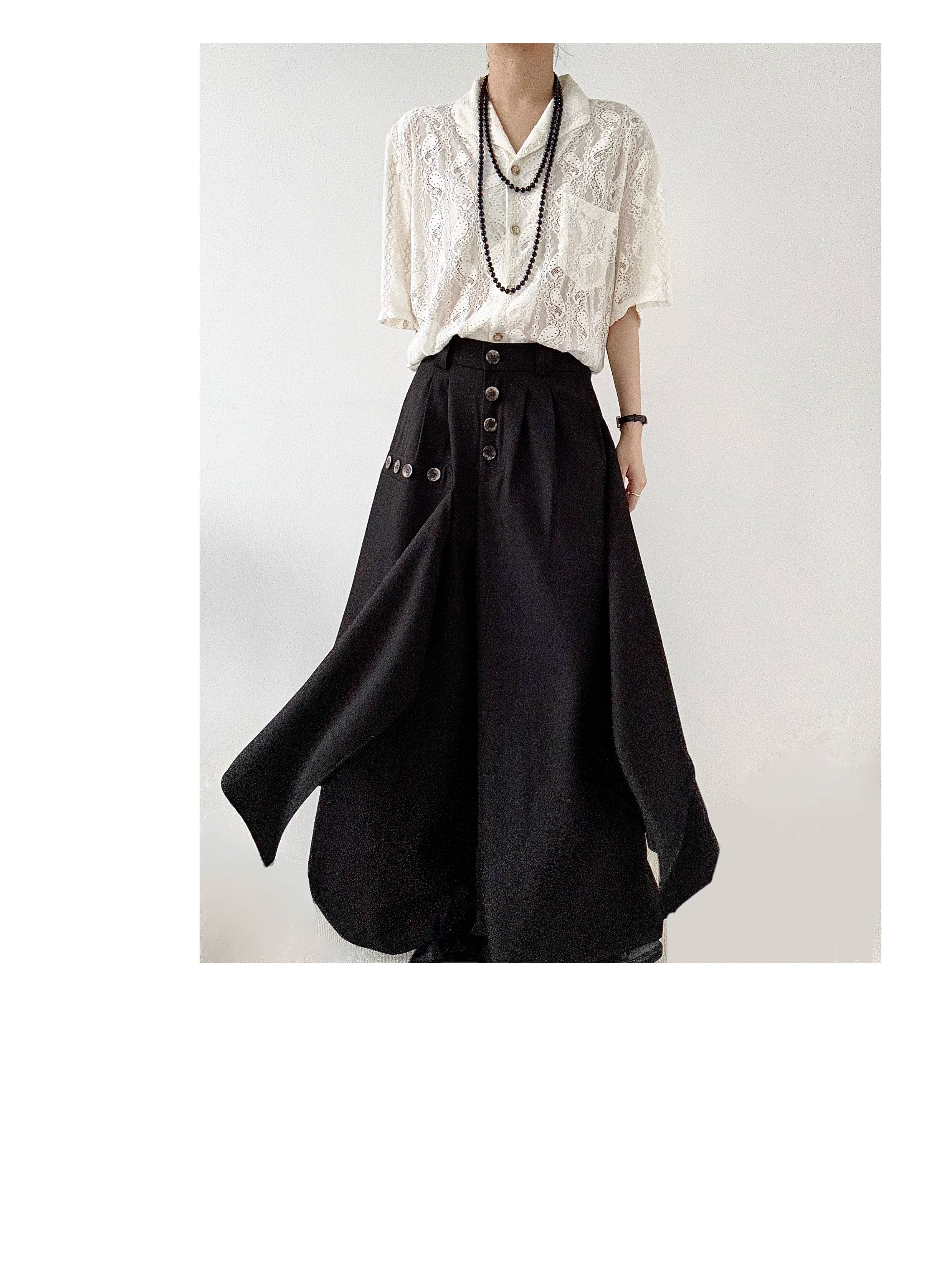 Button Design Drape Wide Leg Trousers WN19629