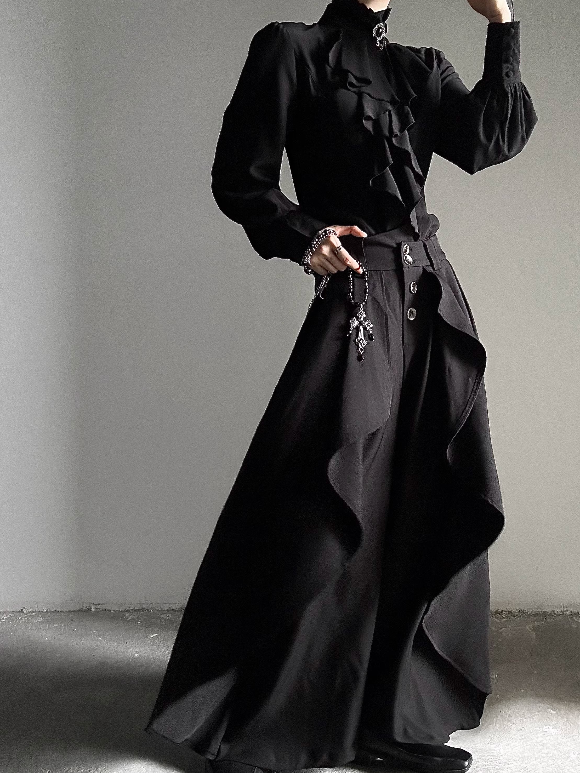 Asymmetric Design Flowy Wide Leg Trousers WN19644