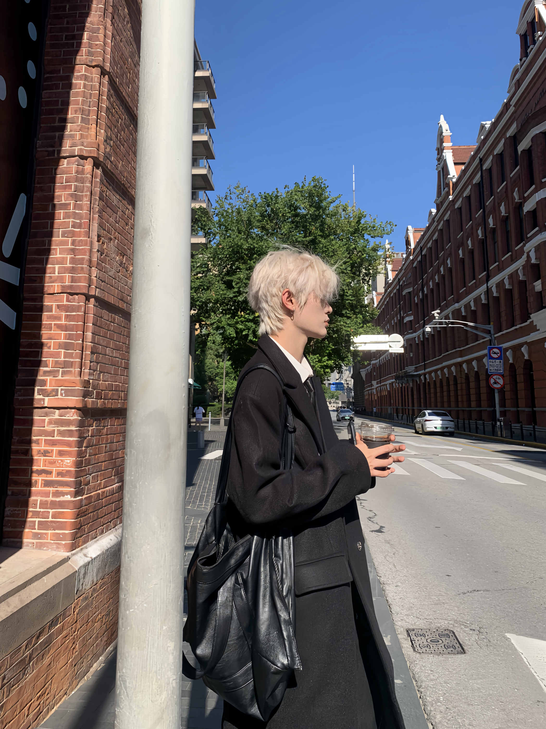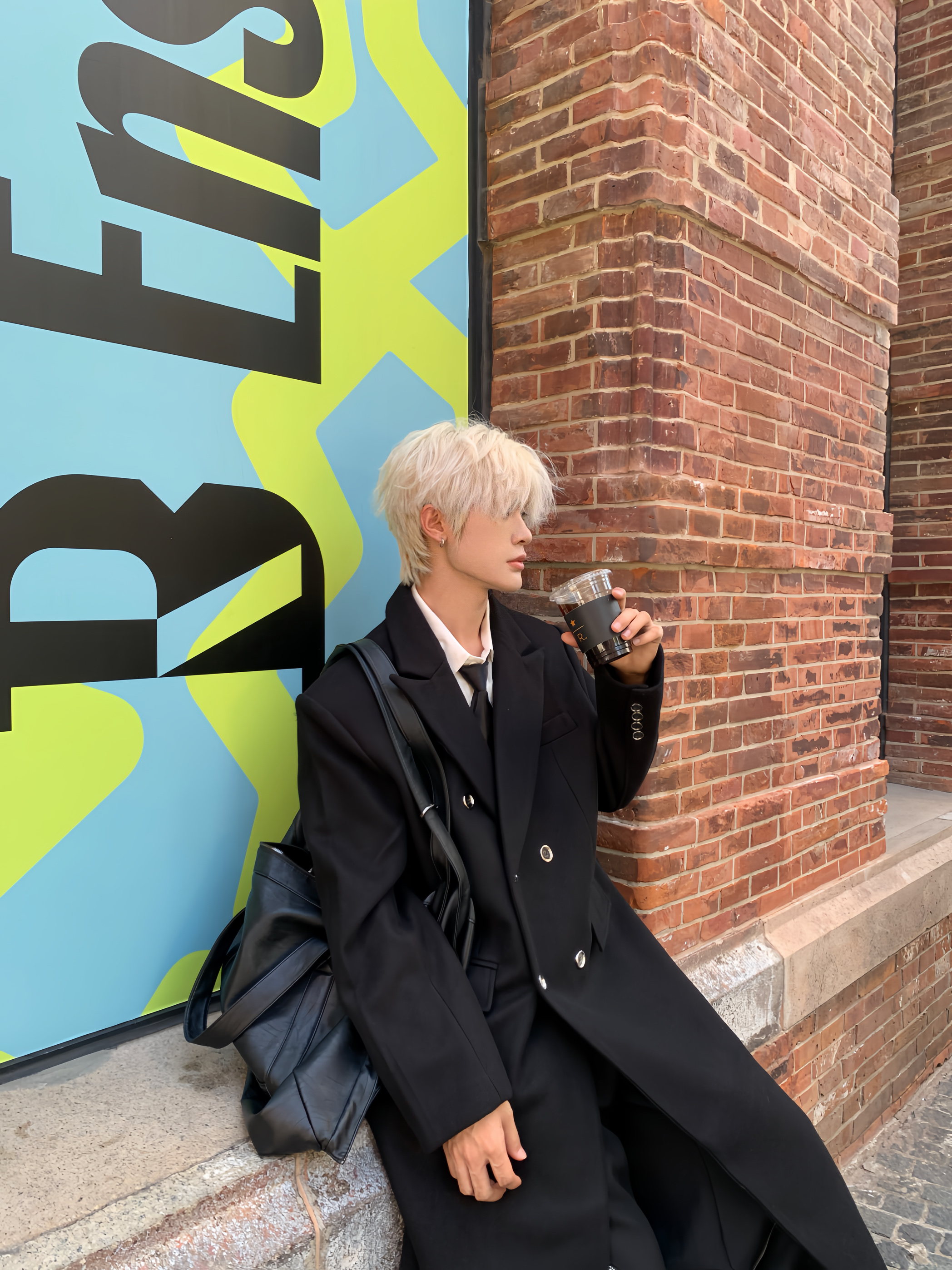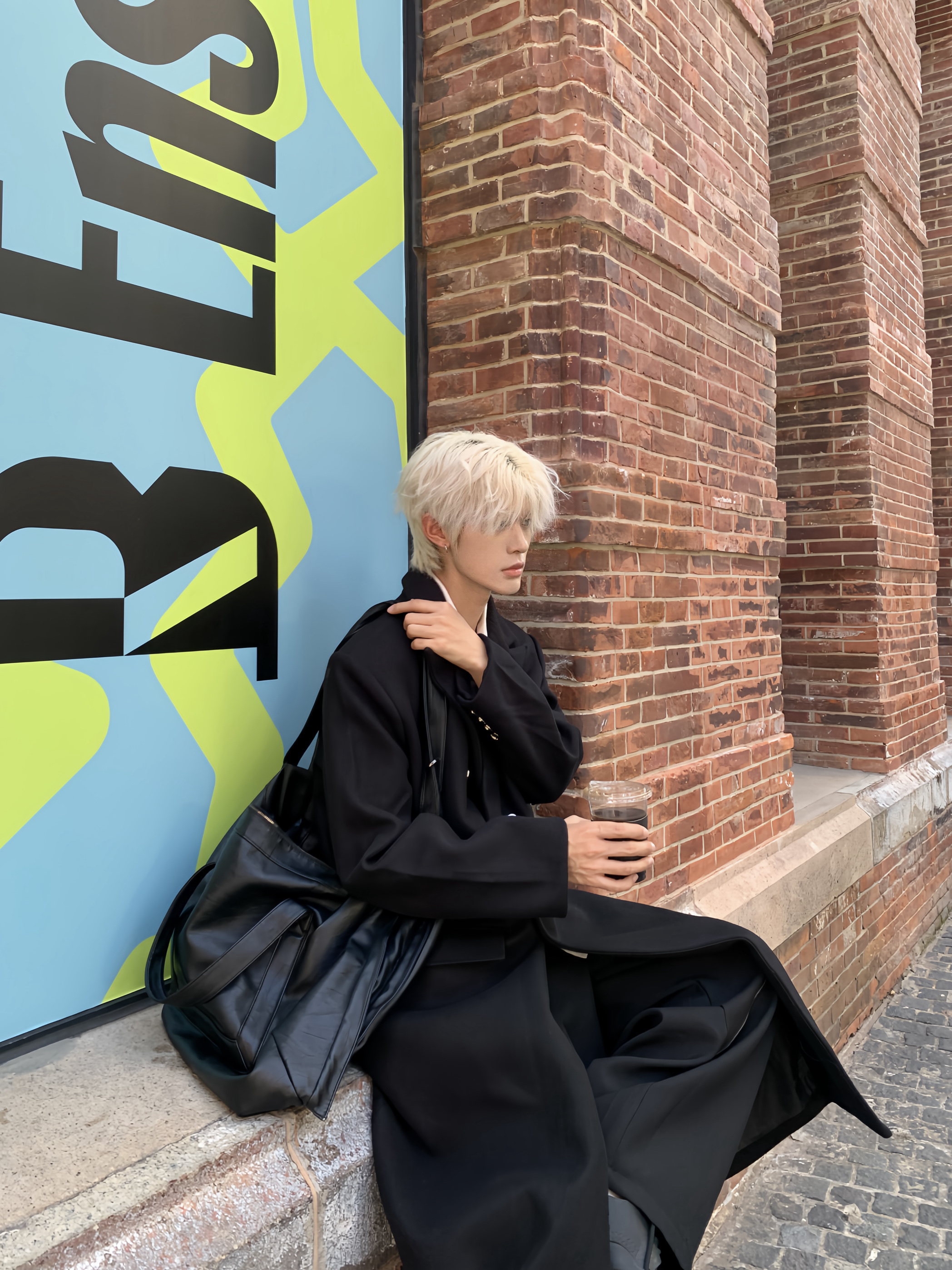 Front-Buttoned Shoulder-Pad Oversize Coat WN19804