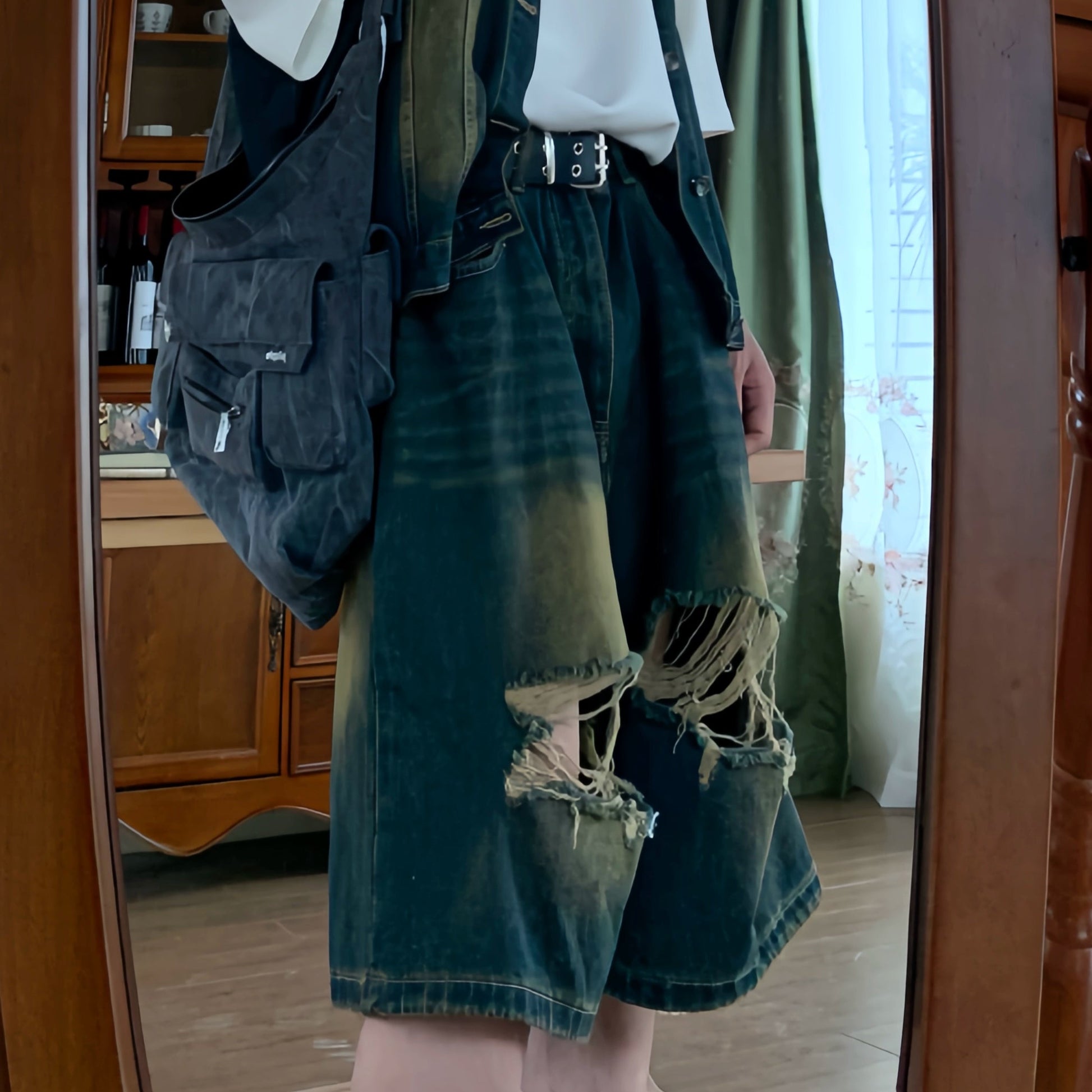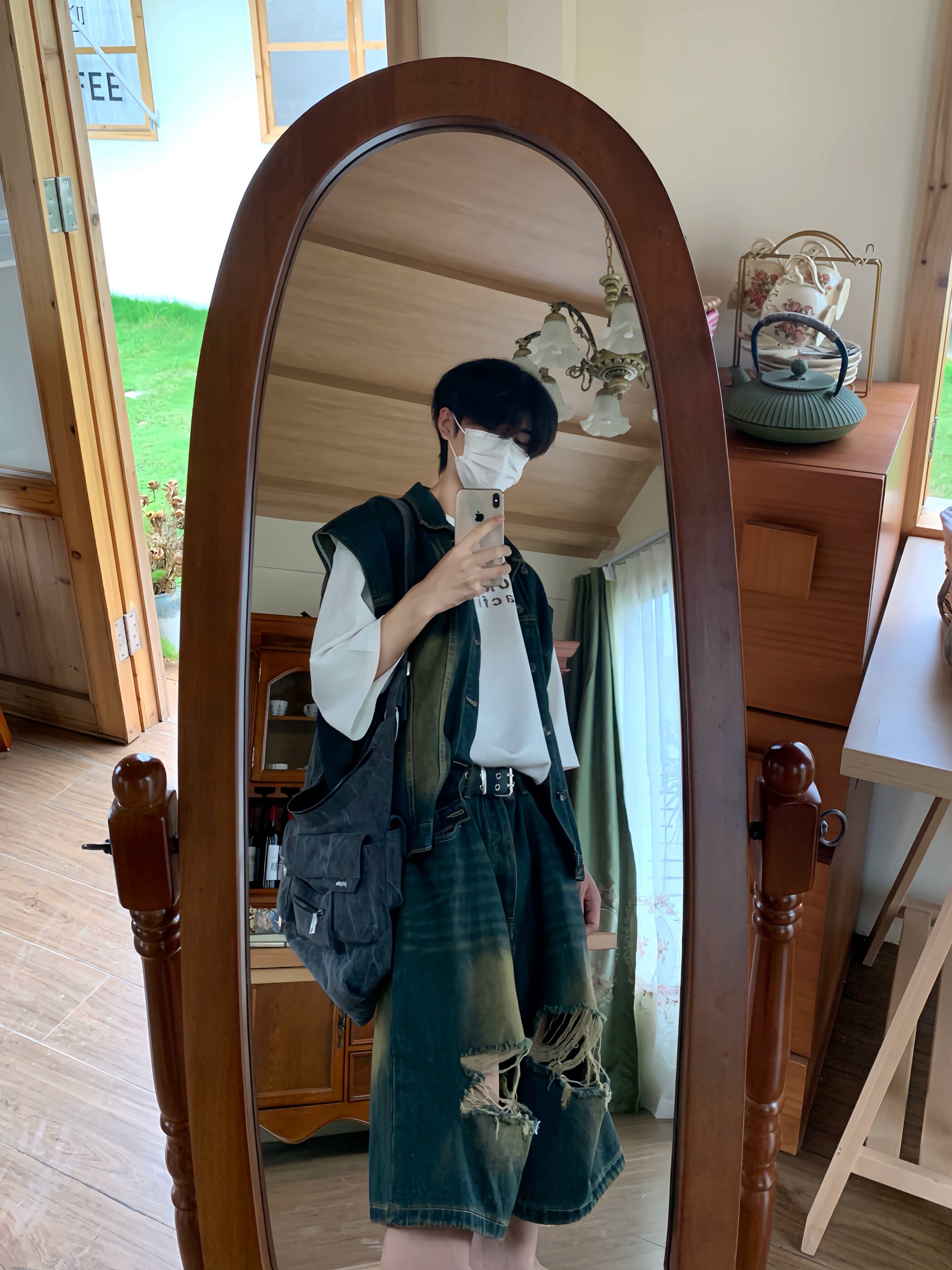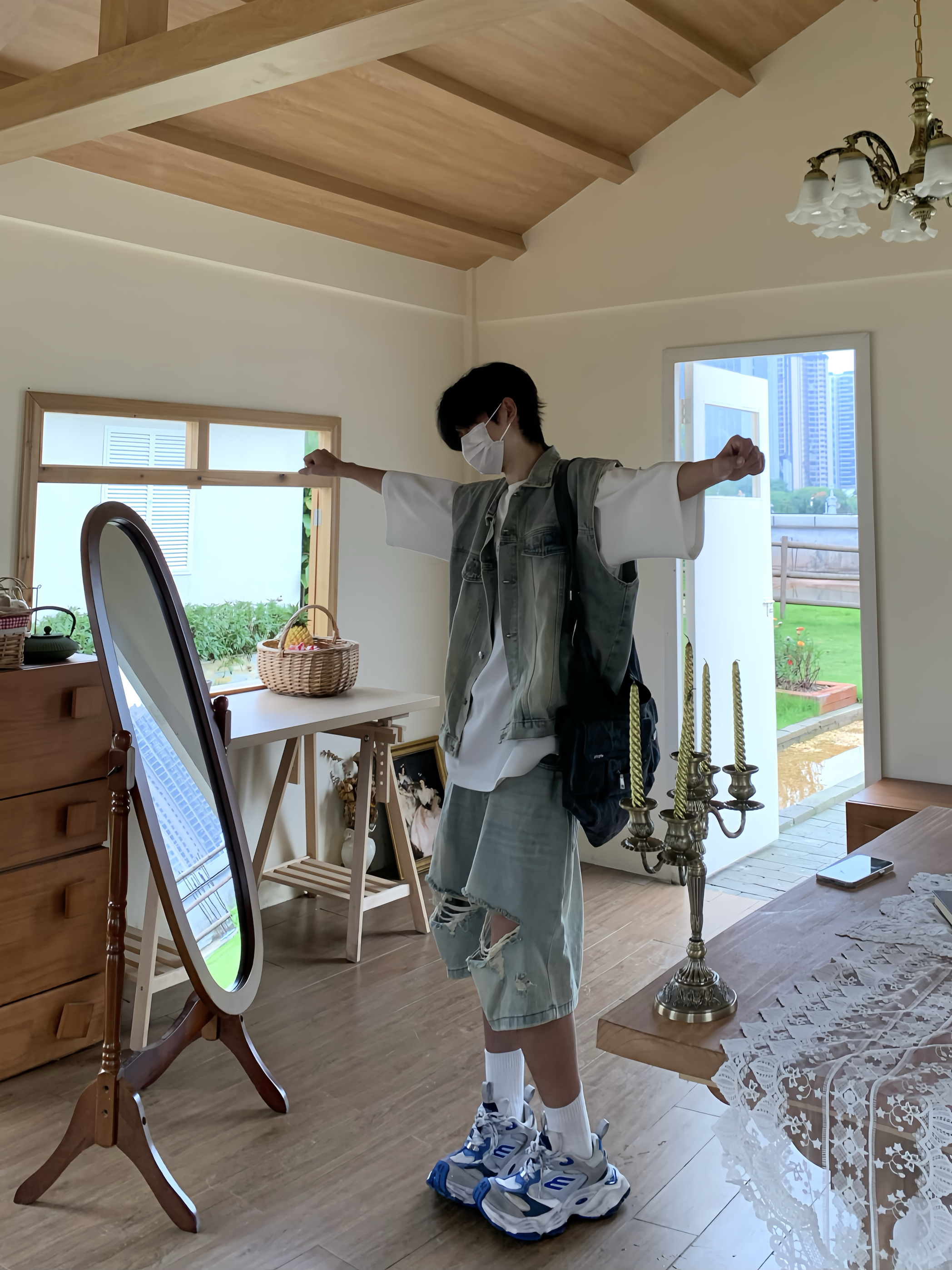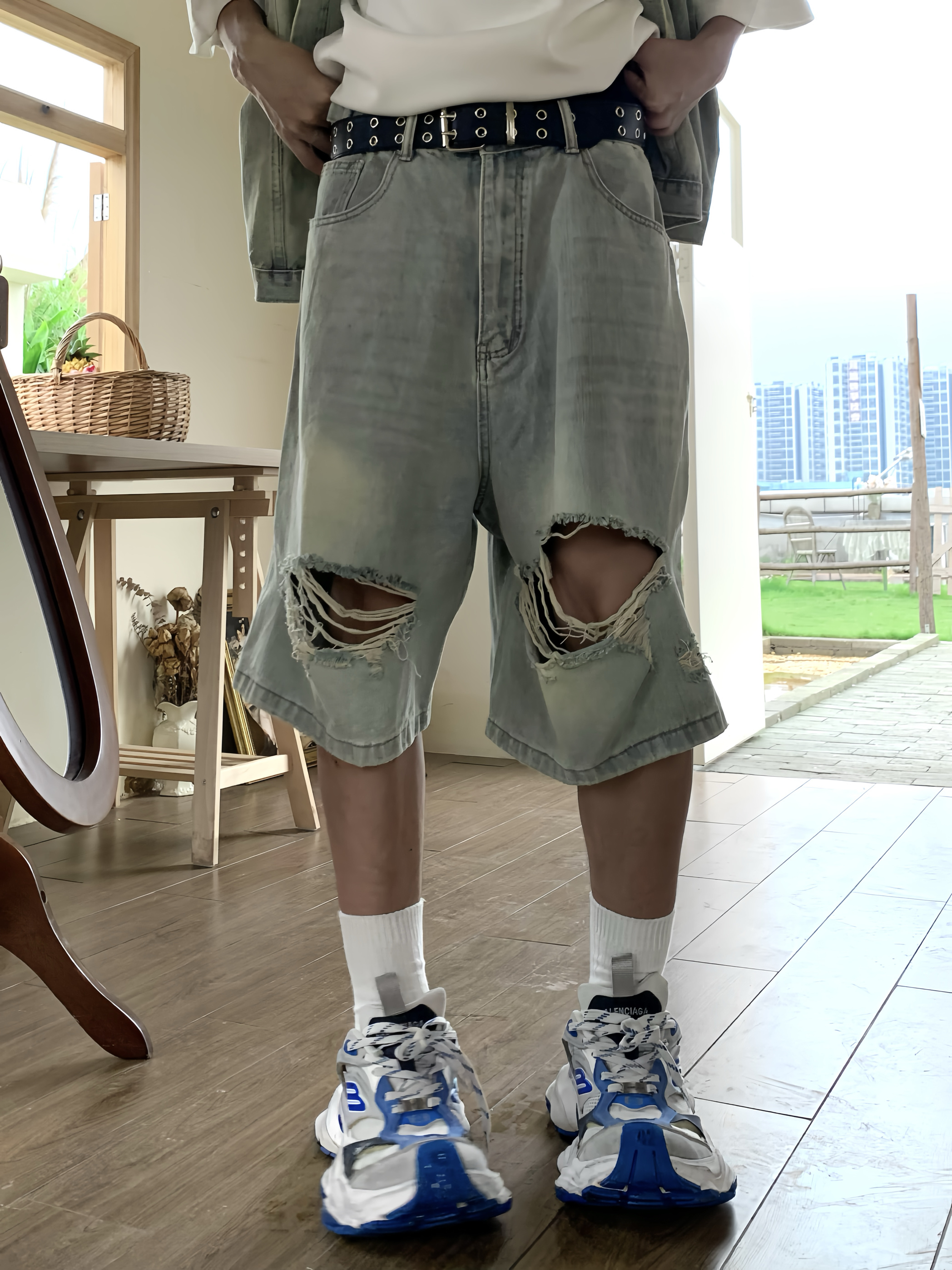 Washed Denim Vest & Damage Denim Half Jeans Setup WN19819
