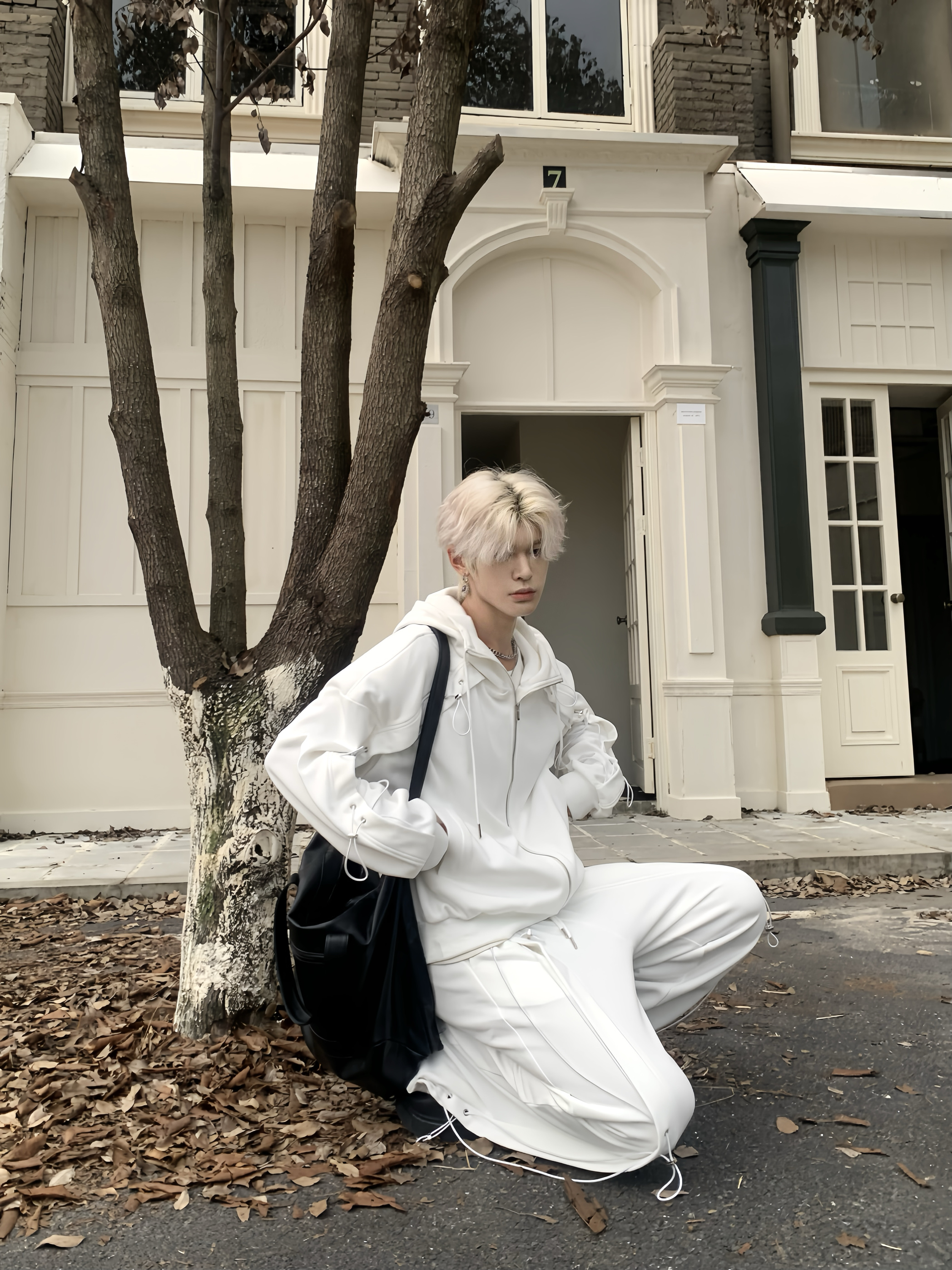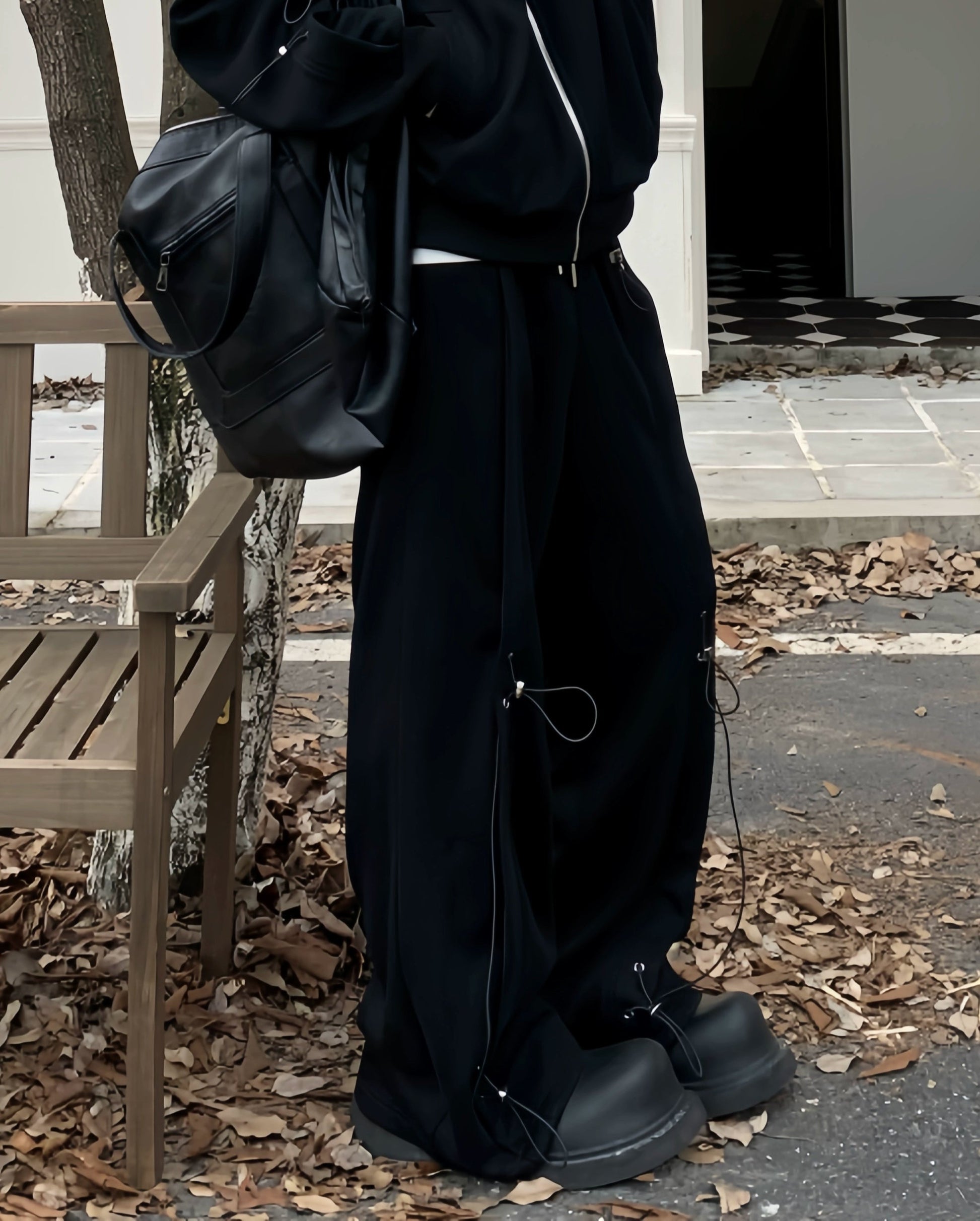 Drawstring Oversize Zipper Hoodie & Drawstring Wide Leg Sweatpants Setup WN19856