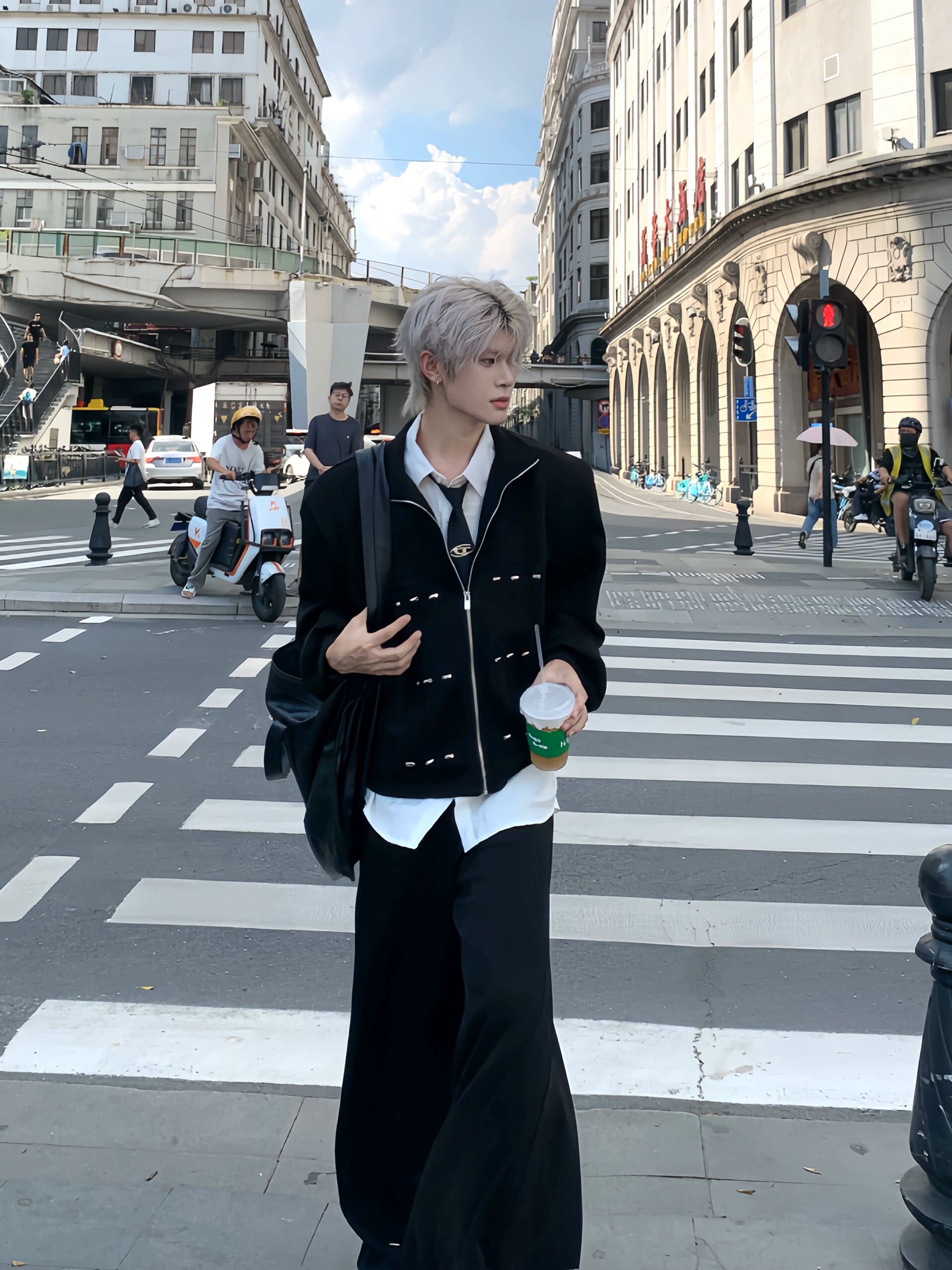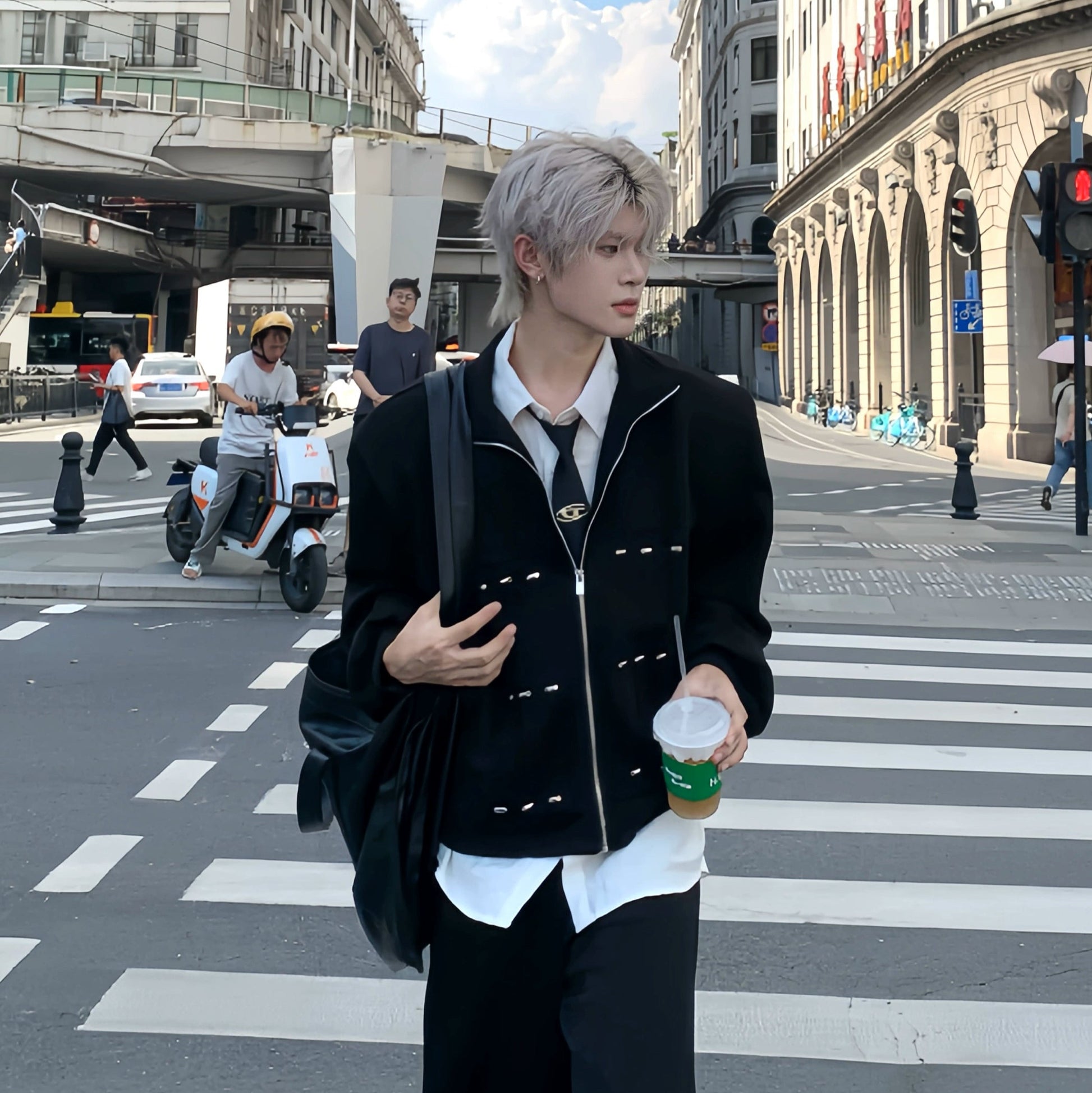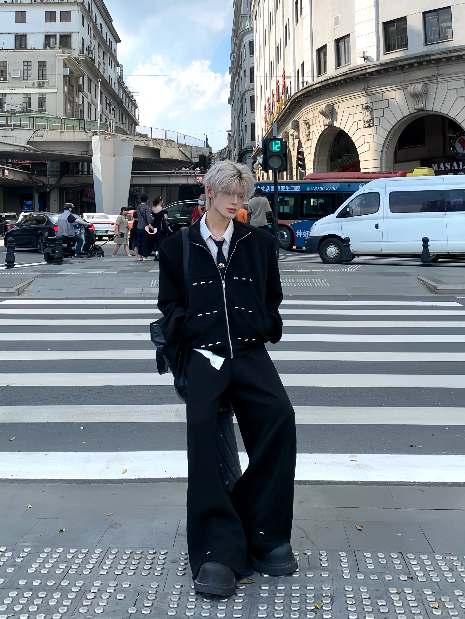 Shoulder-Pad Cropped Zipper Jacket & Wide Leg Jogger Pants Setup WN19903