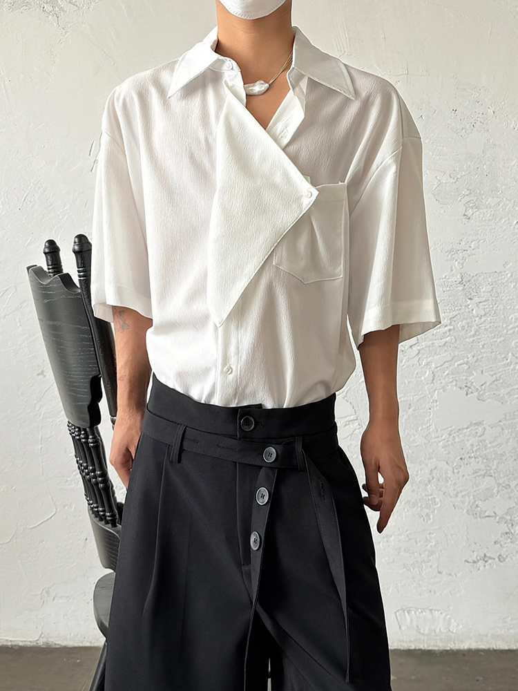 Asymmetrical Patchwork Short Sleeve Shirt WN19941