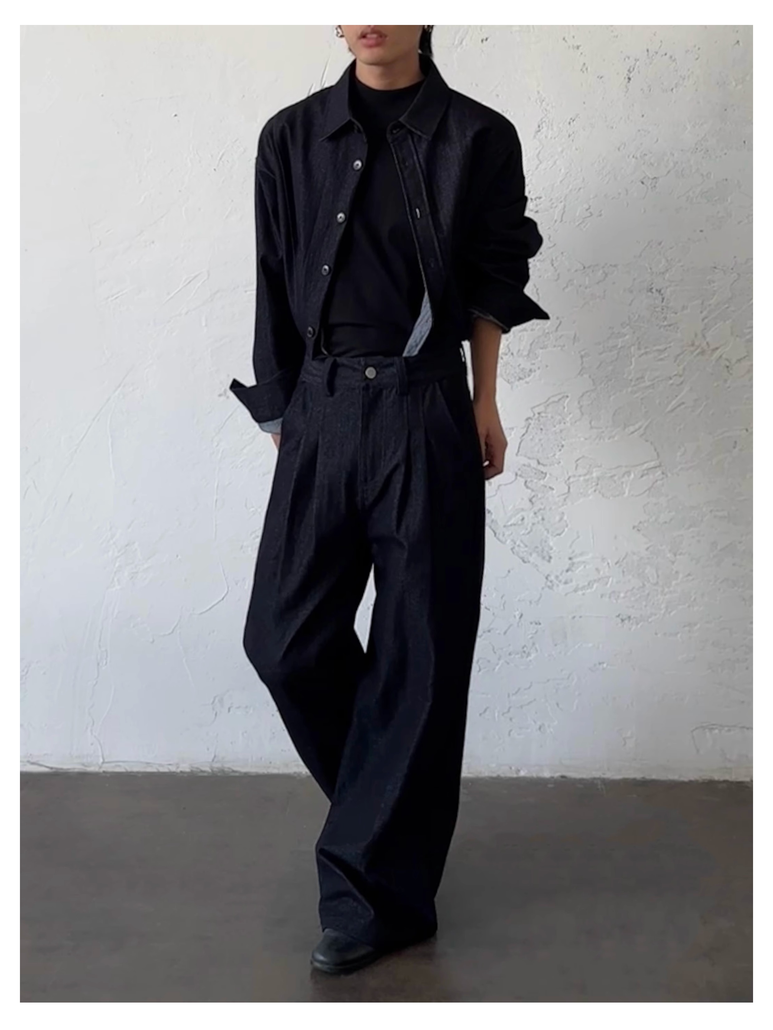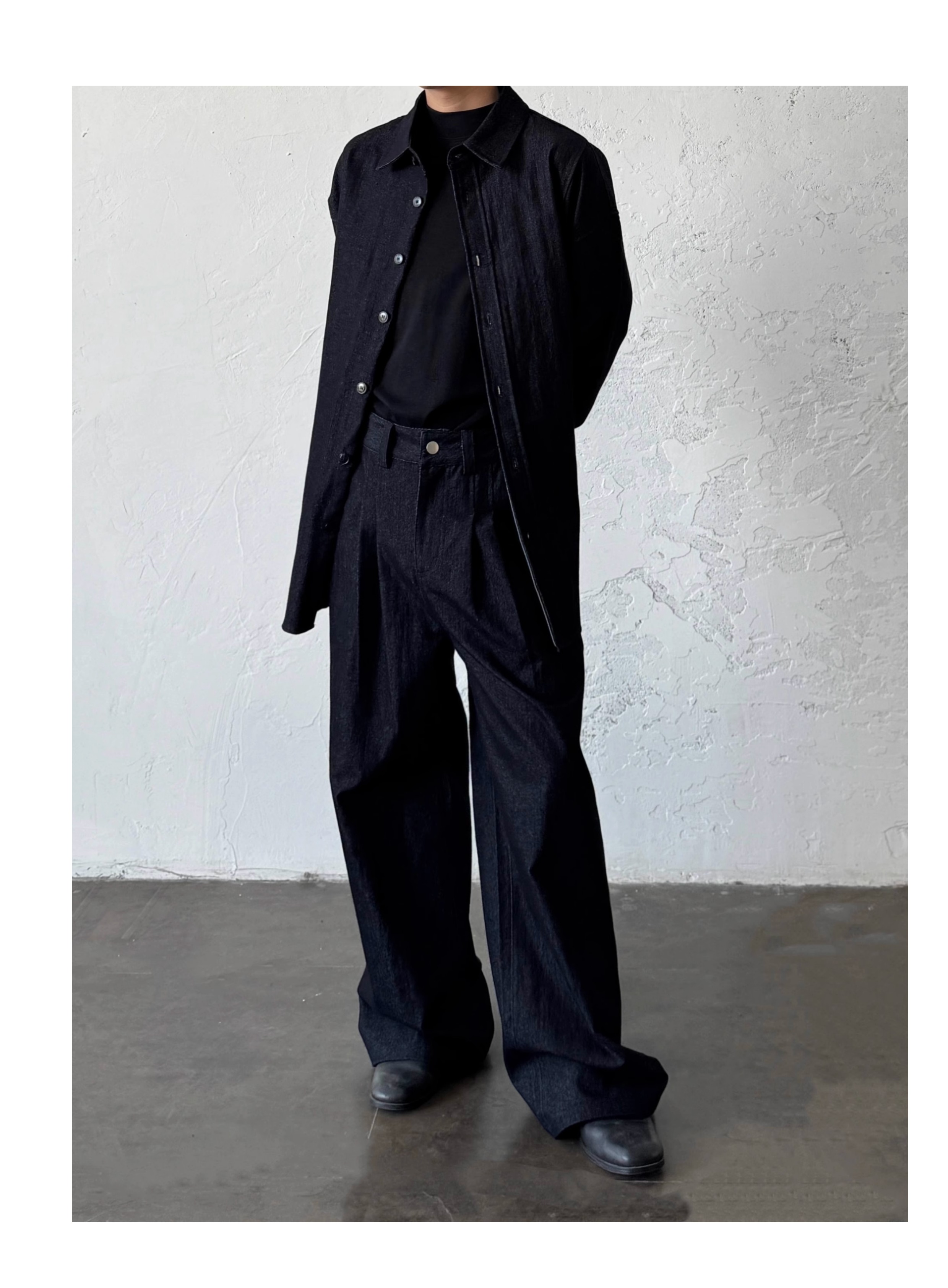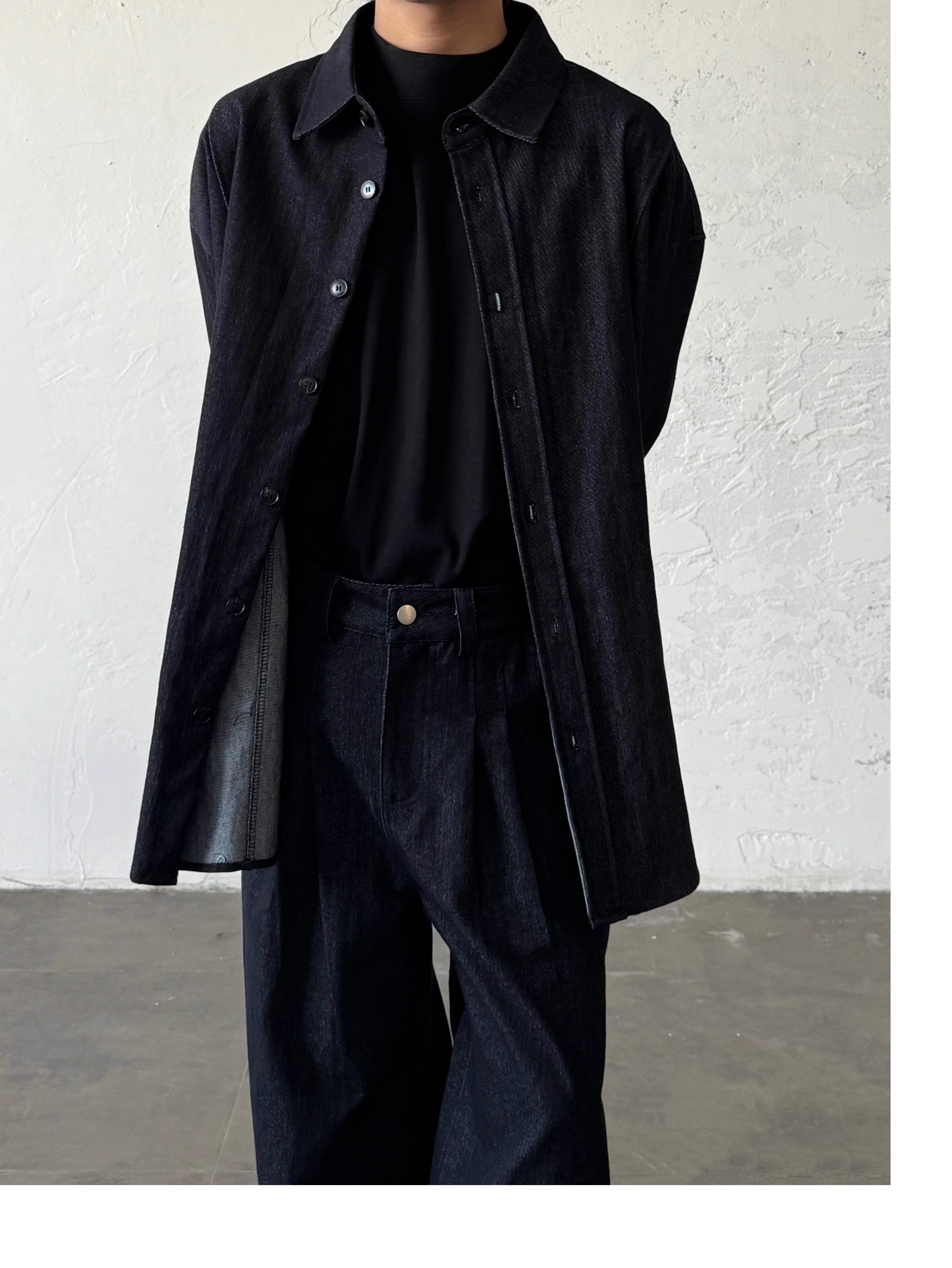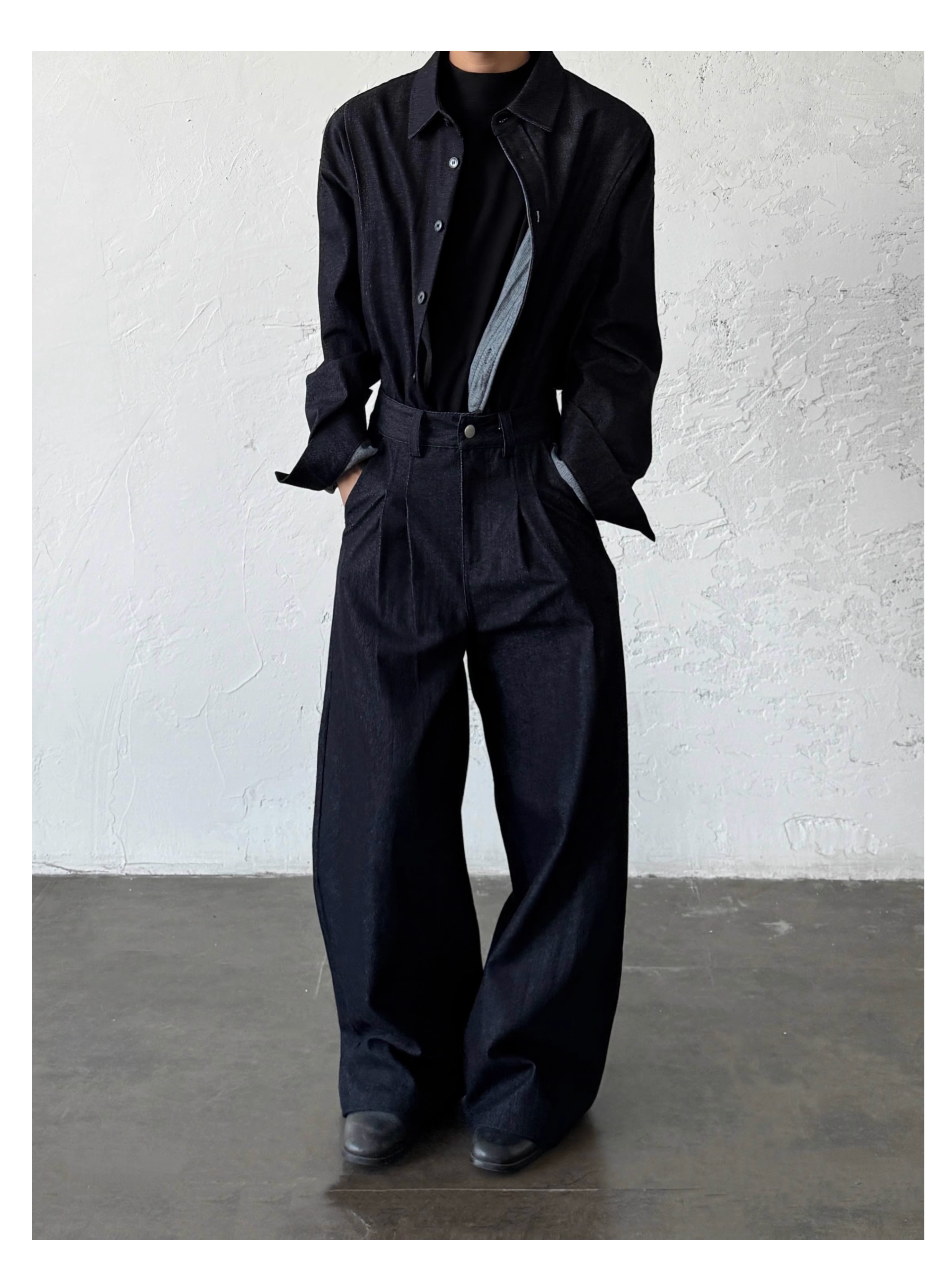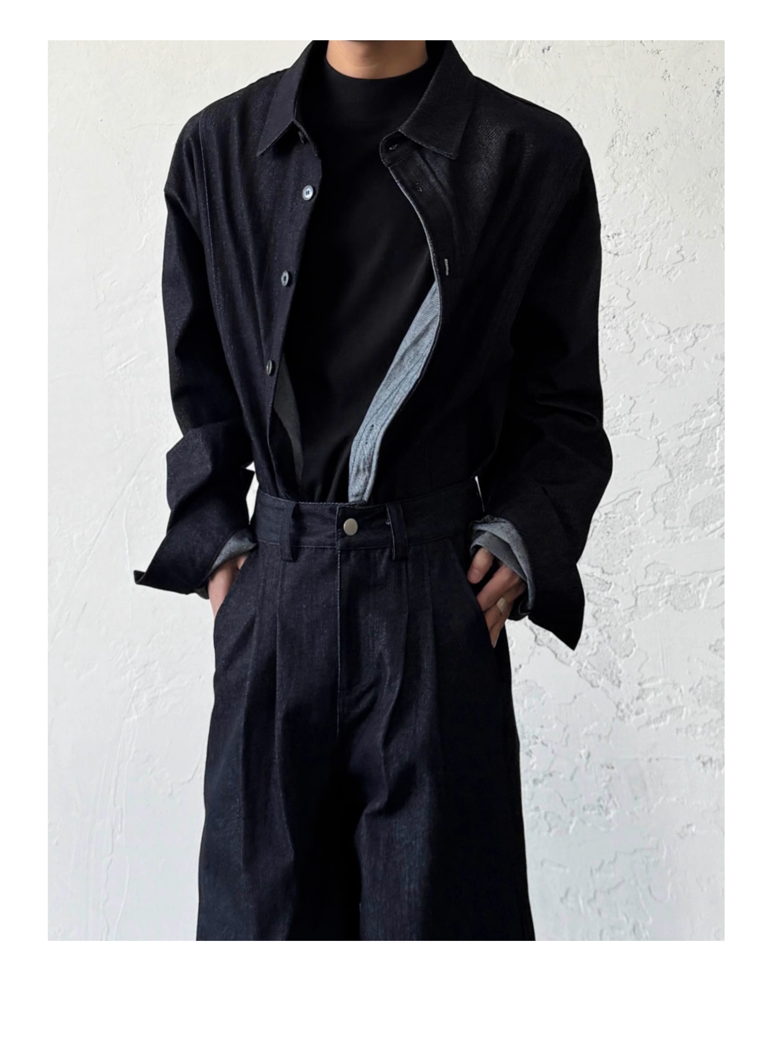 Minimalist Denim Long Sleeve Shirt & Washed Denim Jeans Setup WN19958