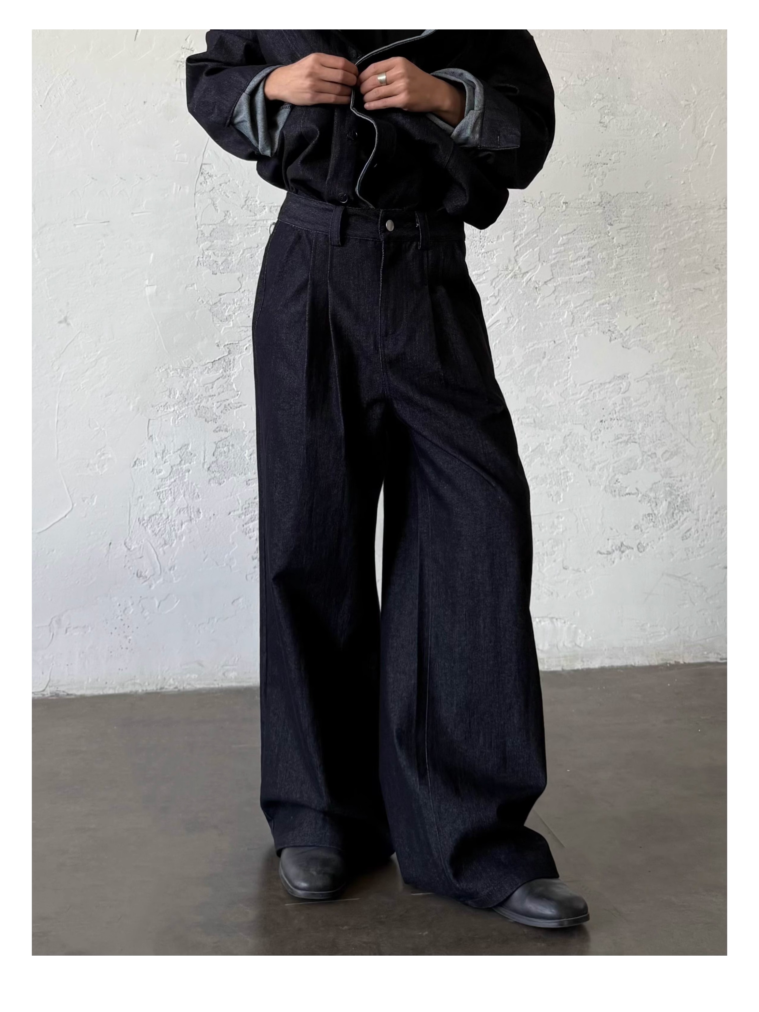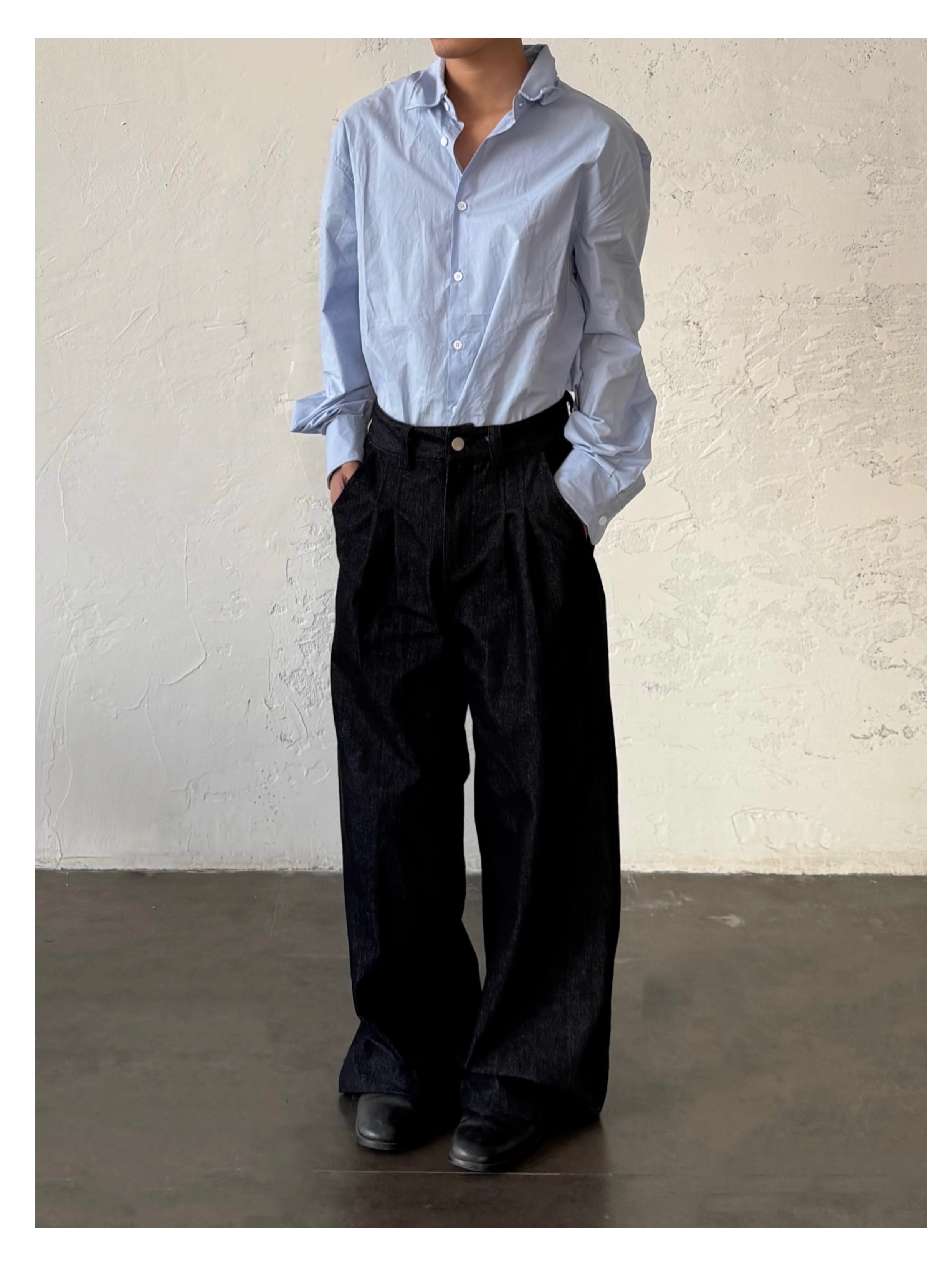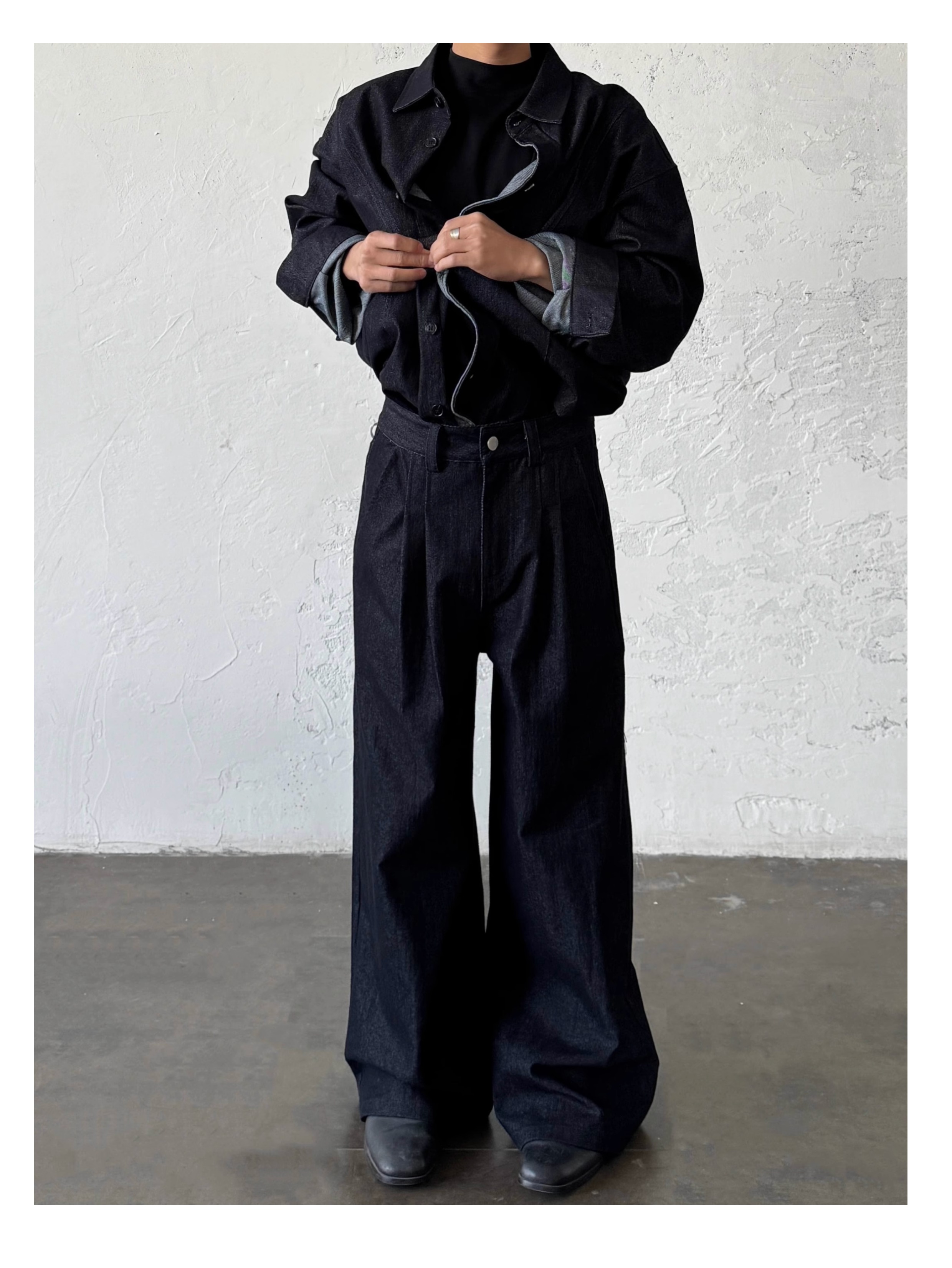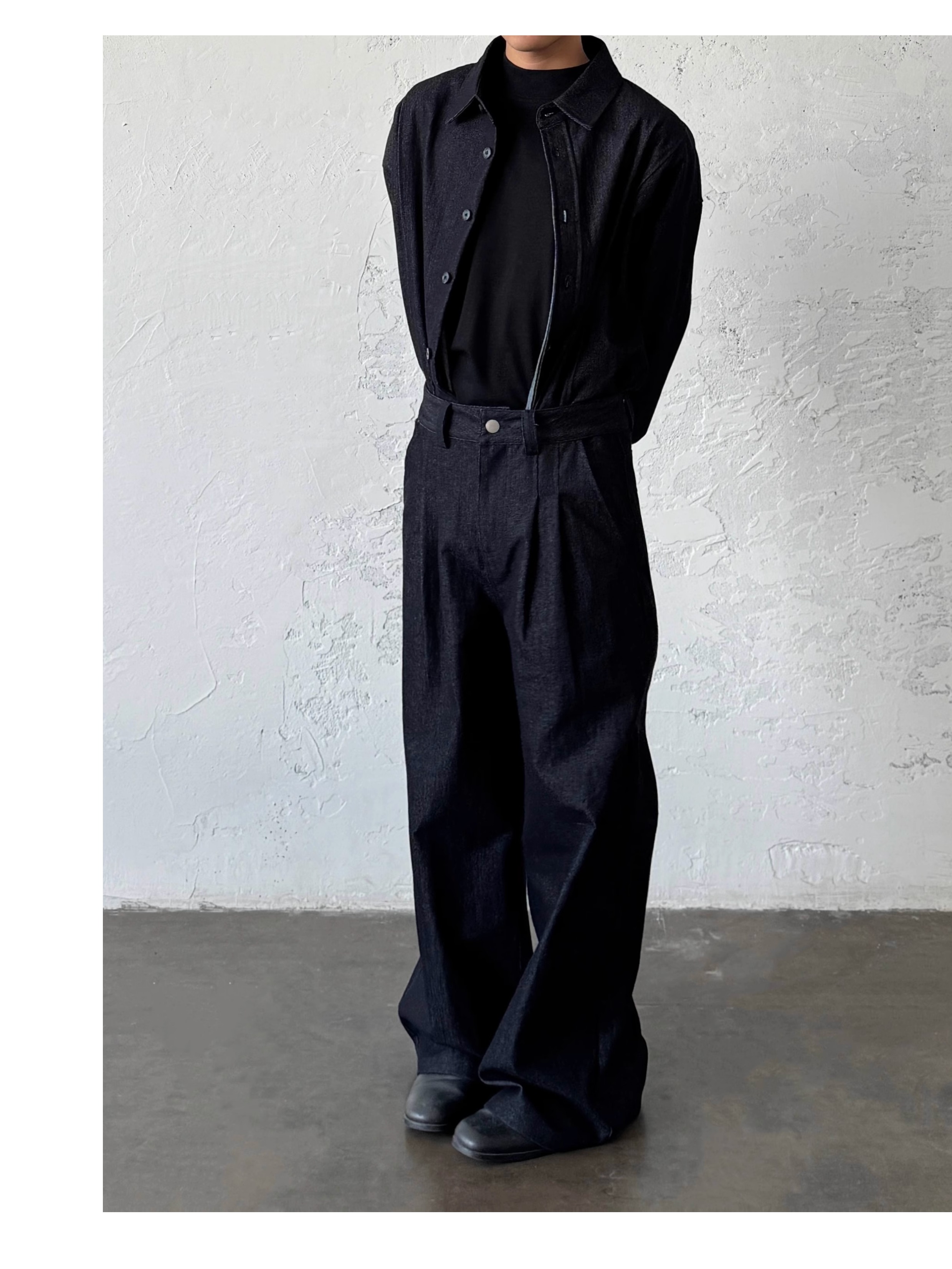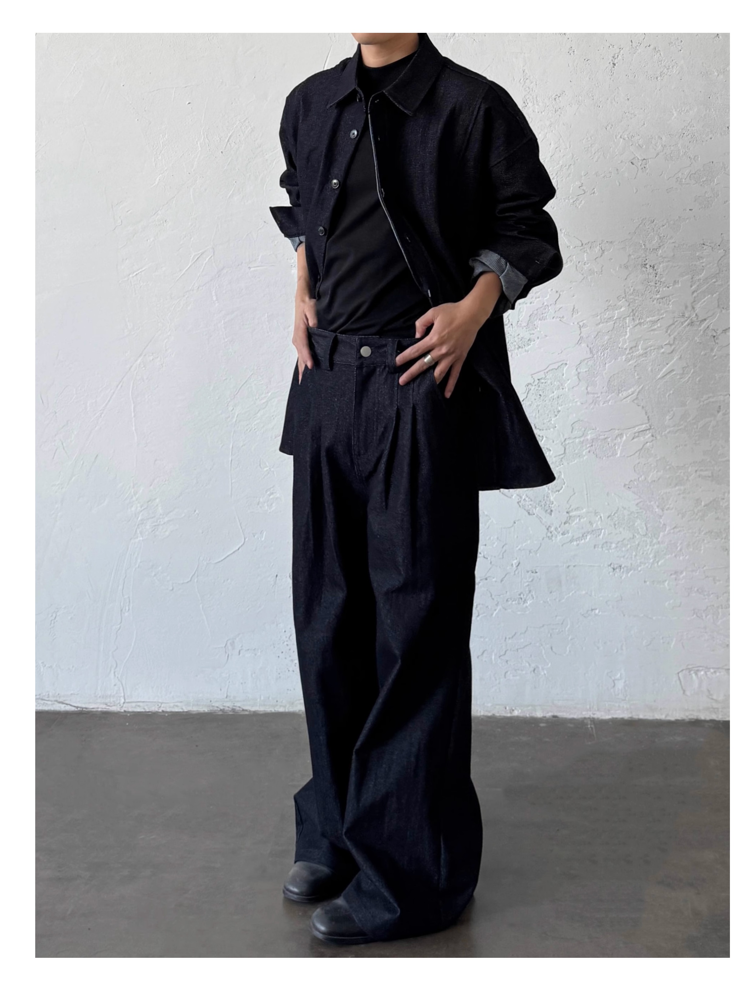 Minimalist Denim Long Sleeve Shirt & Washed Denim Jeans Setup WN19958