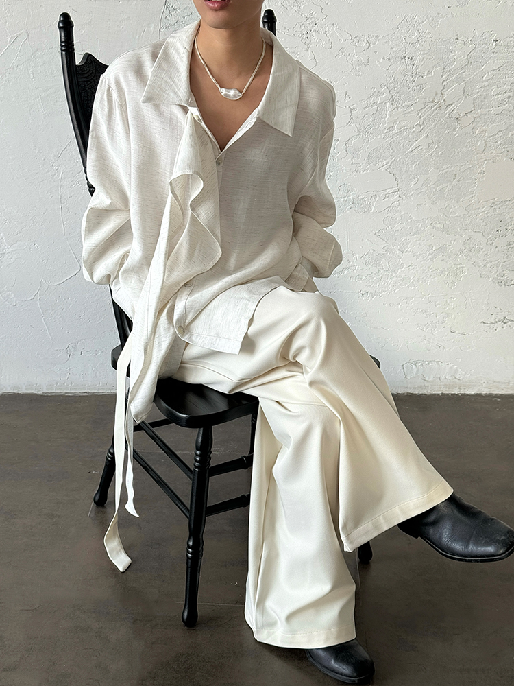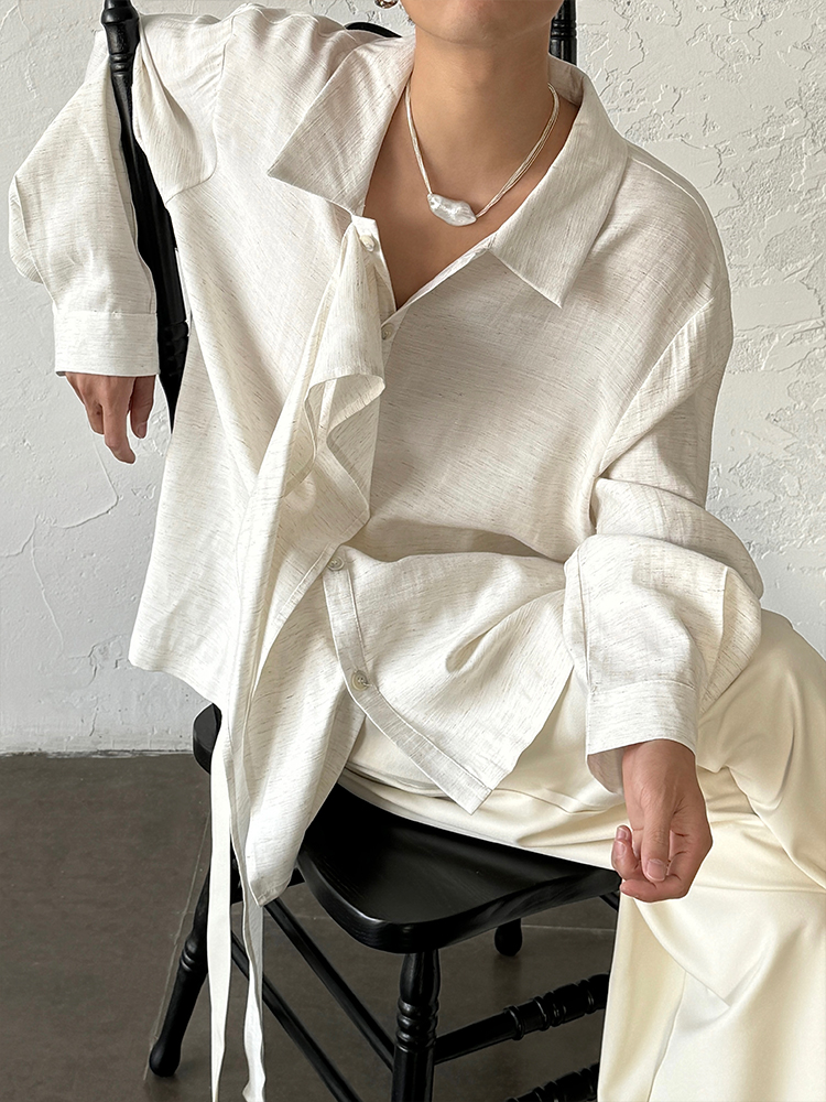 Ribbon Design Linen Long Sleeve Shirt WN20013