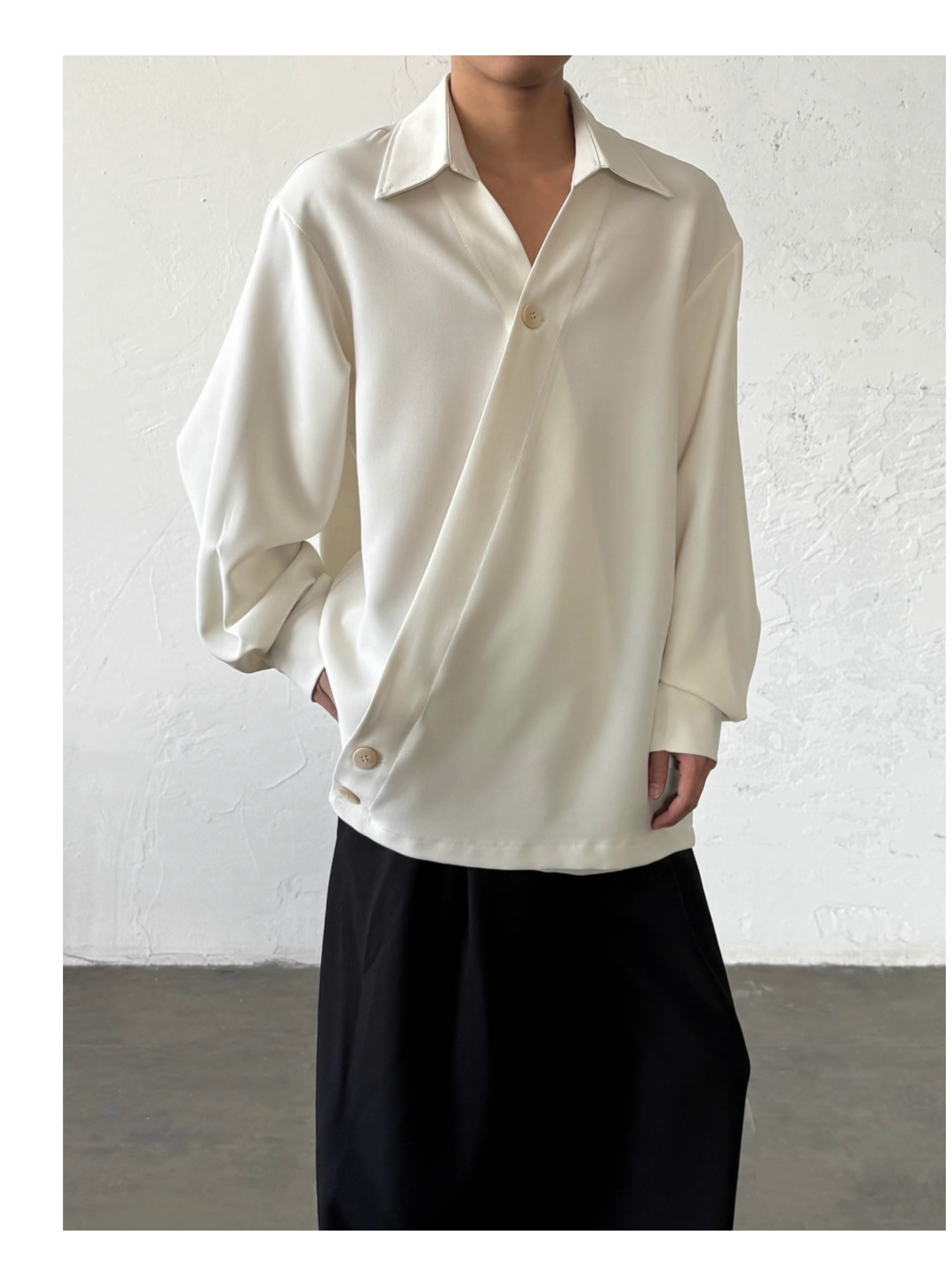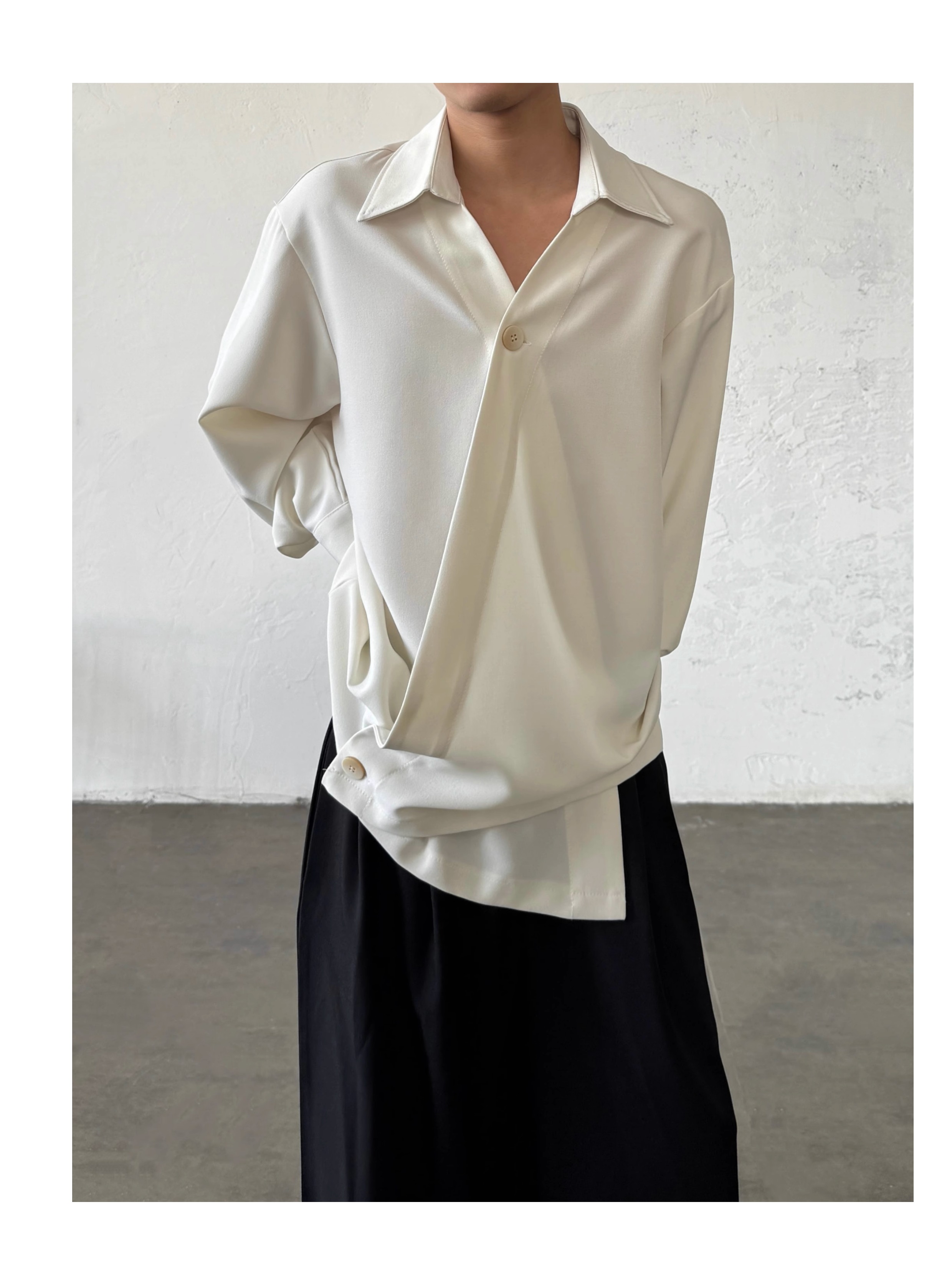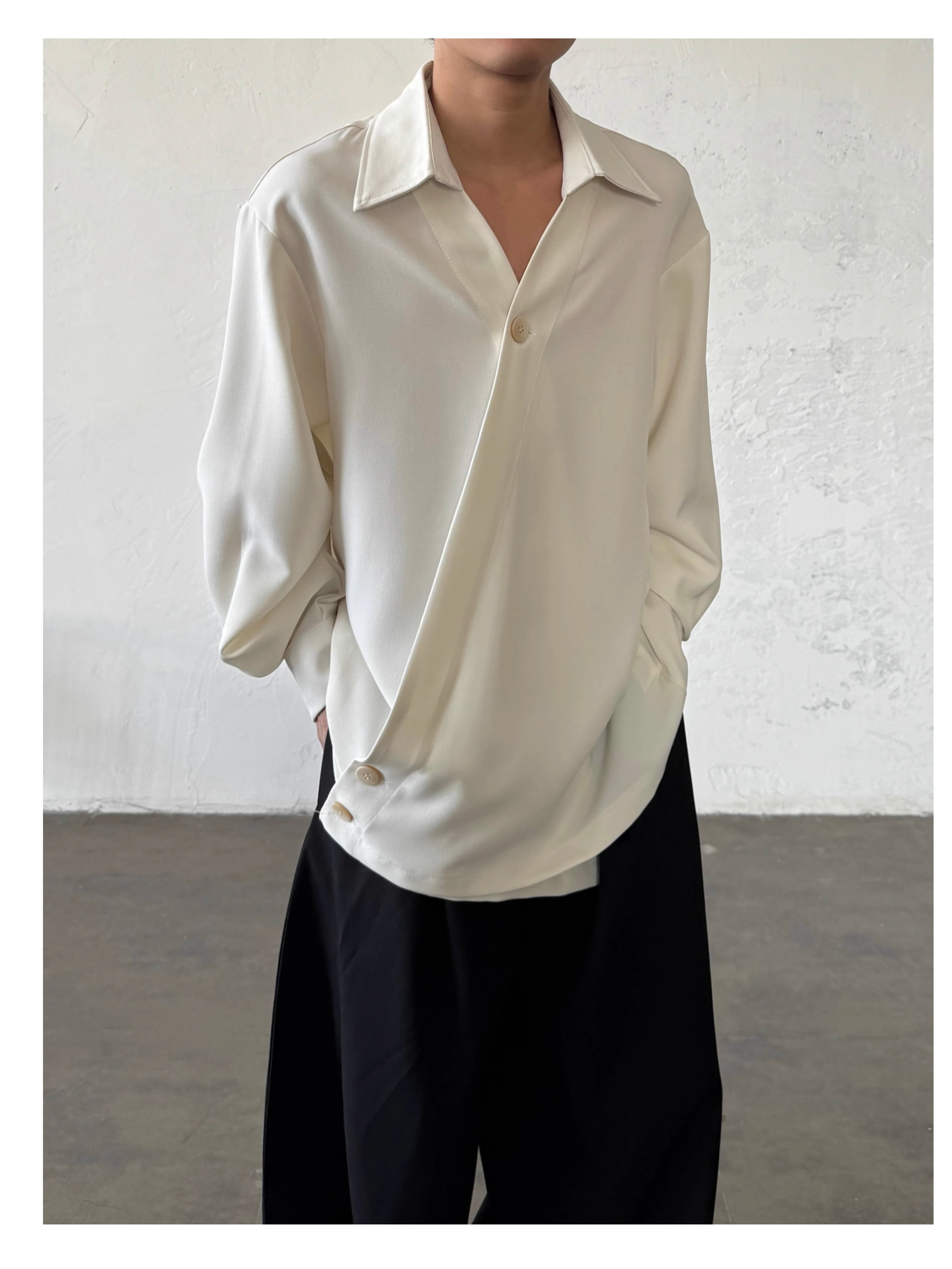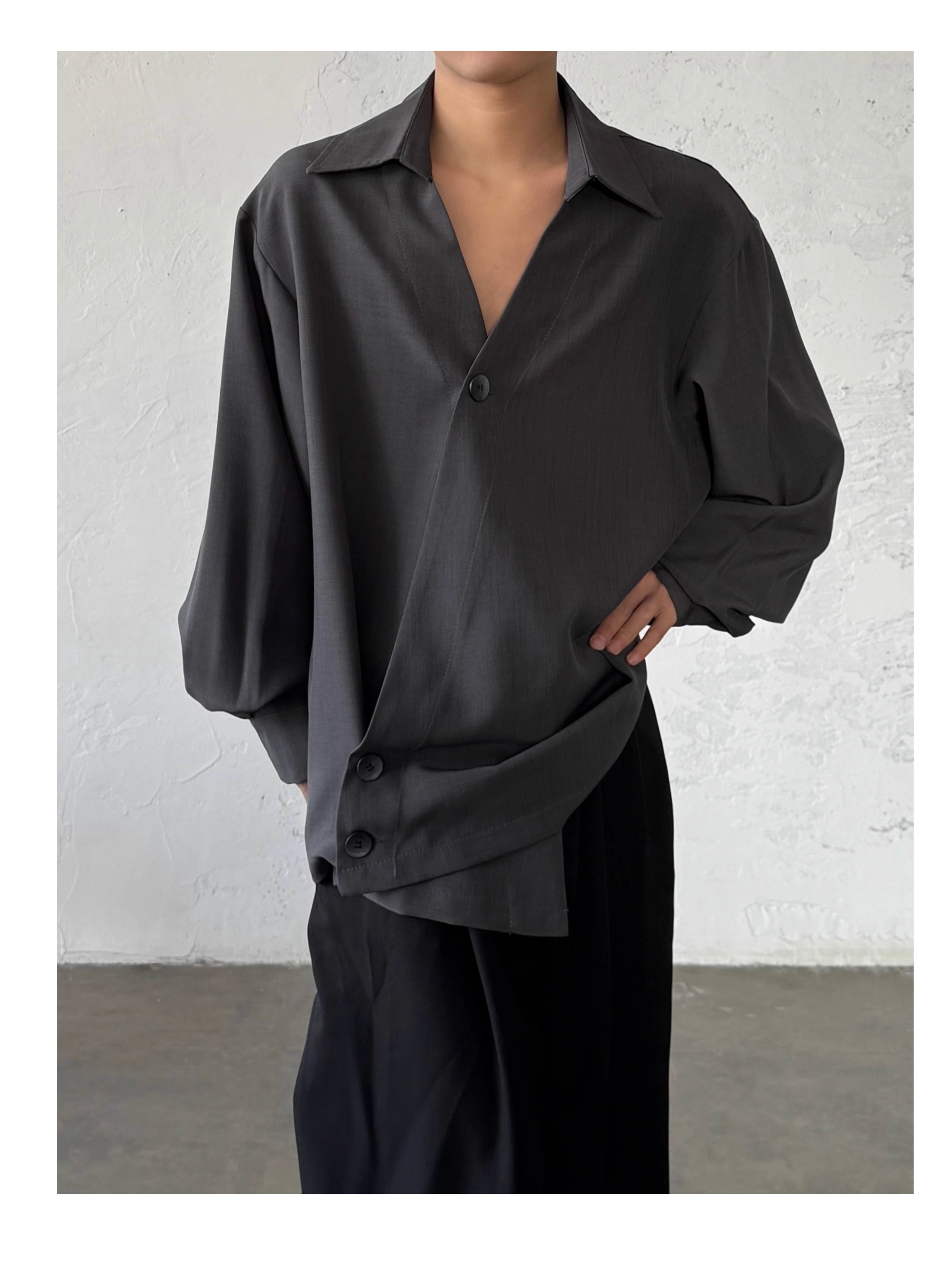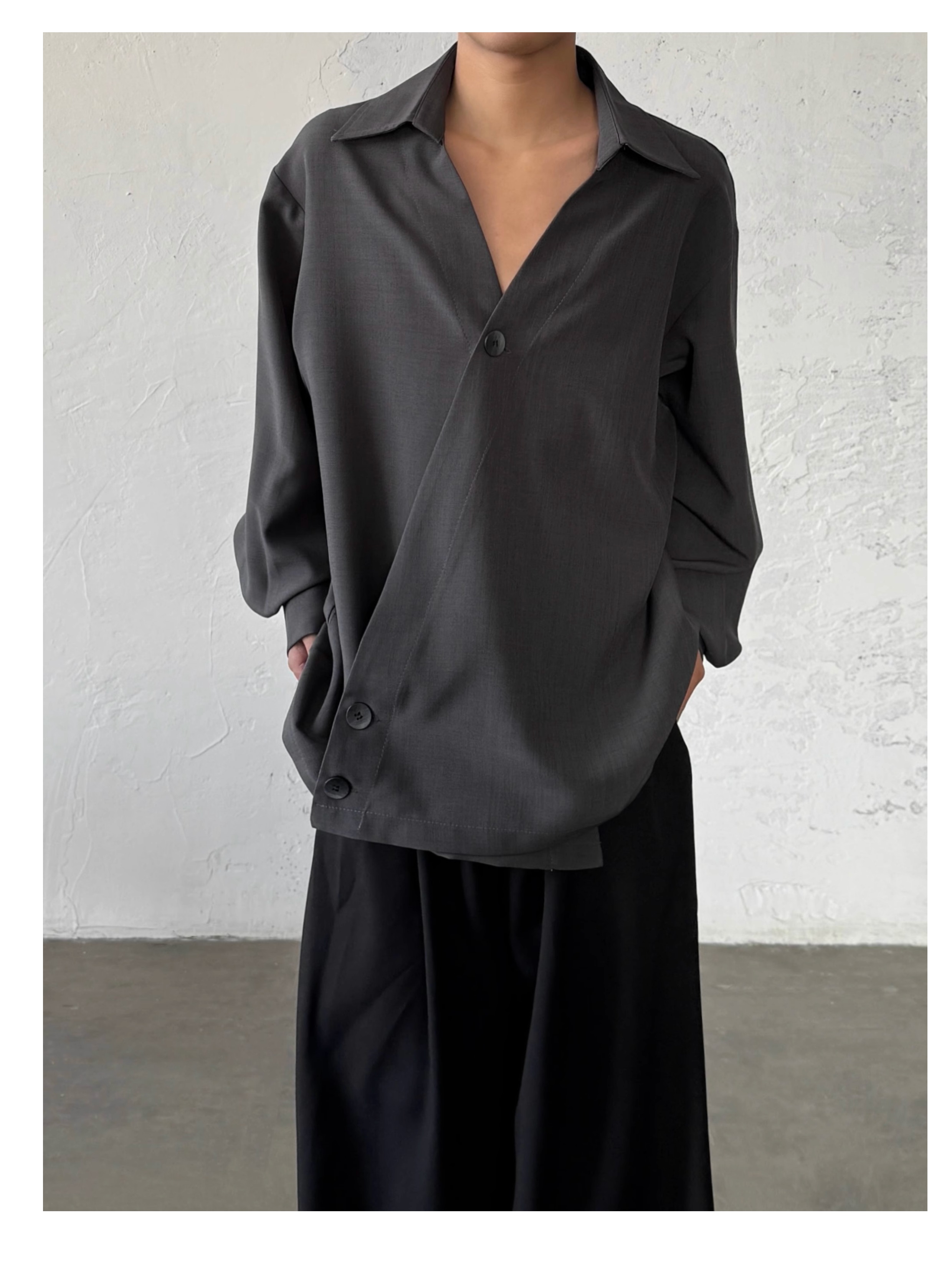 Minimalist Irregular Asymmetric Button V-Neck Long Sleeve Shirt WN20025