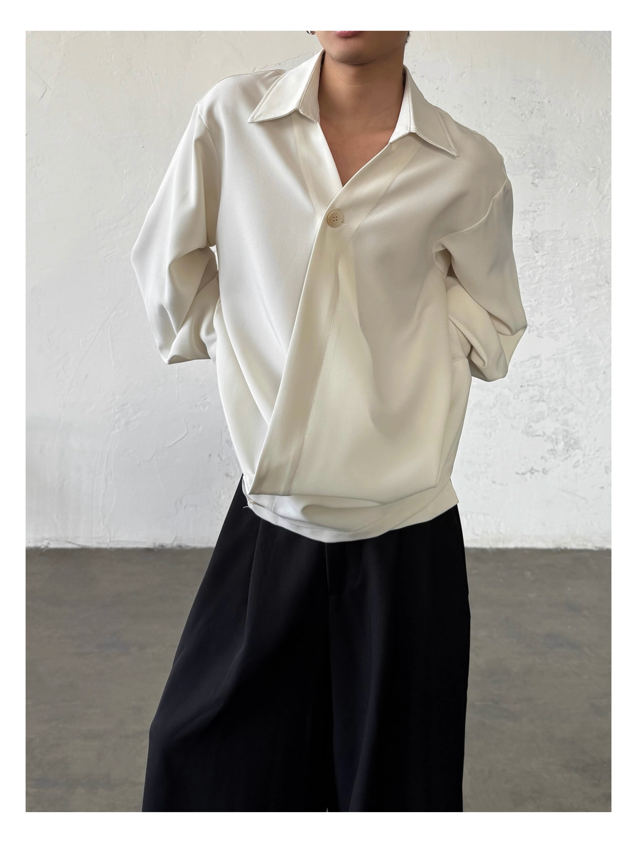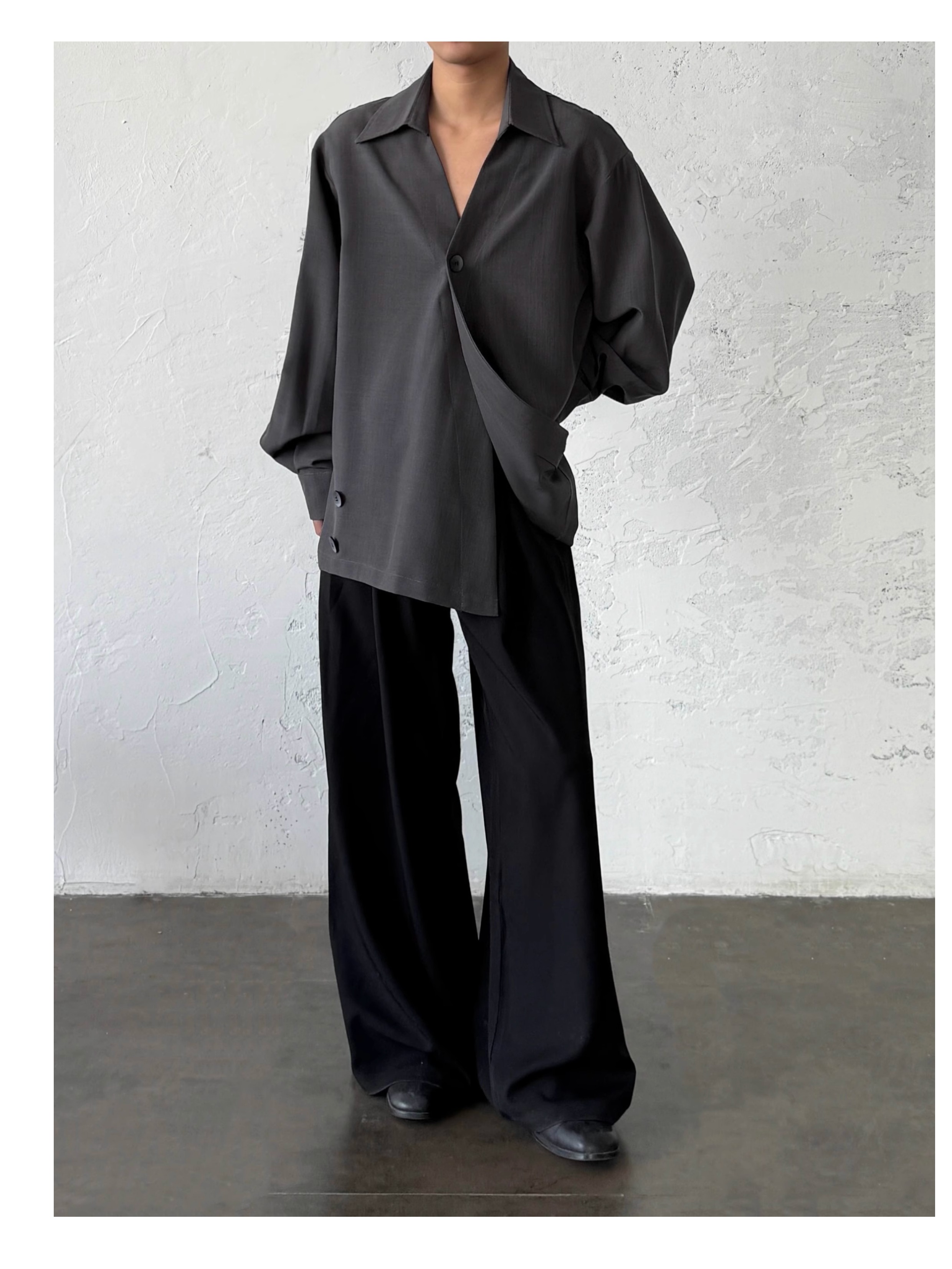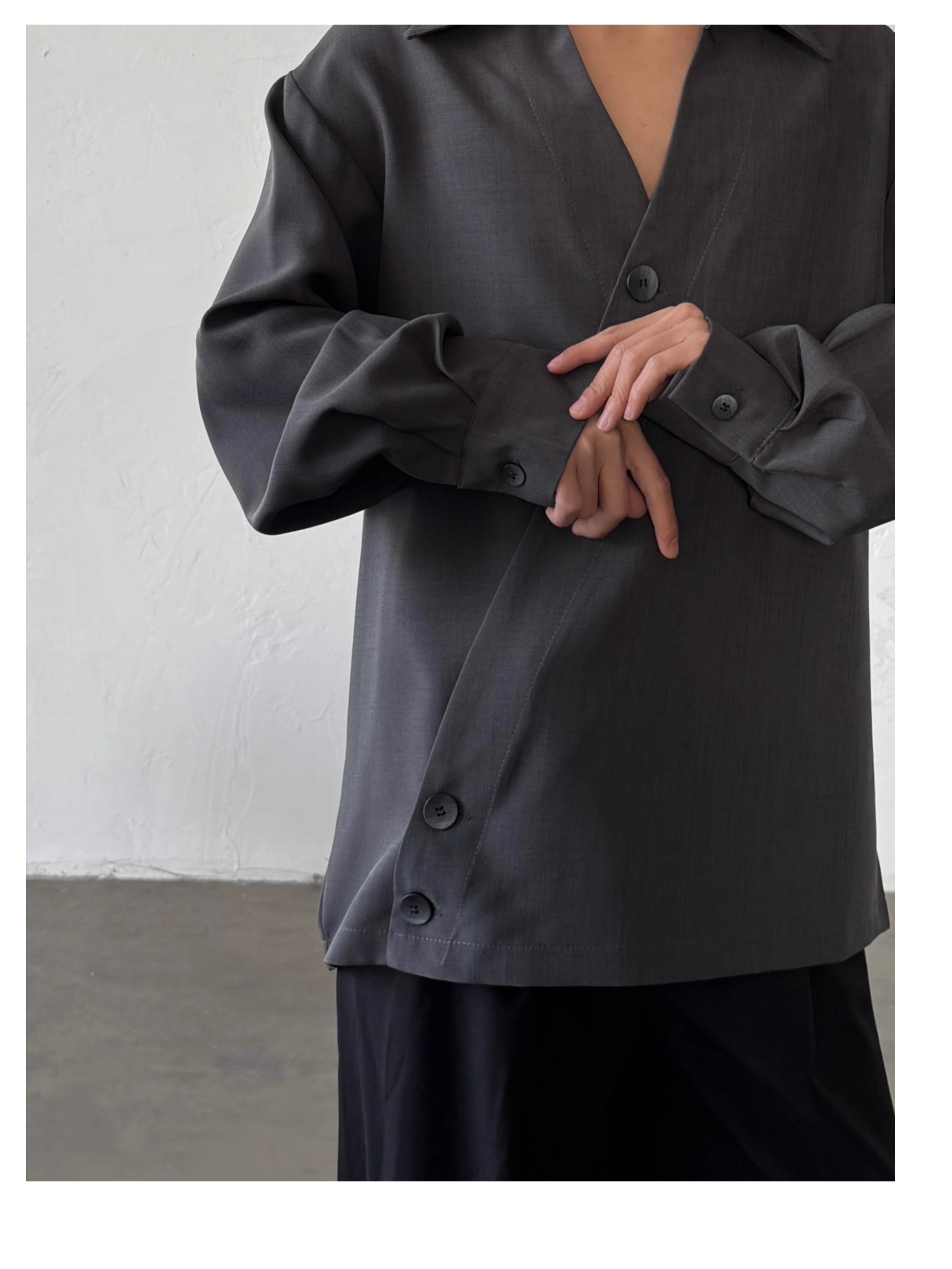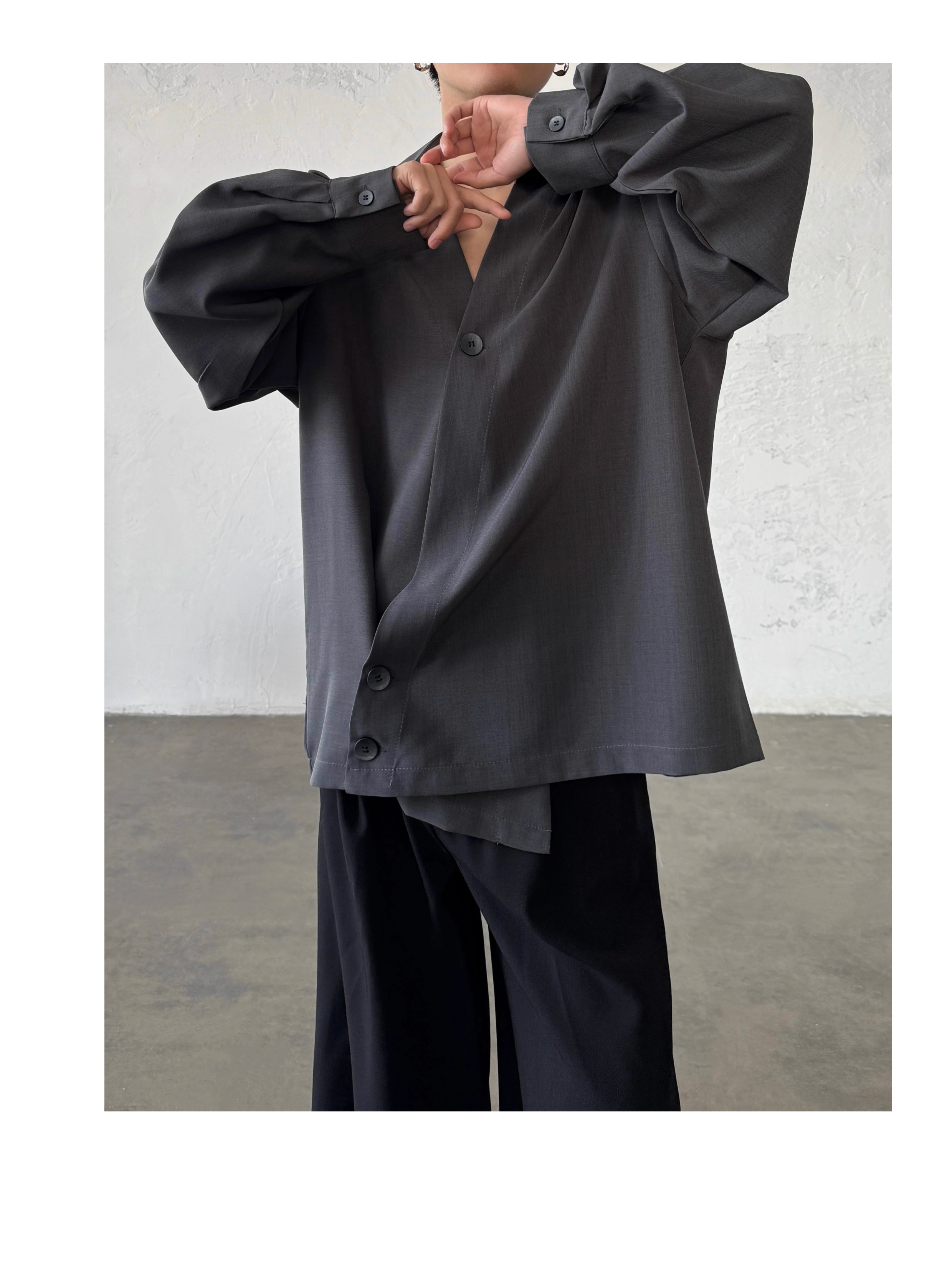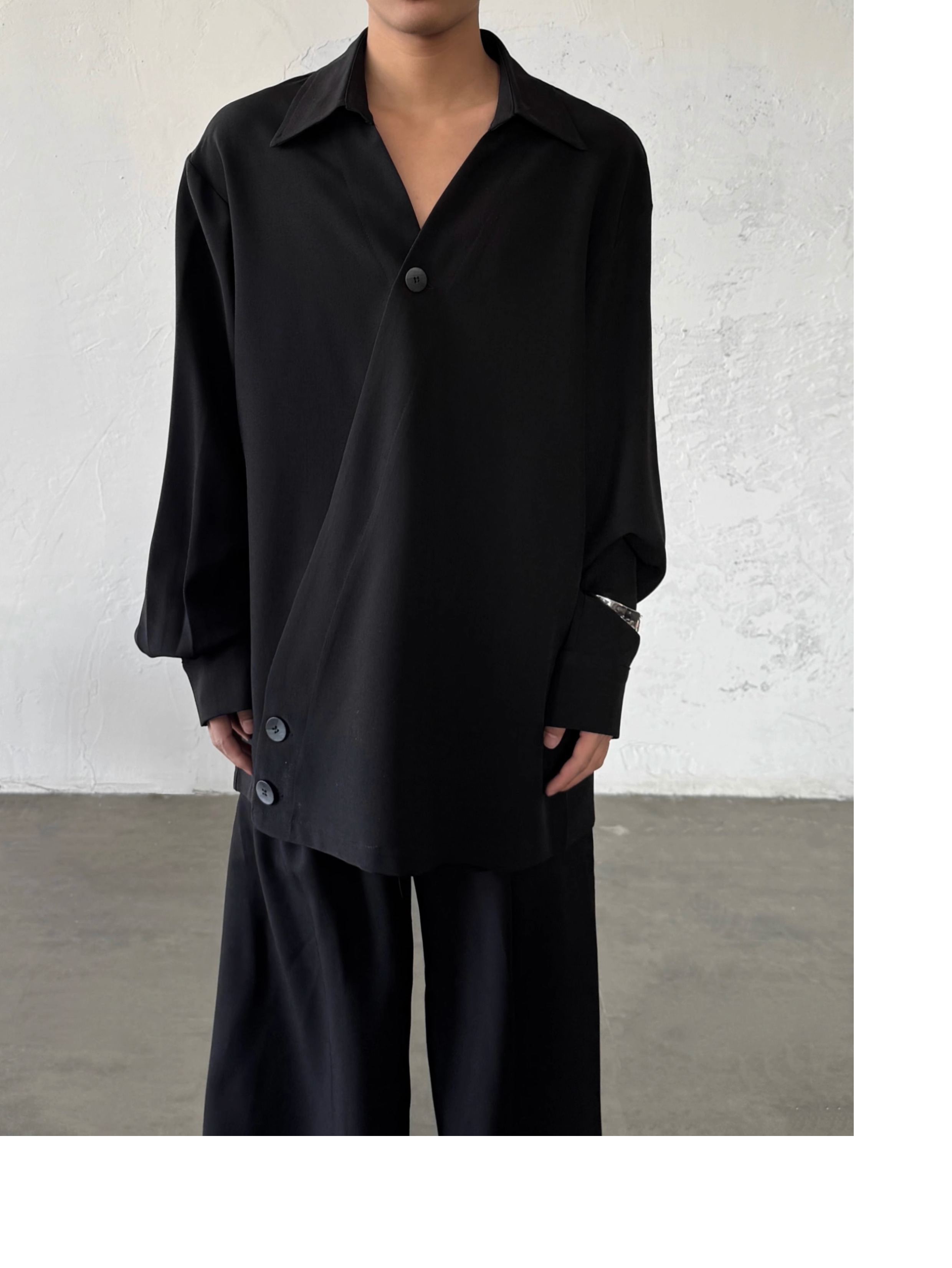 Minimalist Irregular Asymmetric Button V-Neck Long Sleeve Shirt WN20025