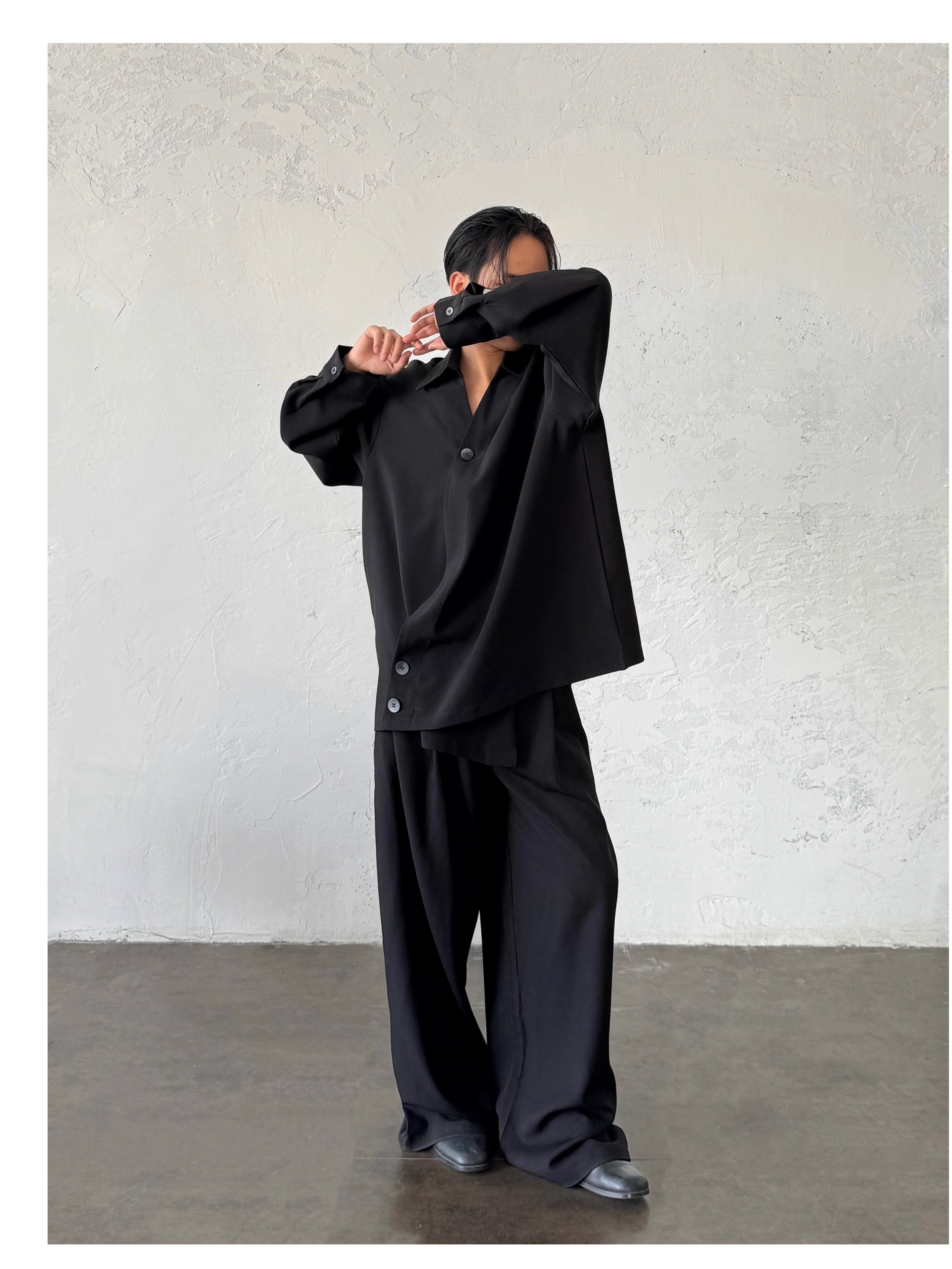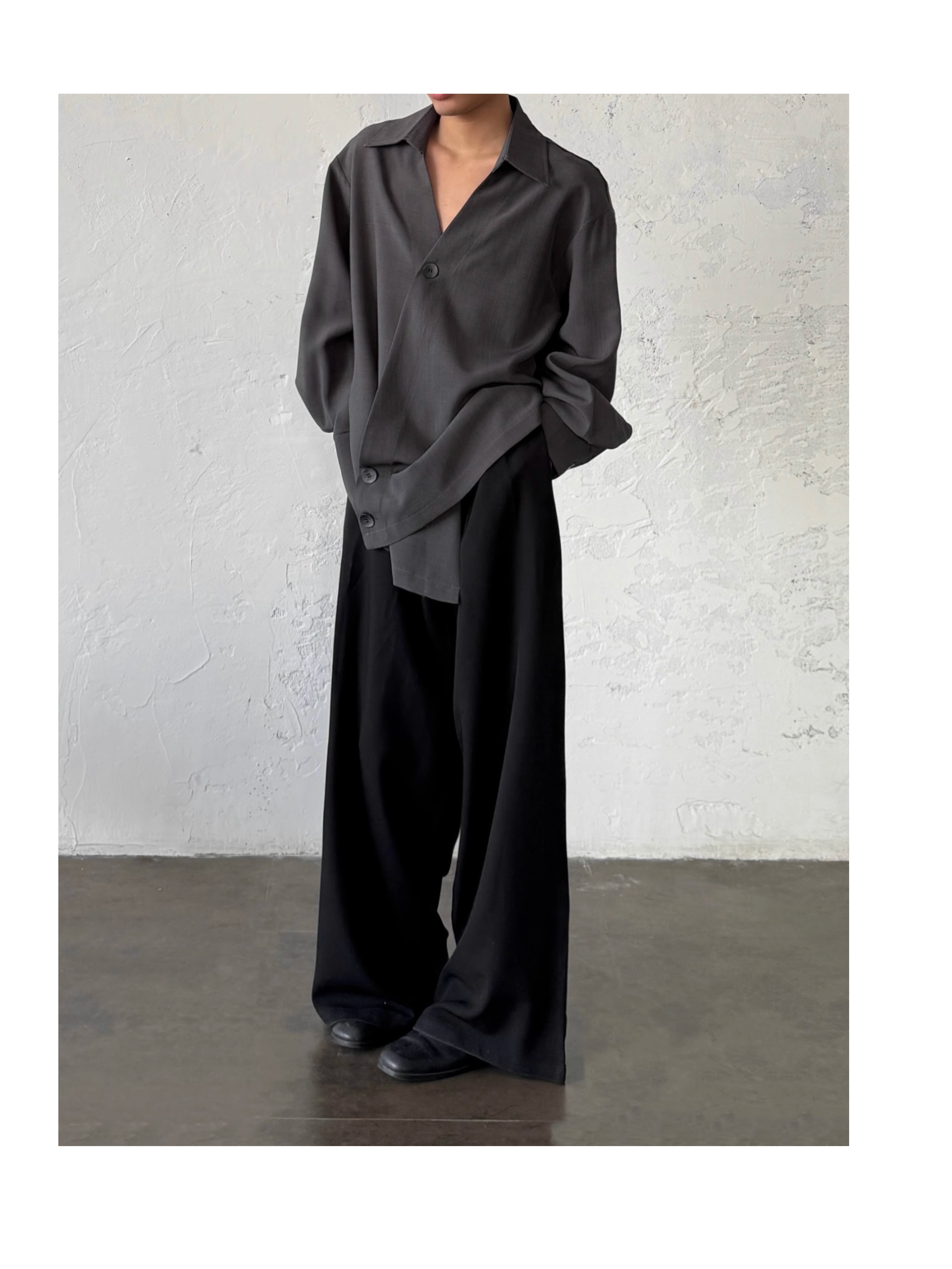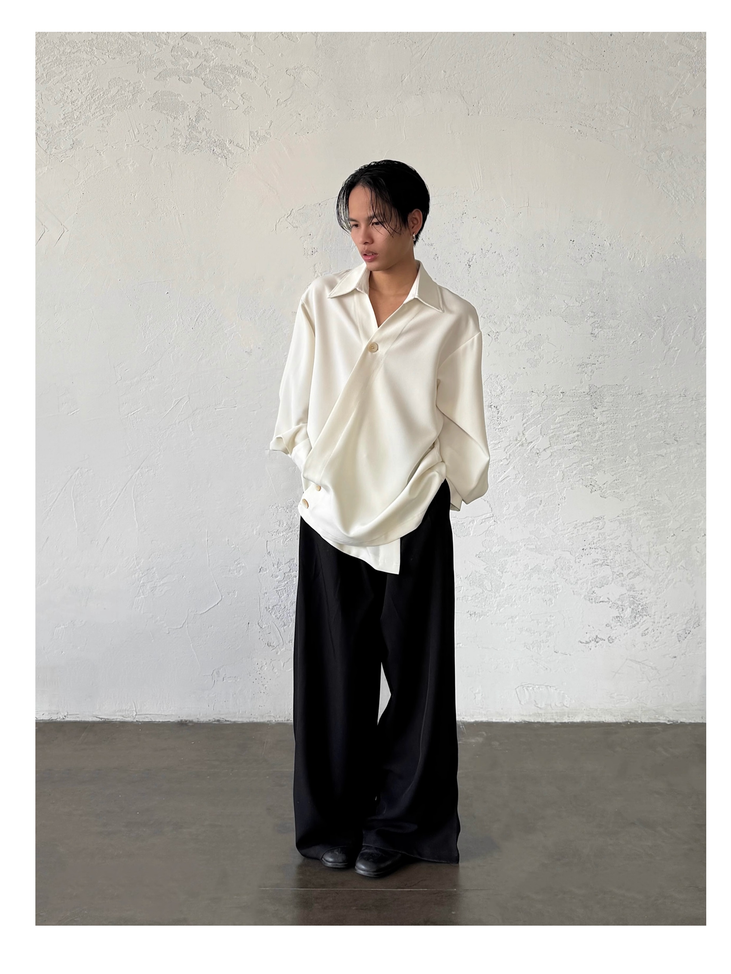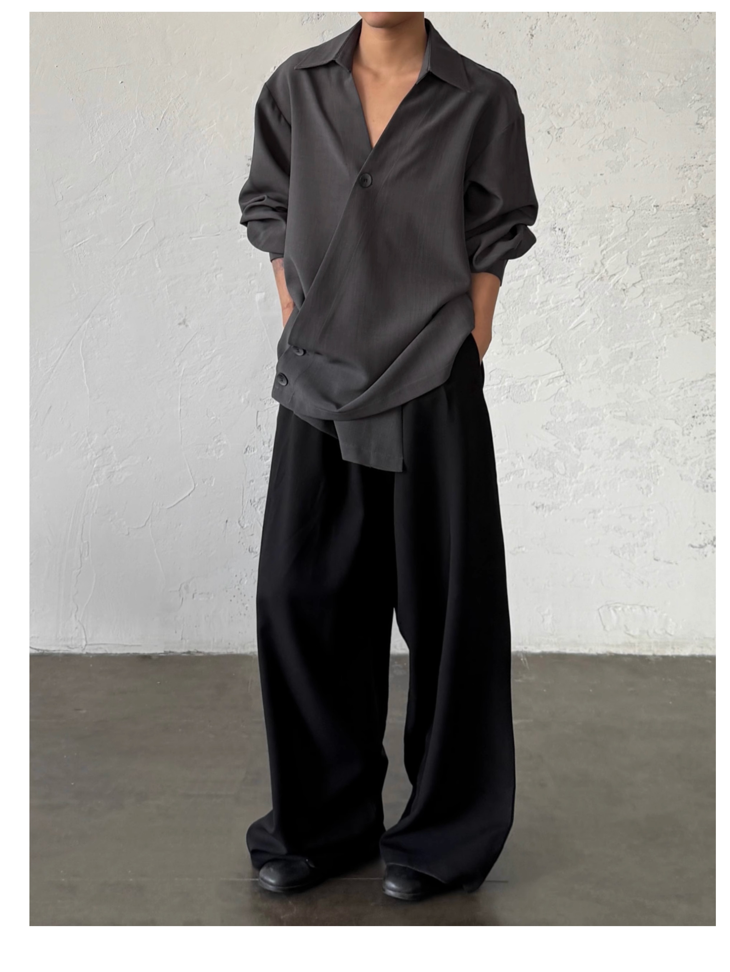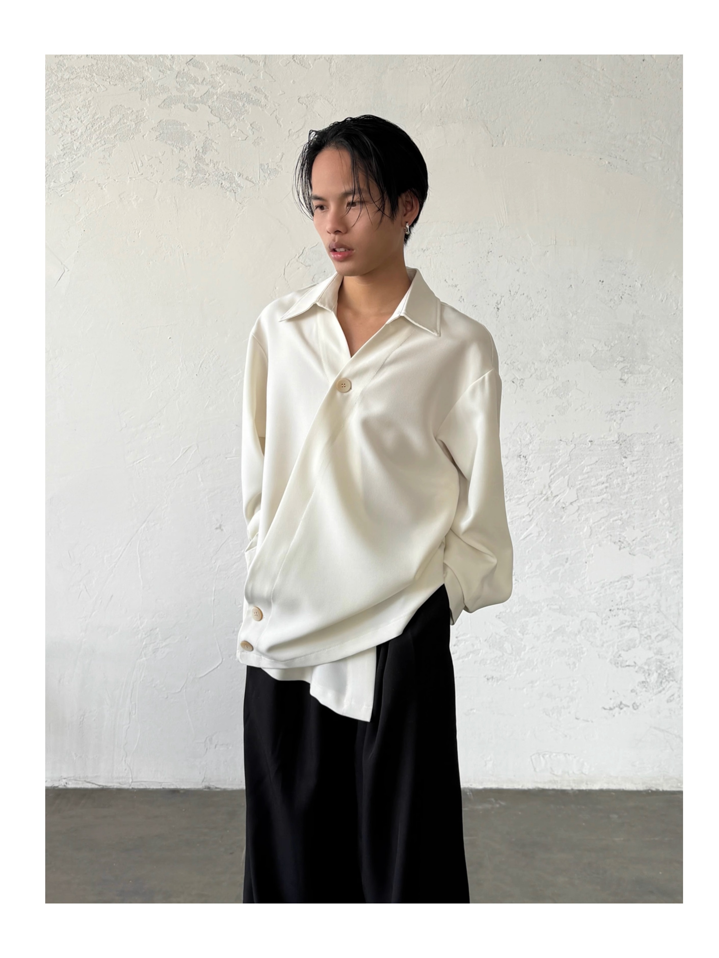 Minimalist Irregular Asymmetric Button V-Neck Long Sleeve Shirt WN20025
