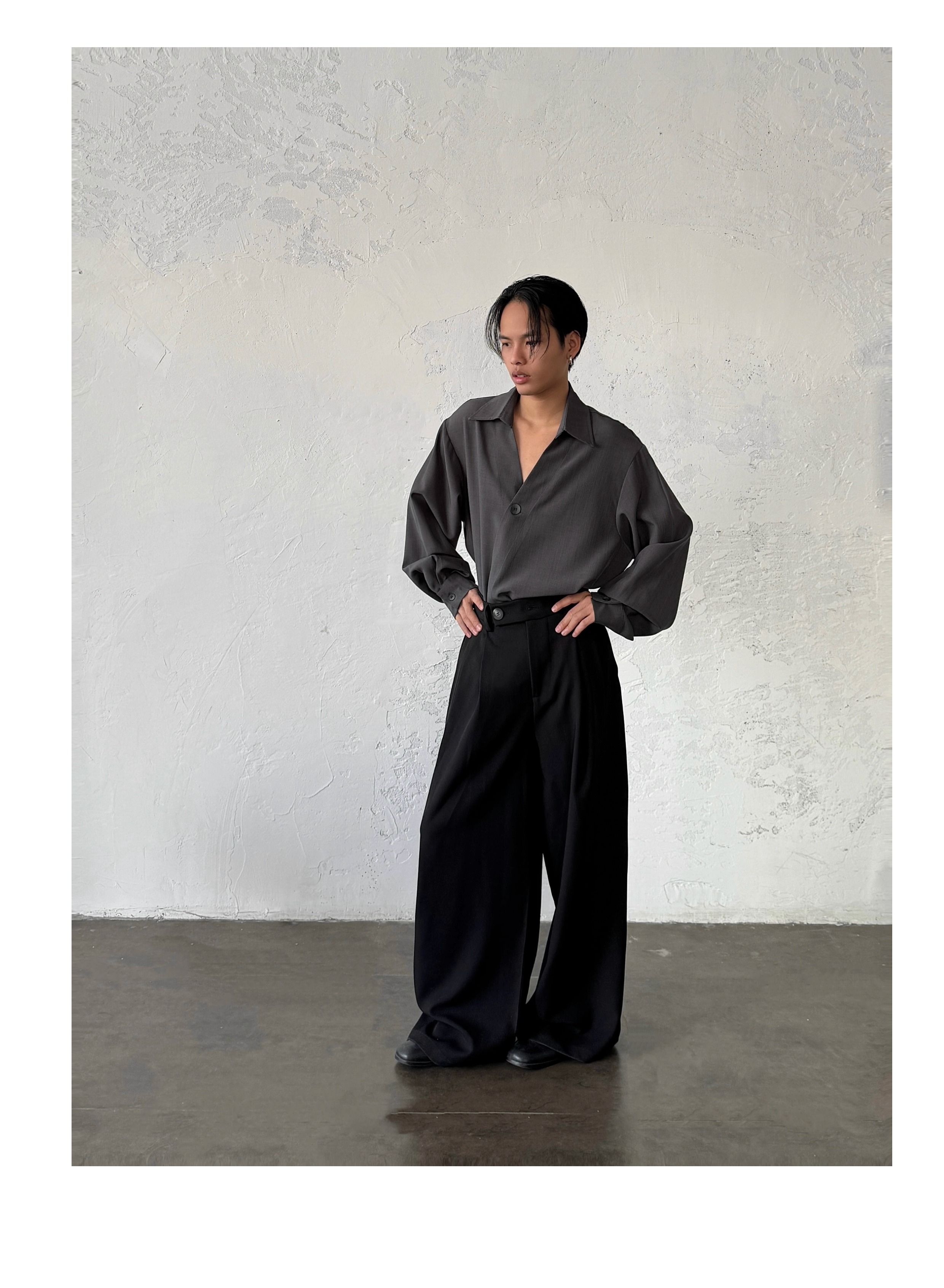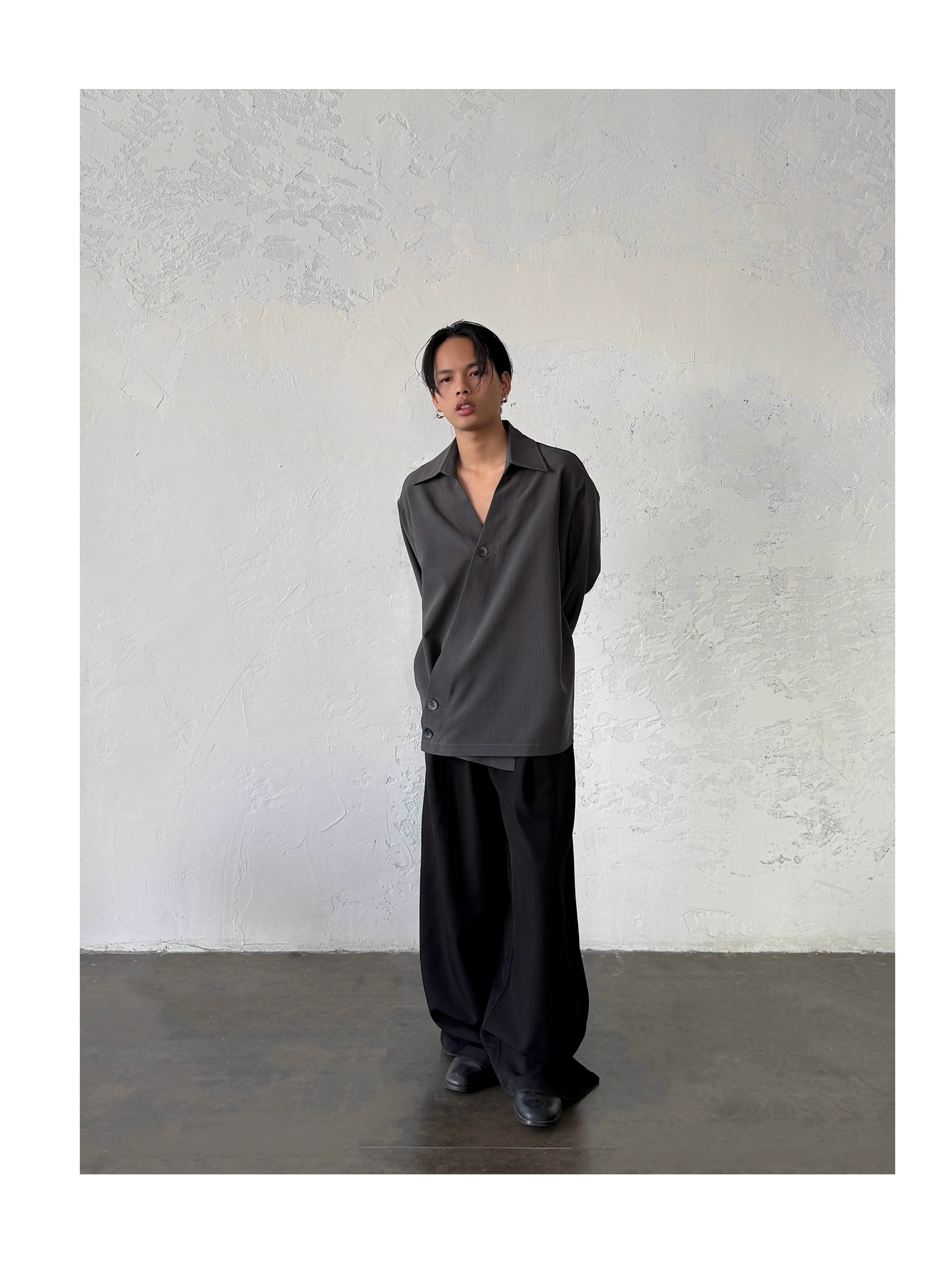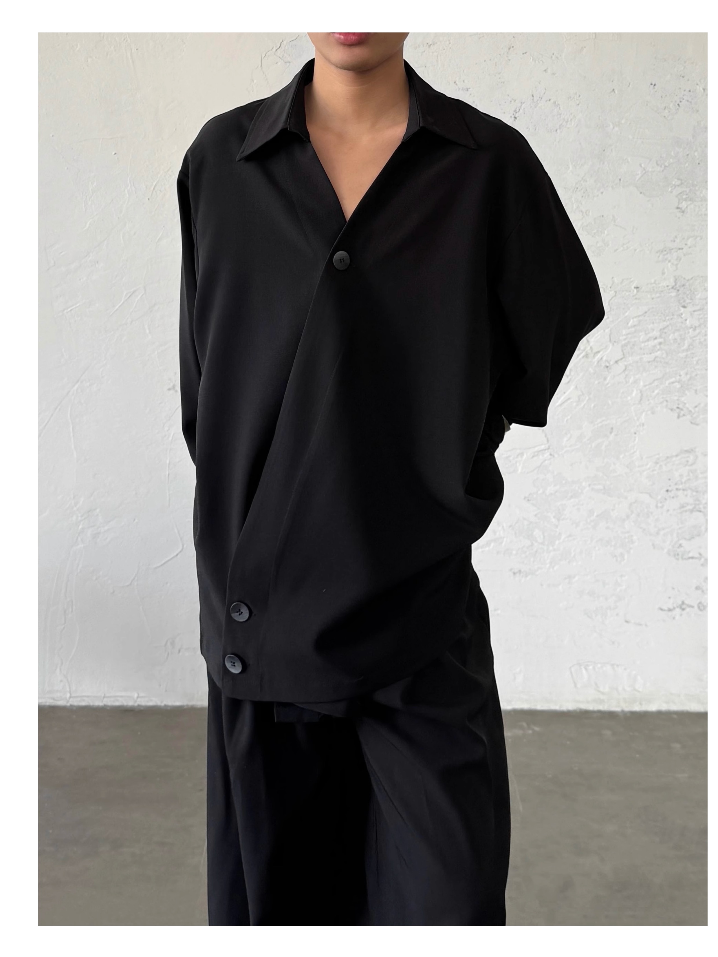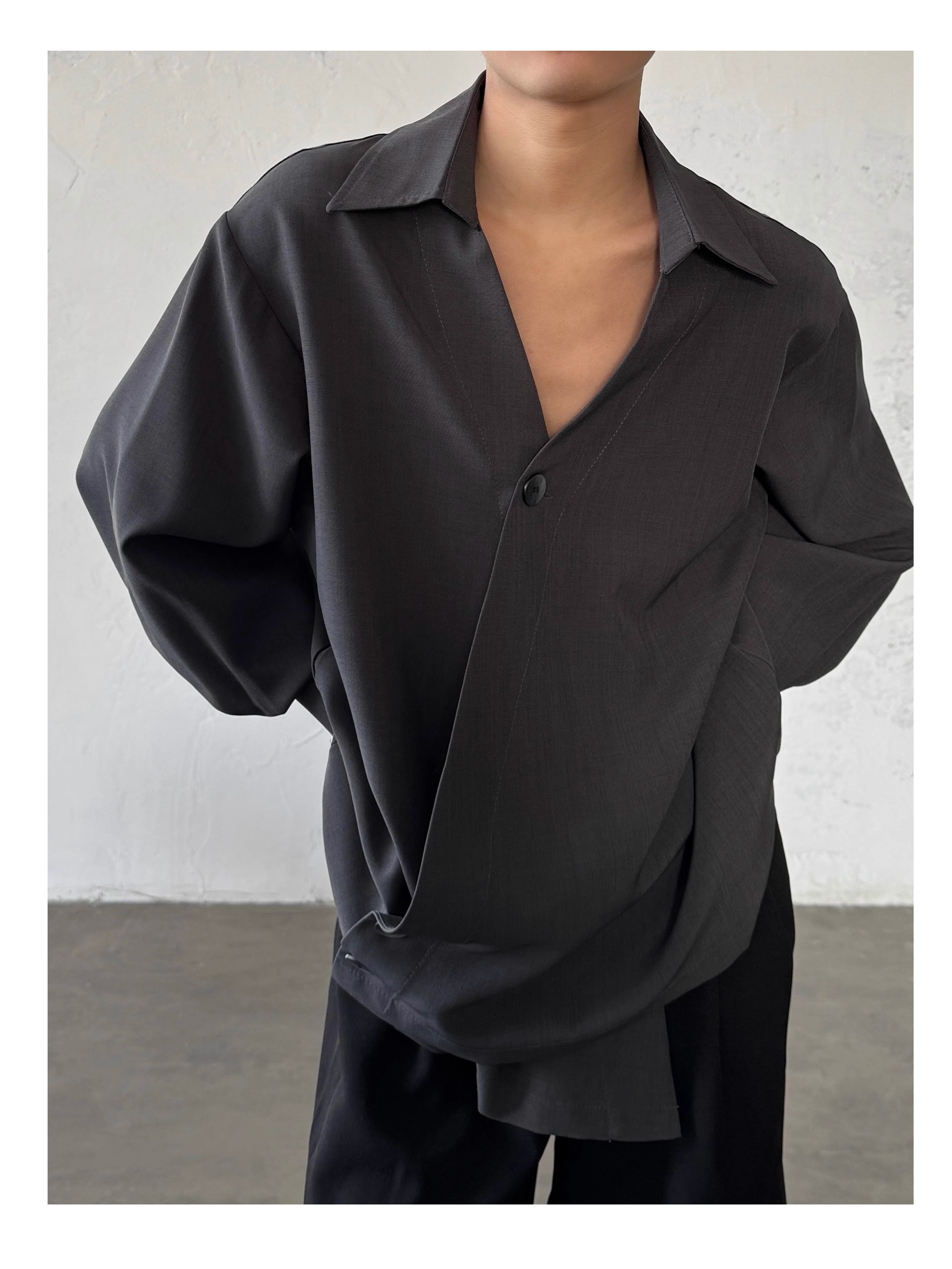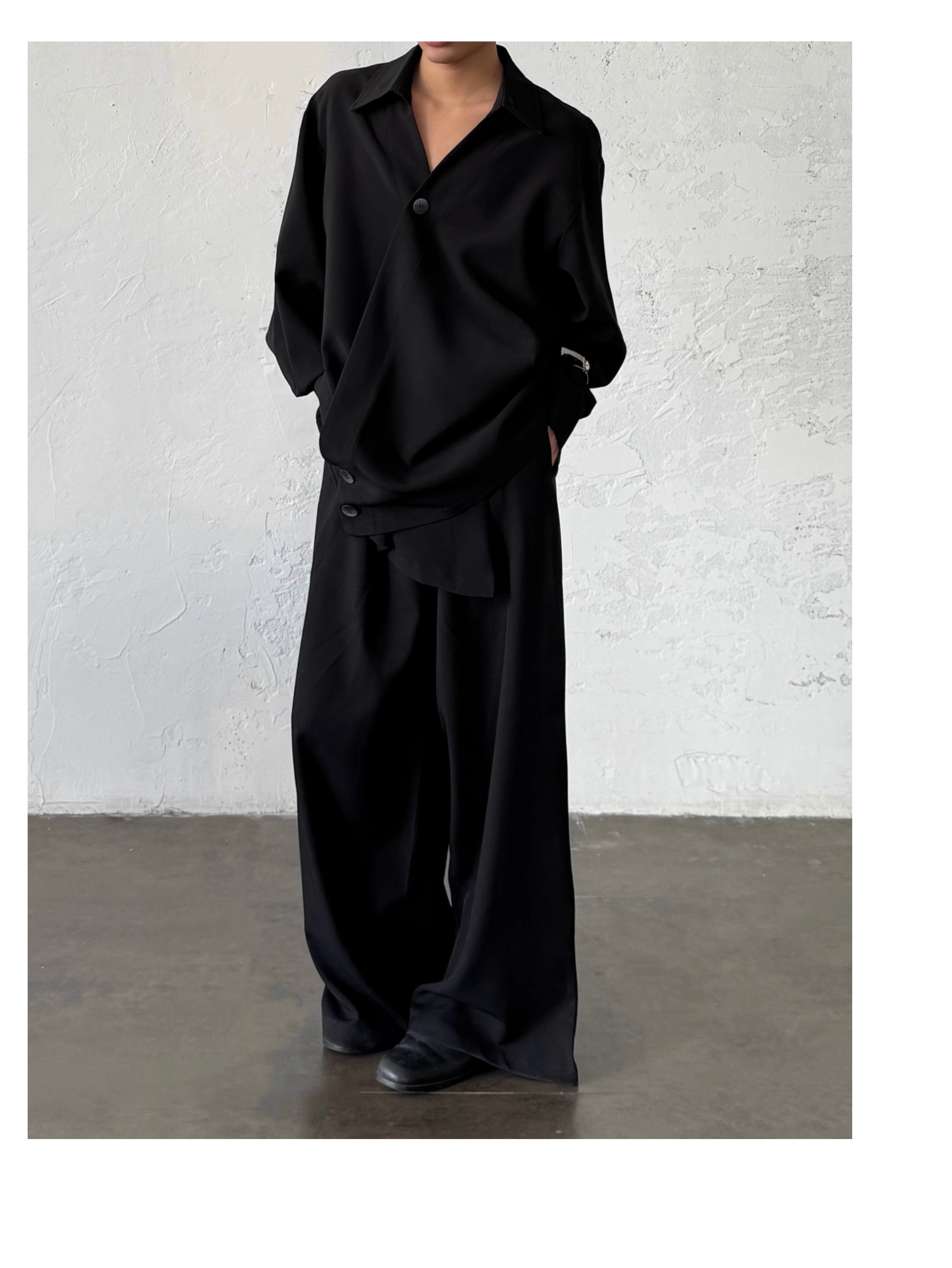 Minimalist Irregular Asymmetric Button V-Neck Long Sleeve Shirt WN20025