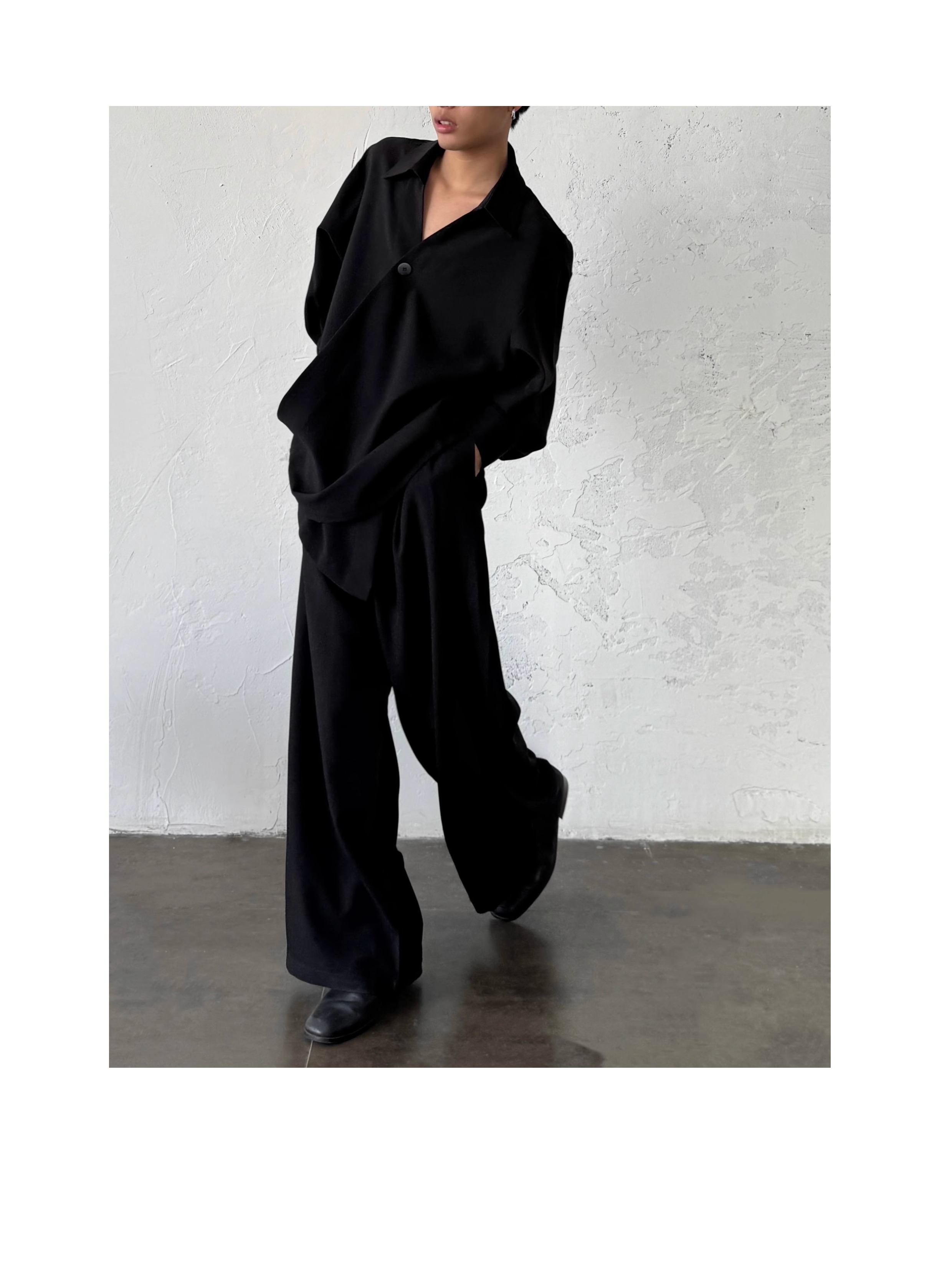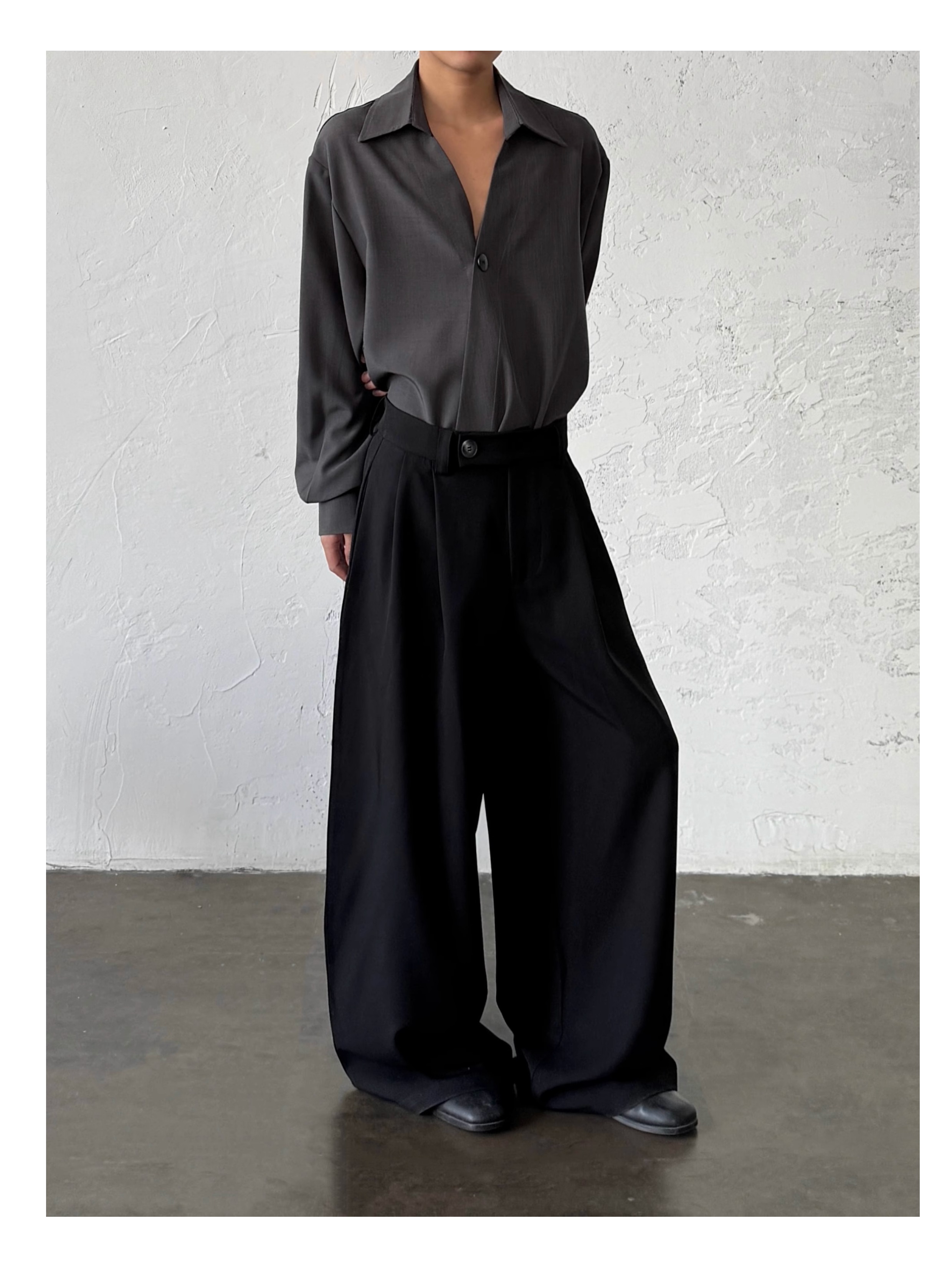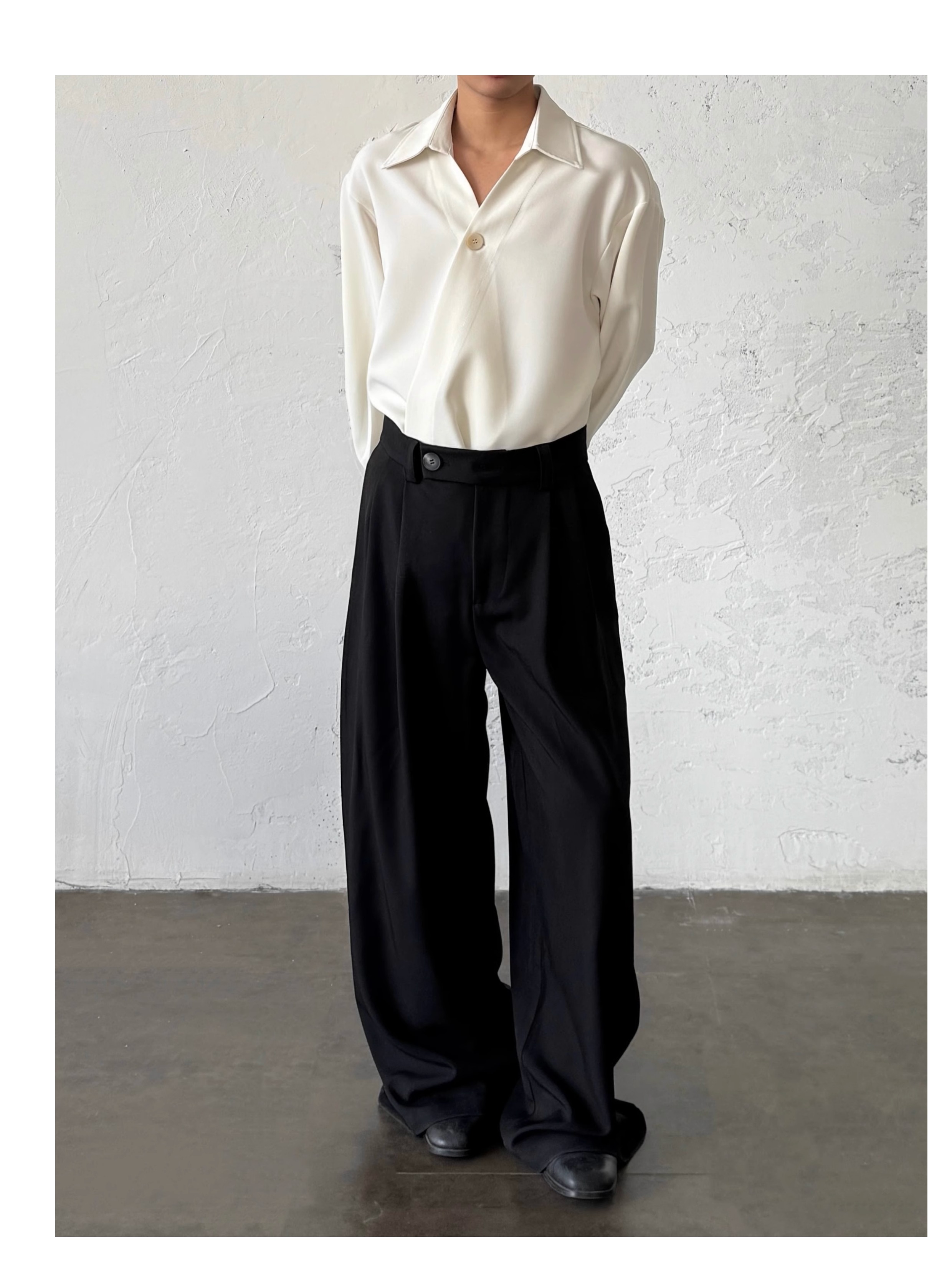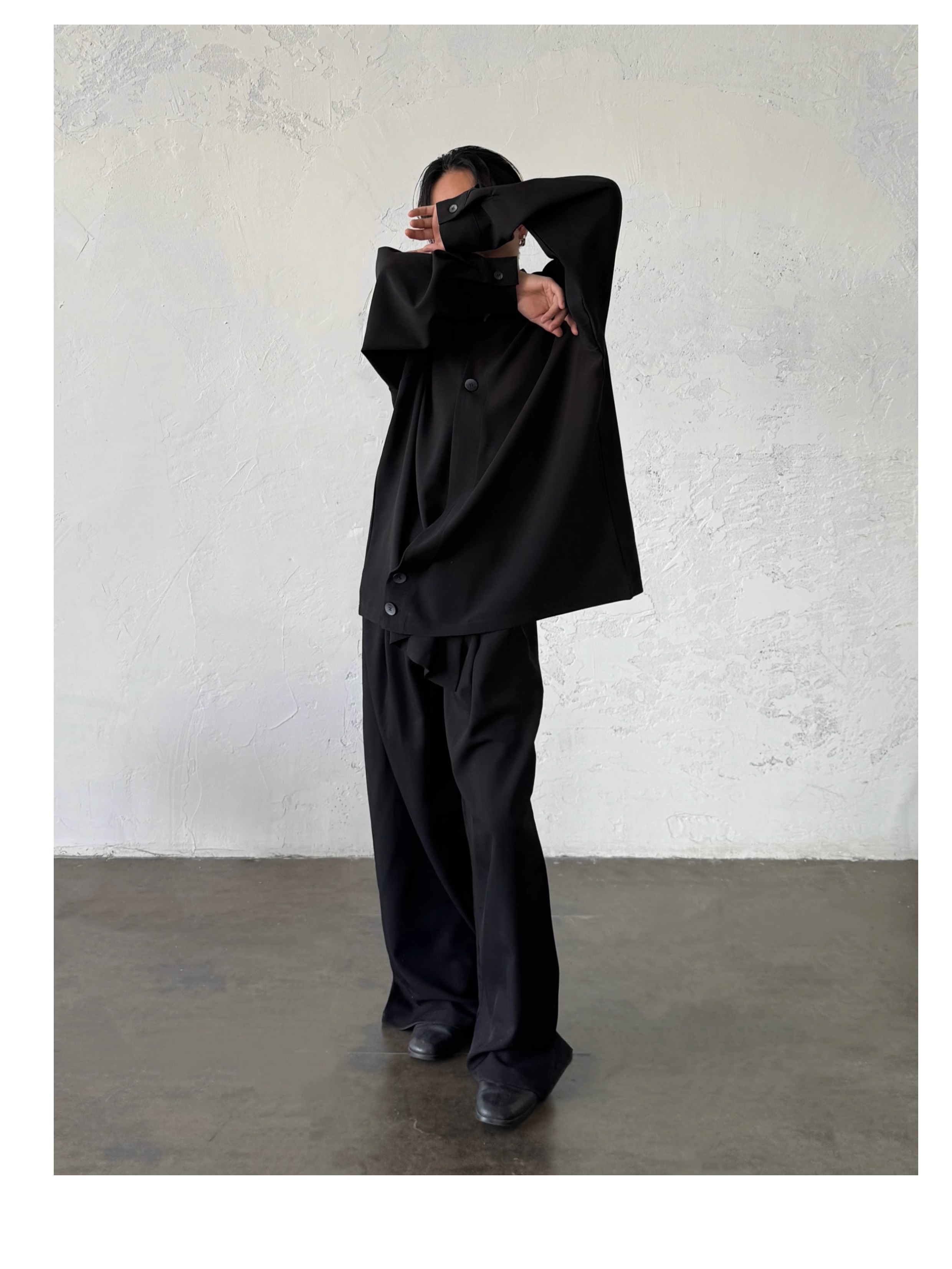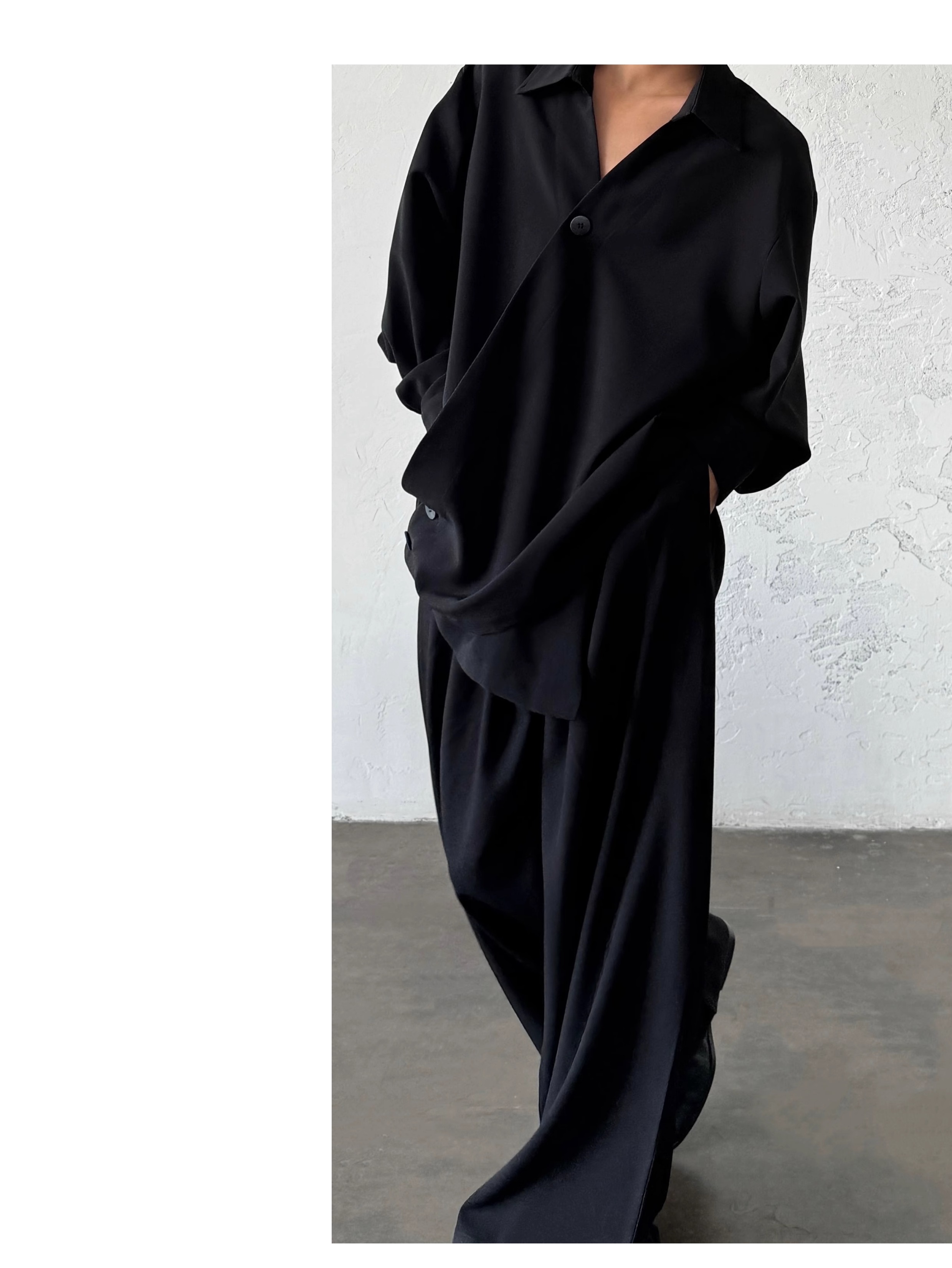 Minimalist Irregular Asymmetric Button V-Neck Long Sleeve Shirt WN20025