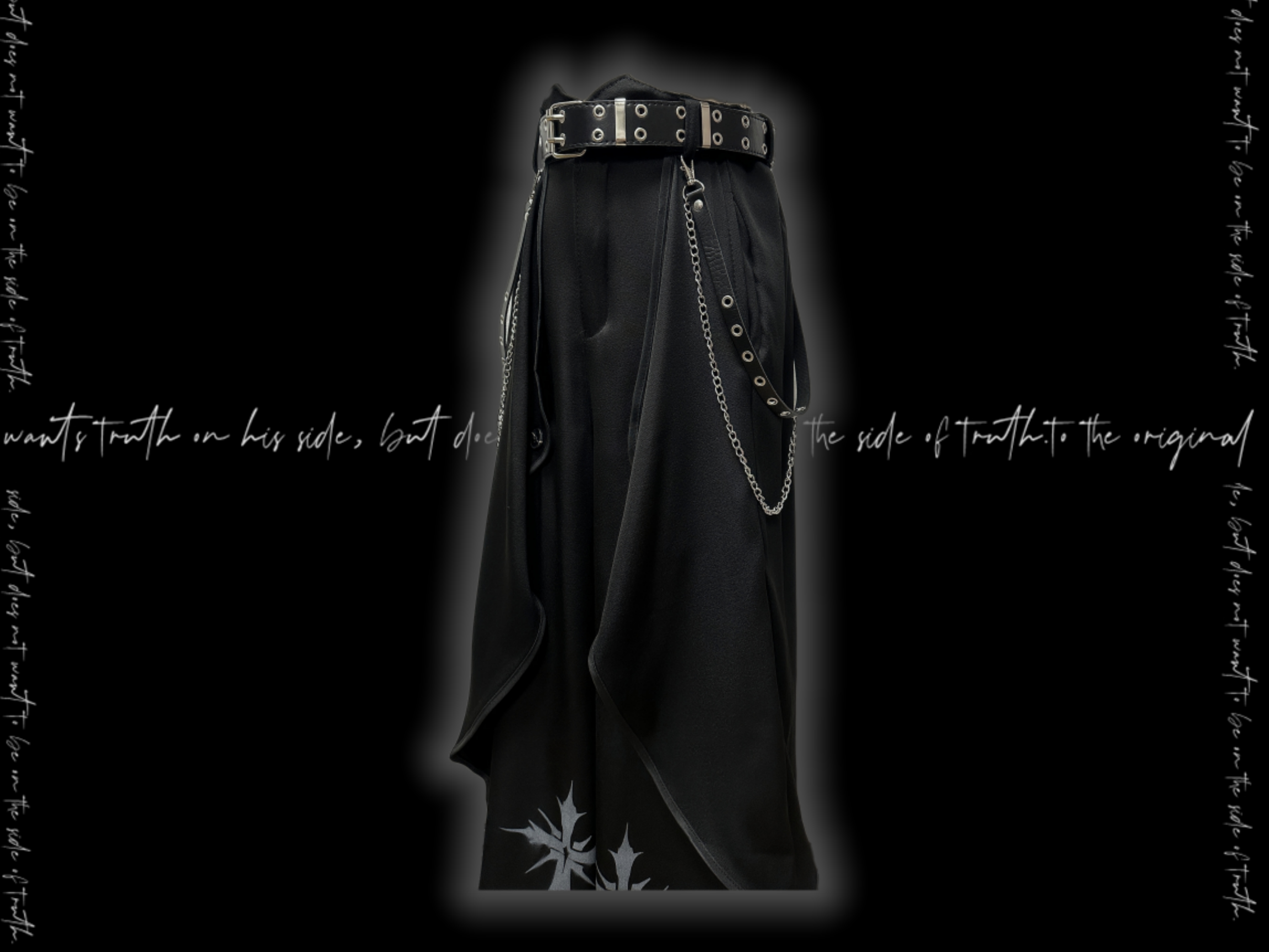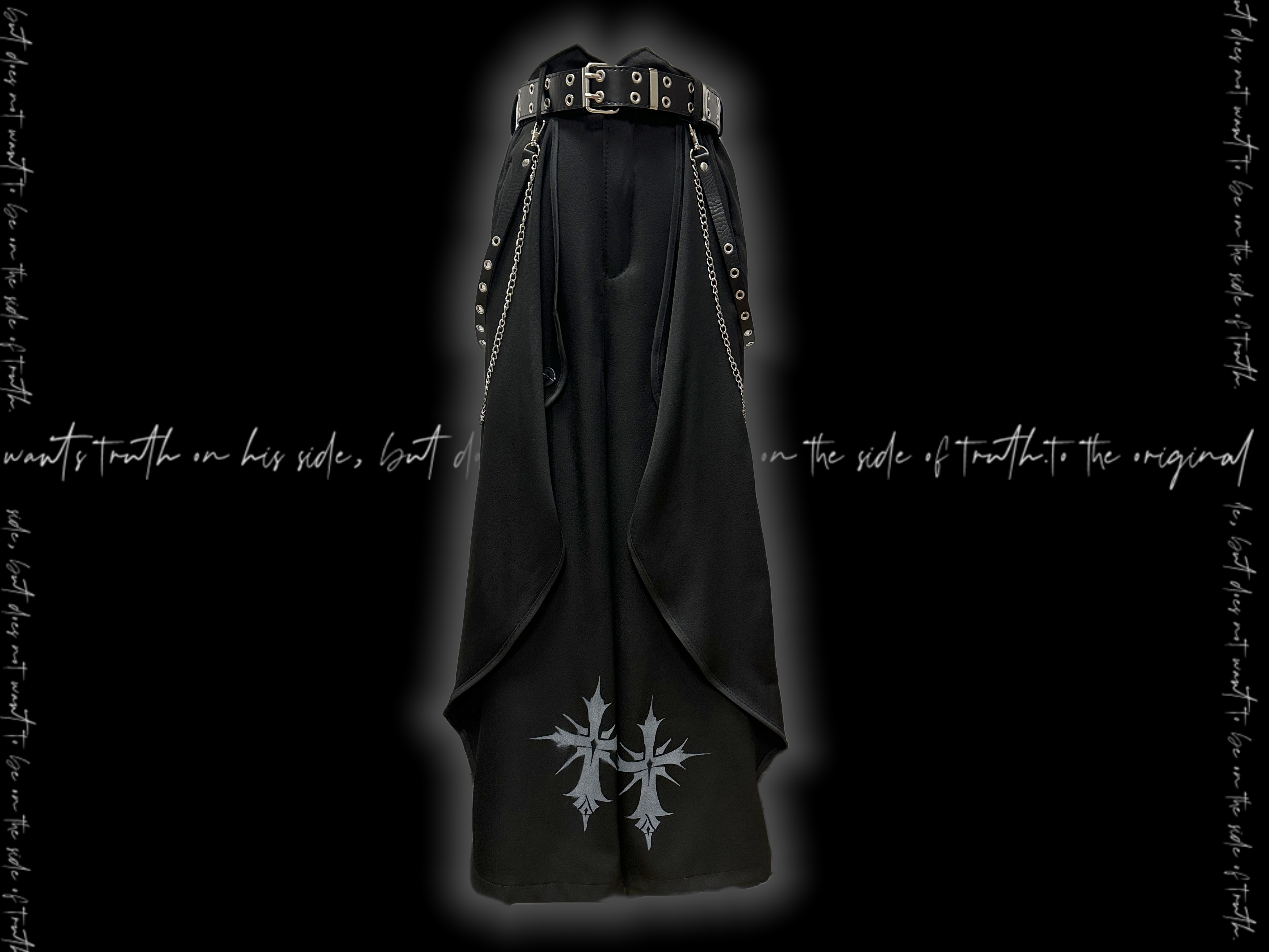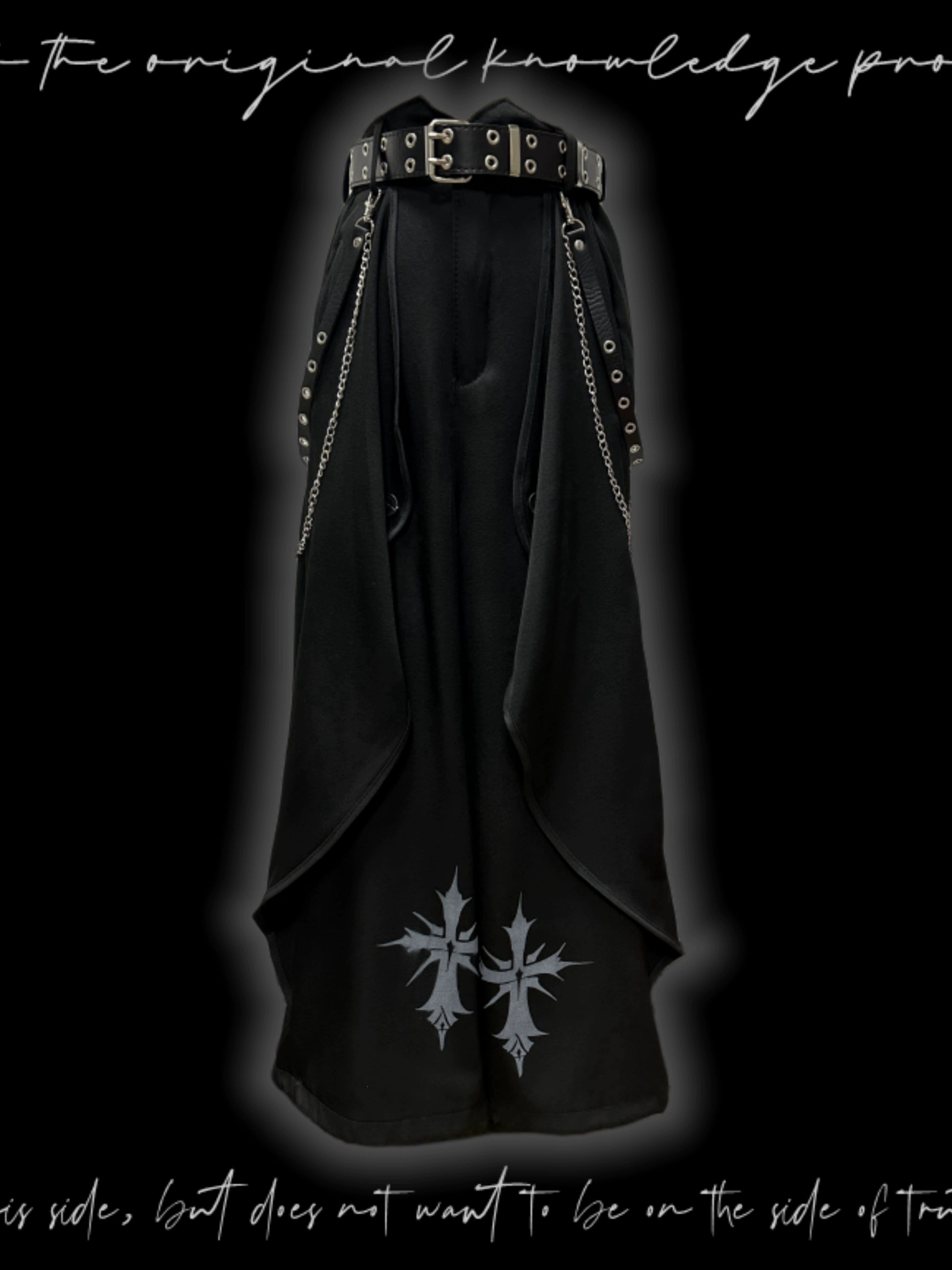 Asymmetric Layered Wide Leg Trousers & Belt & Chain WN20093