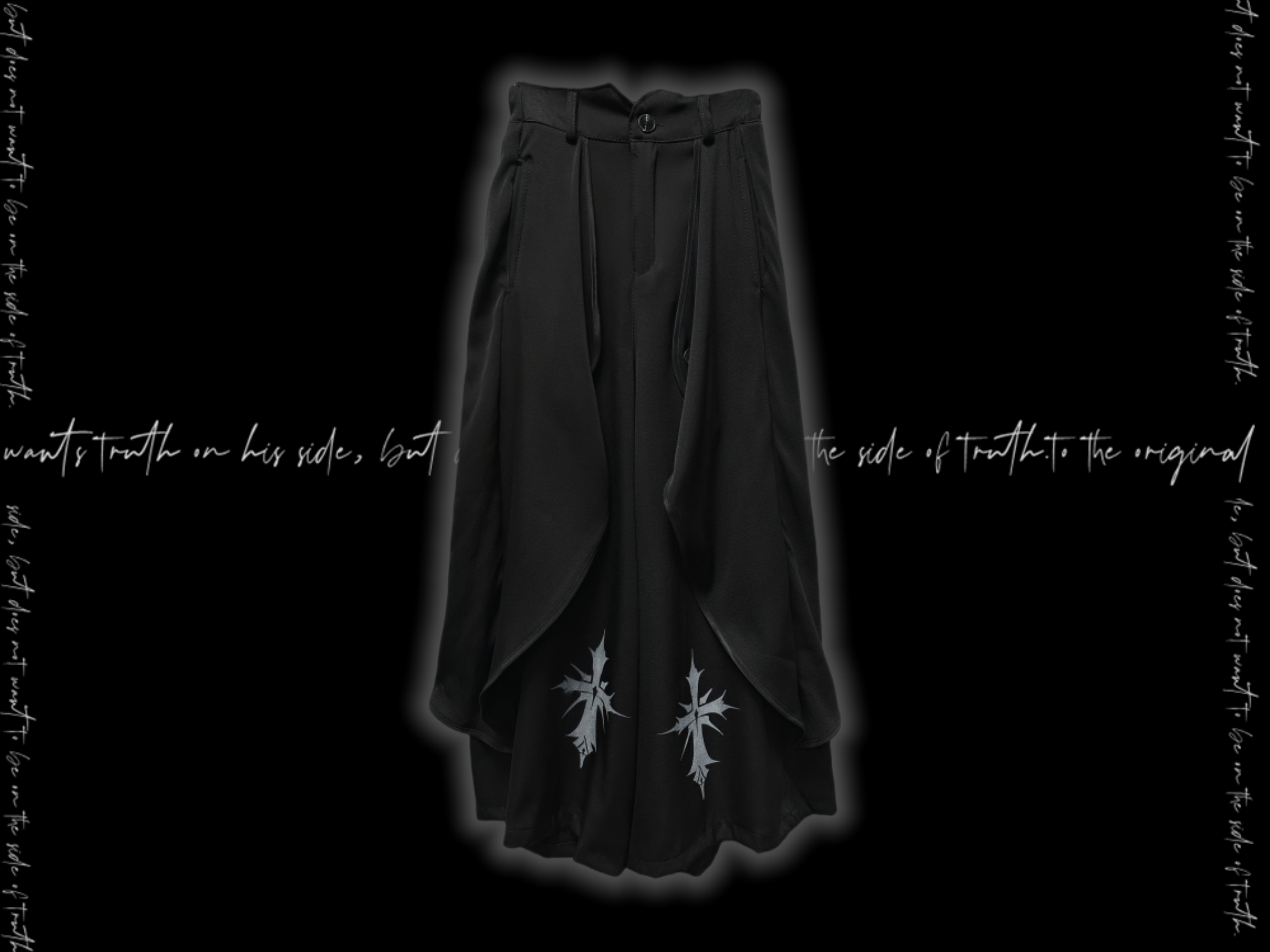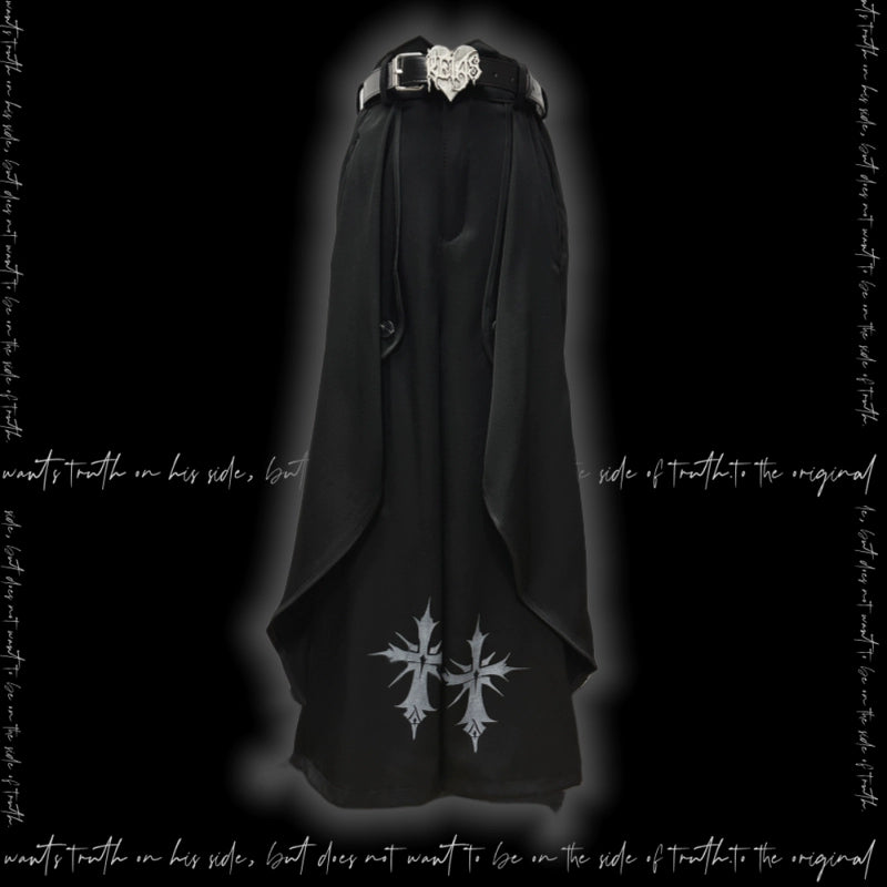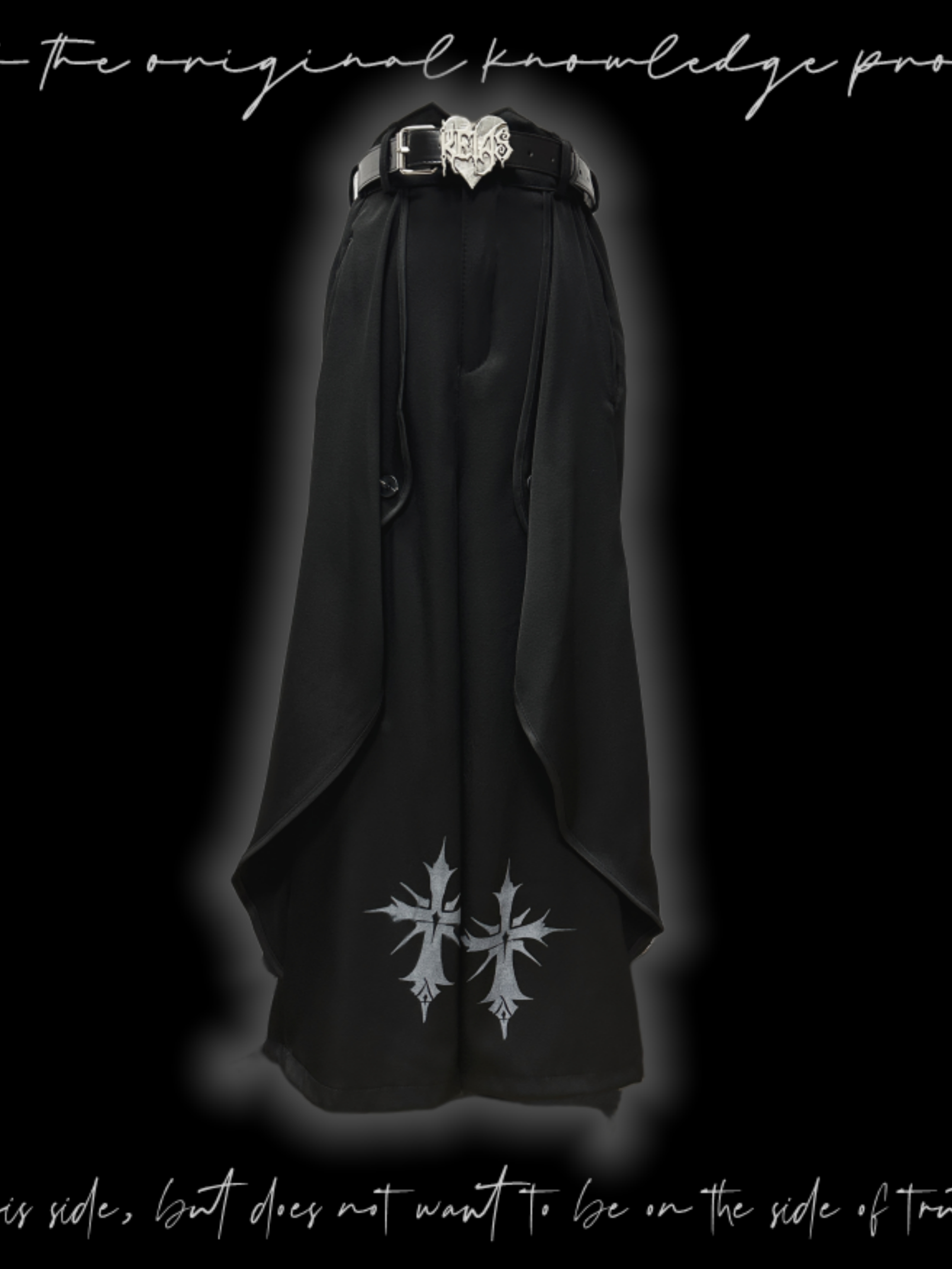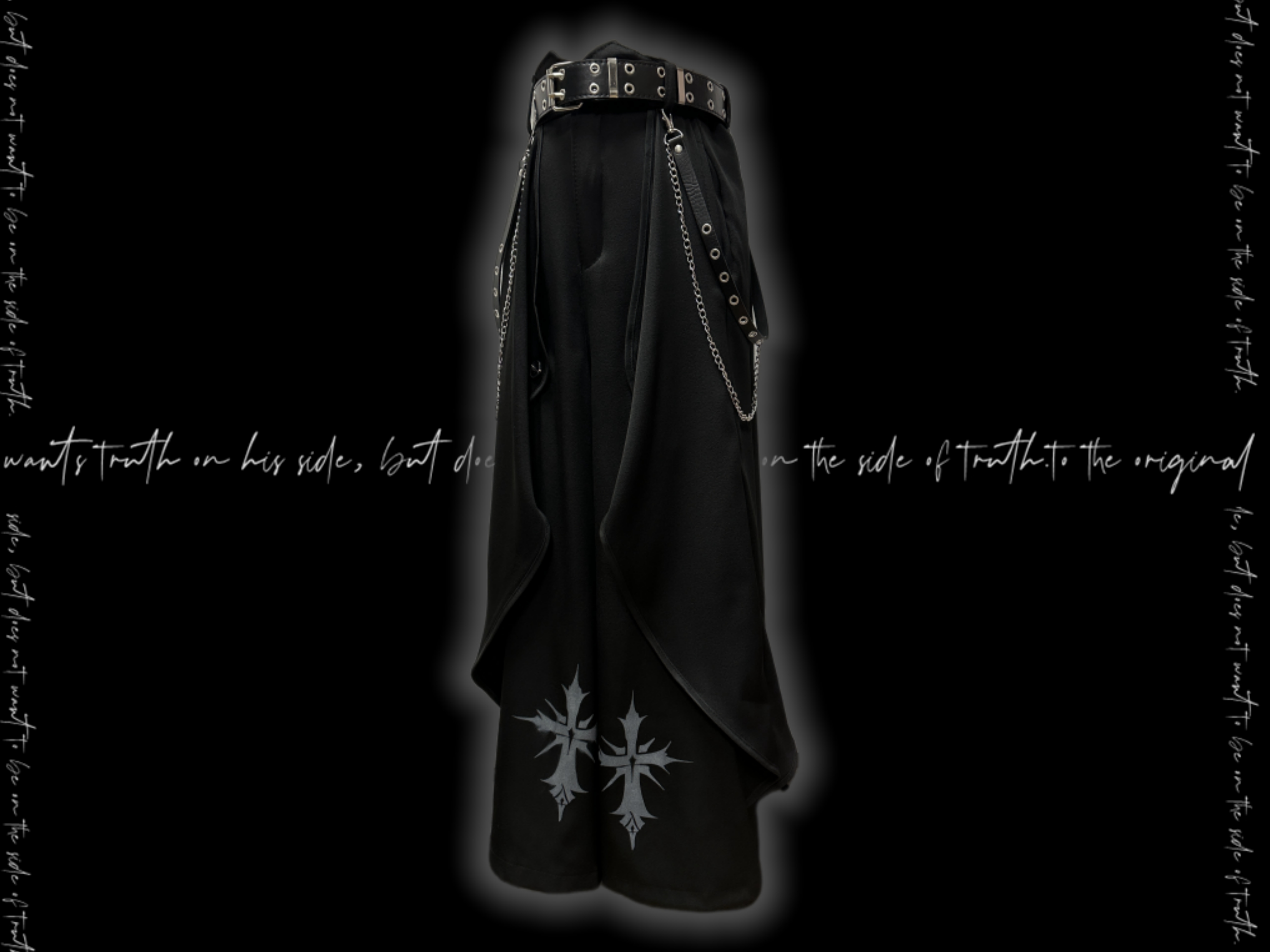 Asymmetric Layered Wide Leg Trousers & Belt & Chain WN20093