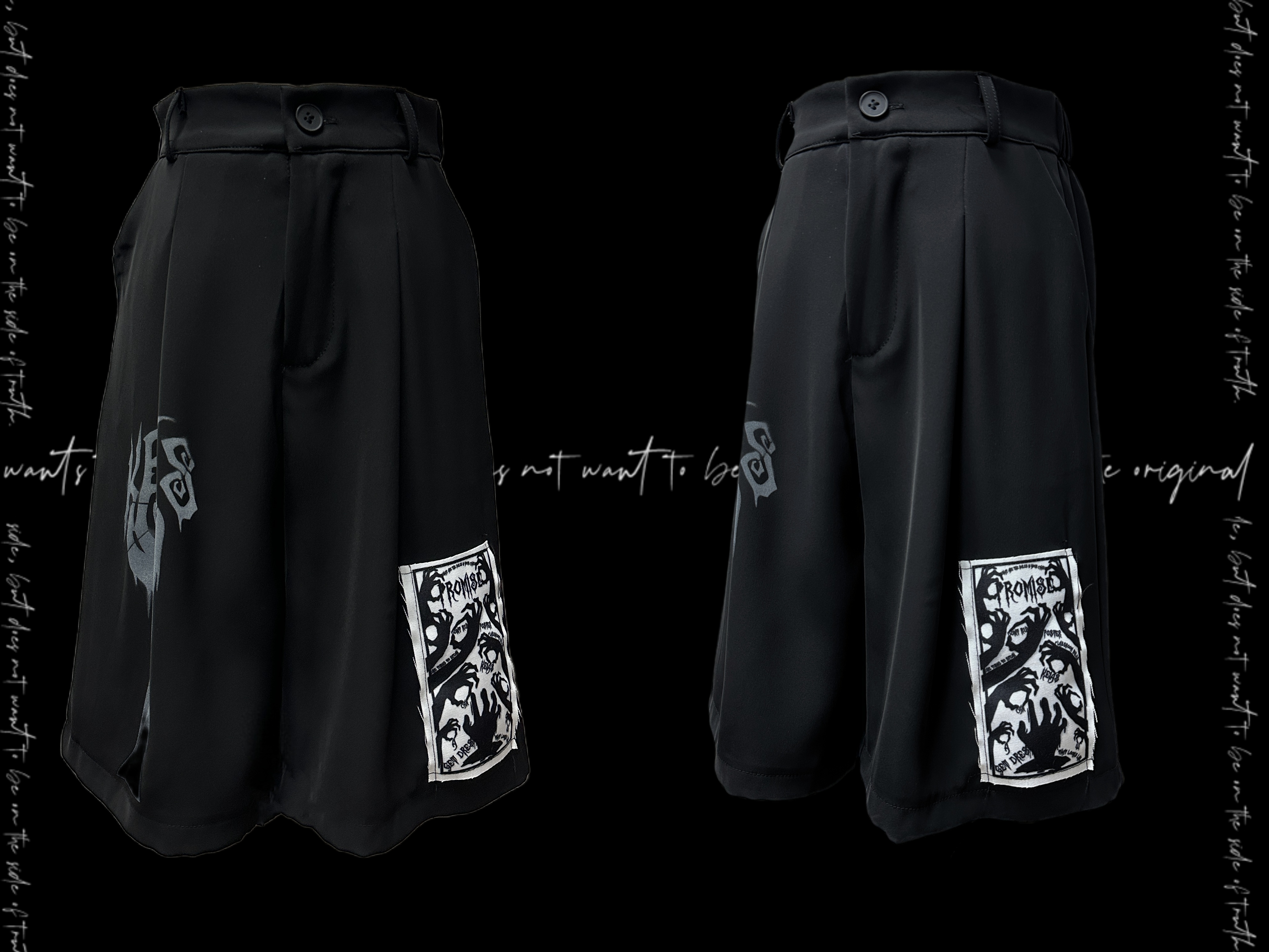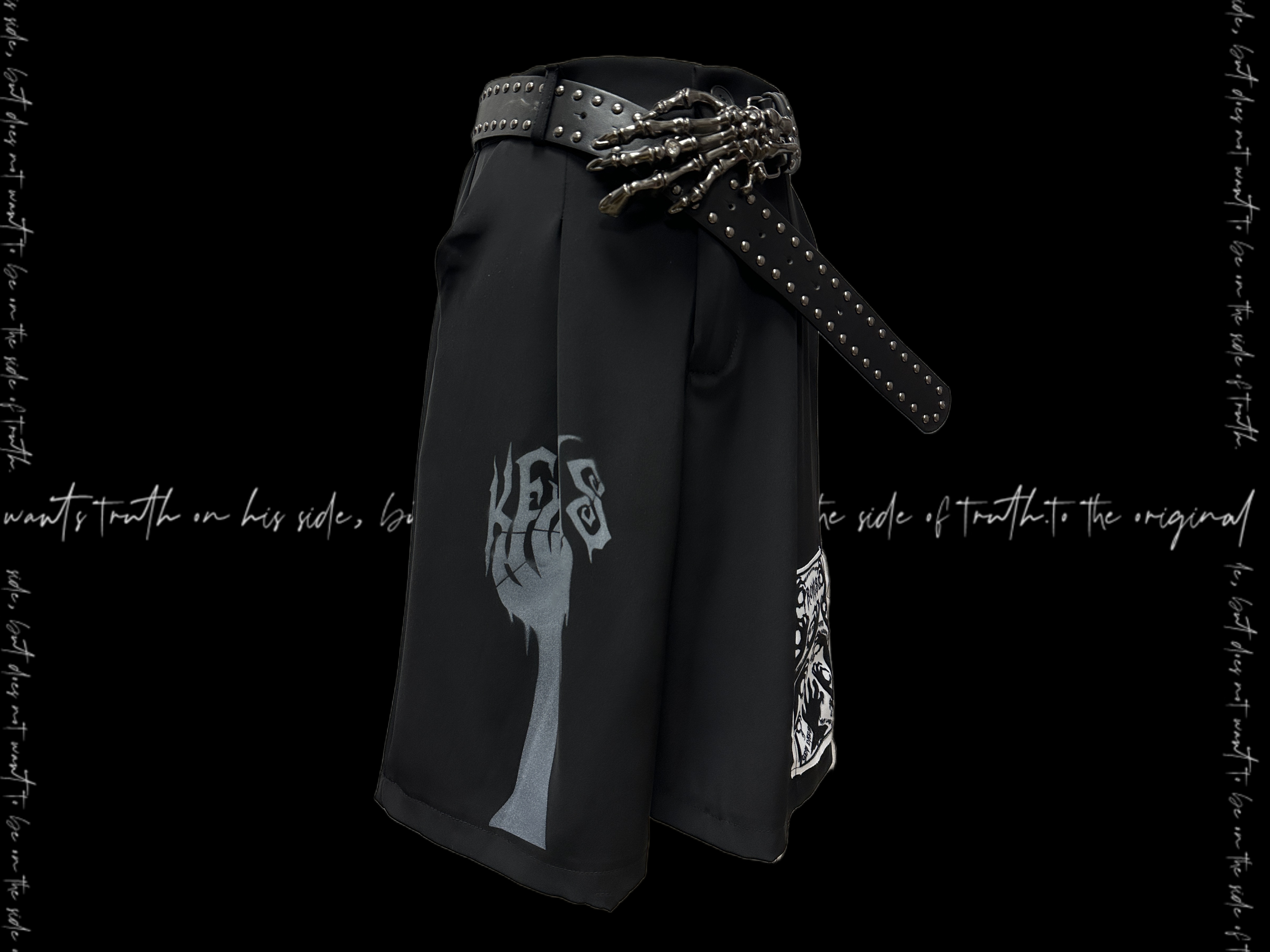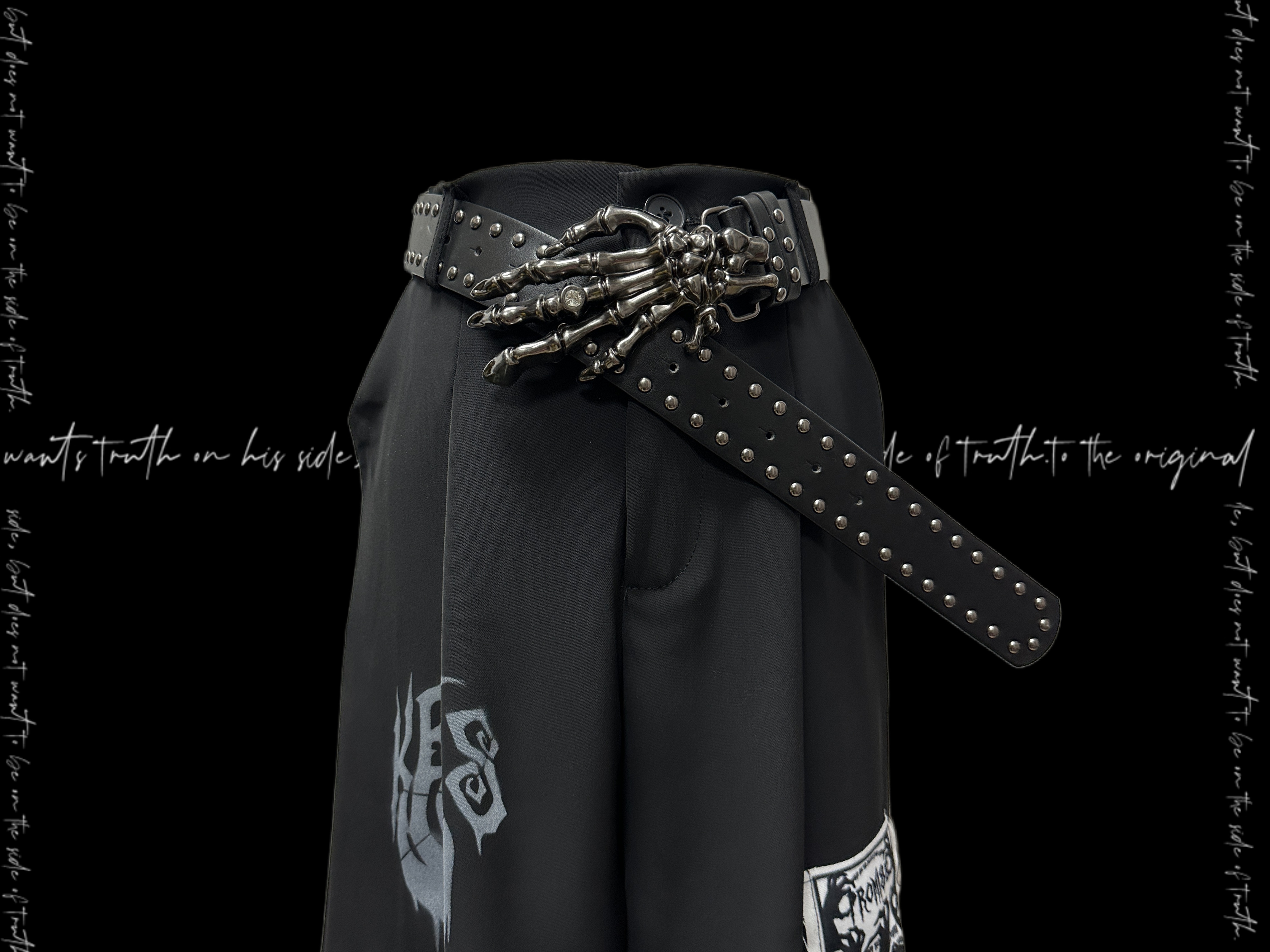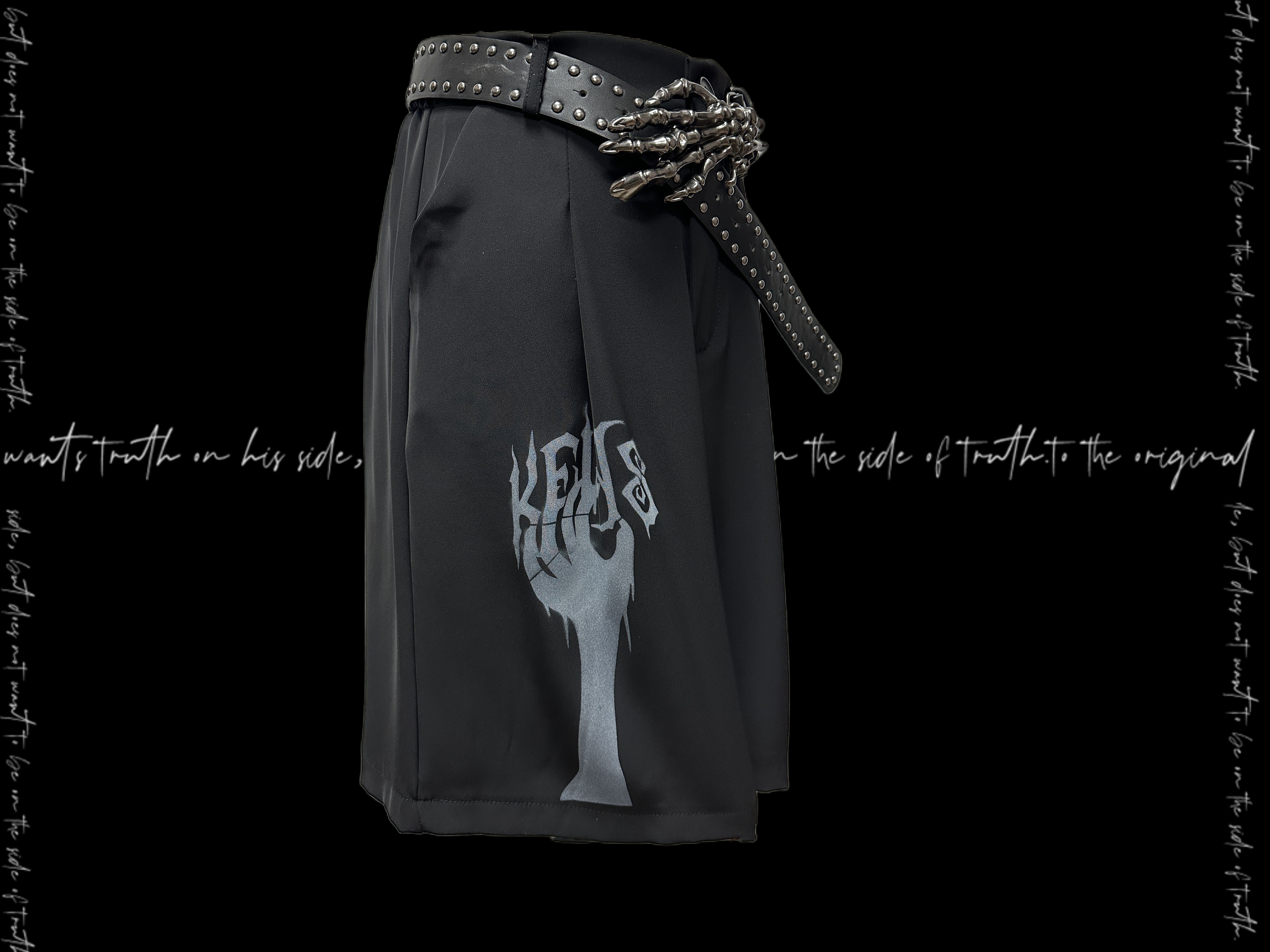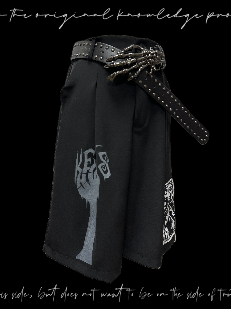Patch Pleats Straight Half Pants & Skull Belt WN20105
