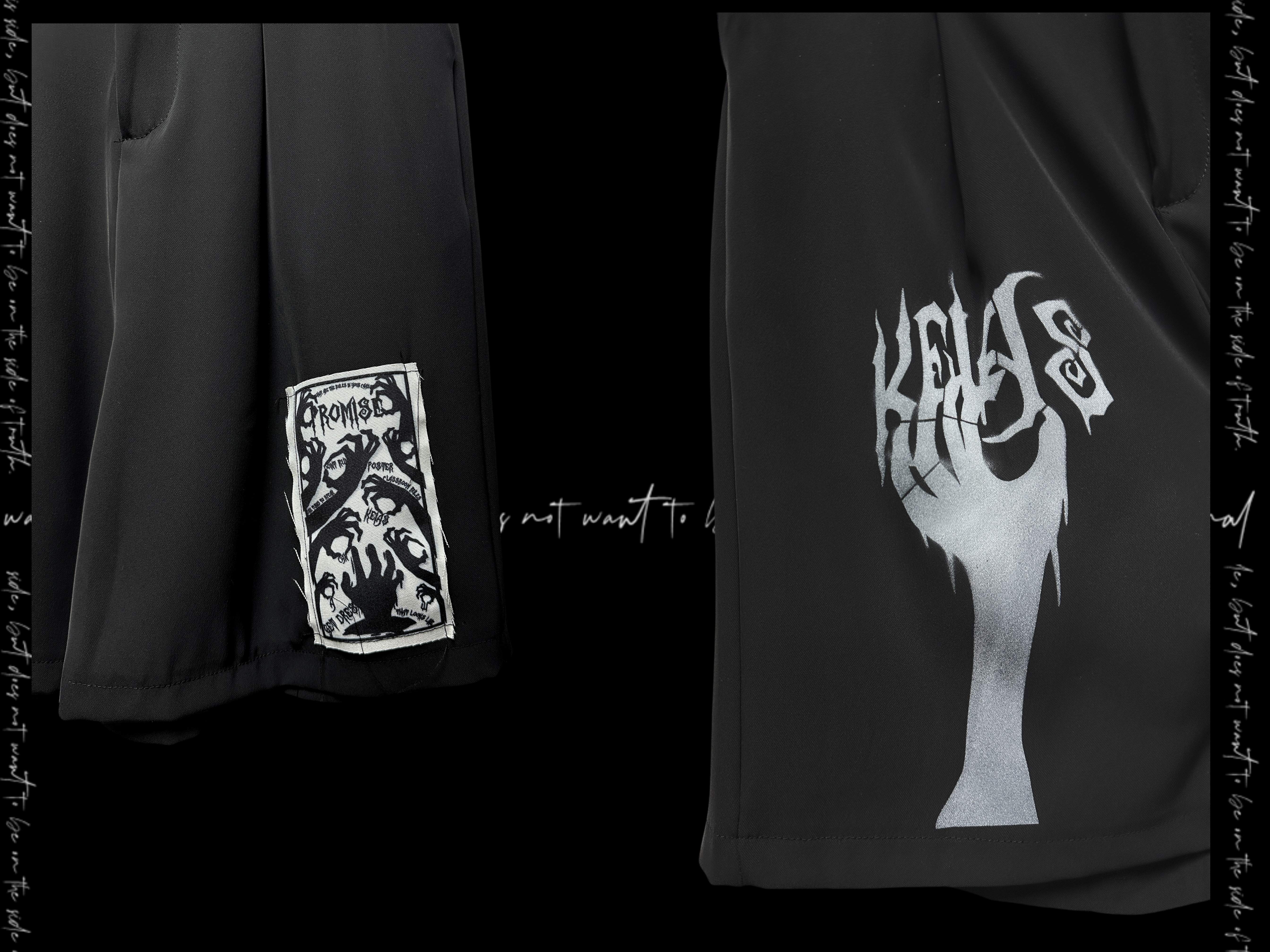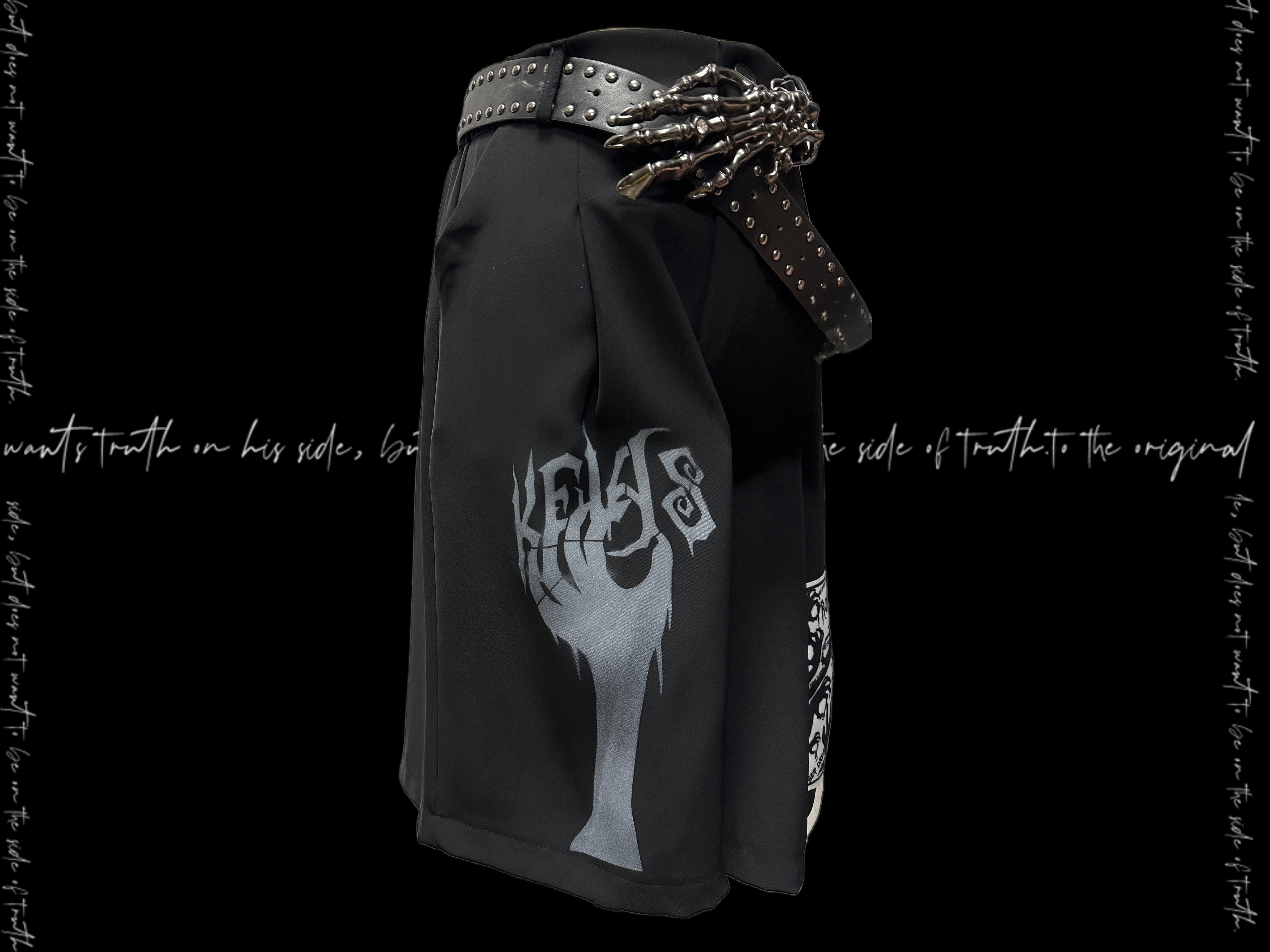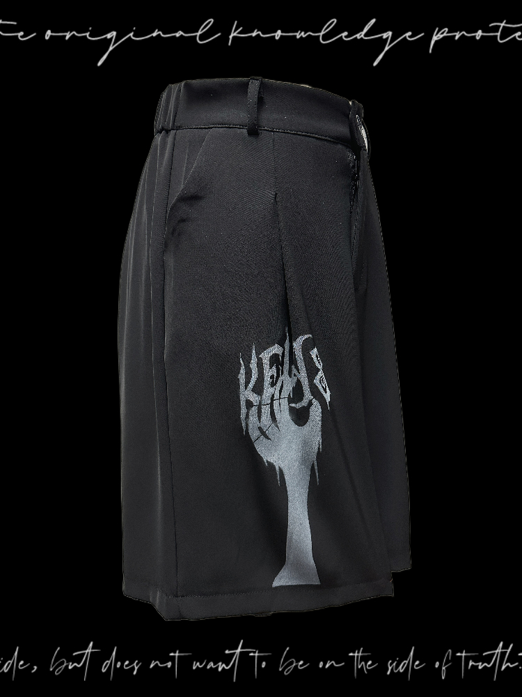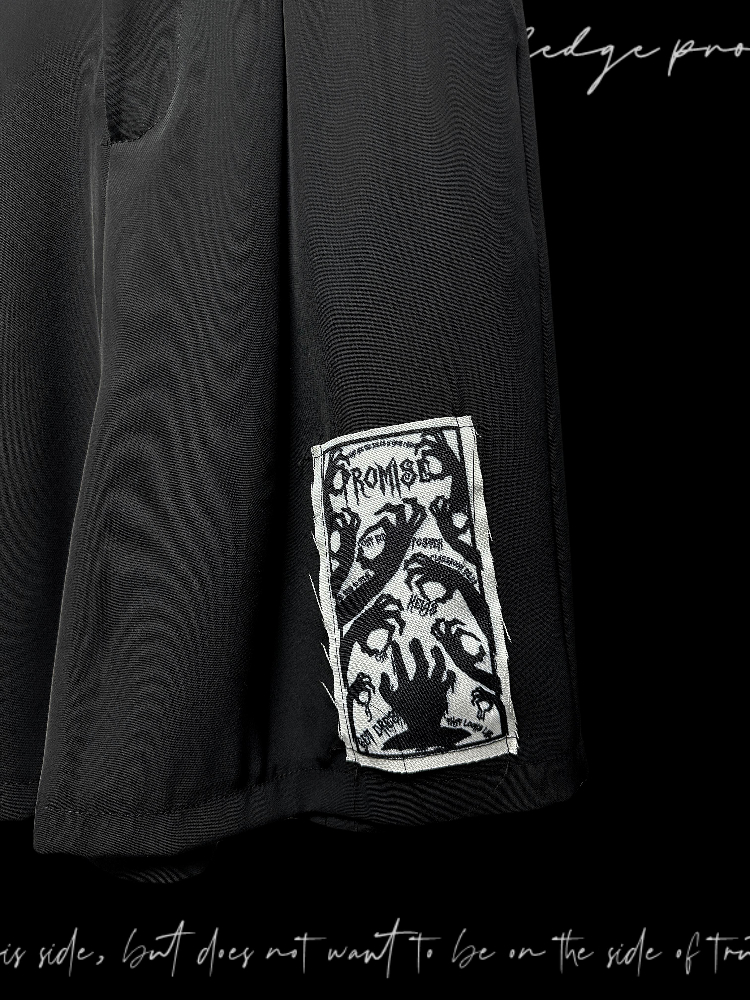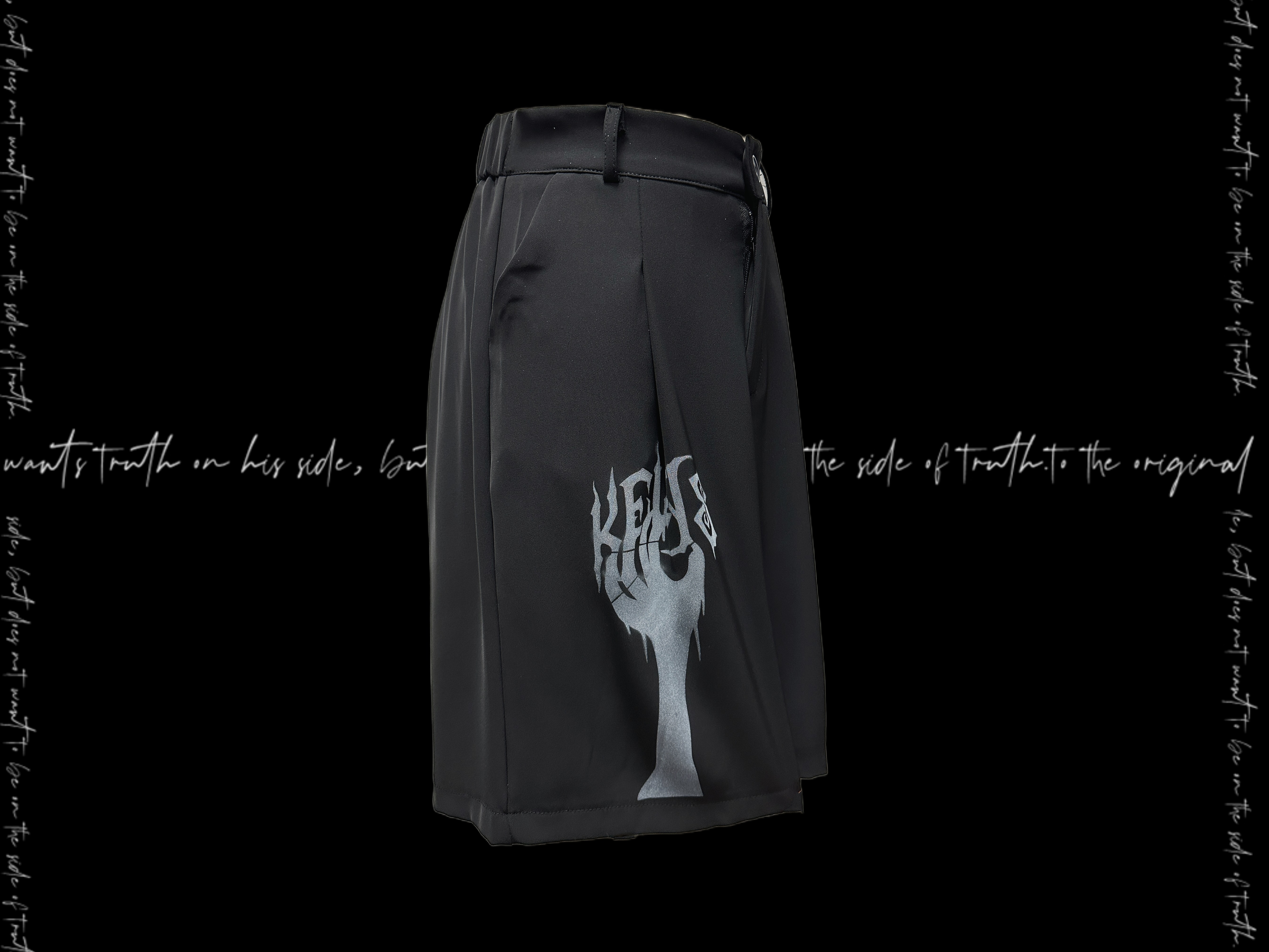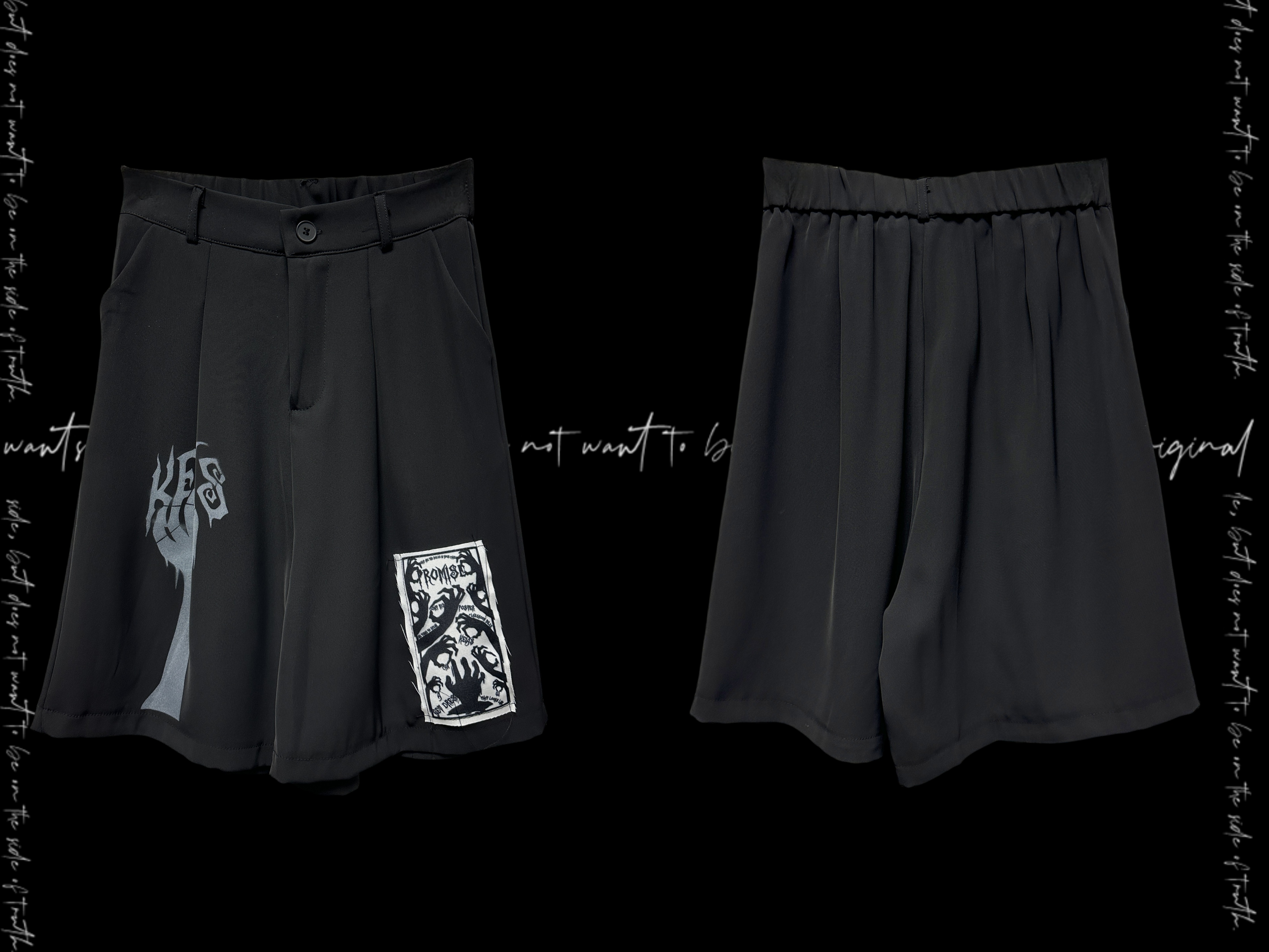 Patch Pleats Straight Half Pants & Skull Belt WN20105