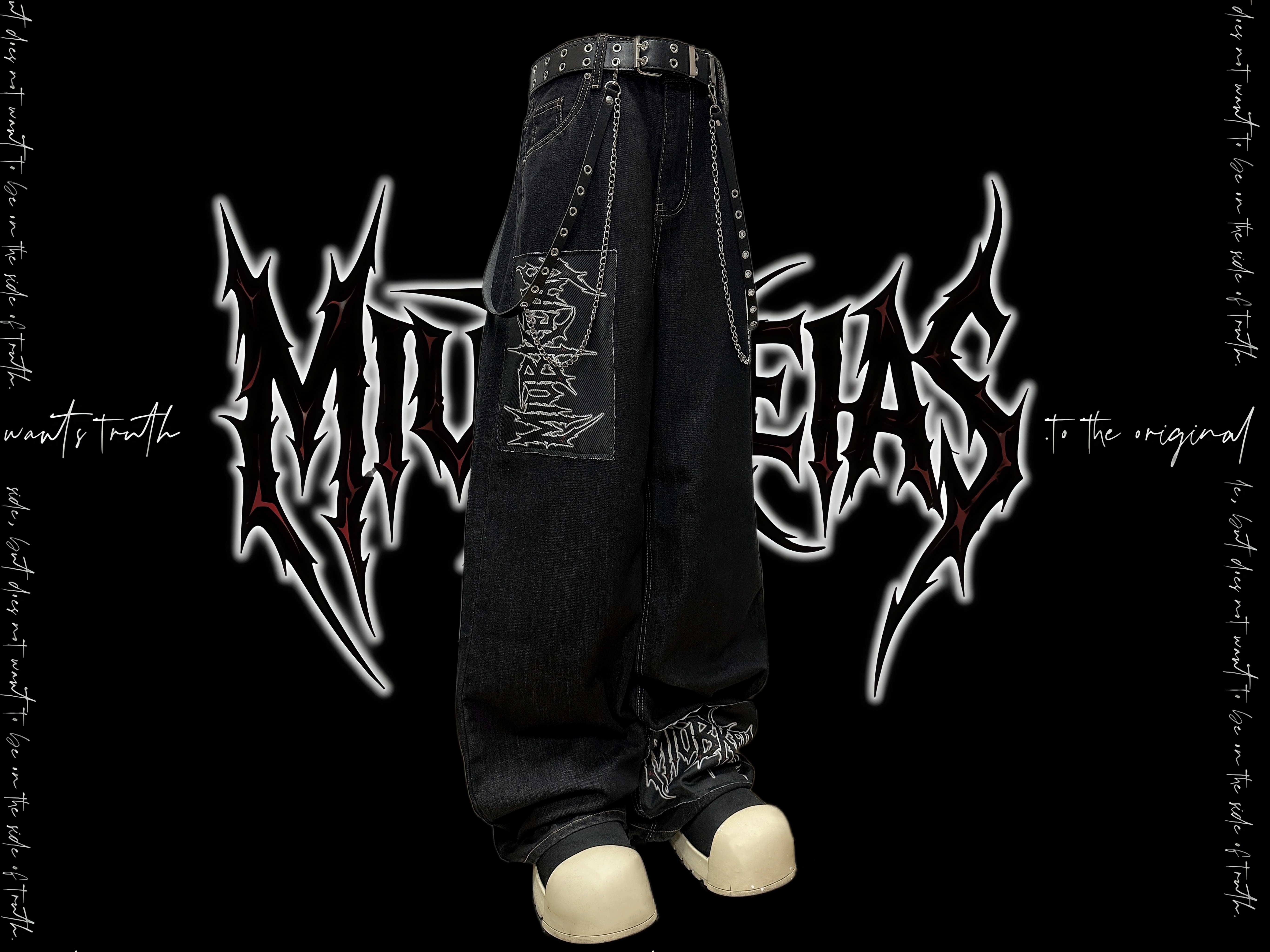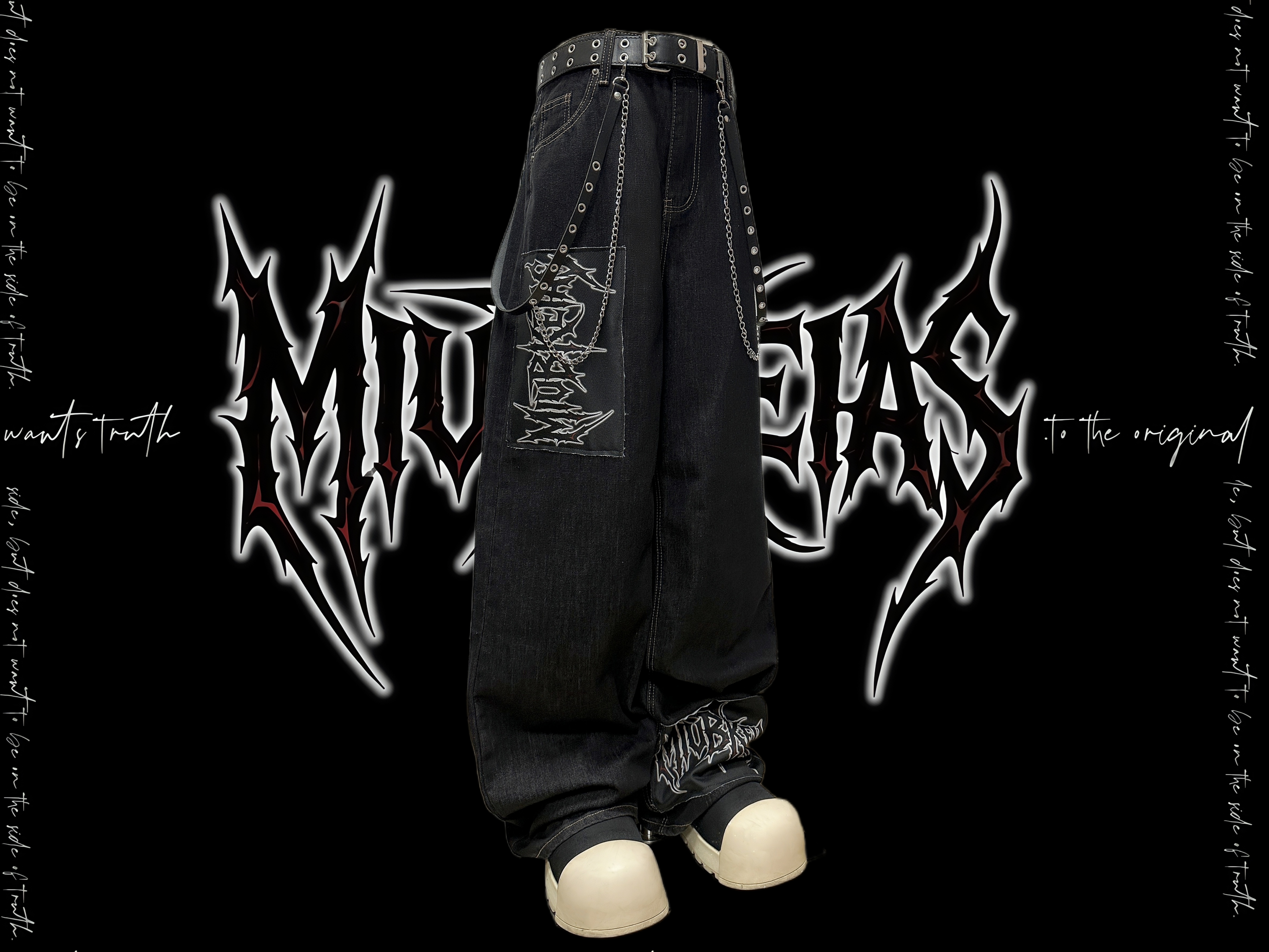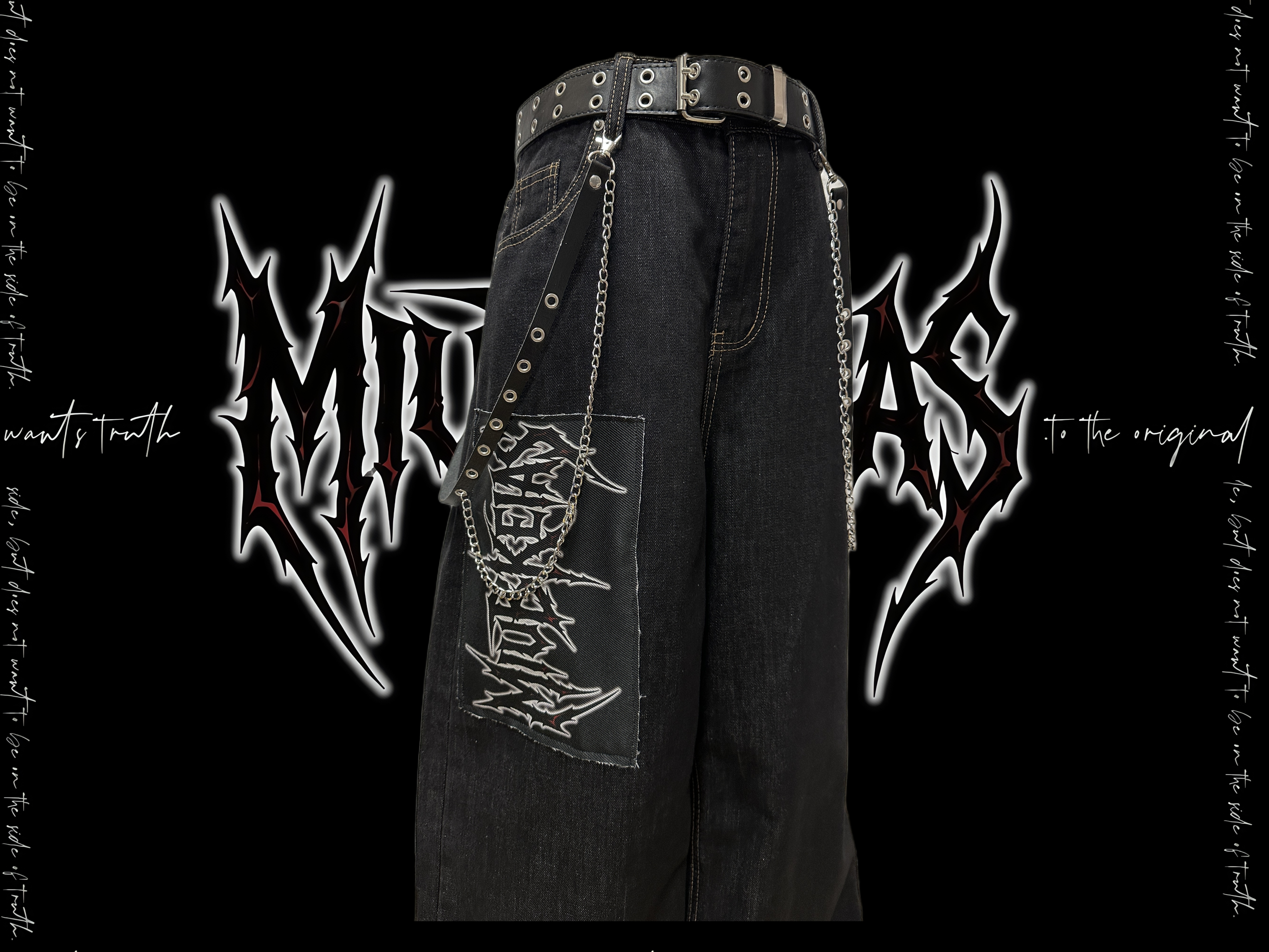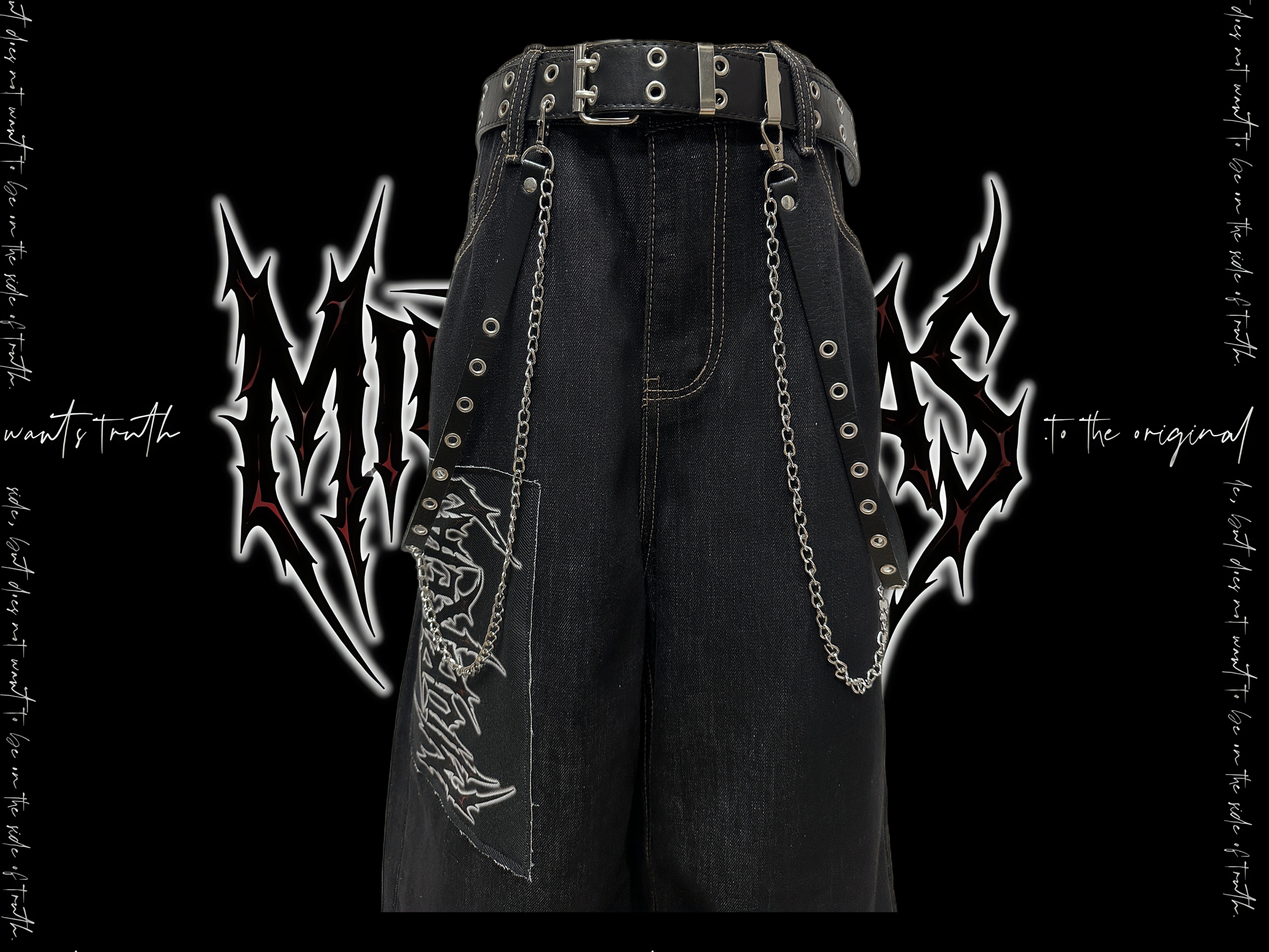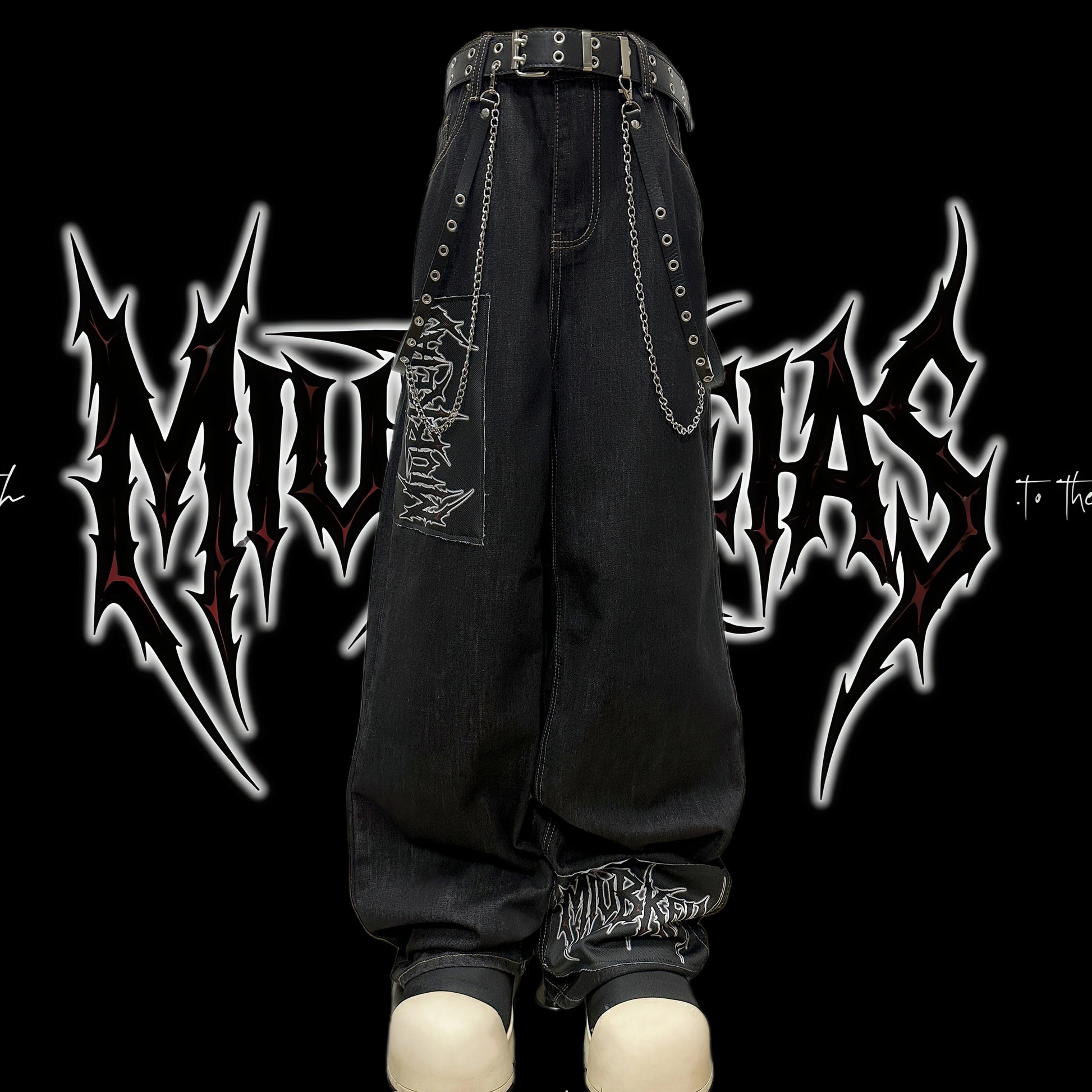 Graphic Letter Patchwork Wide Leg Denim Jeans & Belt & Chain WN20137