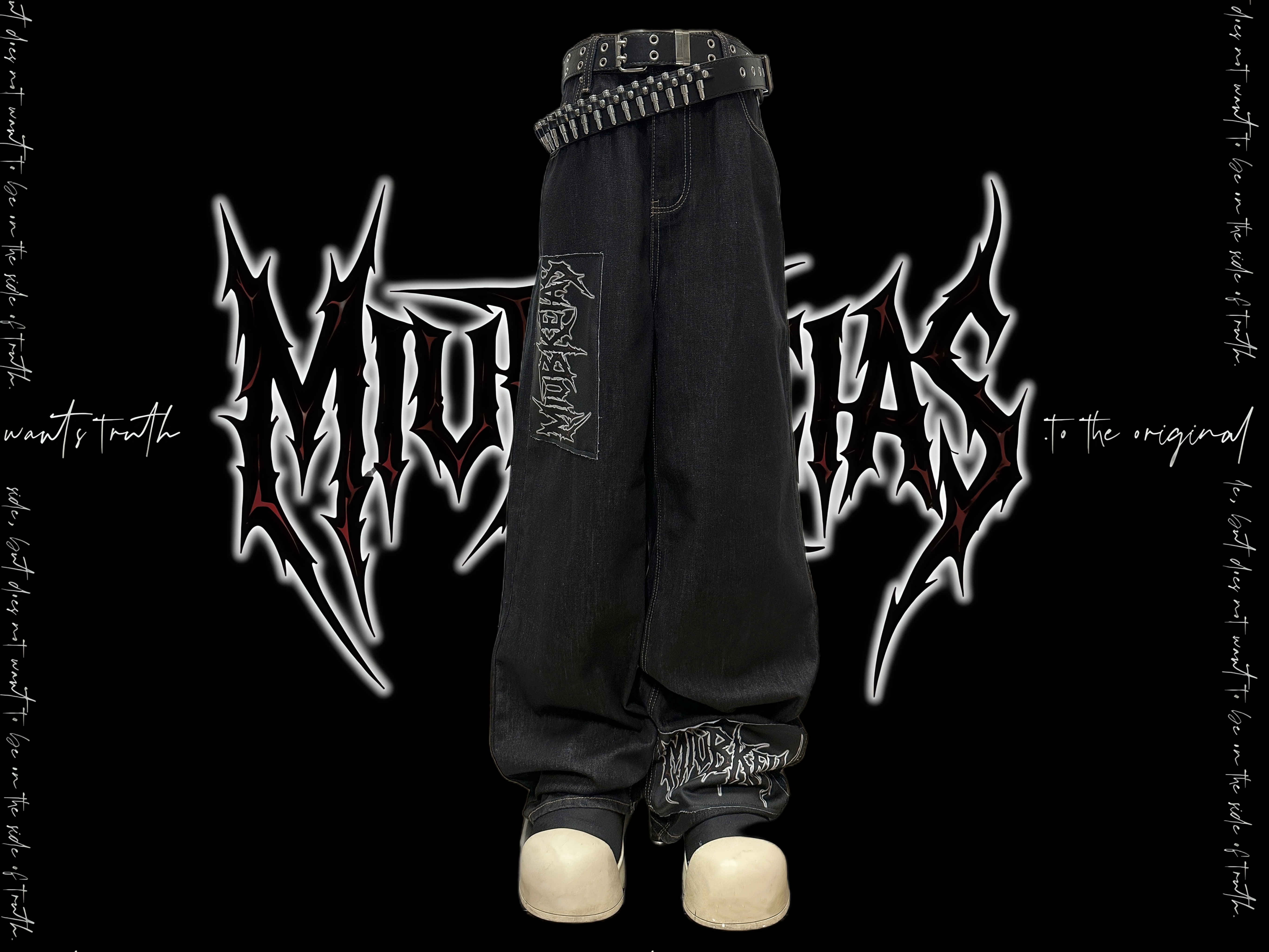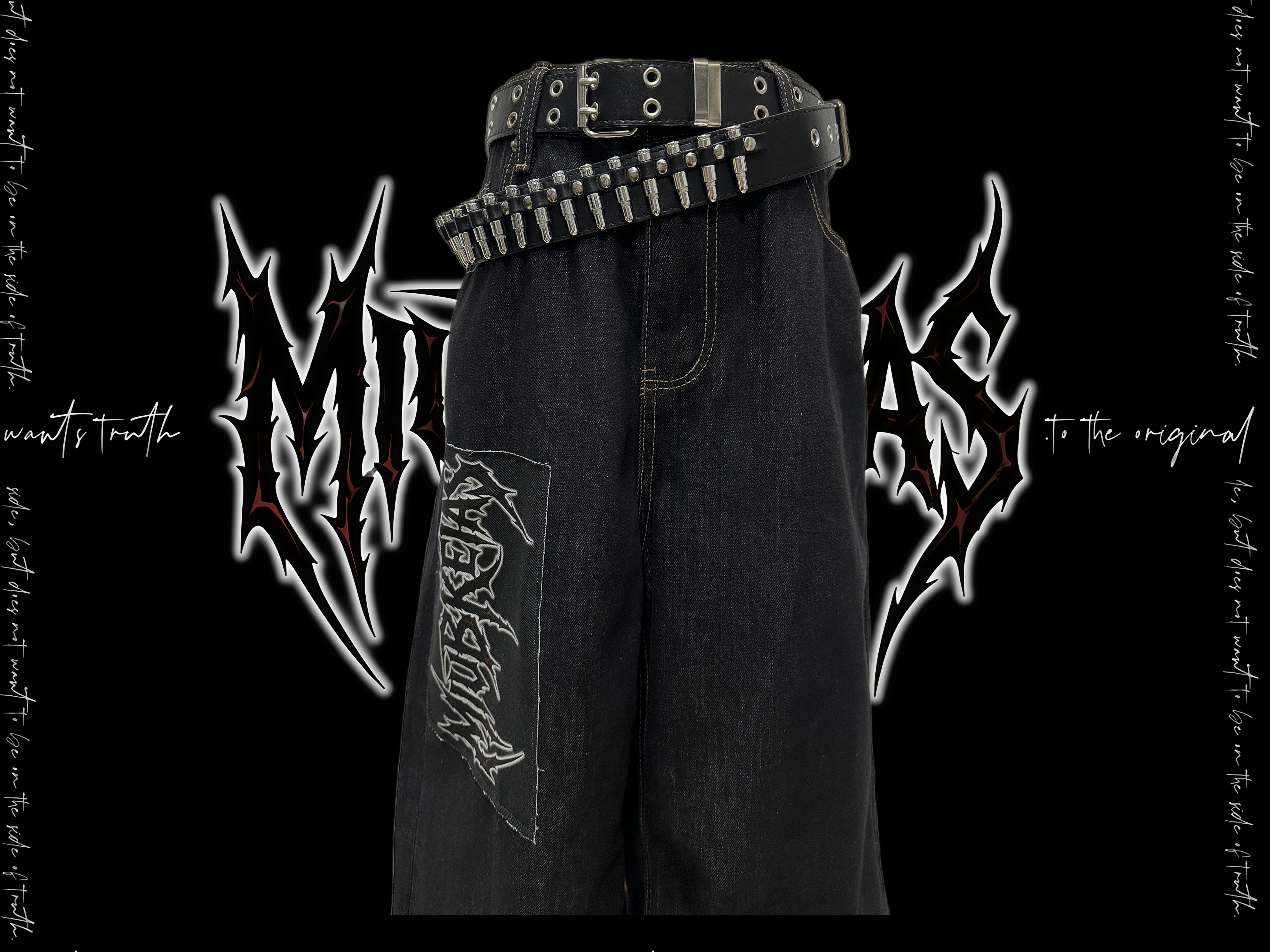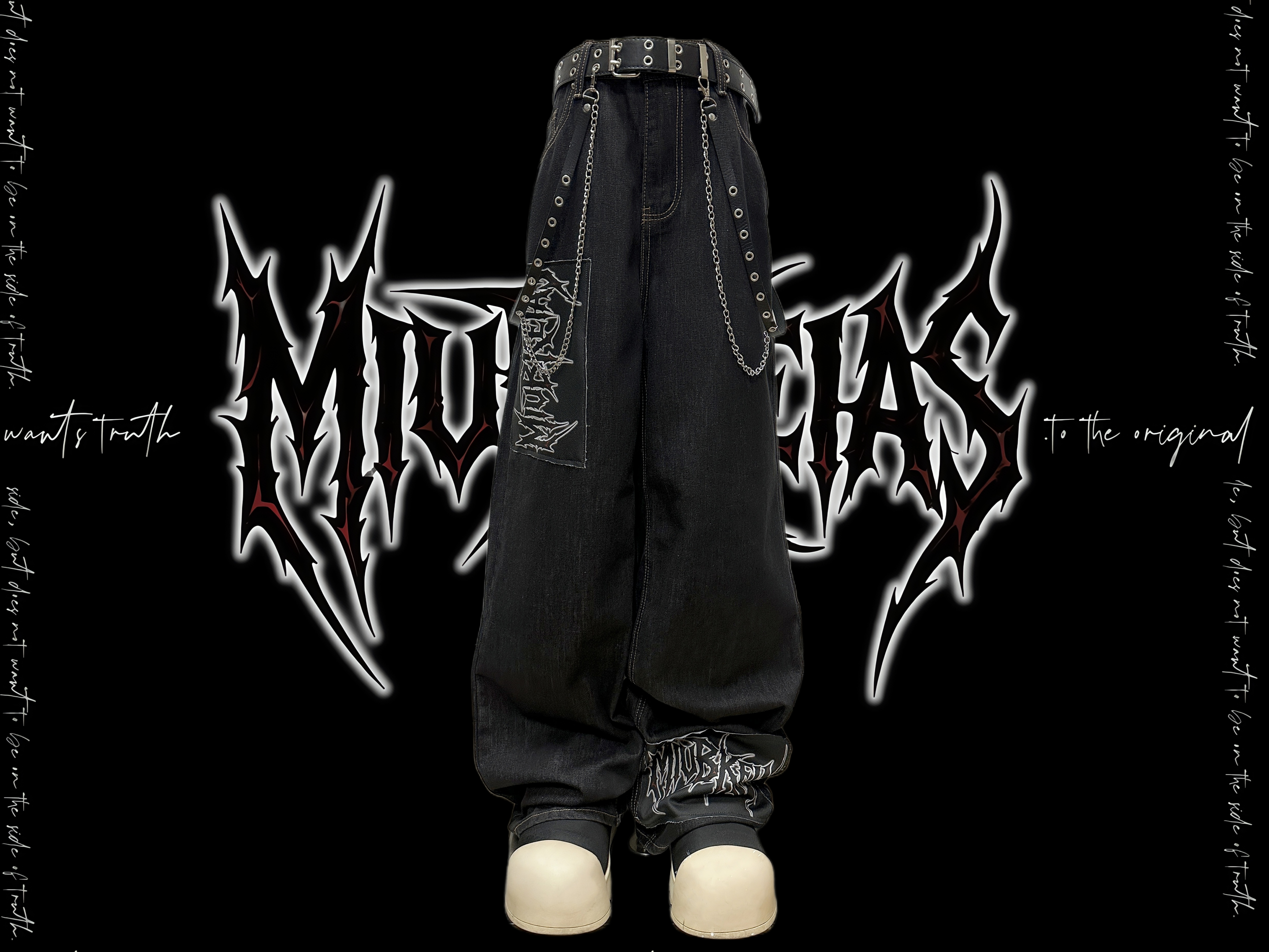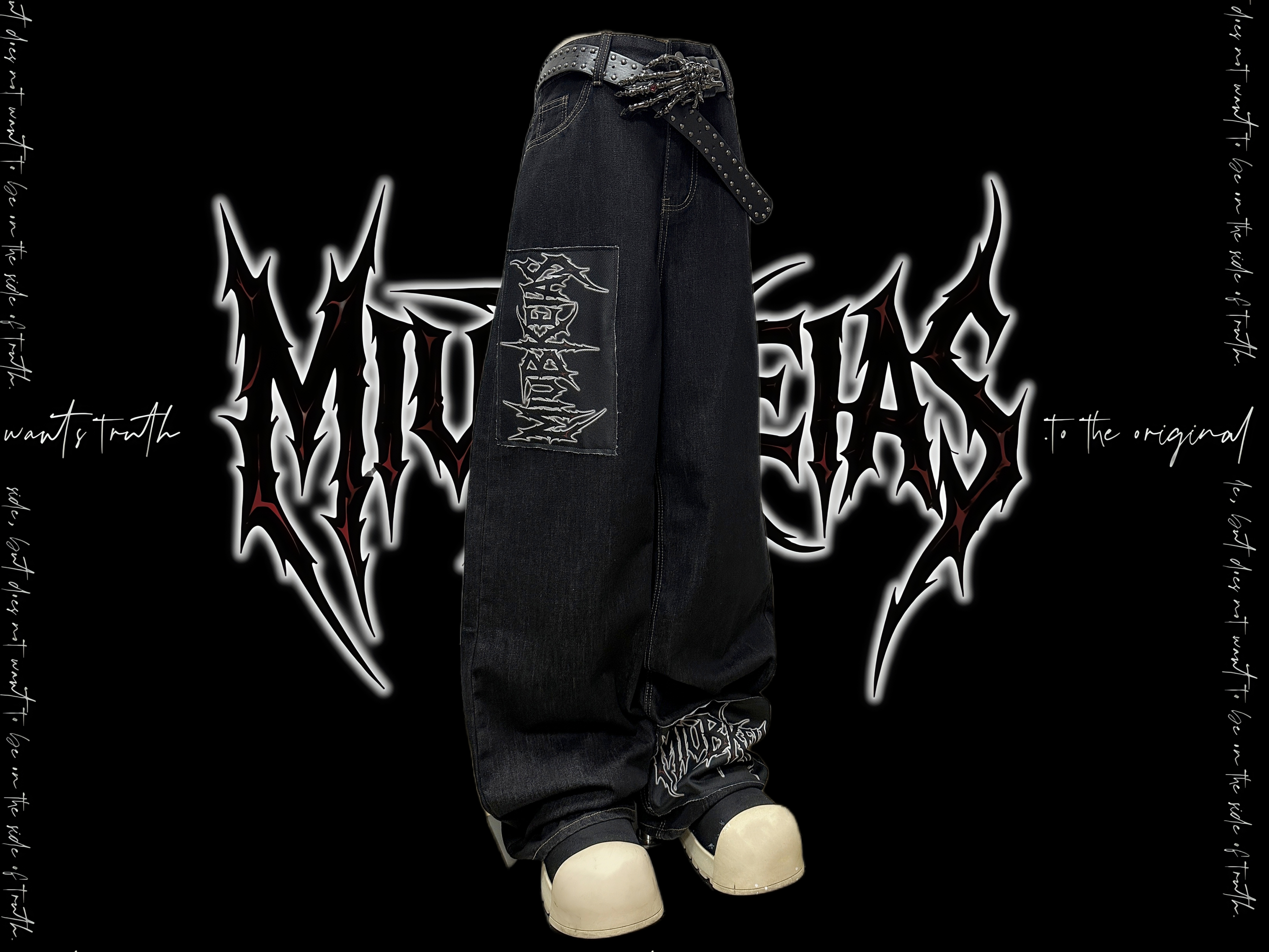 Graphic Letter Patchwork Wide Leg Denim Jeans & Belt & Chain WN20137
