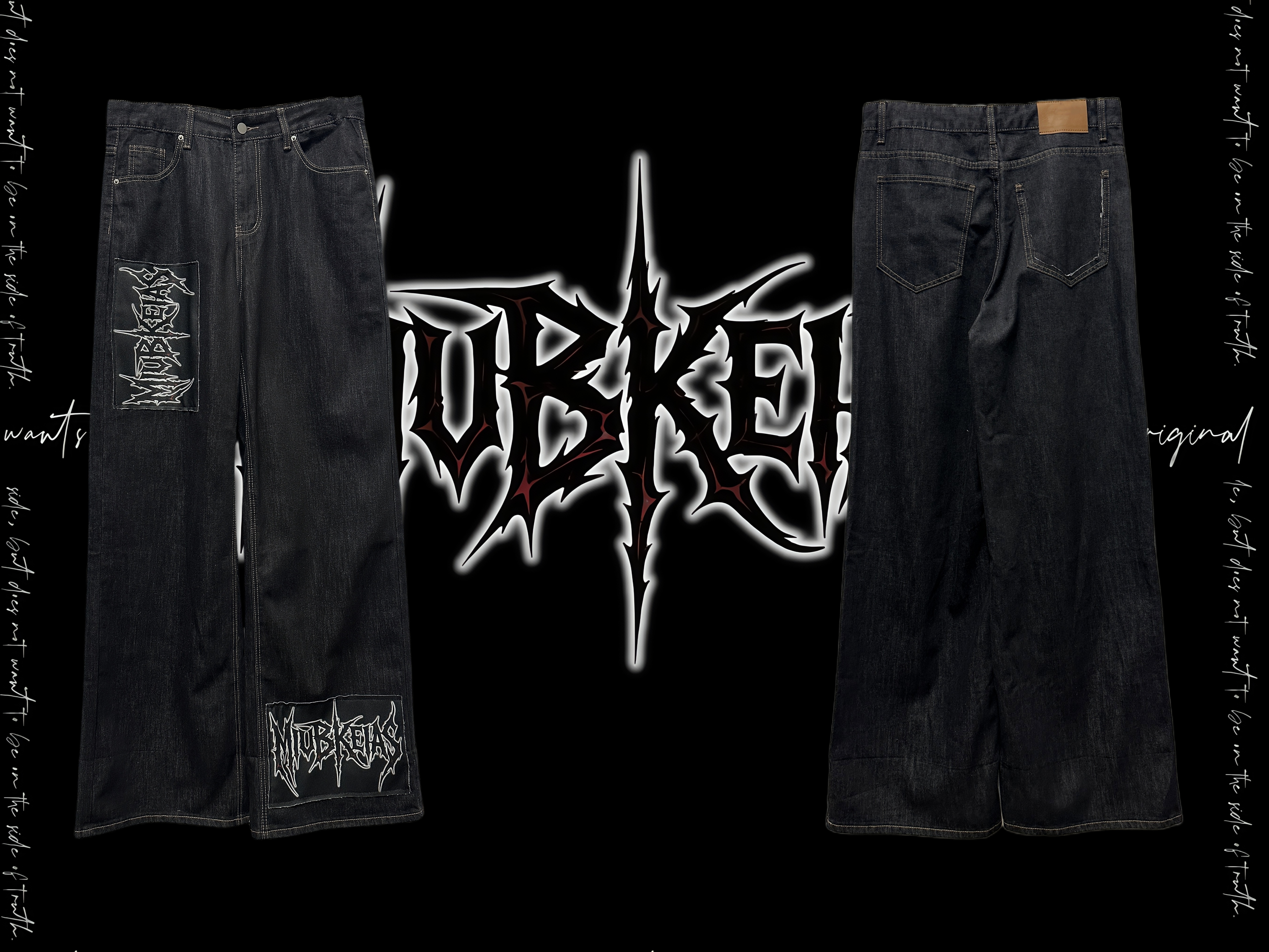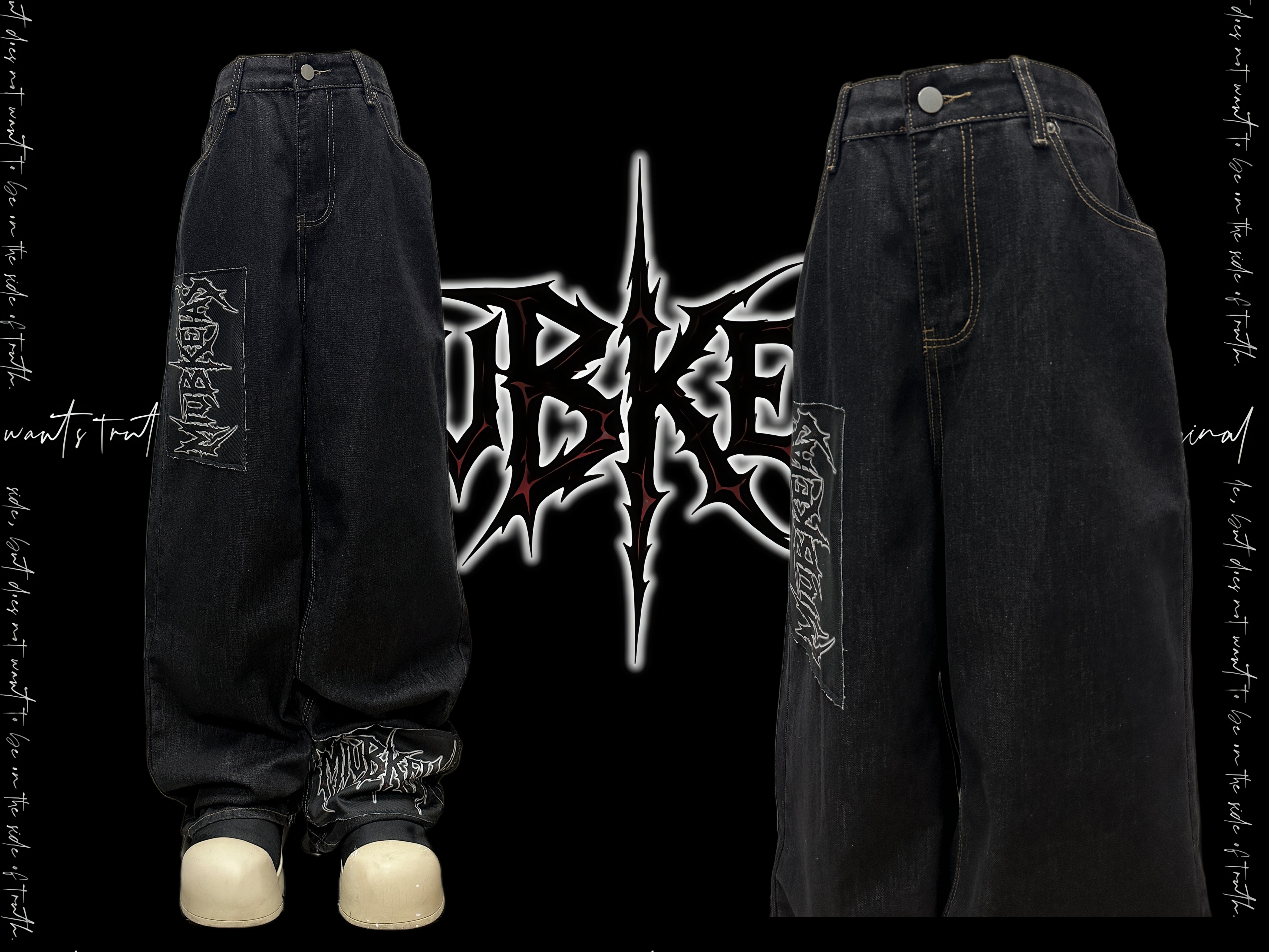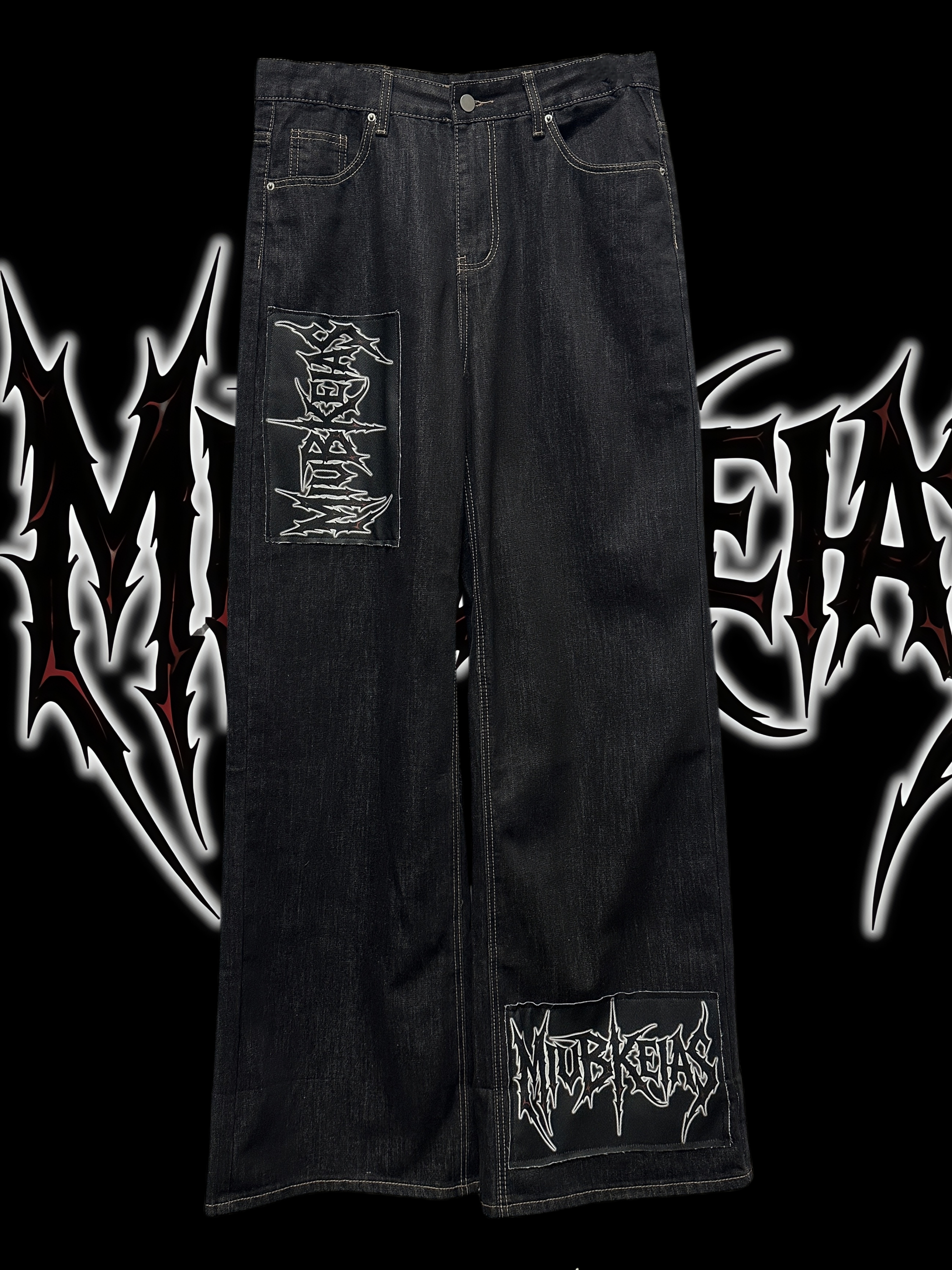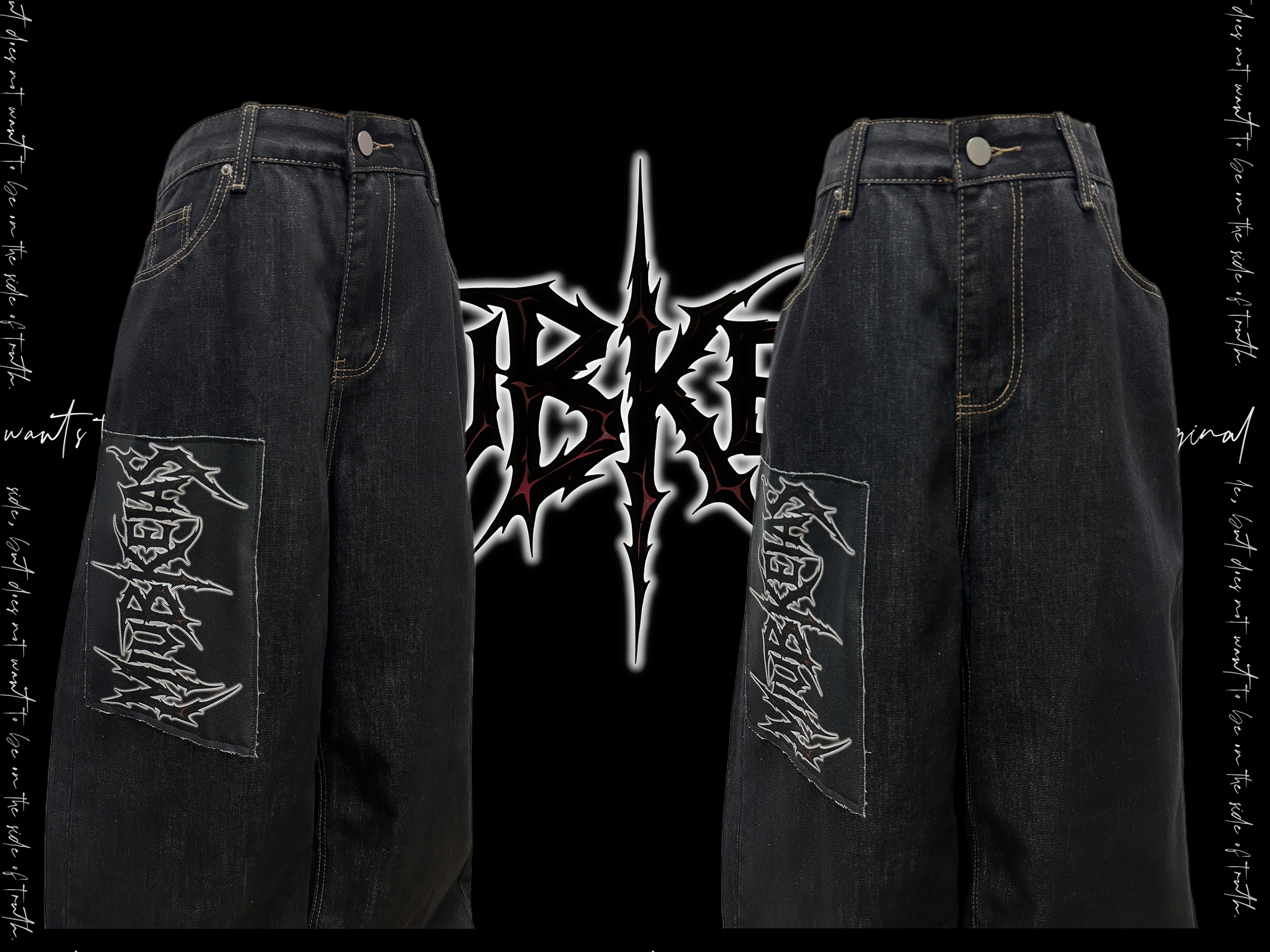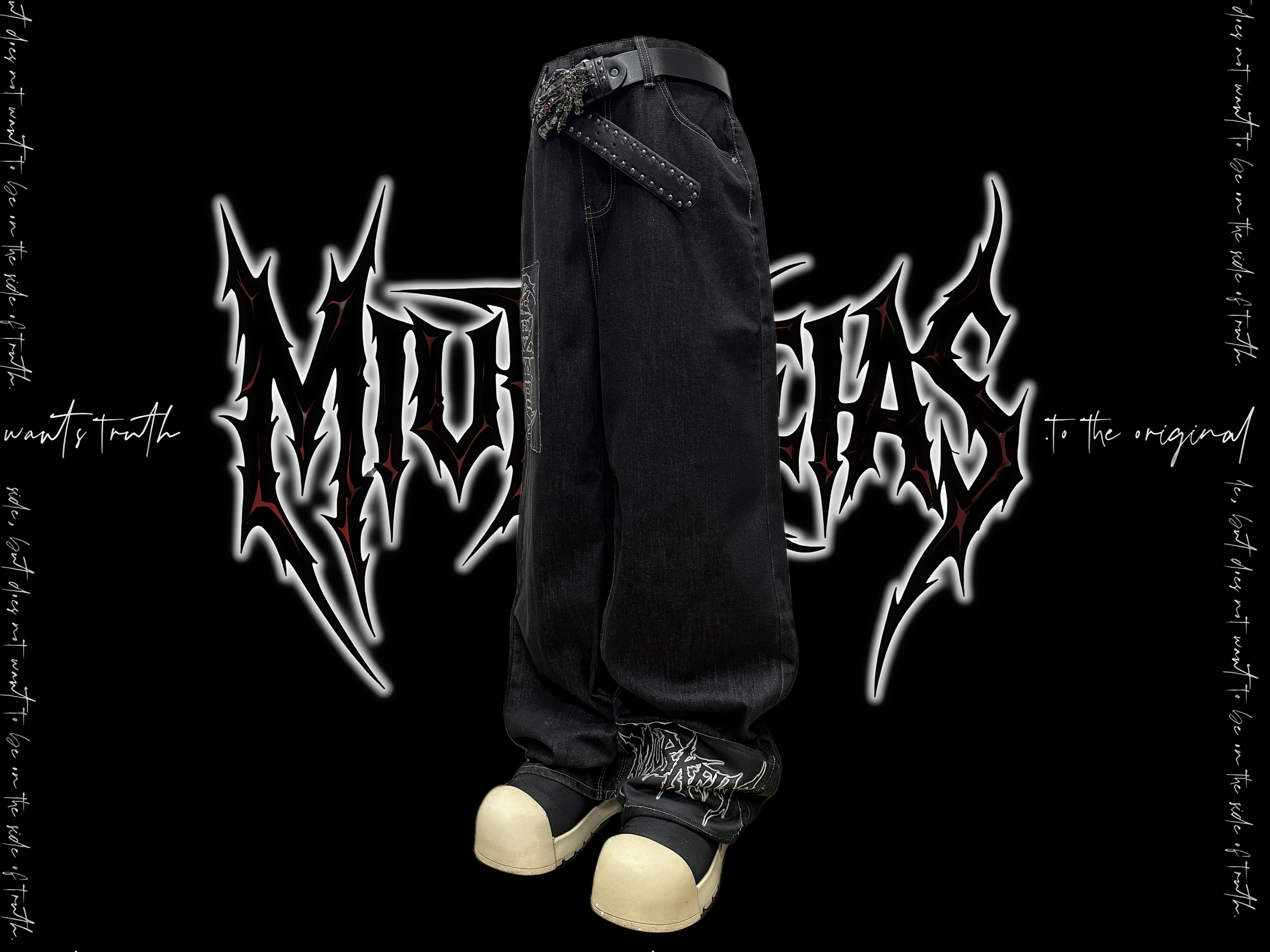 Graphic Letter Patchwork Wide Leg Denim Jeans & Belt & Chain WN20137