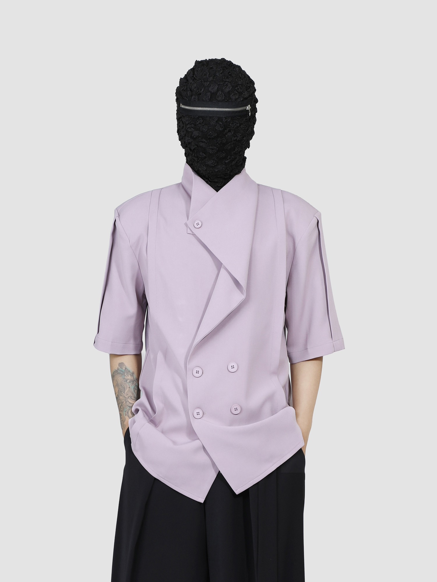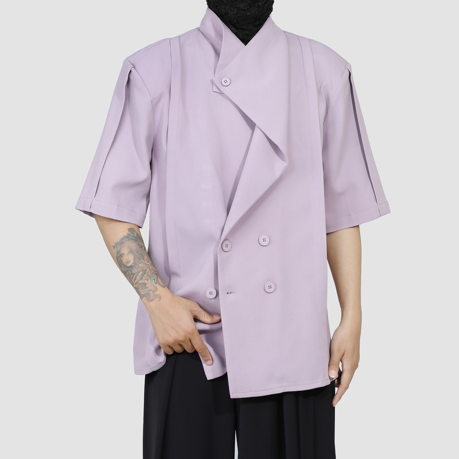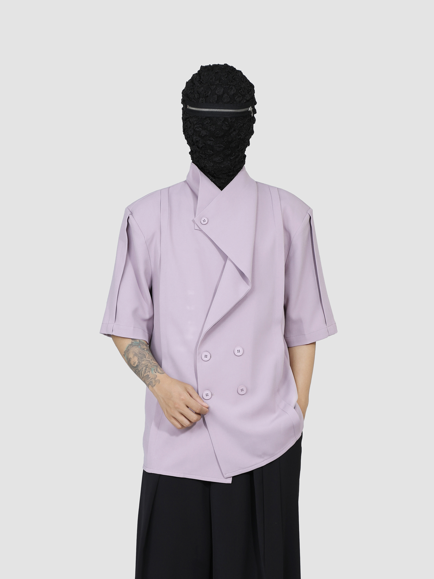 Asymmetrical Double-Breasted Short Sleeve Shirt WN20168