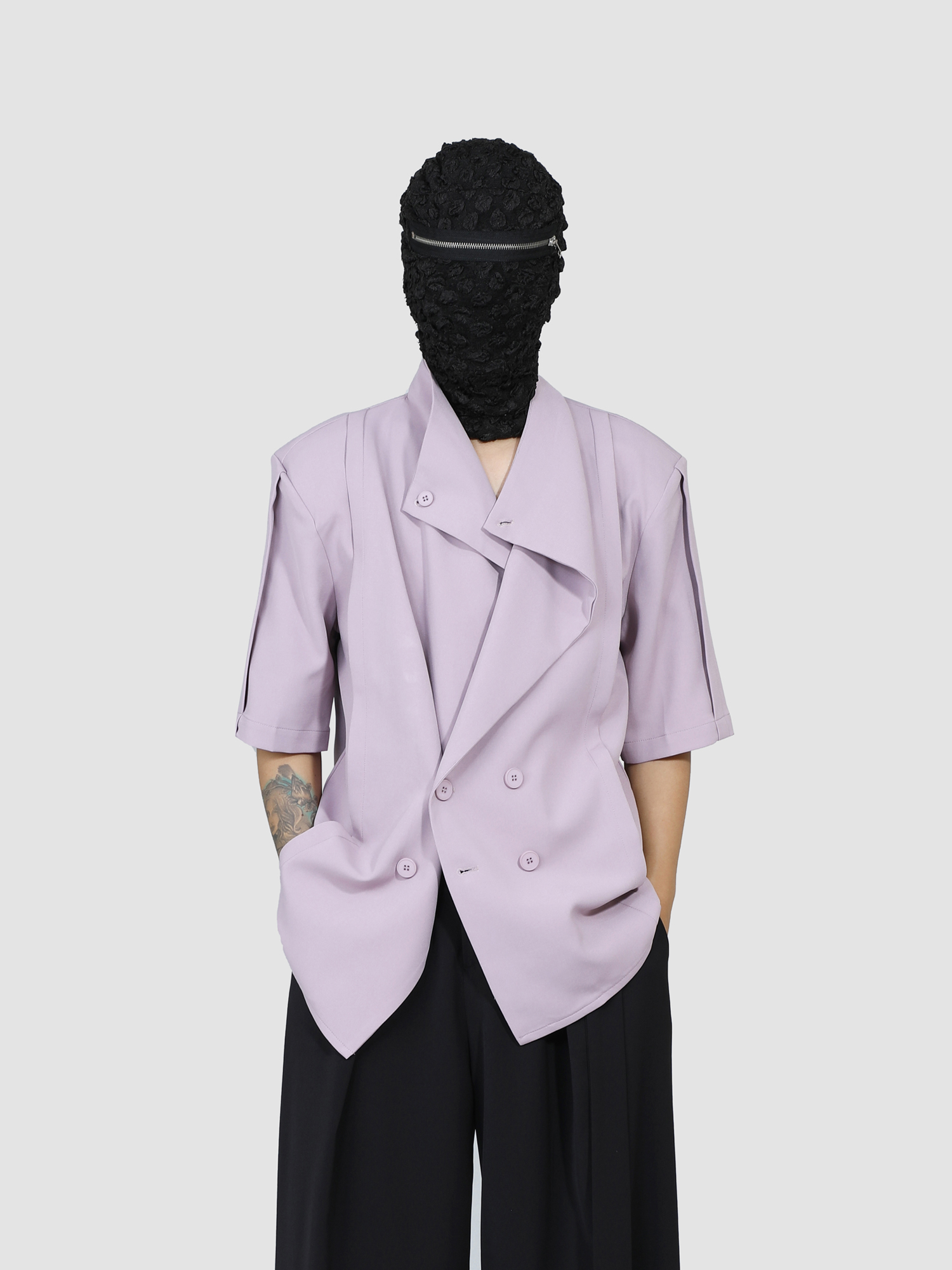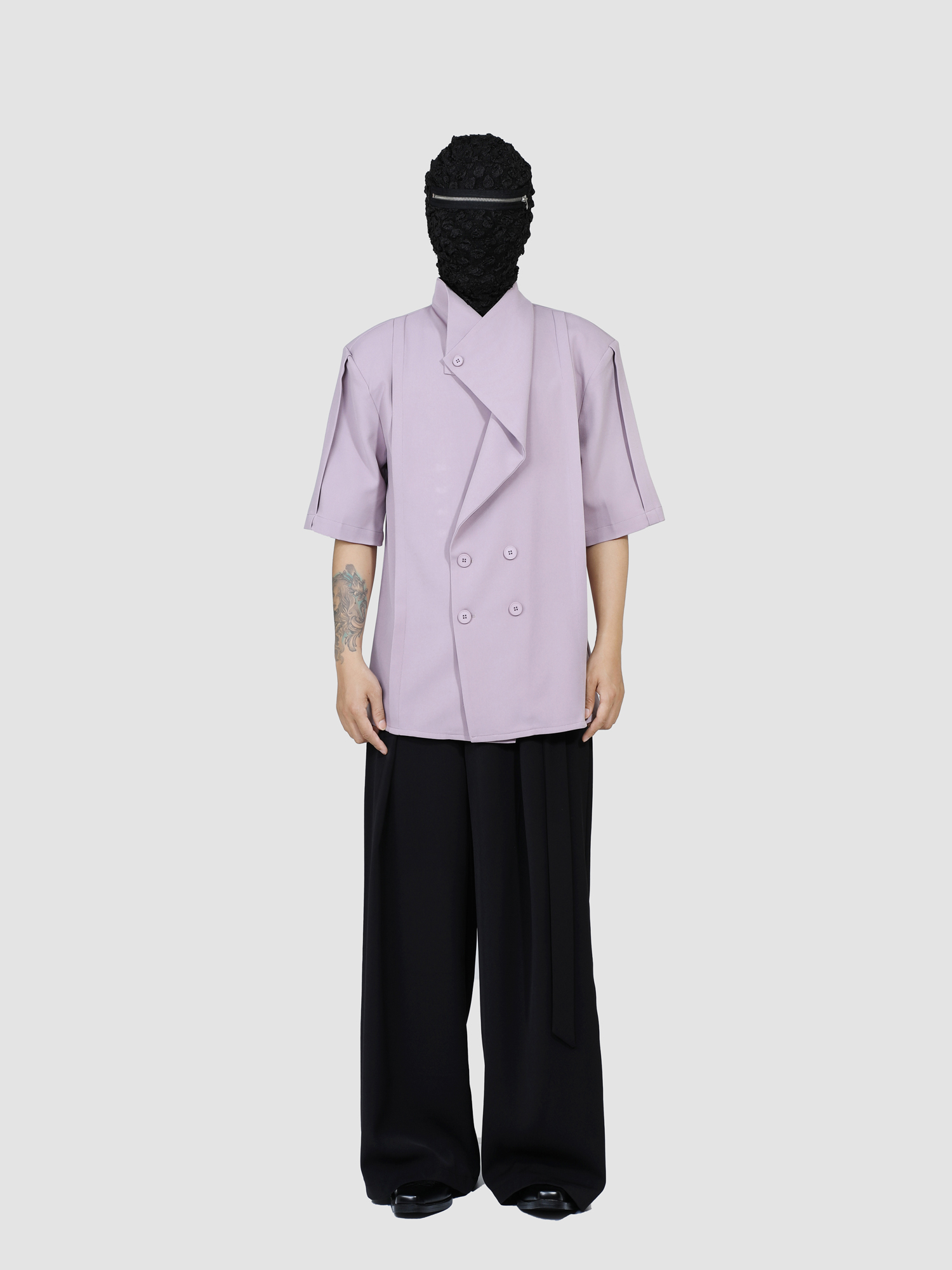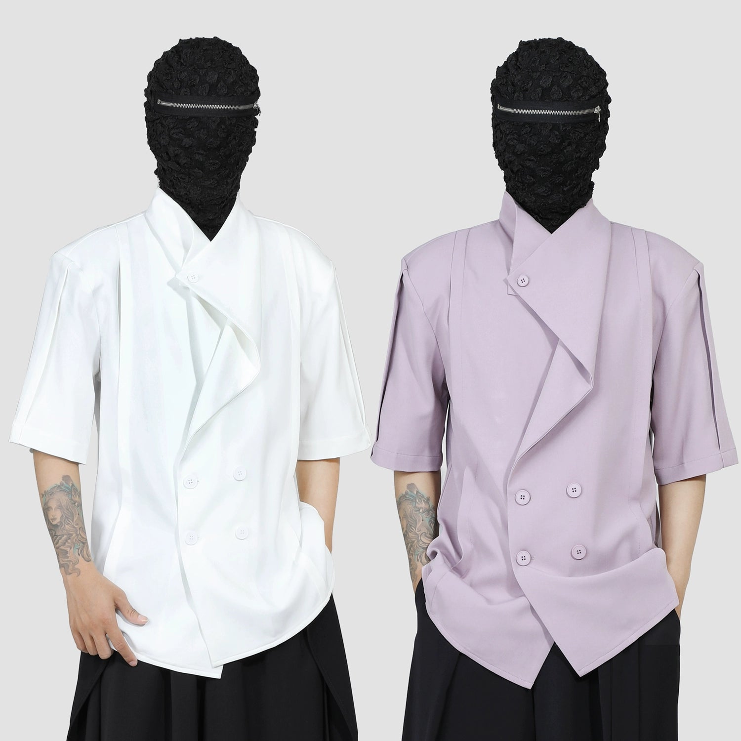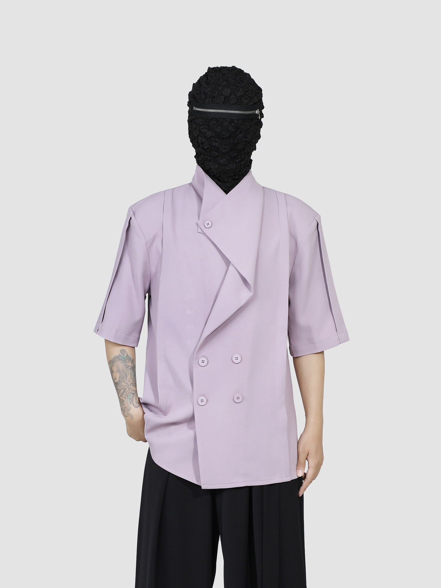 Asymmetrical Double-Breasted Short Sleeve Shirt WN20168