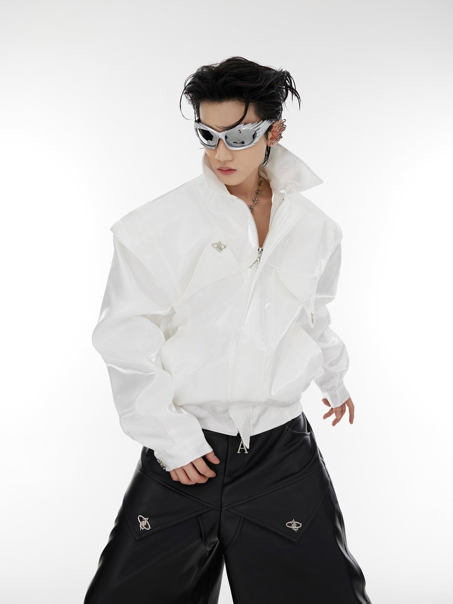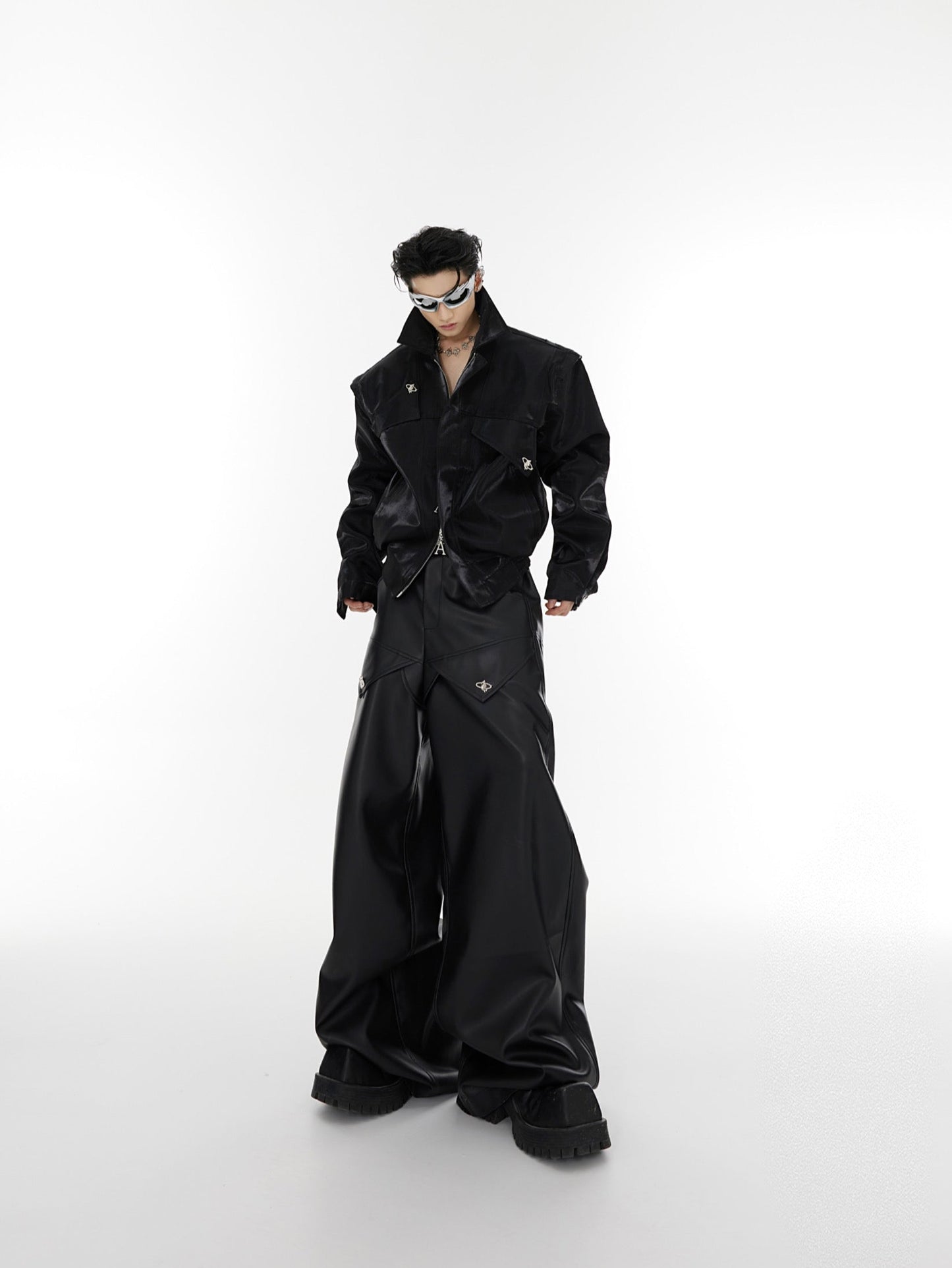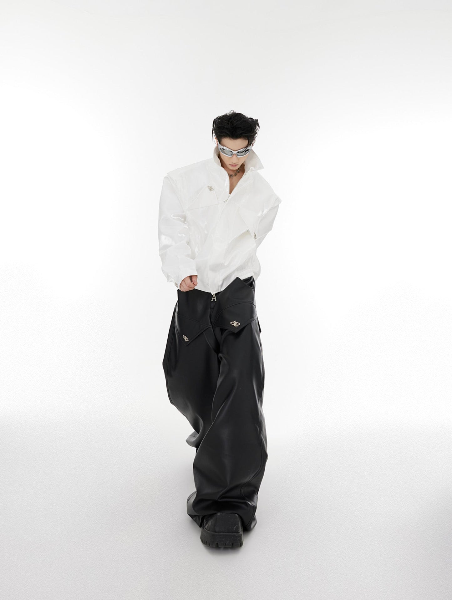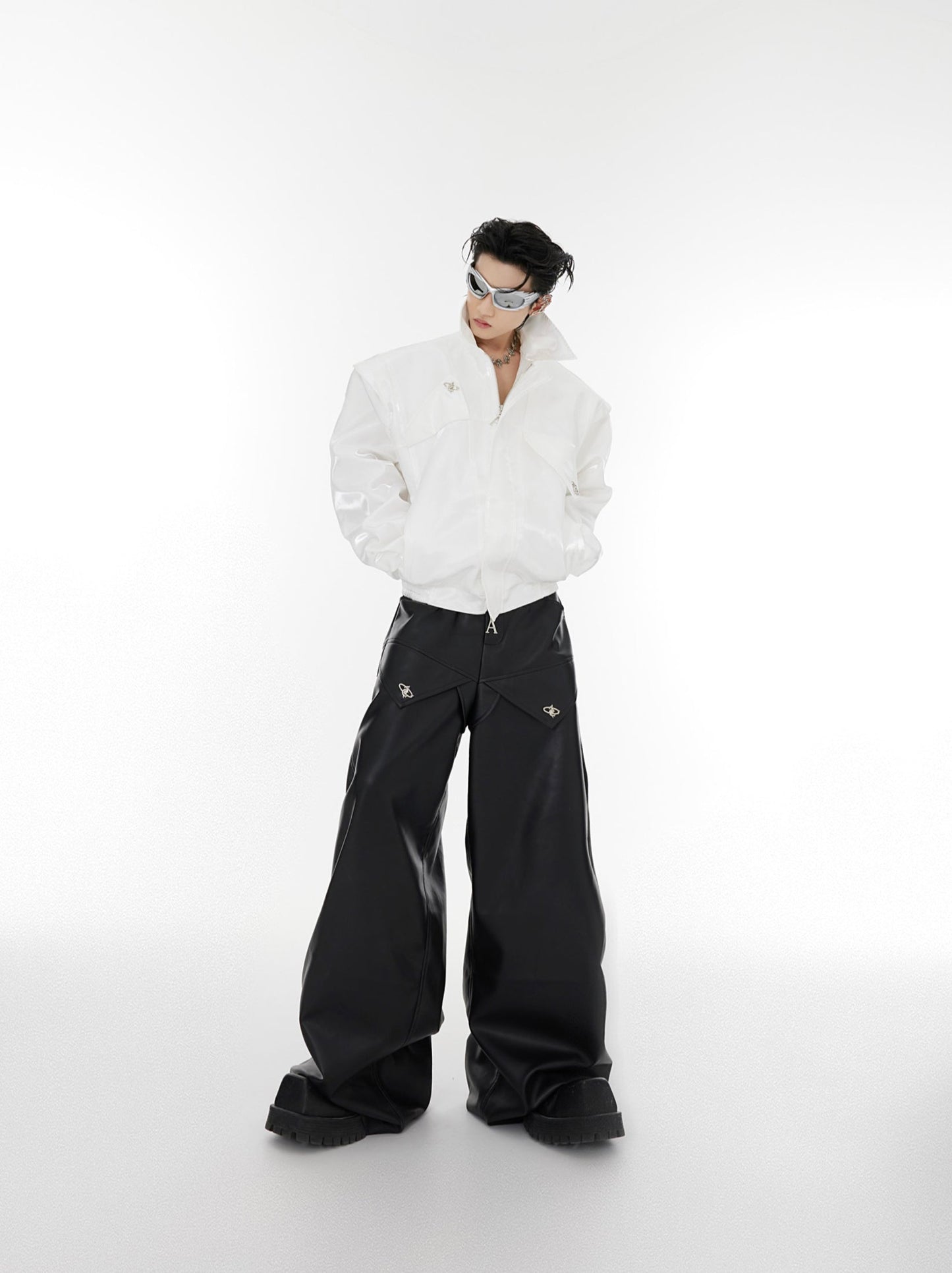 Oversize Shoulder-pads PU Leather Jacket WN2019