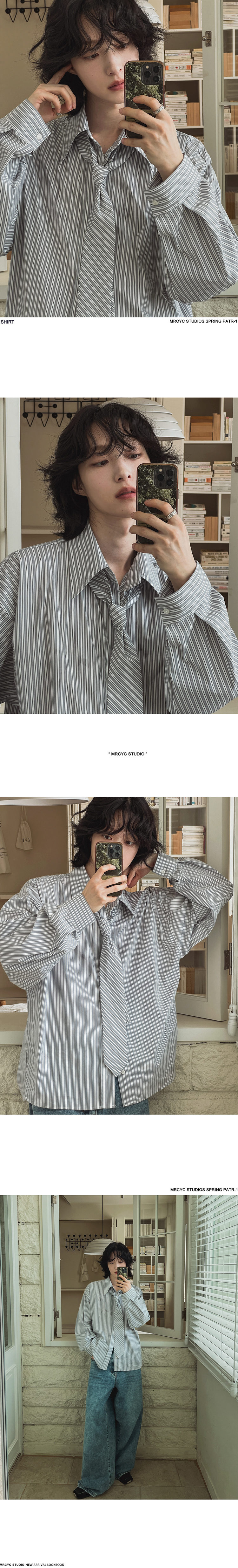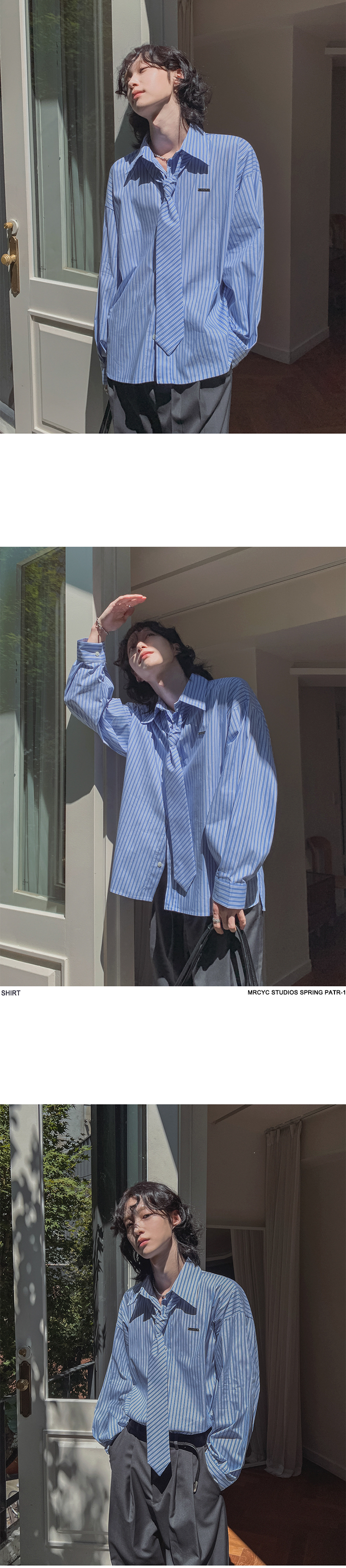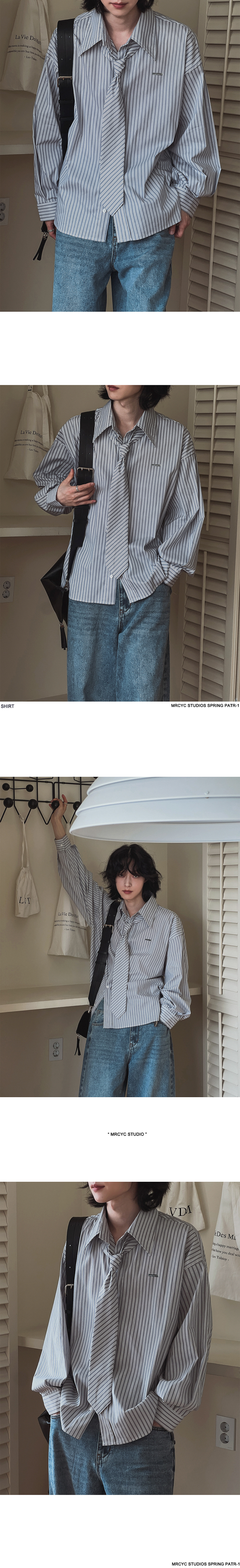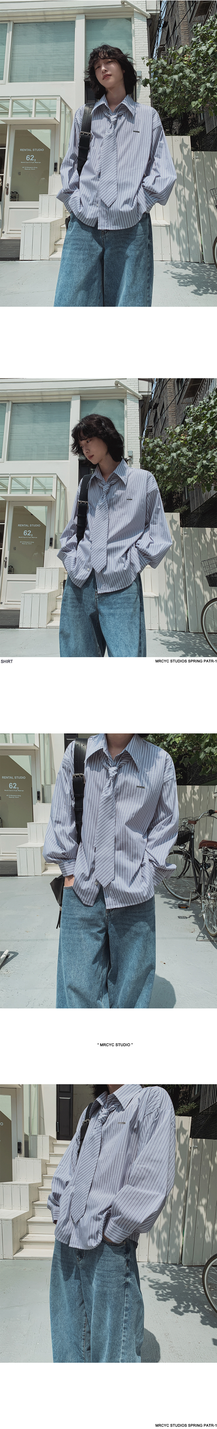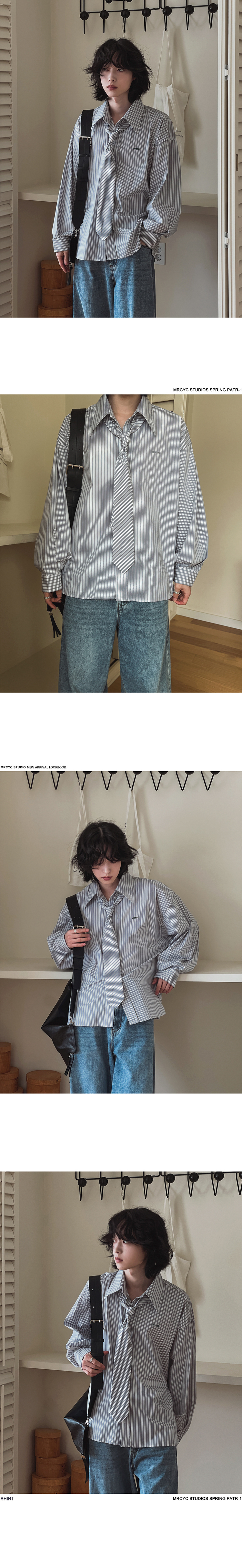 With Tie Striped Oversize Long Sleeve Shirt WN20245