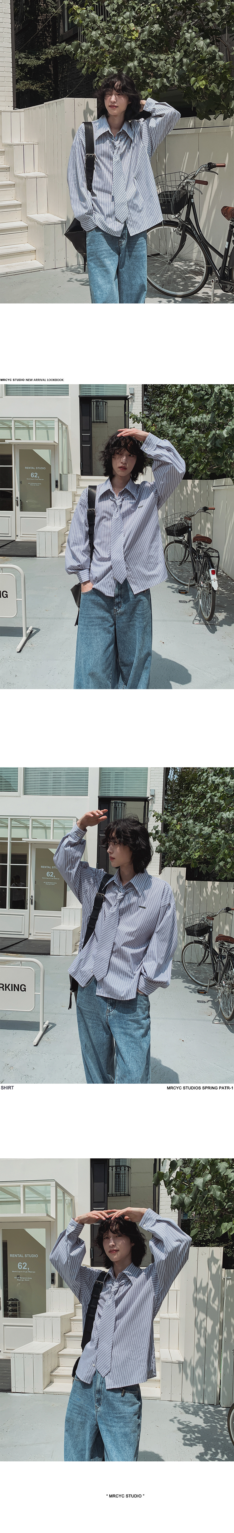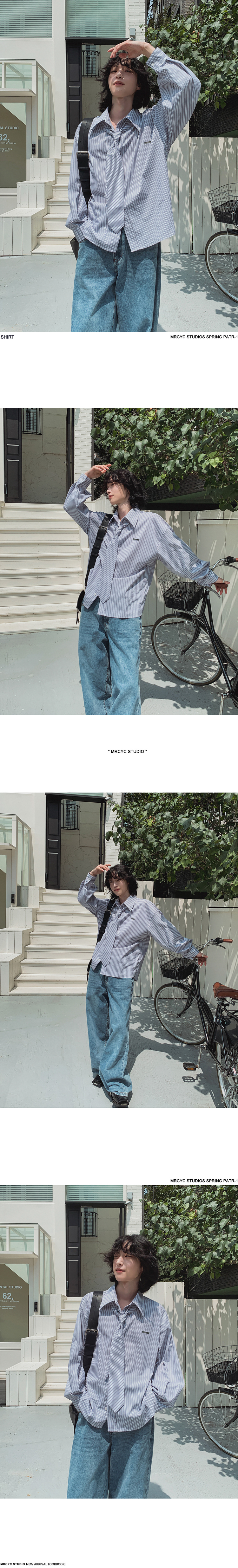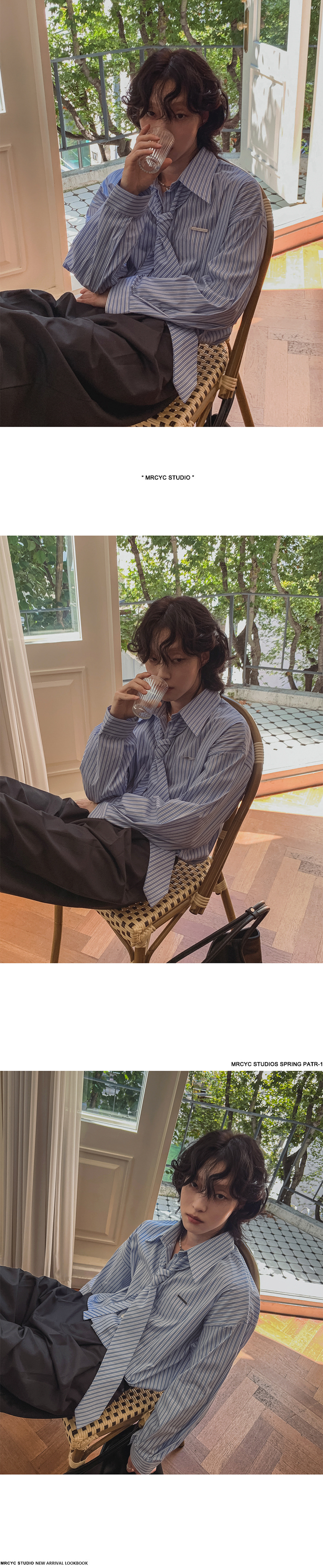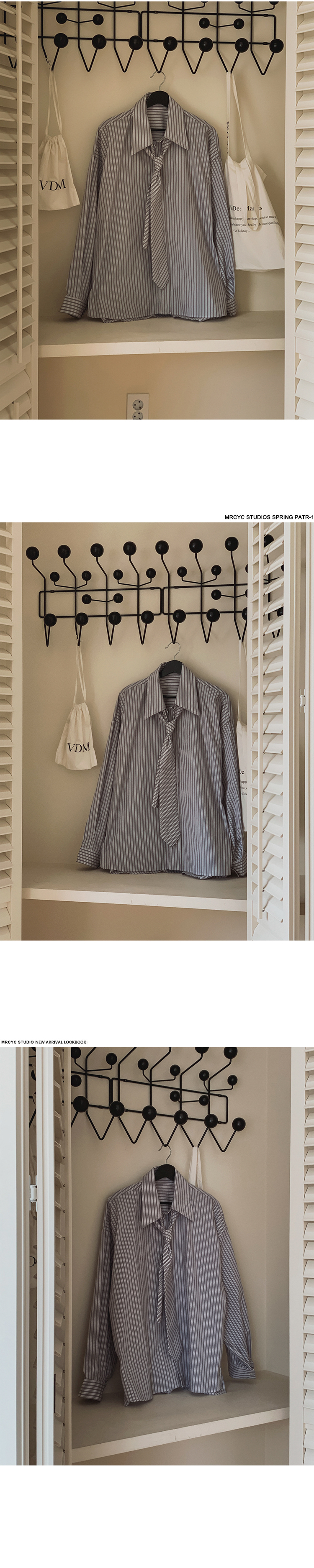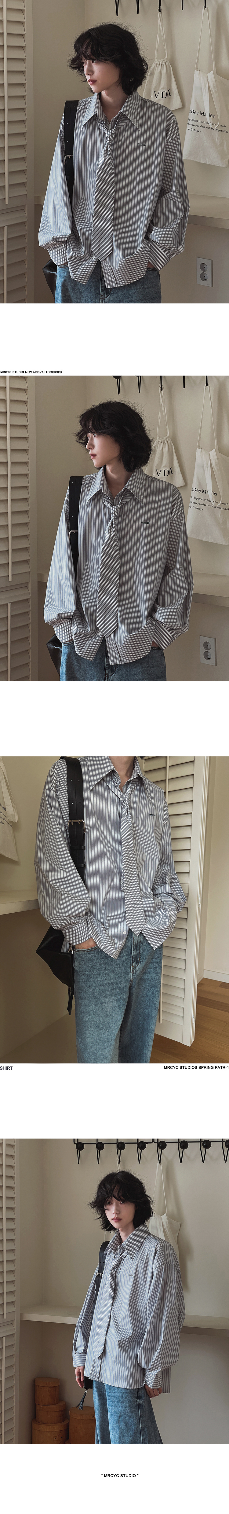 With Tie Striped Oversize Long Sleeve Shirt WN20245