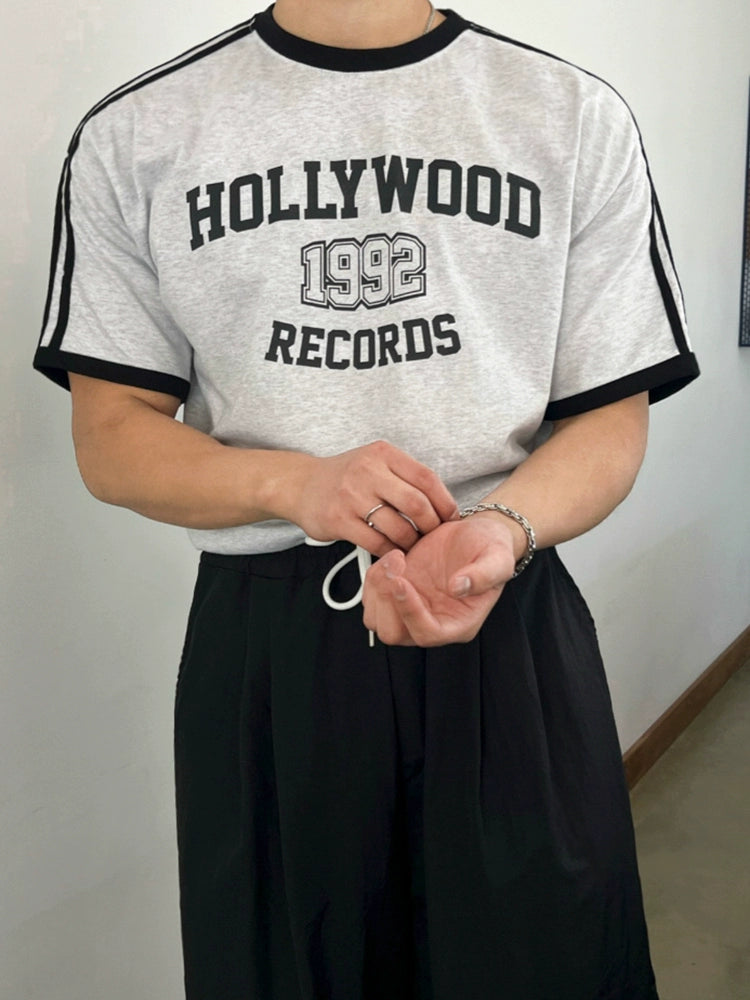 Colorblock Letter Print Oversize Short Sleeve T-Shirt WN20249
