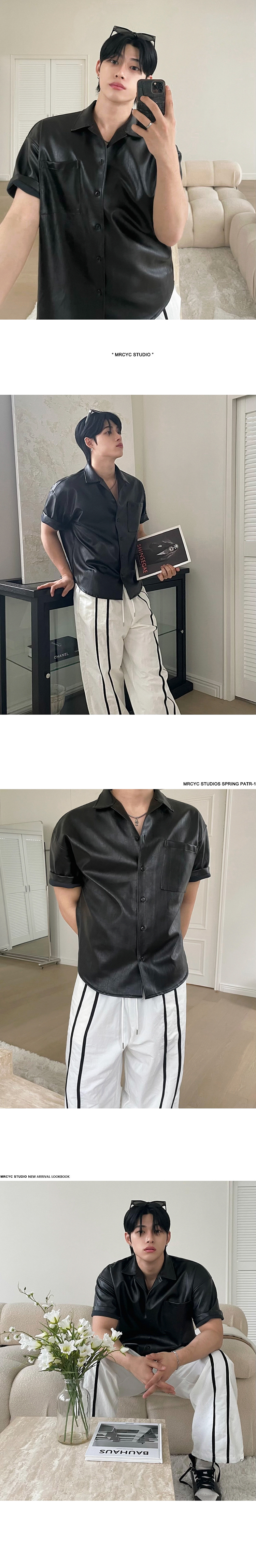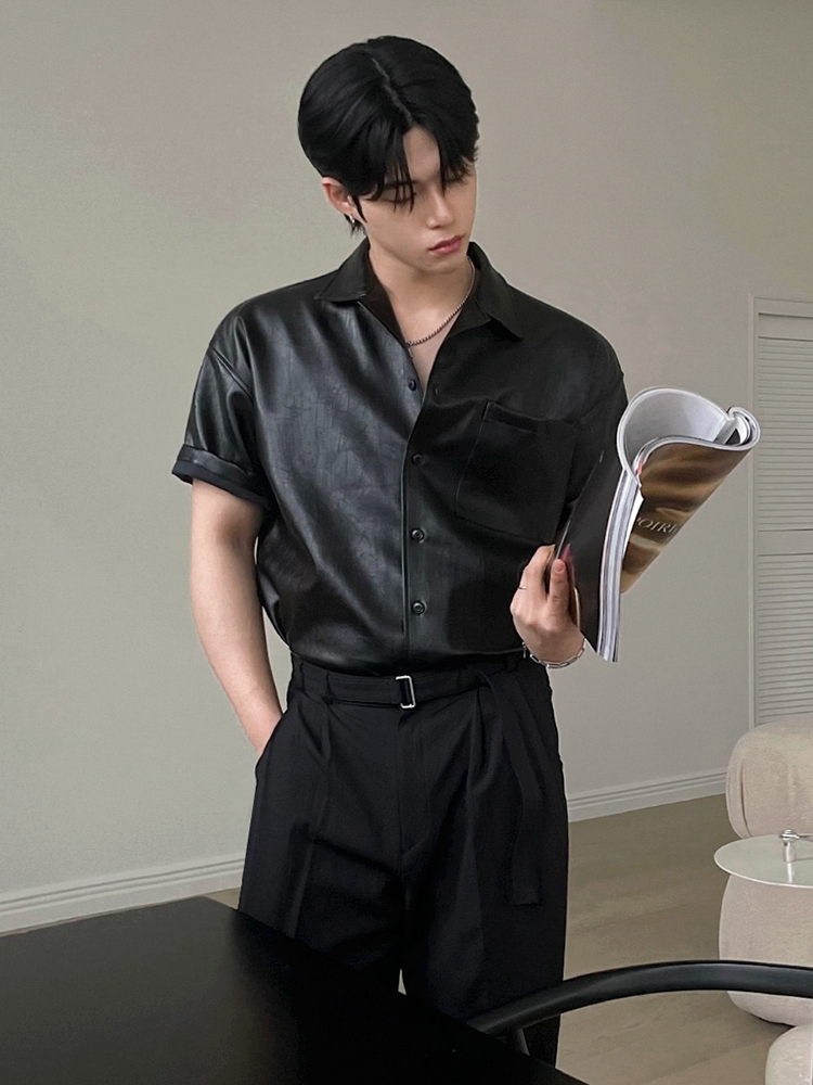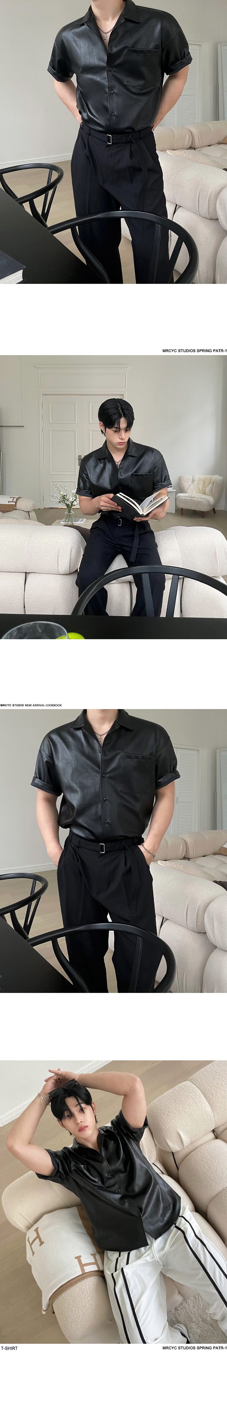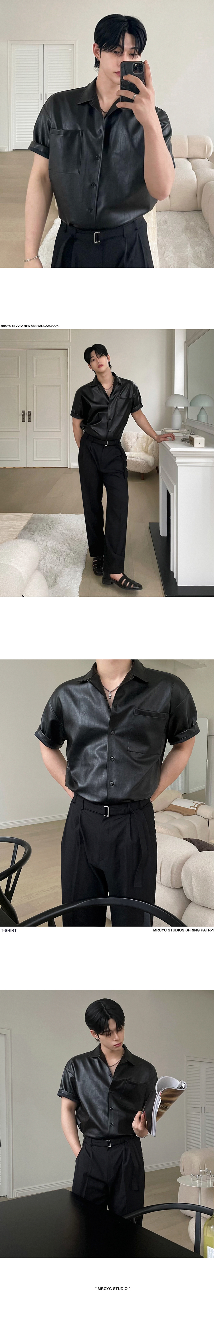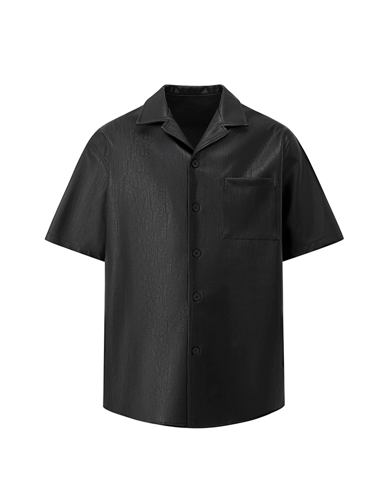 Turn-Down Collar PU Leather Short Sleeve Shirt WN20250