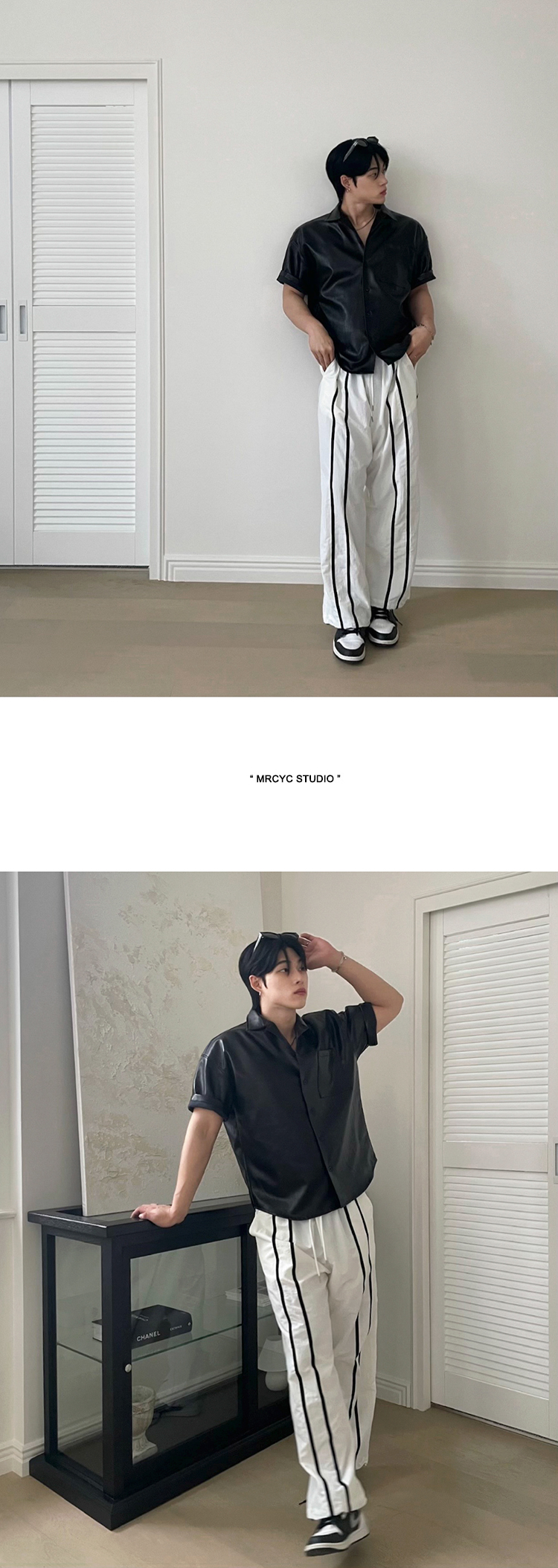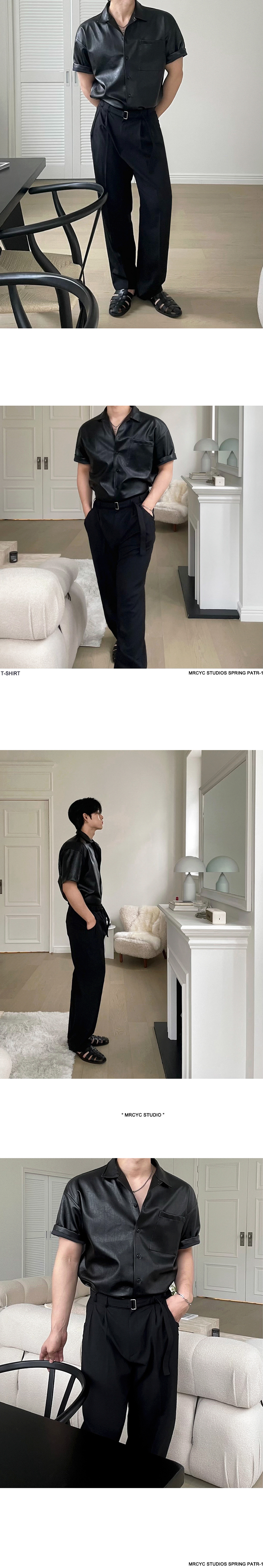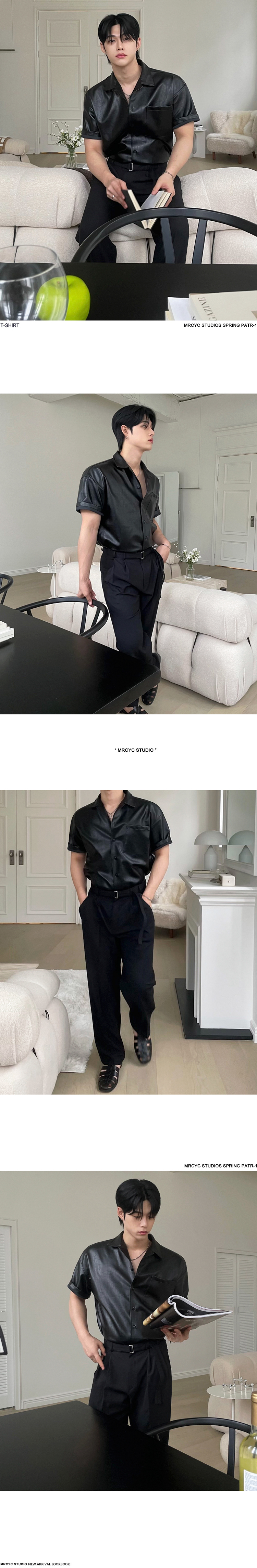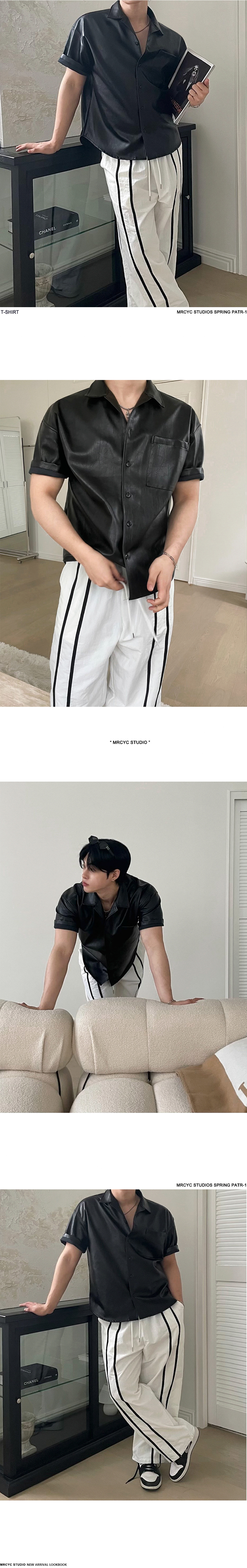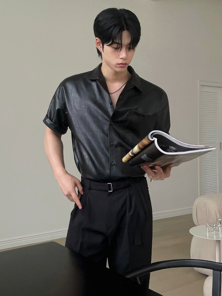 Turn-Down Collar PU Leather Short Sleeve Shirt WN20250