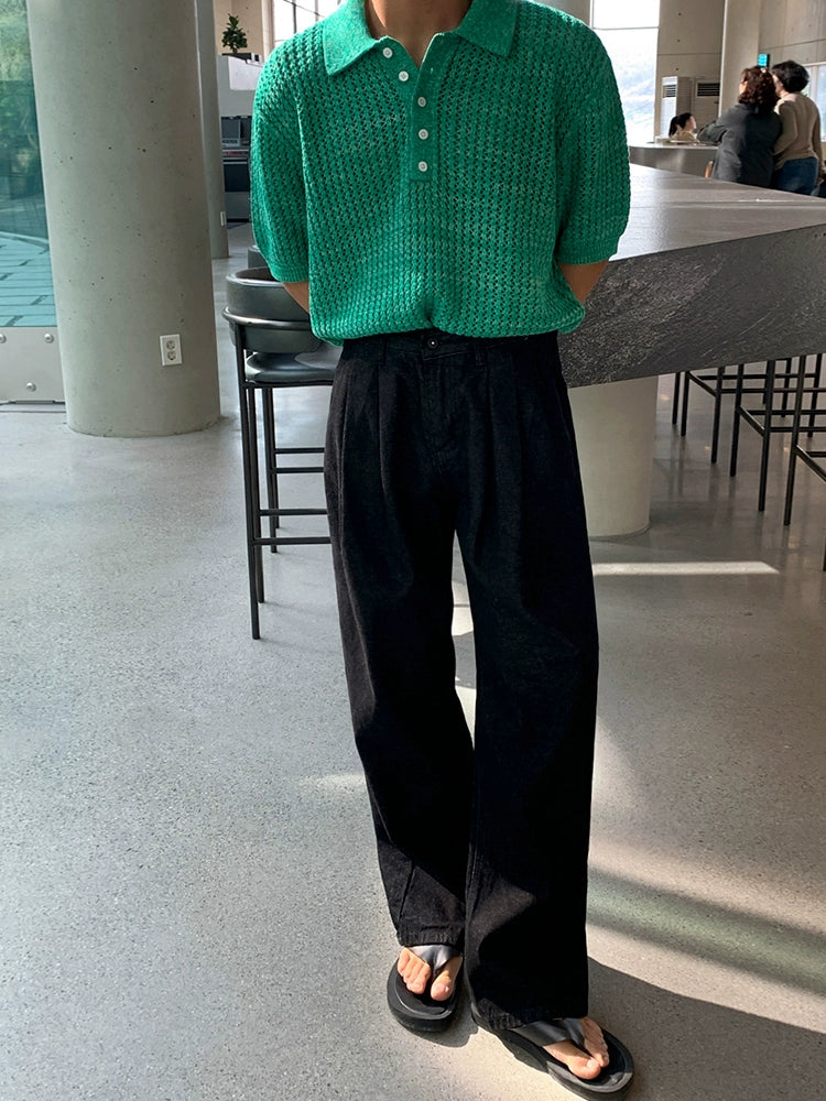 Hollow-Out Knit Short Sleeve Polo Shirt WN20259