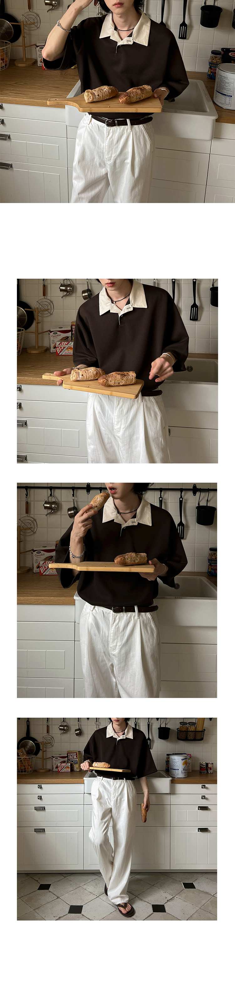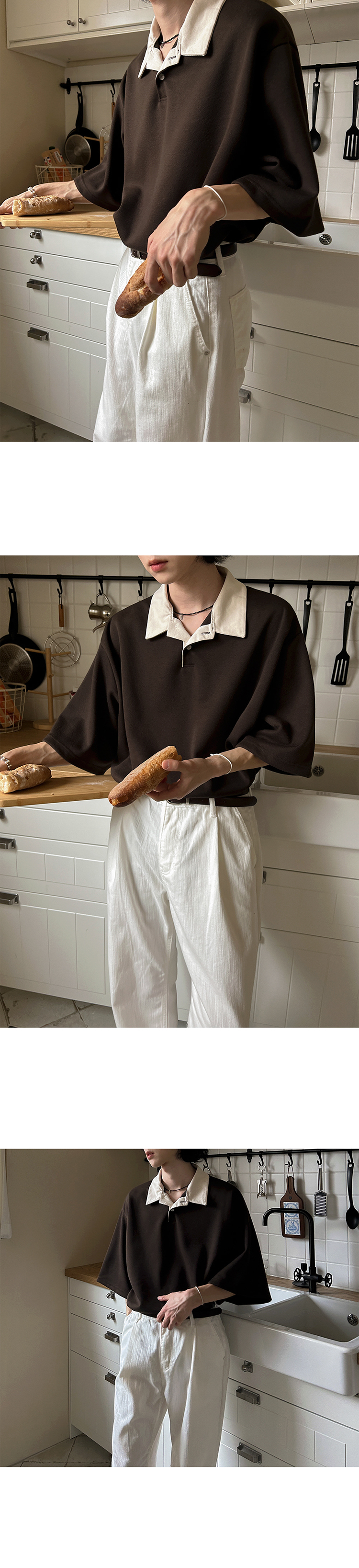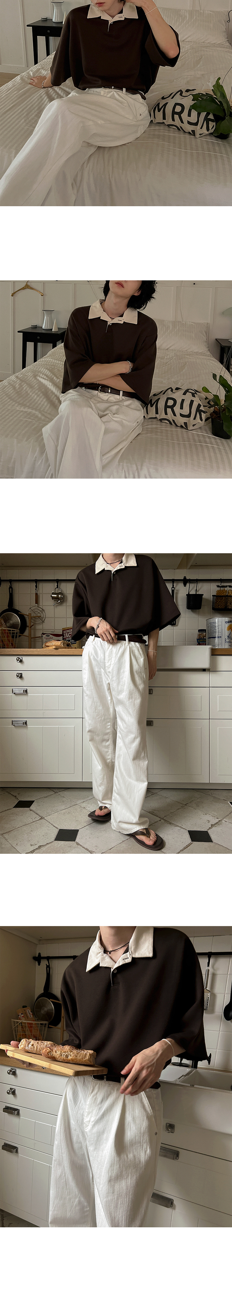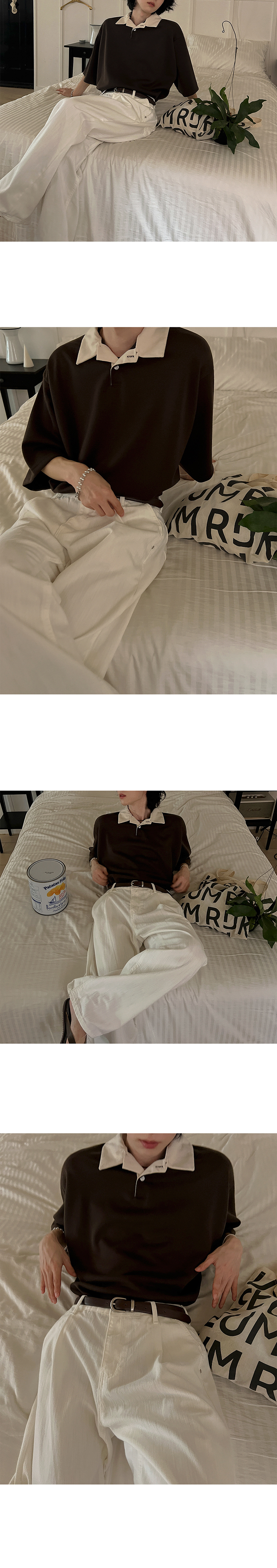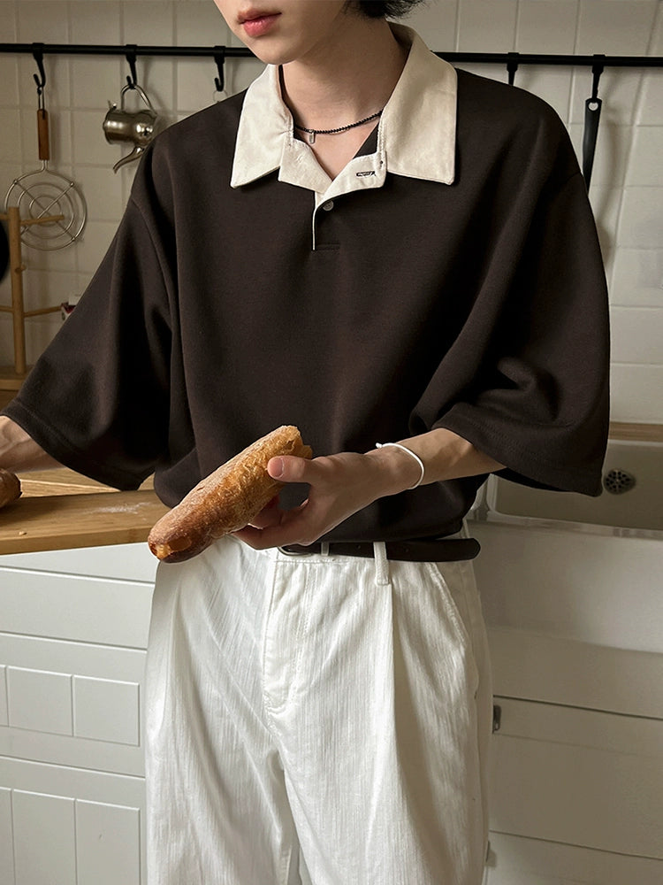 Color Block Oversize Short Sleeve Polo Shirt WN20272