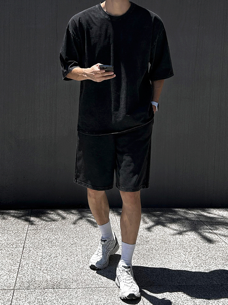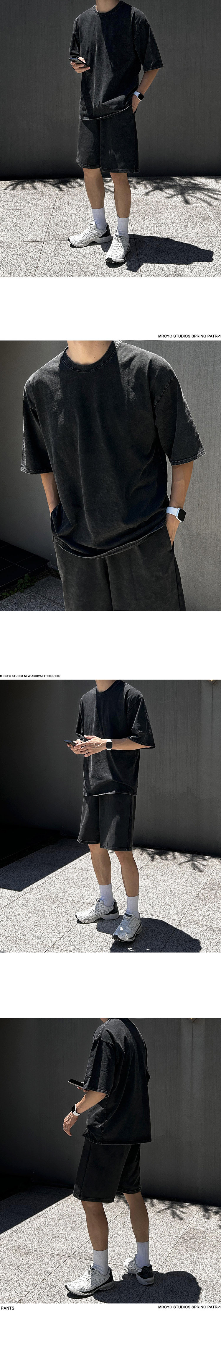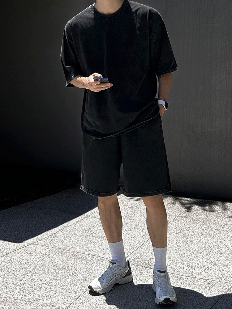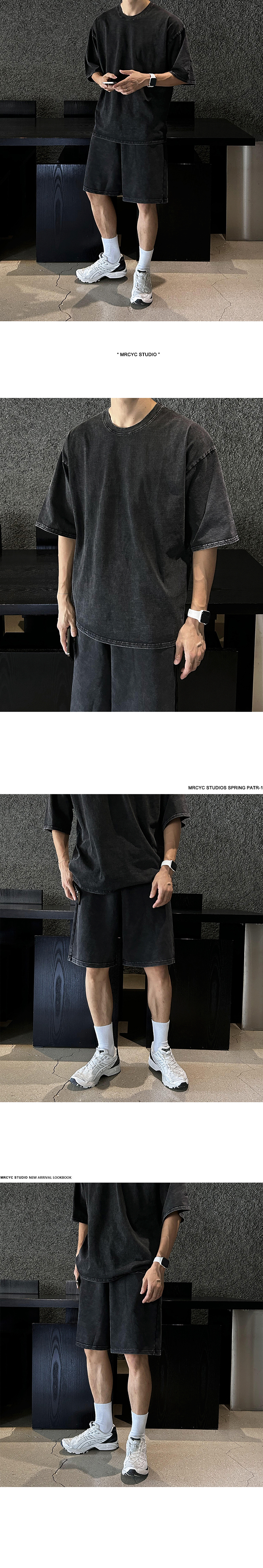 Washed Oversize Short Sleeve T-Shirt & Washed Straight Half Pants Setup WN20291