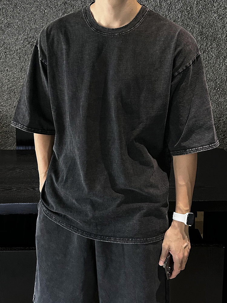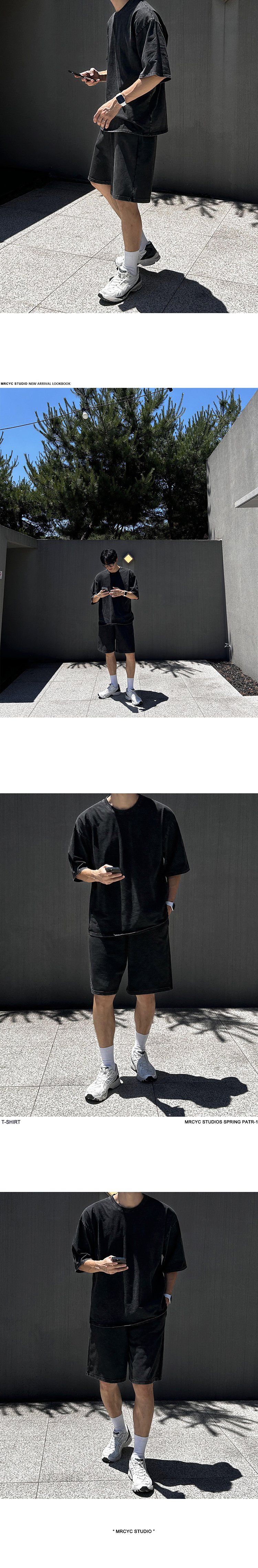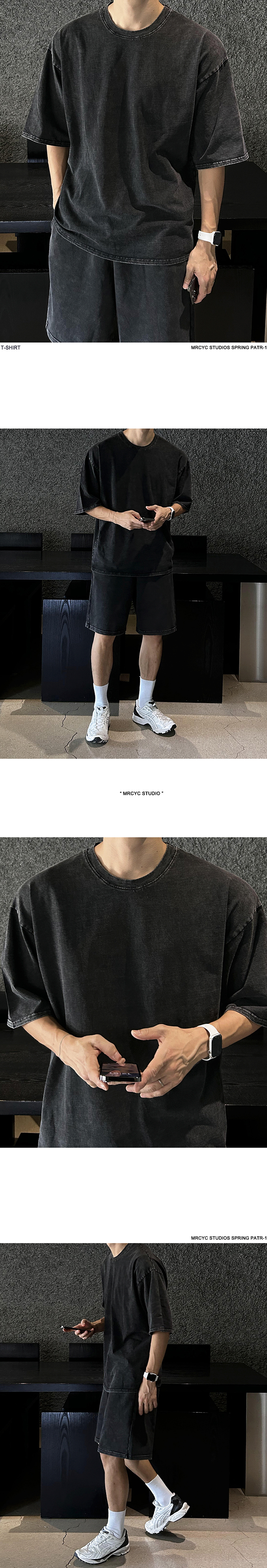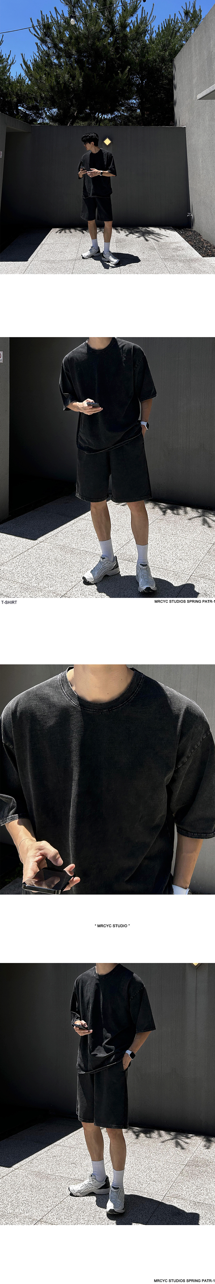 Washed Oversize Short Sleeve T-Shirt & Washed Straight Half Pants Setup WN20291