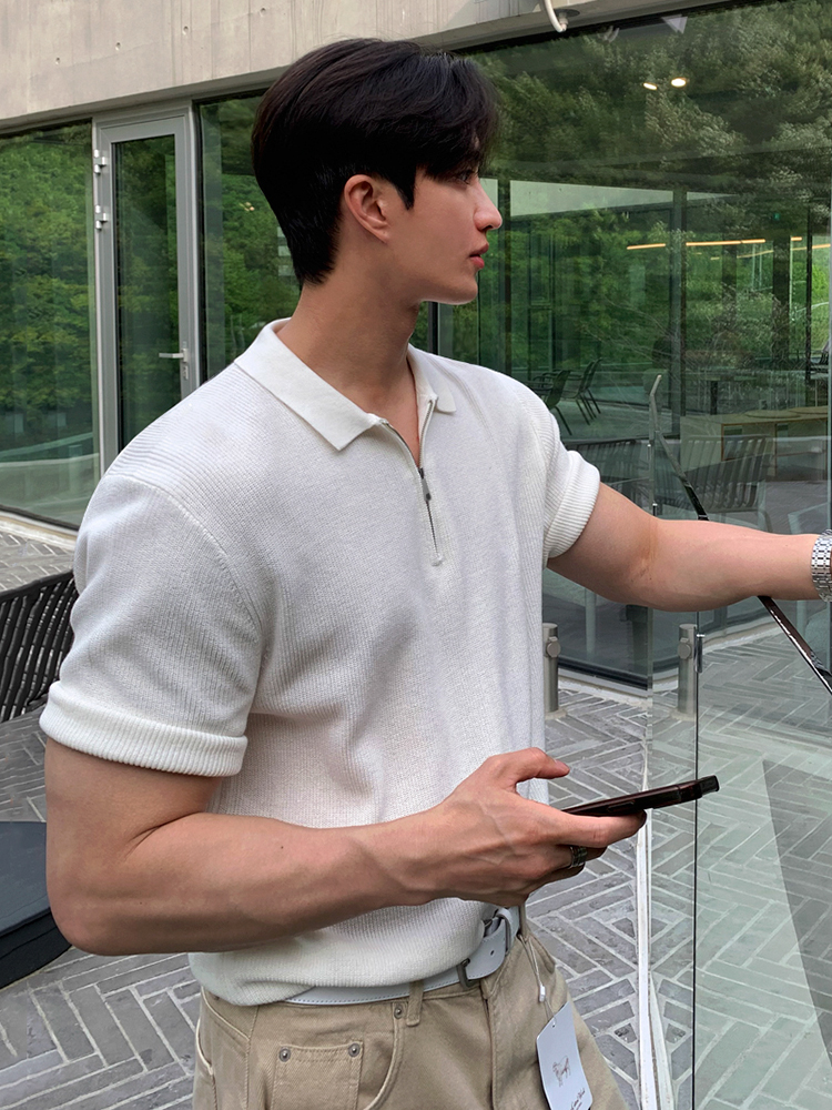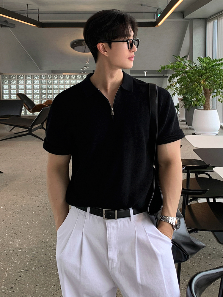 Solid Color Short Sleeve Knit Polo Shirt WN20308