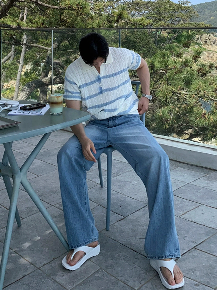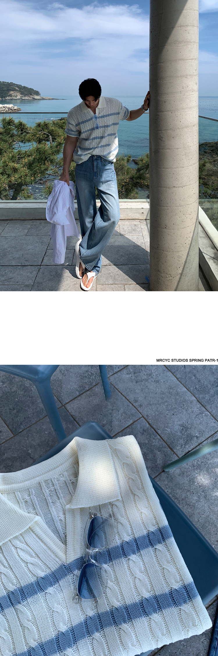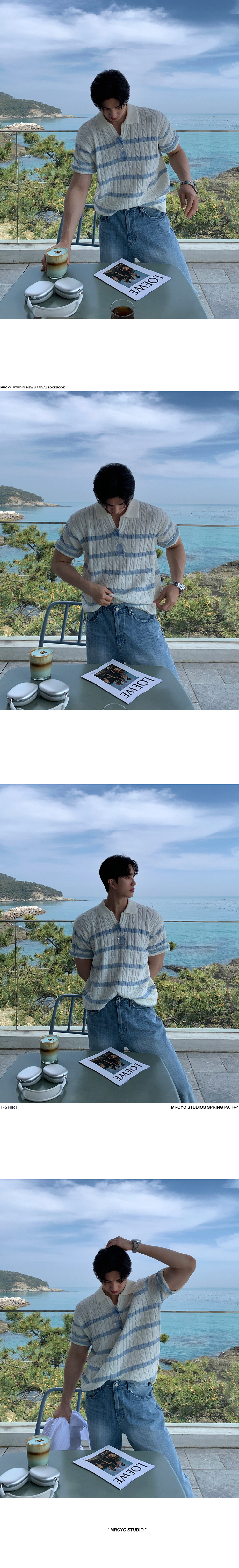Cable Stripe Knit Lapel Short Sleeve Polo Shirt WN20322