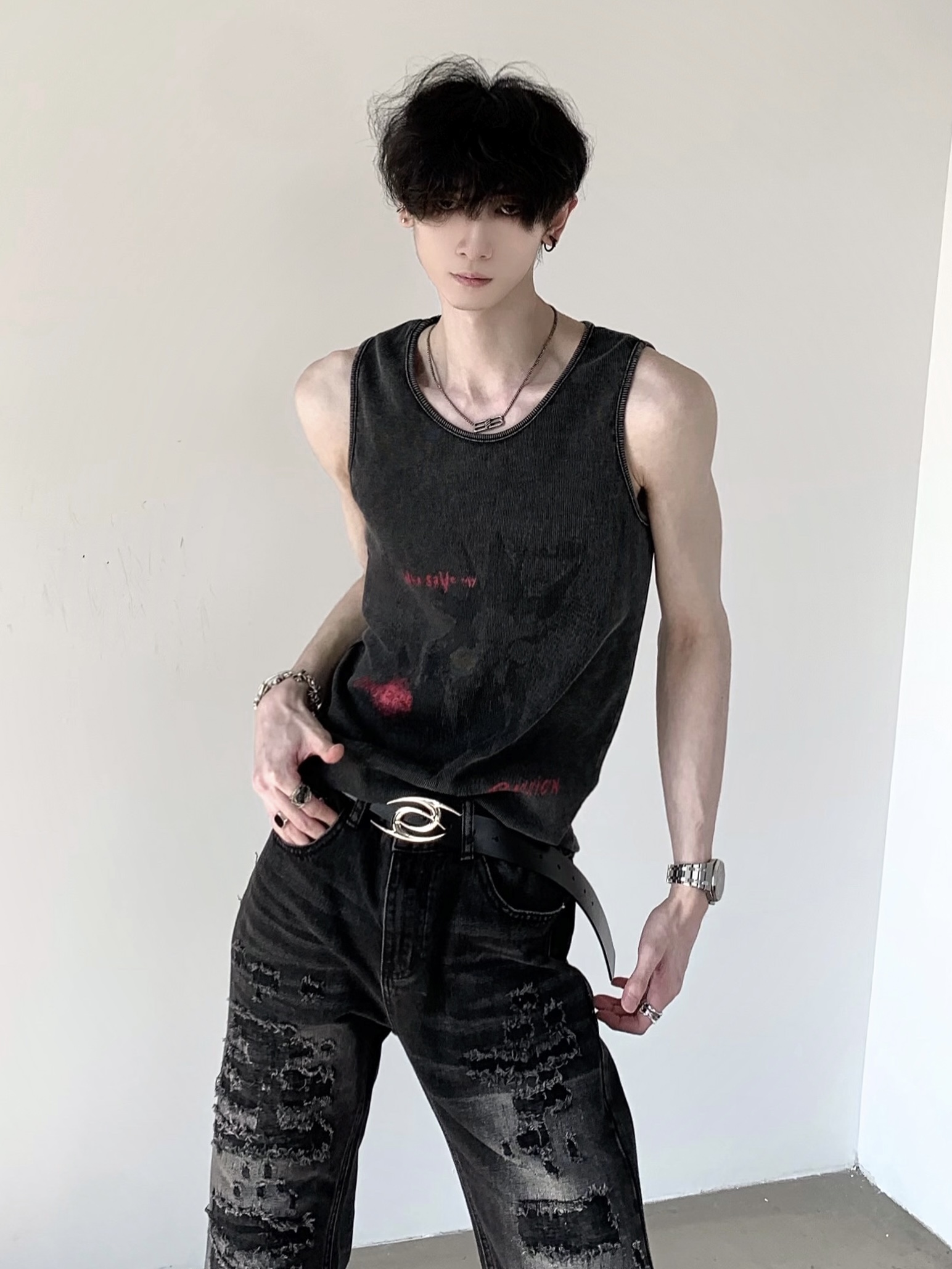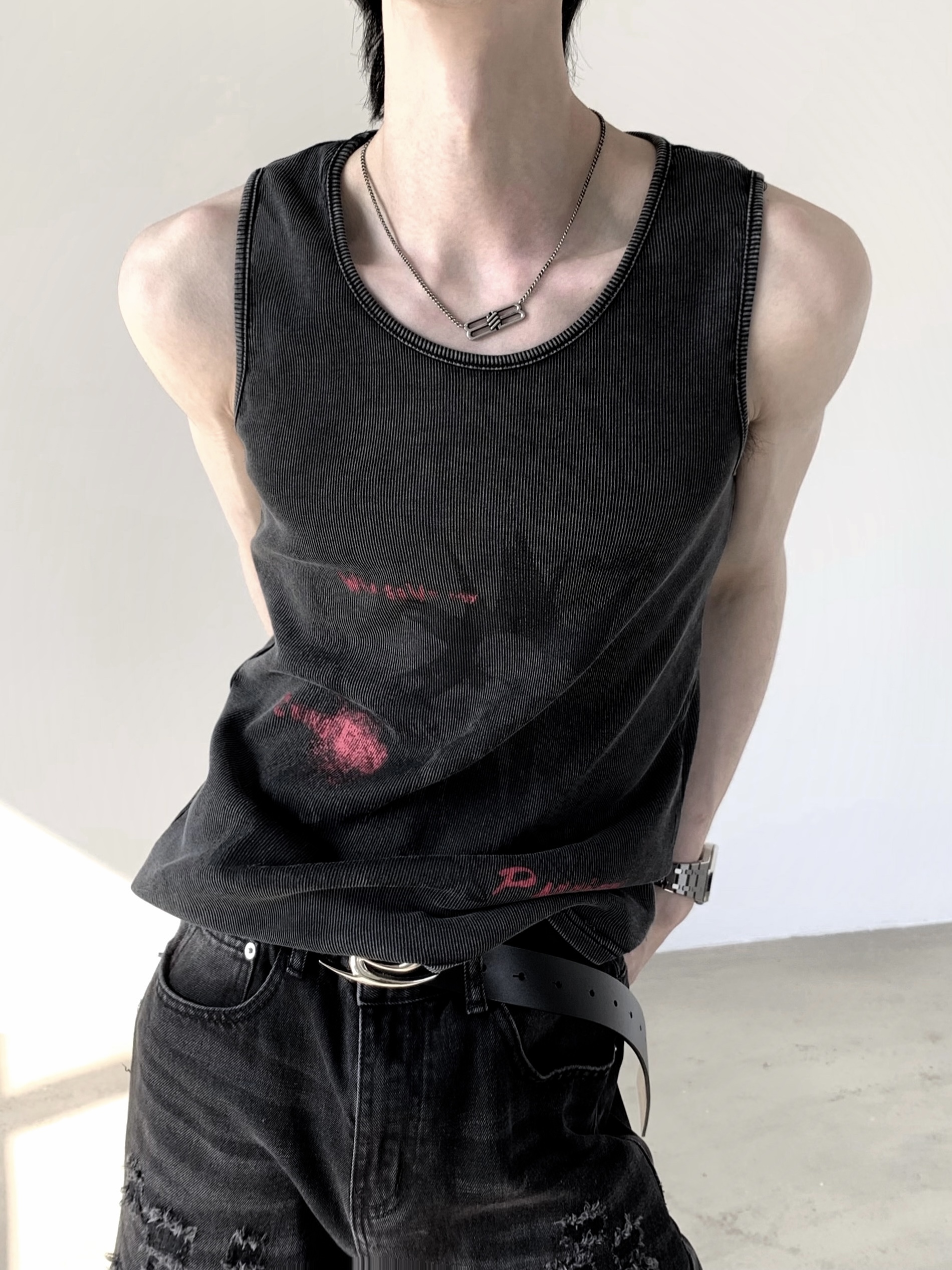 Washed Subculture Design Sleeveless T-Shirt WN20331